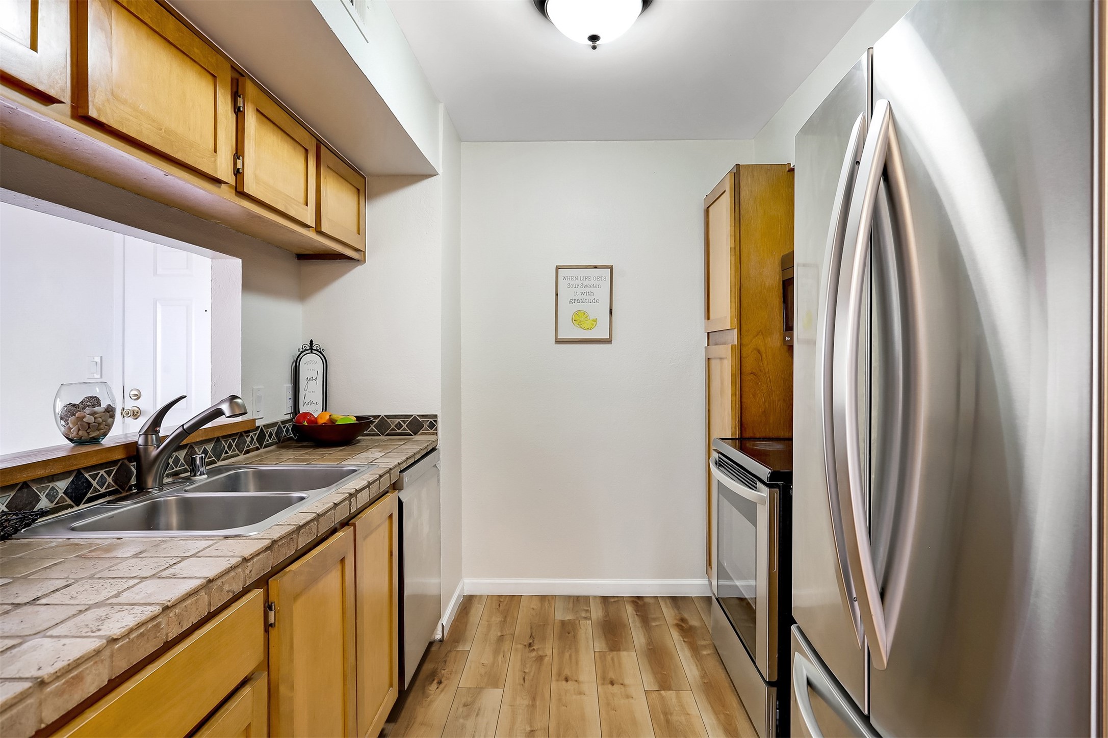 Welcome to this well-maintained second-floor condominium, offering a perfect blend of comfort and convenience. The home features attractive wood laminate flooring throughout, a cozy wood-burning fireplace, and a private balcony, ideal for enjoying your morning coffee. The kitchen is equipped with stainless steel appliances, providing both style and functionality. Community amenities include a spacious clubhouse with a library, a pool and hot tub, sauna, and a fully equipped fitness center. Beautifully landscaped courtyards, along with barbecue areas and picnic tables, create inviting spaces for gatherings and leisure. The community also offers the convenience of onsite staff and the peace of mind of 24/7 gated access.