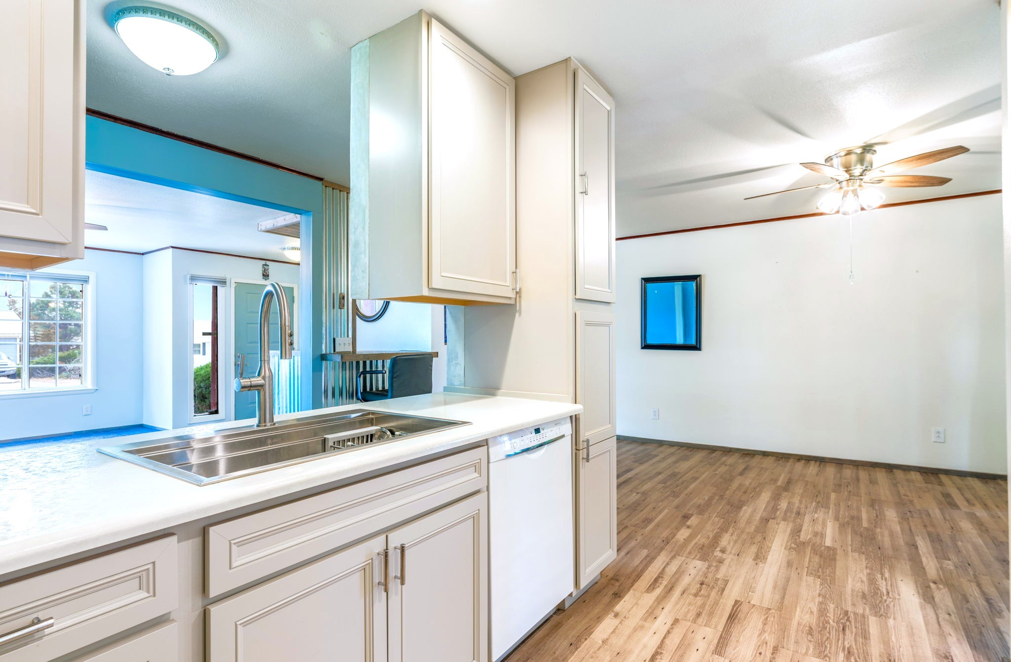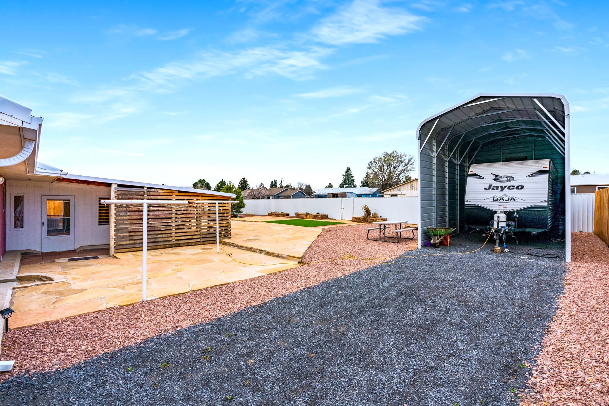 Beautifully updated 3 bed, 2 bath home with approx. 2,500 sq ft! Features include new wood flooring, new carpet, and a new roof. Enjoy year-round comfort with a new refrigerated heating & A/C unit and new water heater.Upgraded kitchen with new cabinets, breakfast nook, and full appliance package including dishwasher, refrigerator, microwave, stove, and double oven. Bathrooms refreshed with new toilets and vanity; includes 3/4 bath.Additional highlights: washer & dryer, blackout drapes, security cameras, and ample storage. Exterior offers gravel landscaping, flagstone accents, and RV carport.Move-in ready with numerous updates throughout!