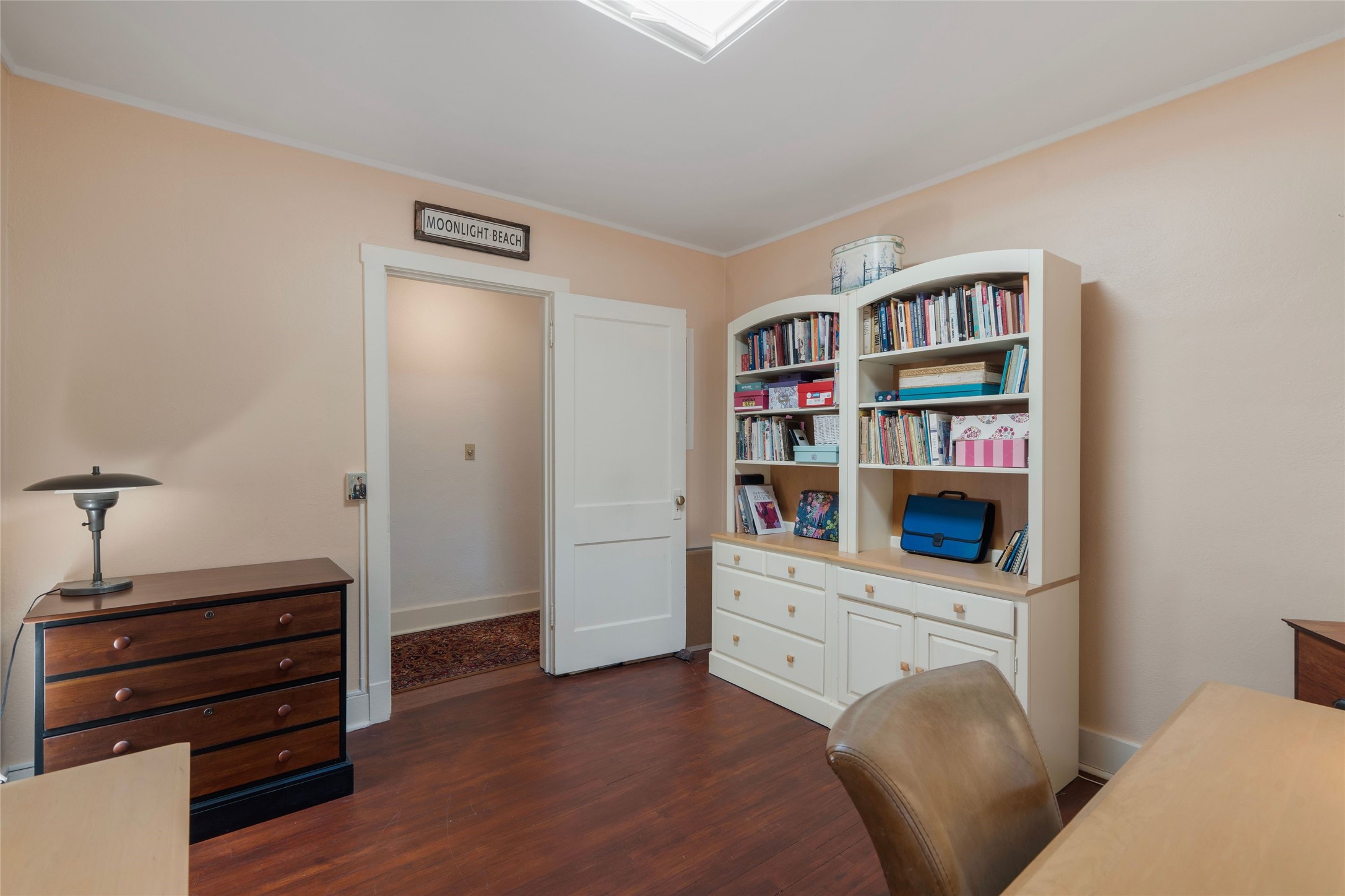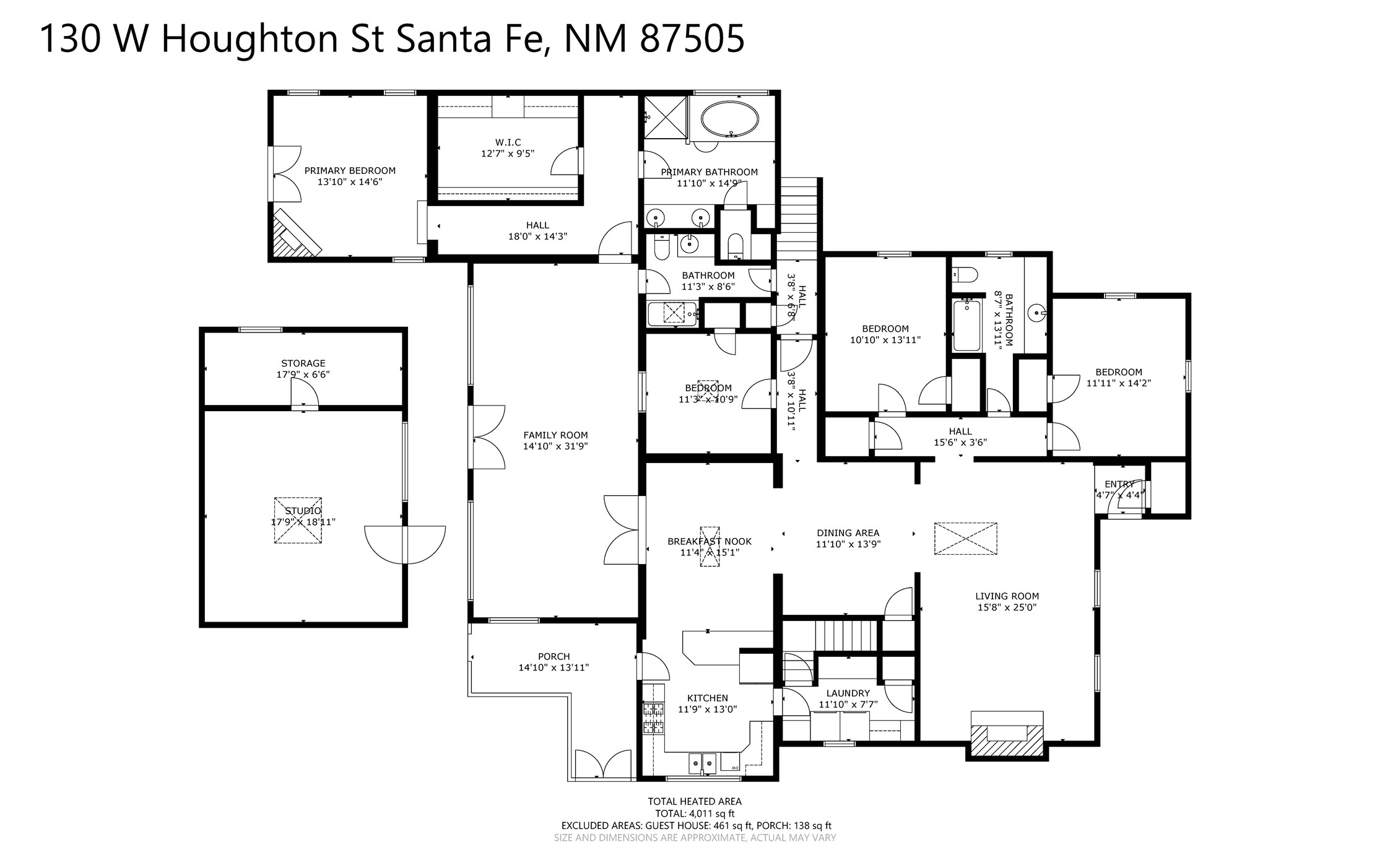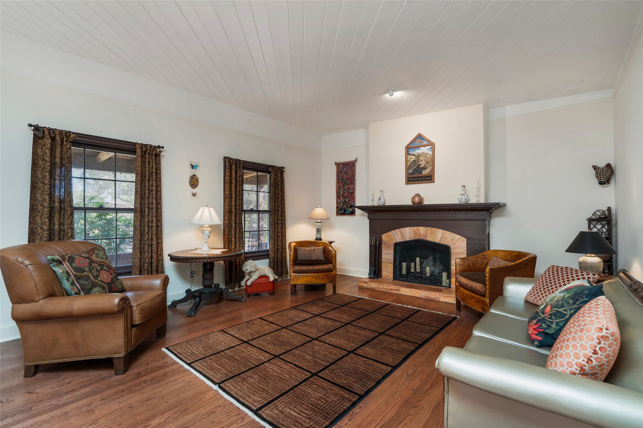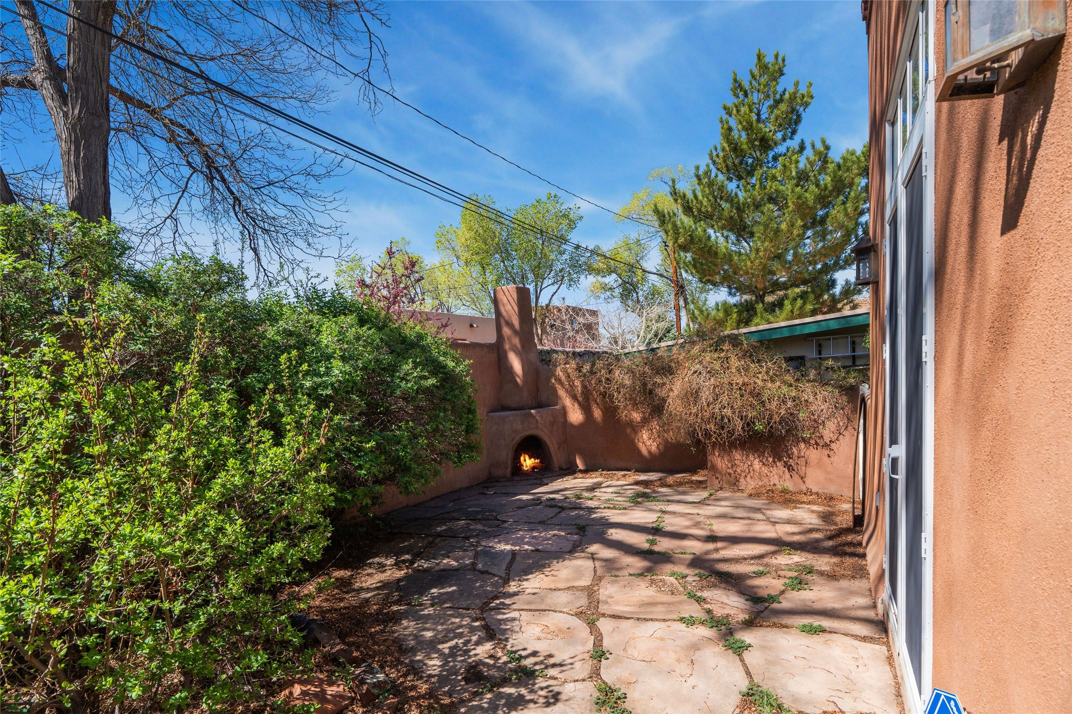 Extraordinary Territorial-style home with historic charm on a secluded street in the heart of South Capitol-less than a mile from the Santa Fe Plaza. Lovingly occupied by the same owners for 20 years, this sserene property offers approximately 3,800 sq. ft. of single-level living on a nearly .28-acre completely walled lot. The spacious primary level floor plan includes 4 bedrooms, 3 baths, two interior fireplaces, a large kitchen with separate breakfast room, family room, laundry, and abundant storage. An optional upstairs den/work space with a large storage closet provides flexible living arrangements. Three private patios and lush gardens-complete with lilac bushes, mature neighboring trees, and walking paths-surround the home. A detached studio with its own private garden sits at the rear of the property. Thoughtful upgrades include a newer roof (with warranty), central air plus three wall split AC/heating units, remodeled bathroom, newer water heater, copper water lines to the street and throughout the house, a new gas line, gutters and trim, and more. Located in the Wood Gormley school district. This property is a rare combination of historic character, privacy, and modern conveniences minutes from downtown Santa Fe.