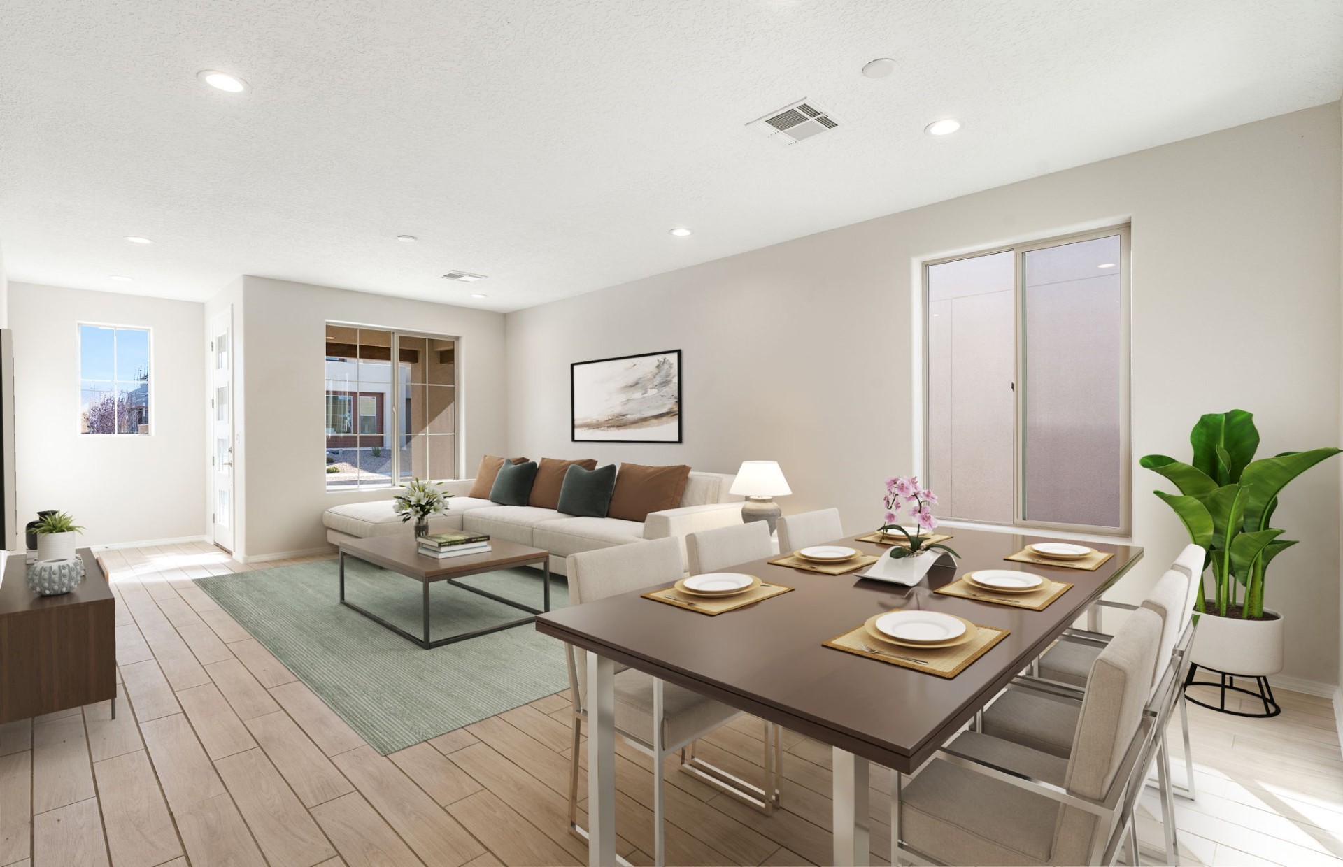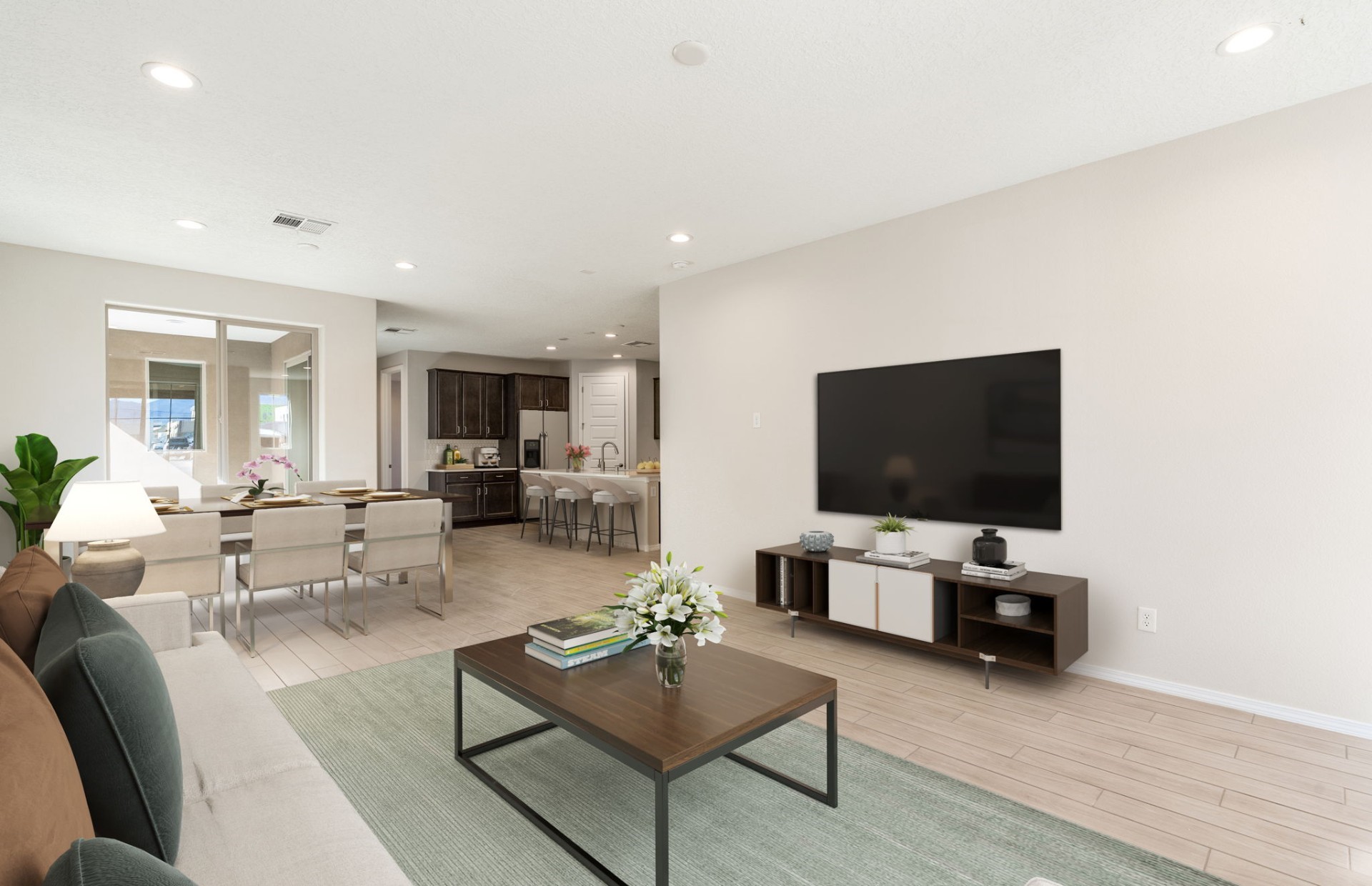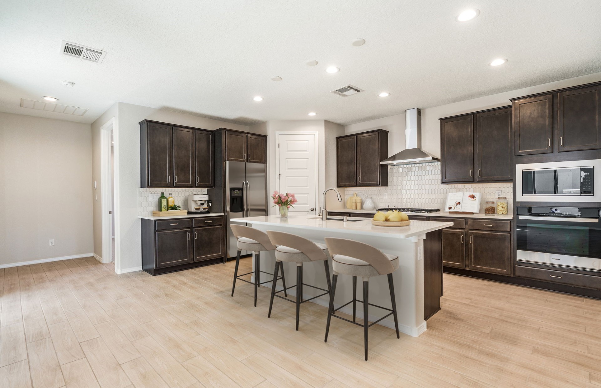 Move-in ready! This charming brand-new single-story Pulte Animas plan is located on a desirable corner homesite and designed for comfortable living with a functional layout, well-sized rooms, and easy flow throughout. Warm tan tones create an inviting atmosphere, and the private patio offers a great space to relax outdoors. The chef's kitchen features stainless steel appliances and a spacious kitchen island, perfect for cooking and entertaining. The generous owner's suite includes an owner's bath with a walk-in shower, dual vanity sinks, and a large walk-in closet. Conveniently designed for everyday comfort and modern living.