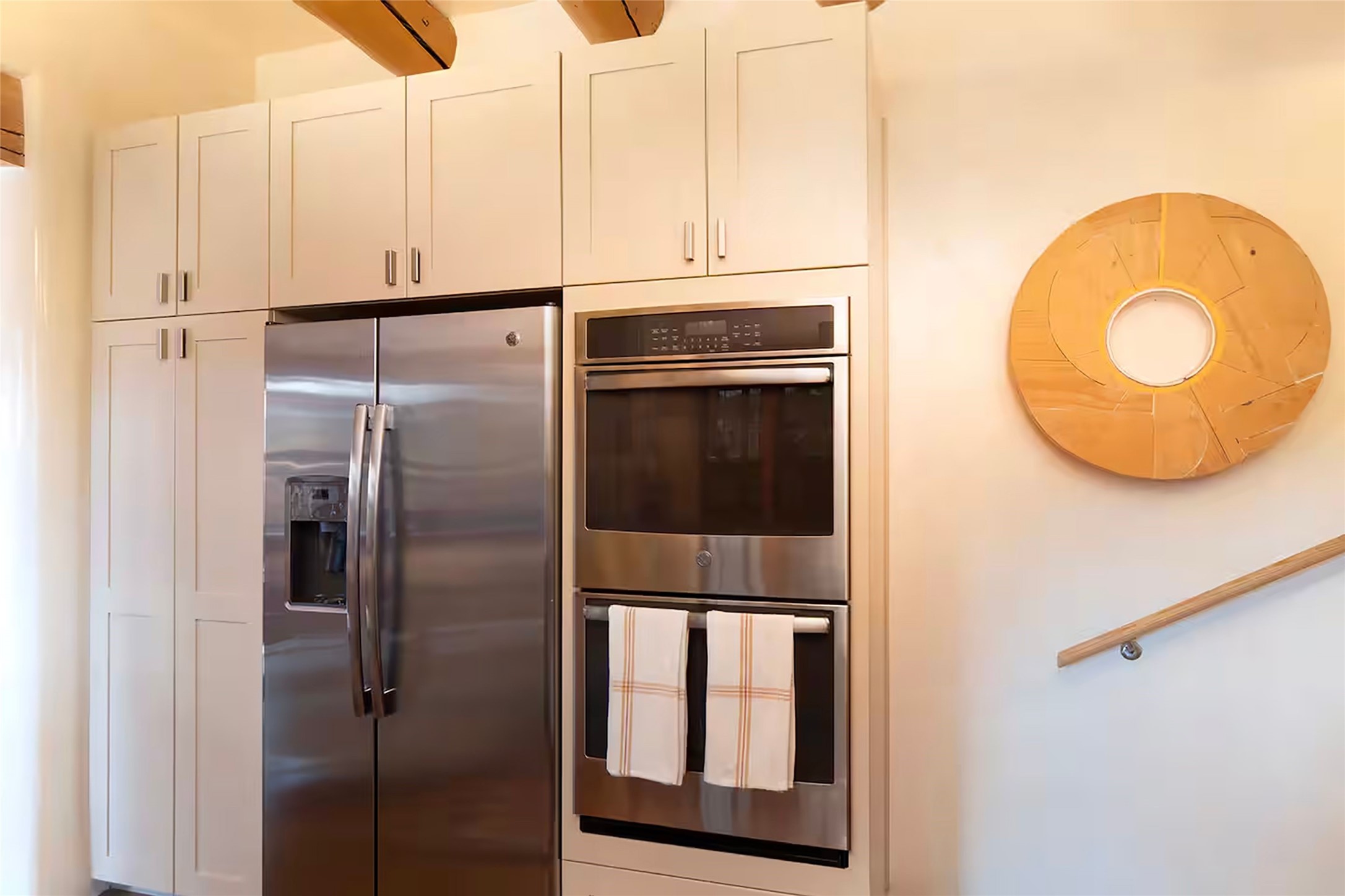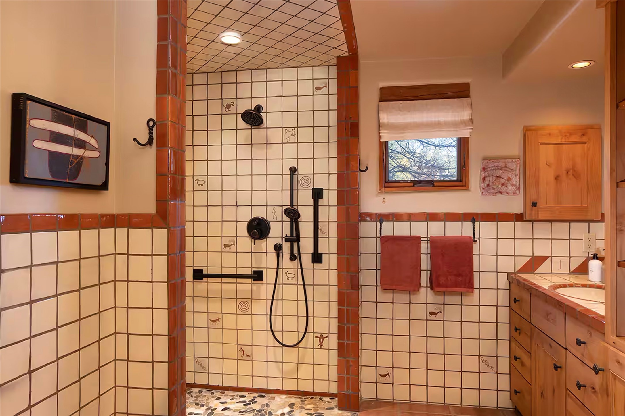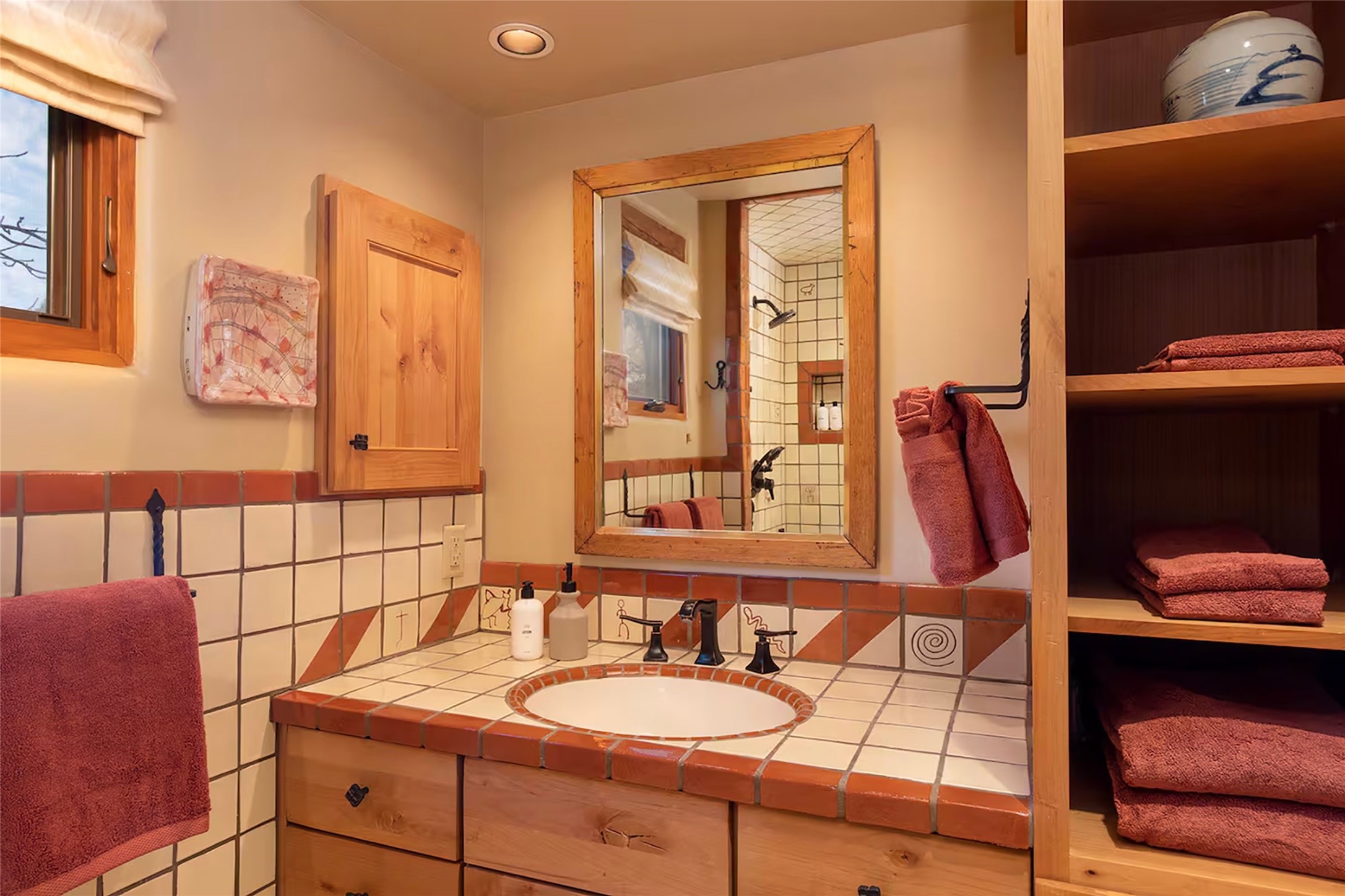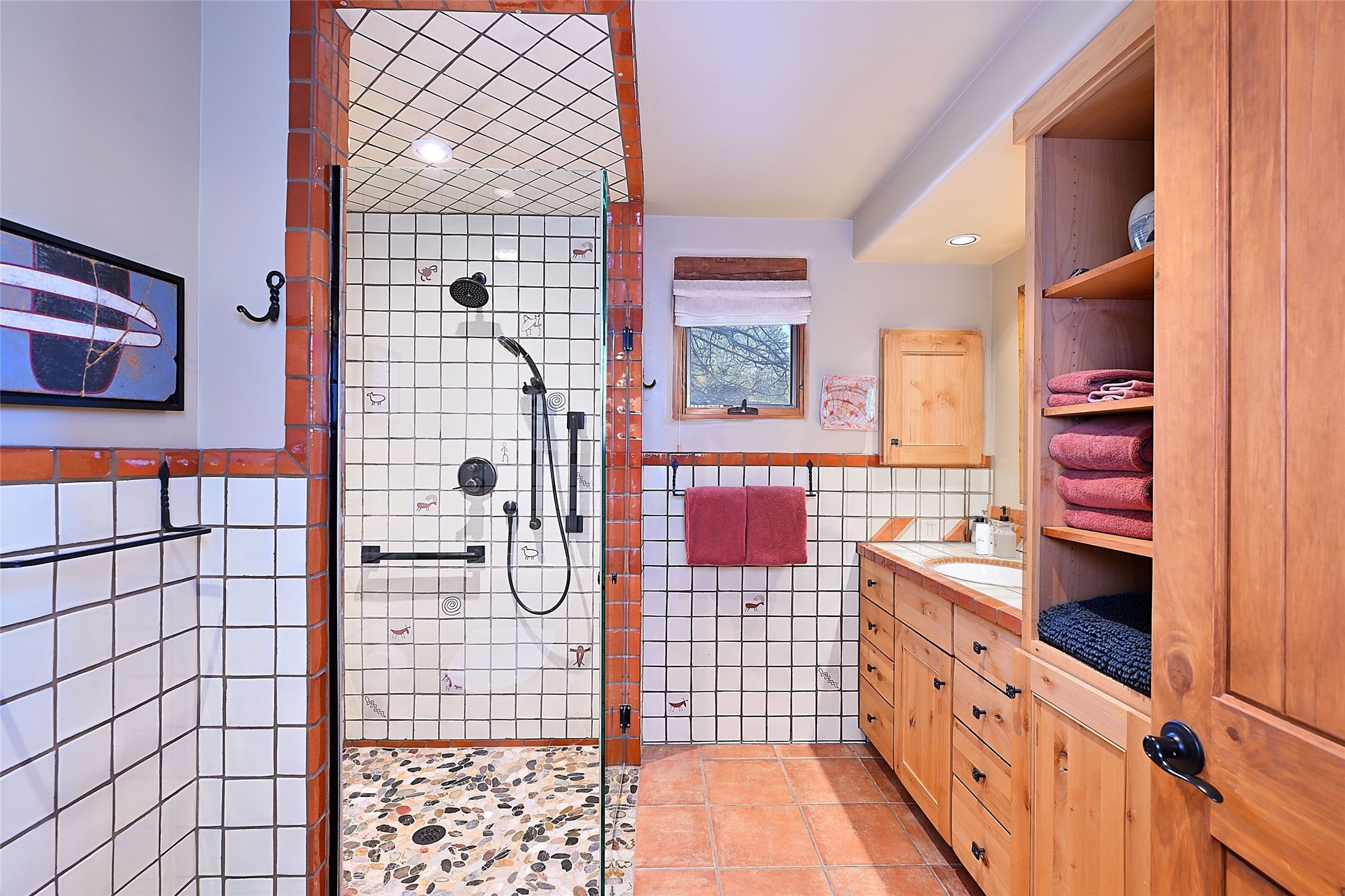 One of only two homes on a quiet cul-de-sac off an iconic winding Eastside lane, this hilltop hideaway enjoys an enviable private perch with a view of historic rooftops, mountains and foothills, and clear blue skies. The property's gated drive ascends to a spacious parking area that accompanies a three-bedroom home with a carport and an idyllic courtyard, a generous guest casita, and a versatile light-filled studio. The main residence marries stylish living, dining, and entertaining spaces with a cook's kitchen, a rare greenhouse or solarium, a main-level guest bedroom and bath, an upper-floor guest bedroom with a balcony, and an owner's suite that includes a sitting room or library with a foothills-facing balcony and a spa-inspired bath with a "wet room" tub and shower. Ceiling beams and vigas, colorful tilework, kiva fireplaces, numerous skylights and French doors, and warm earthy hues contribute to the sophisticated Southwestern ambience. The landscaped courtyard features a flagstone terrace, a portal, and a picturesque view. The separate studio will delight artists but can also serve as a workshop, fitness, or meditation space. Short- or long-term guests will appreciate the lofty bedroom and living space of the casita, which also offers a well-outfitted kitchen, a fashionable bath, and a laundry area. The coveted location is walking distance from the Plaza, Canyon Road, and other attractions and amenities of downtown and the historic Eastside.