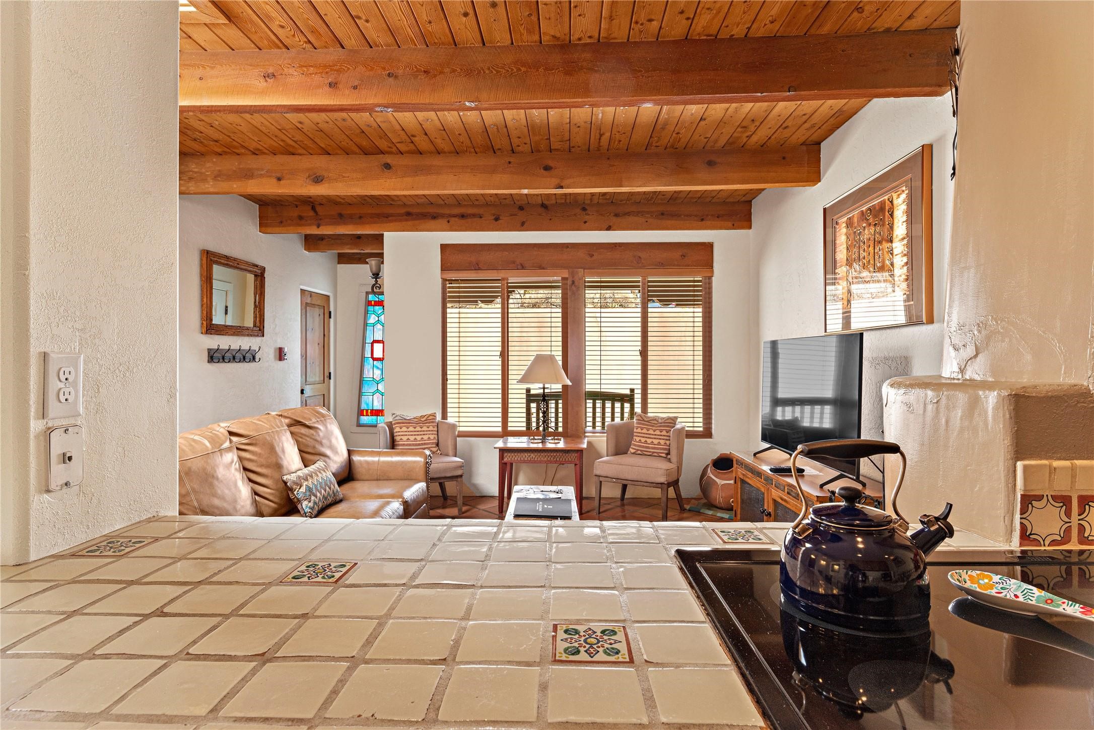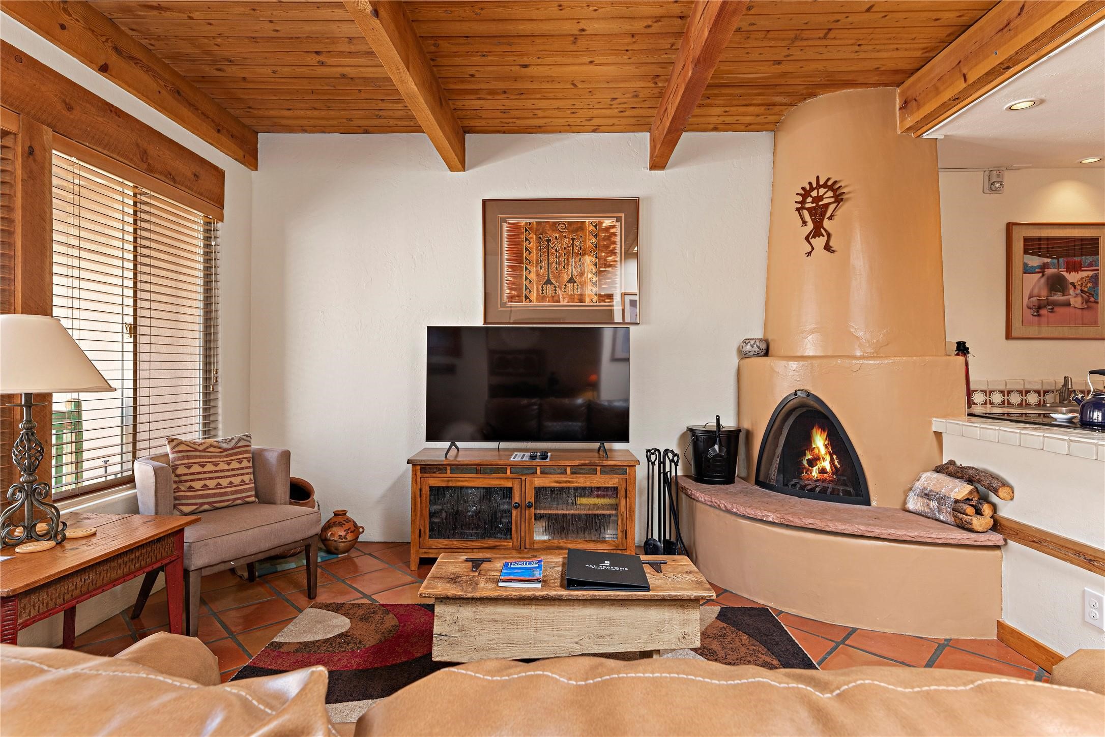 Just minutes from the Historic Santa Fe Plaza, this beautifully maintained 1 bedroom, 1 bath Fort Marcy condo offers the perfect blend of comfort, convenience, and investment potential. The residence features a soutwestern feel. Access is simple, with parking close by and just a couple steps to the front door. A cozy kiva fireplace adds authentic Santa Fe charm. This turn-key property is being sold fully furnished--including appliances, housewares, electronics, linens, and dcor--making it move-in ready for a full-time residence, part-time retreat, or short-term rental. The condo is already enrolled in the onsite, nightly rental program, and the existing VRBO and Airbnb listings and future reservations can transfer to the buyer if desired, making it an effortless investment opportunity. Recent community updates include a brand-new 20-year roof and HVAC system adding confidence for years to come. Fort Marcy amenities include an indoor pool, hot tub, clubhouse, landscaped grounds, and on-site management. HOA dues cover exterior building and roof maintenance, water/sewer/refuse, cable, internet, snow removal, and groundskeeping. This property checks all the boxes: location, convenience, updates, and income potential. Don't miss this exceptional opportunity to own one of the best units at Fort Marcy!