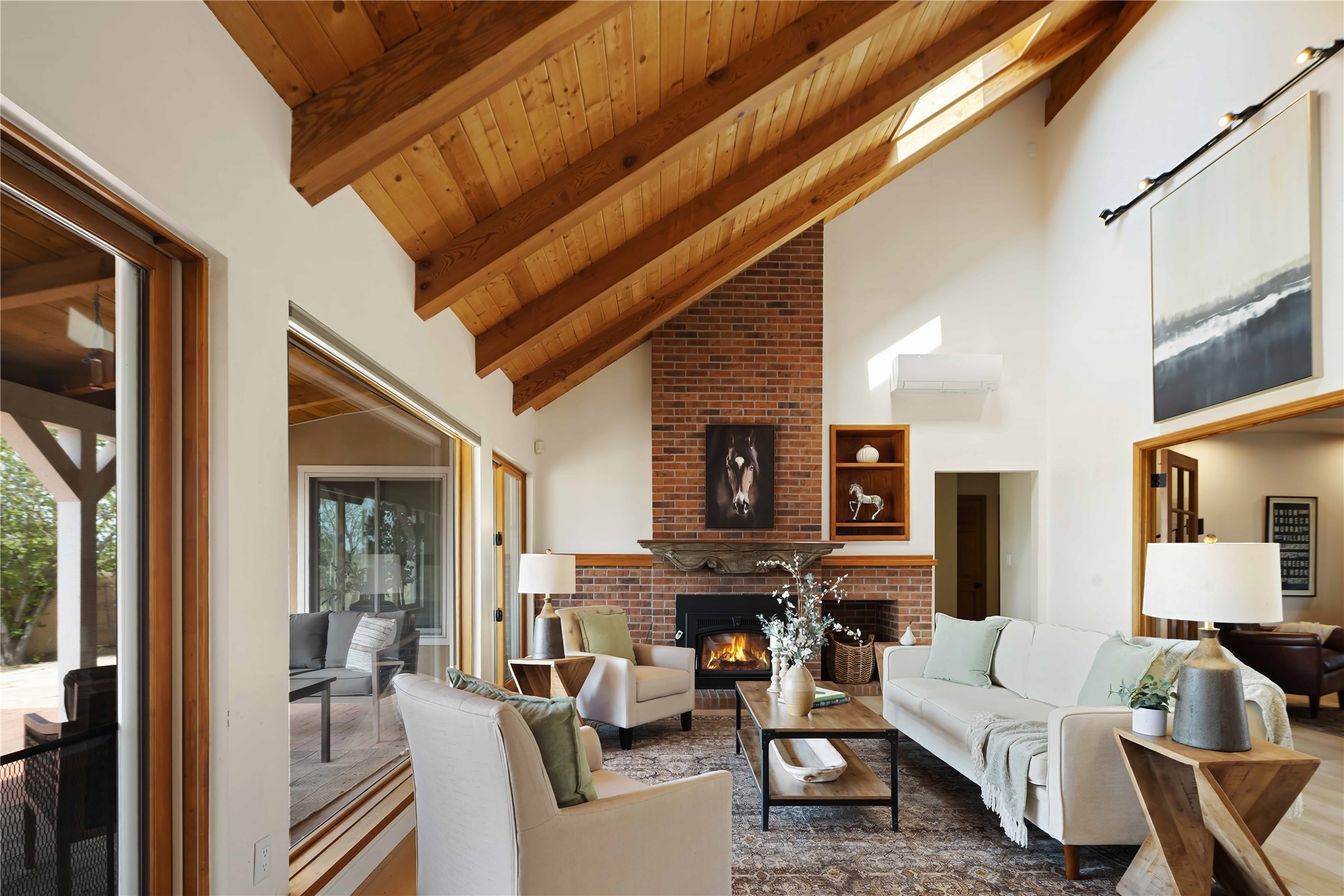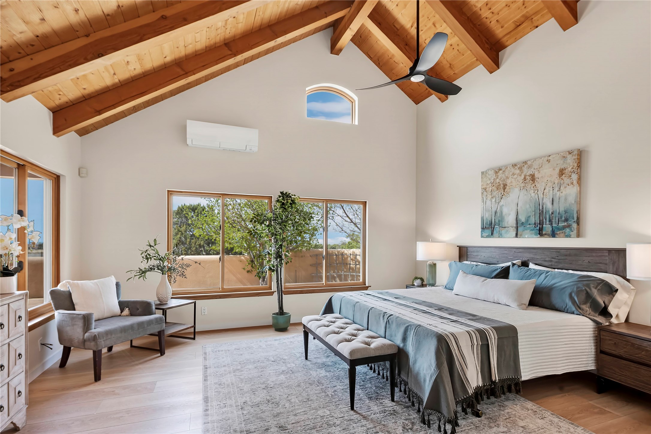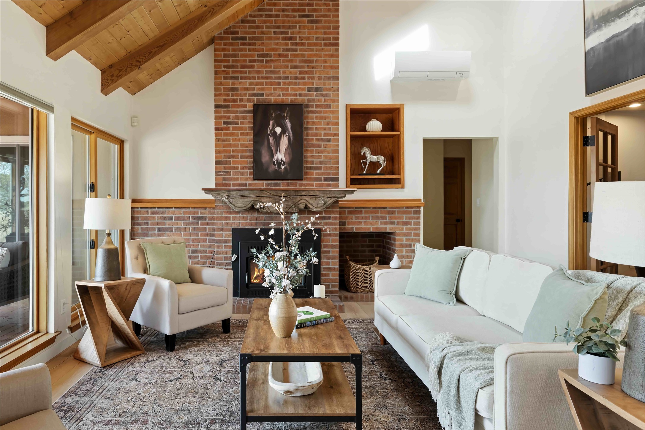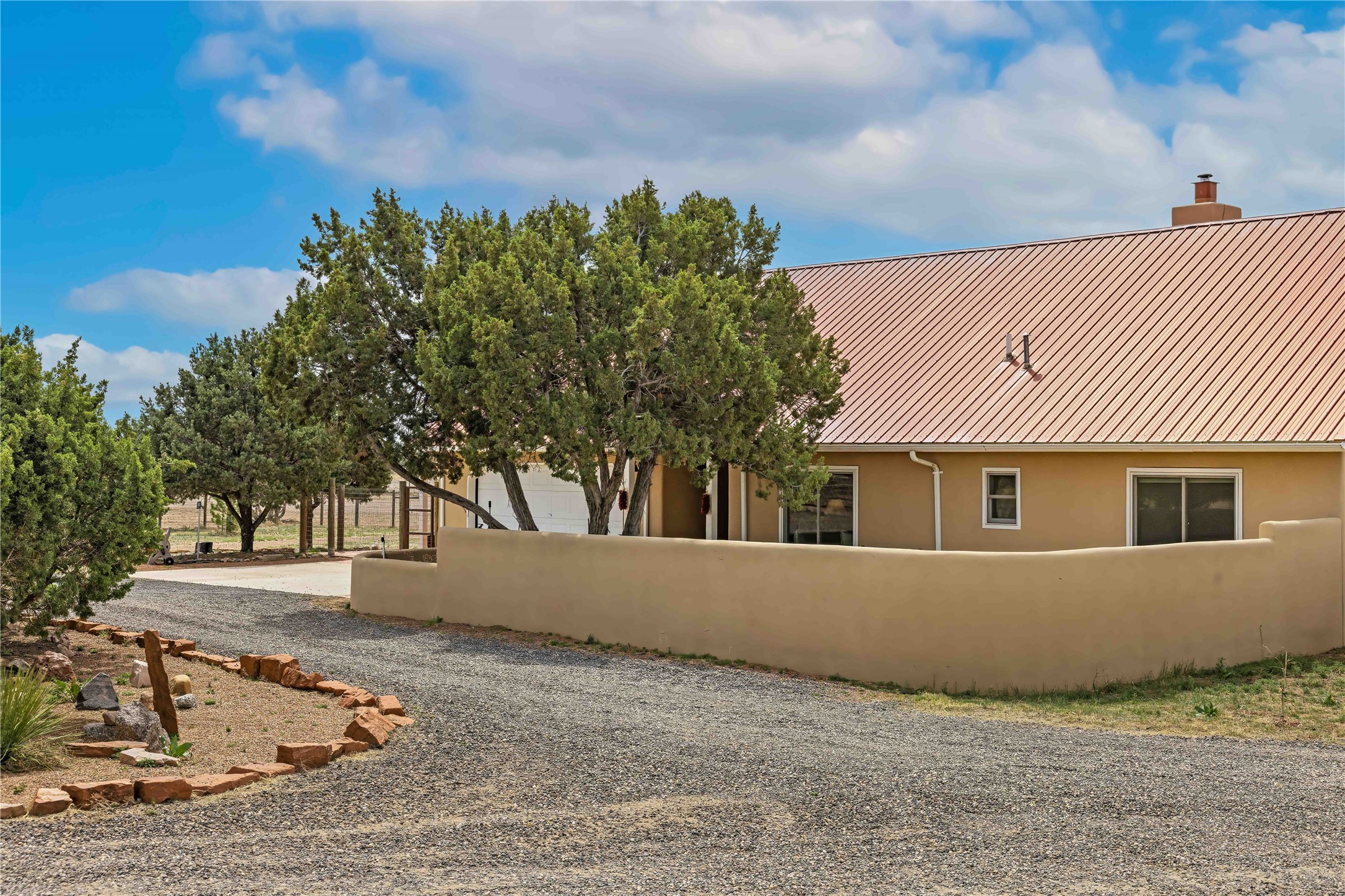 Exceptional turn-key equestrian property located in the desirable horse community, Los Caballos; 133 Jacinto is a 1,945 sq ft Northern New Mexico-style residence showcasing soaring pitched, beamed wood ceilings, sun-drenched windows, new luxury vinyl floors, and a classic brick fireplace with floor-to-ceiling glazing and sliding doors opening to a portal great for entertaining. The completely remodeled kitchen has a connected dining area making it a suitable space for everyone to gather. Both front and back patios have mountain views. The primary suite includes a large closet space, dressing area, and renovated bathroom. A second bedroom, beautiful guest bath and a flexible den/office complete the layout.The centerpiece is a 5-stall Morton barn (currently 3 oversized box stalls) with runs, attached turnouts, a tack room with 1/2 bath, hot/cold water throughout, Nelson automatic waterers, and generous grooming and storage space. A separate 2-stall barn adds its own tack room/ hay shed, and overhang. Three front paddocks with shade structures offer additional flexibility. Two arenas set this property apart: a 100200 ft main arena -- extended, laser leveled, drained, and finished with a 3" base and 2" sand layer and a 90150 ft front arena with specialized ReitenRight performance footing. A riding trail encircles the property, with access to additional trails throughout the community. Solar panels and a 10,000 gallon rainwater catchment system with drip irrigation enhance the property's sustainability and keep utility costs impressively low.Make an appointment to see this spectacular property today.