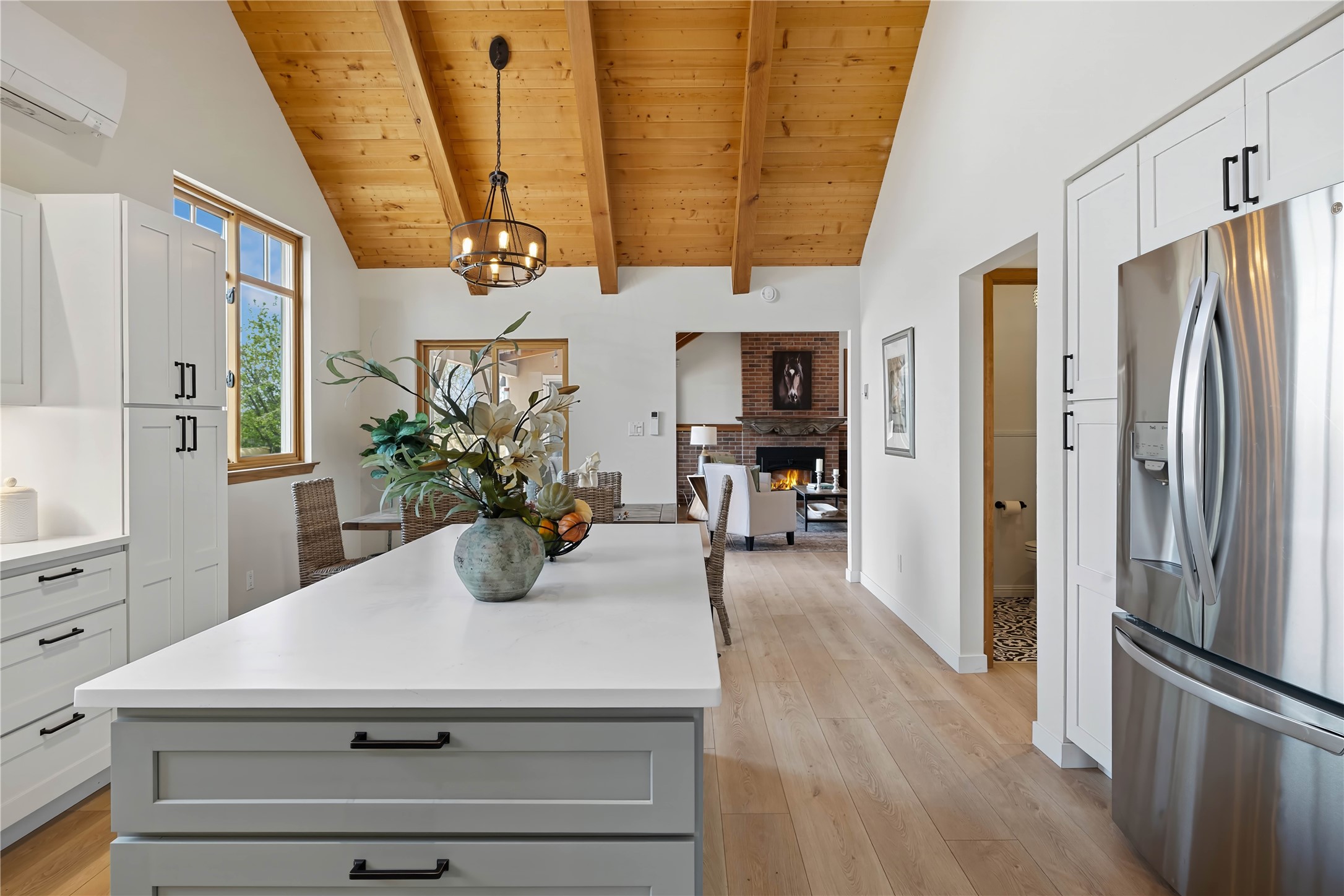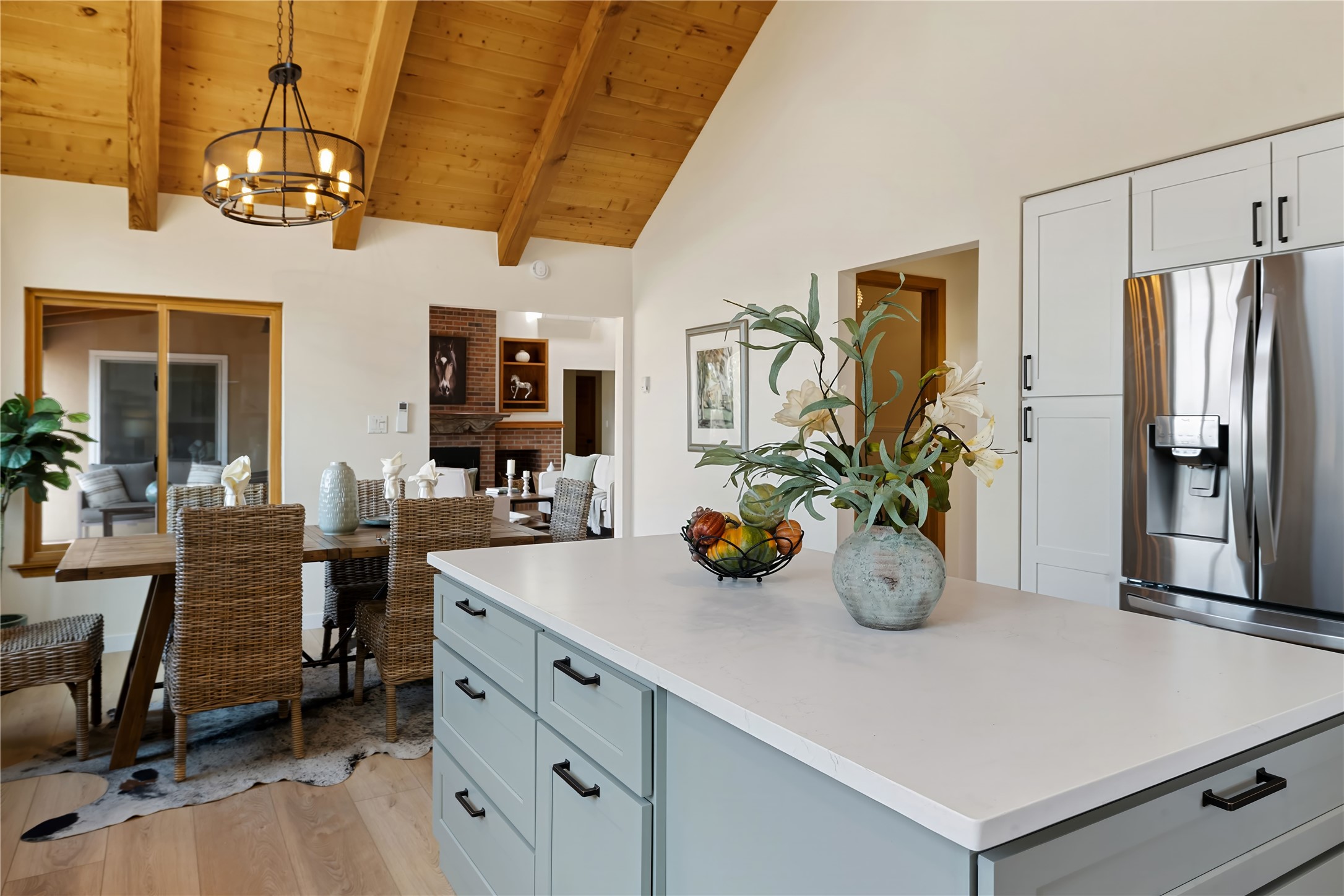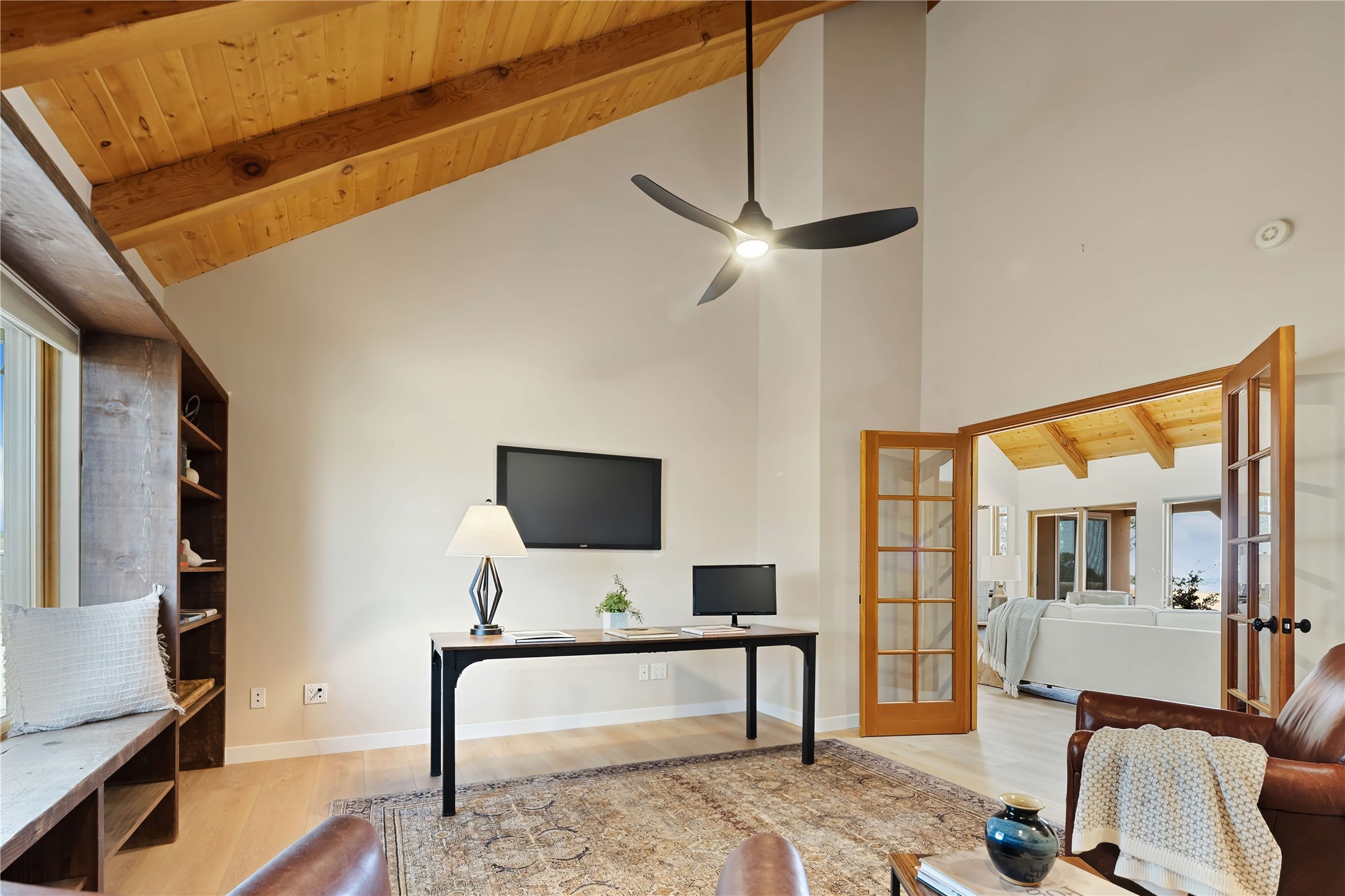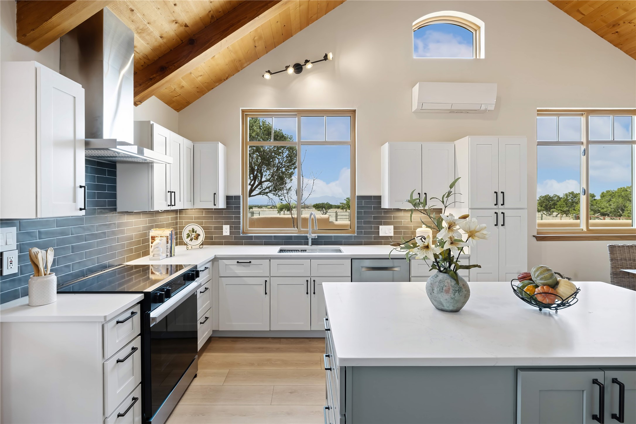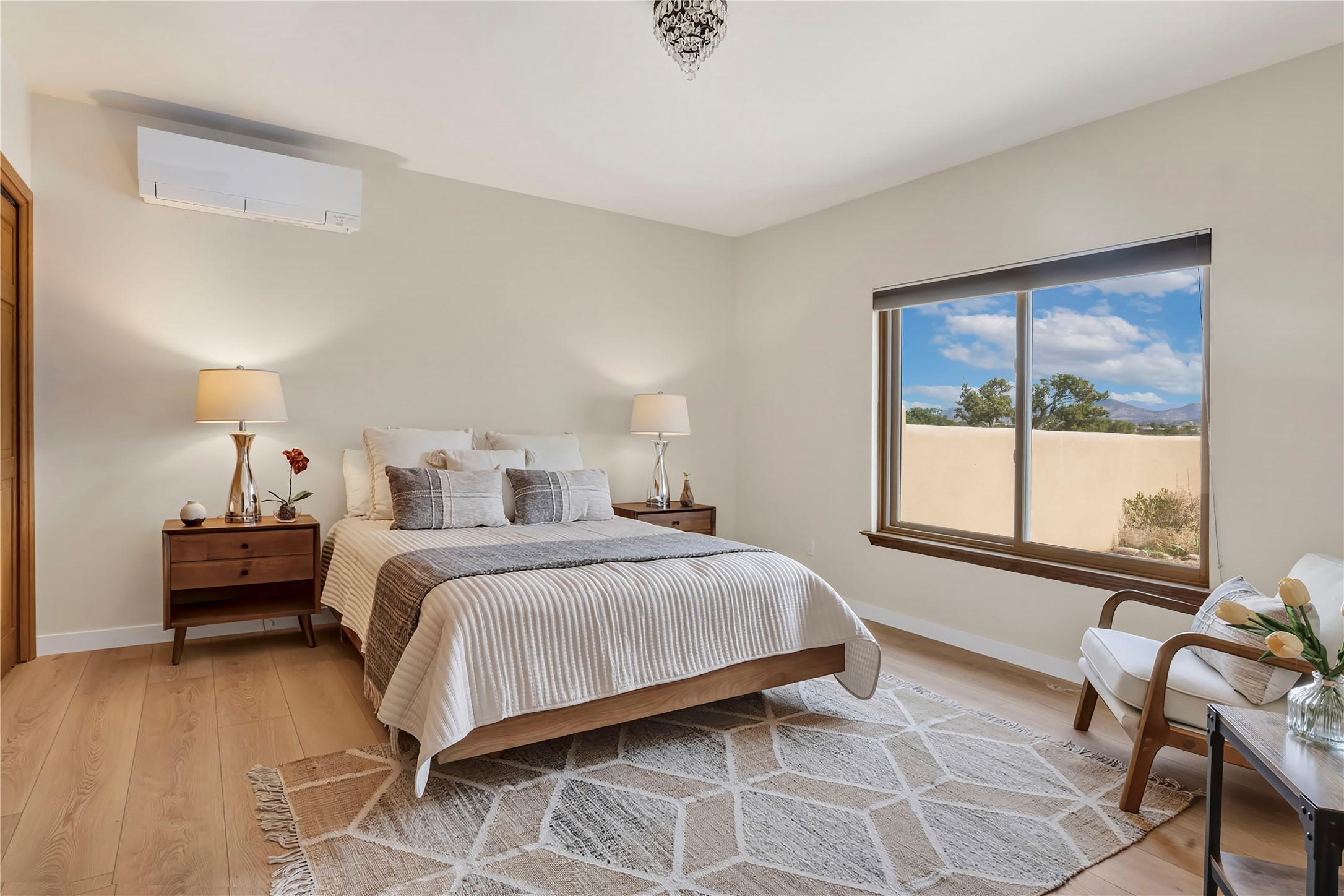 Exceptional turn-key equestrian property located in the desirable horse community, Los Caballos; 133 Jacinto is a 1,945 sq ft Northern New Mexico-style residence showcasing soaring pitched, beamed wood ceilings, sun-drenched windows, new luxury vinyl floors, and a classic brick fireplace with floor-to-ceiling glazing and sliding doors opening to a portal great for entertaining. The completely remodeled kitchen has a connected dining area making it a suitable space for everyone to gather. Both front and back patios have mountain views. The primary suite includes a large closet space, dressing area, and renovated bathroom. A second bedroom, beautiful guest bath and a flexible den/office complete the layout.The centerpiece is a 5-stall Morton barn (currently 3 oversized box stalls) with runs, attached turnouts, a tack room with 1/2 bath, hot/cold water throughout, Nelson automatic waterers, and generous grooming and storage space. A separate 2-stall barn adds its own tack room/ hay shed, and overhang. Three front paddocks with shade structures offer additional flexibility. Two arenas set this property apart: a 100200 ft main arena -- extended, laser leveled, drained, and finished with a 3" base and 2" sand layer and a 90150 ft front arena with specialized ReitenRight performance footing. A riding trail encircles the property, with access to additional trails throughout the community. Solar panels and a 10,000 gallon rainwater catchment system with drip irrigation enhance the property's sustainability and keep utility costs impressively low.Make an appointment to see this spectacular property today.