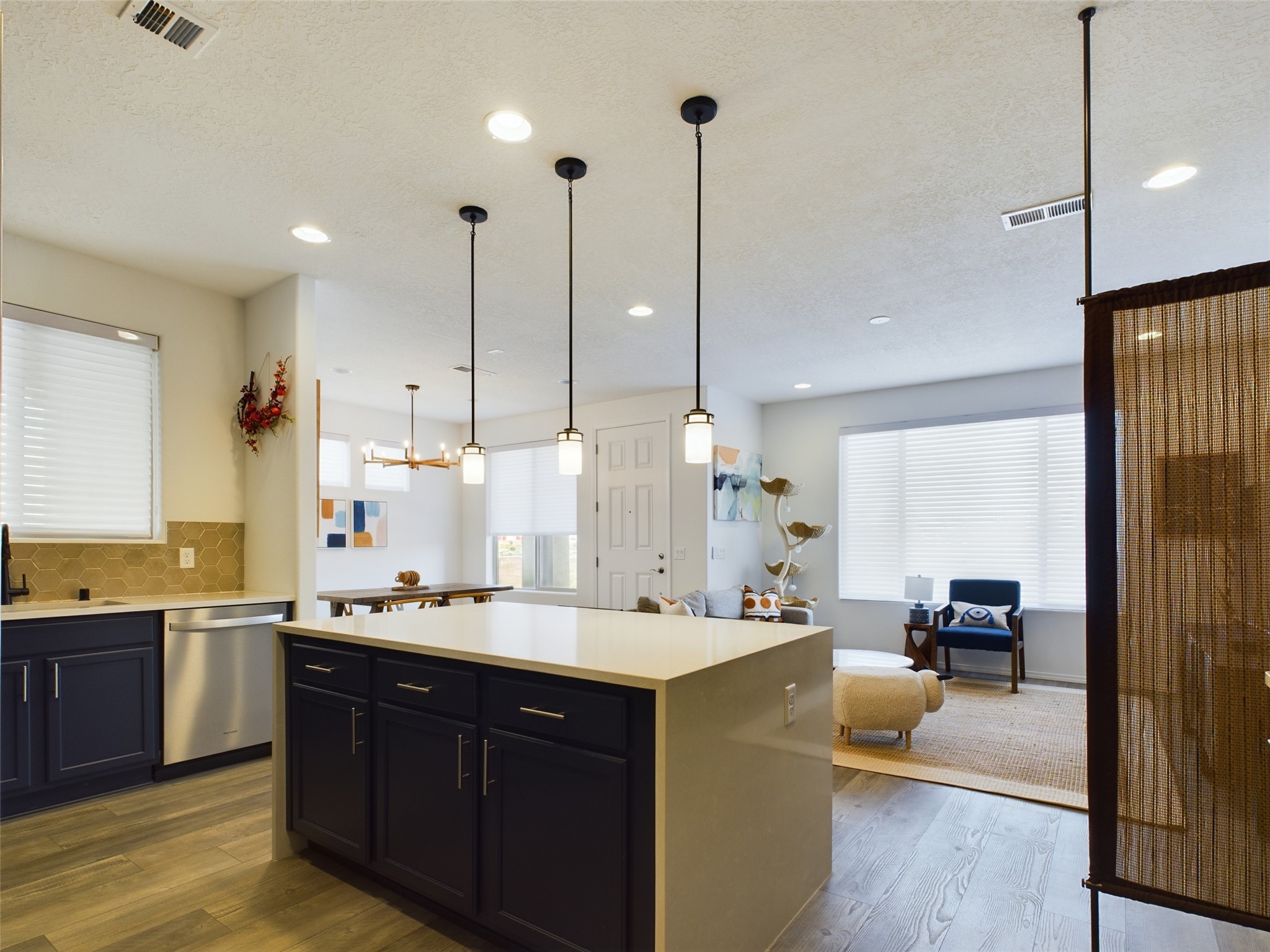 Discover comfort and style in this spacious two-story Pulte-built townhome featuring 4 bedrooms and 3.5 bathrooms, thoughtfully designed for modern living. The main-level primary suite offers privacy and convenience, complete with an en-suite bathroom and direct access to a charming courtyard just off the dining area.The open-concept layout seamlessly connects the living and dining spaces to a beautifully appointed kitchen--perfect for both everyday living and entertaining. A convenient half bath on the main level adds functionality for guests.Upstairs, you'll find additional bedrooms along with a versatile second living area, a private en-suite bedroom, and access to a balcony view deck--ideal for relaxing and enjoying Santa Fe's scenery.Additional highlights include an attached 2-car garage, high-efficiency forced air heating and air conditioning, and access to a well-maintained HOA community featuring a neighborhood park and several walking trails.This home offers the perfect blend of space, comfort, and convenience--don't miss it!