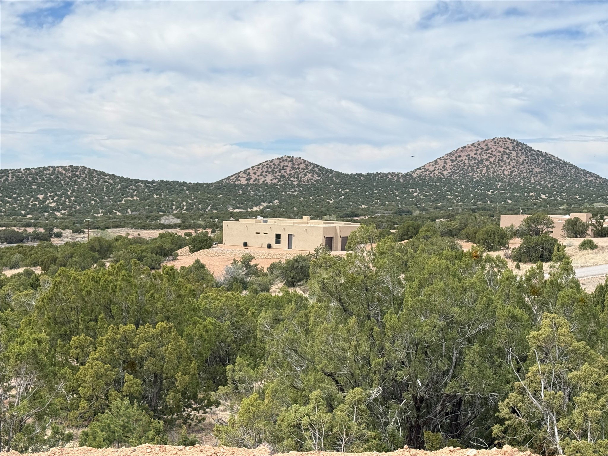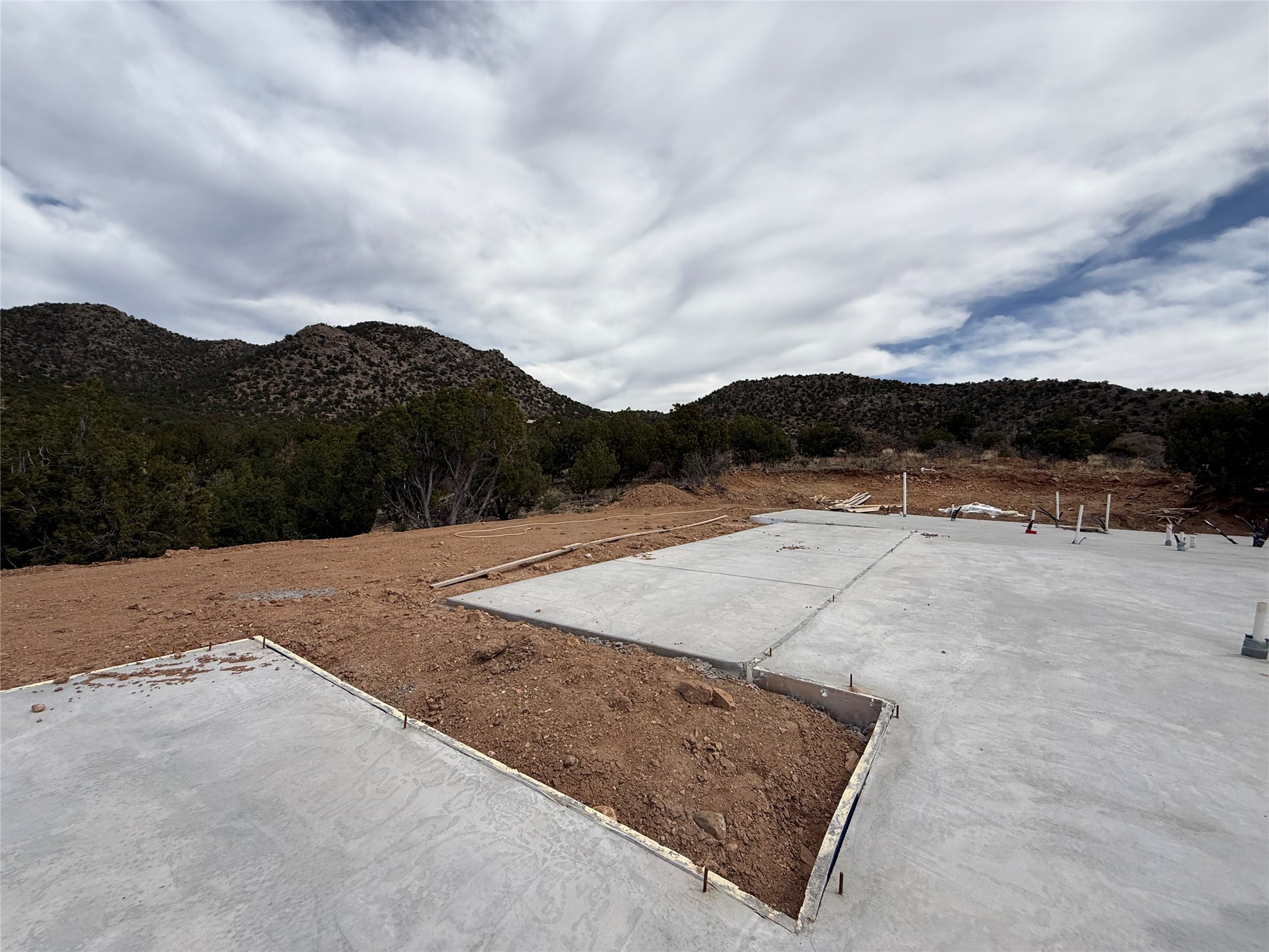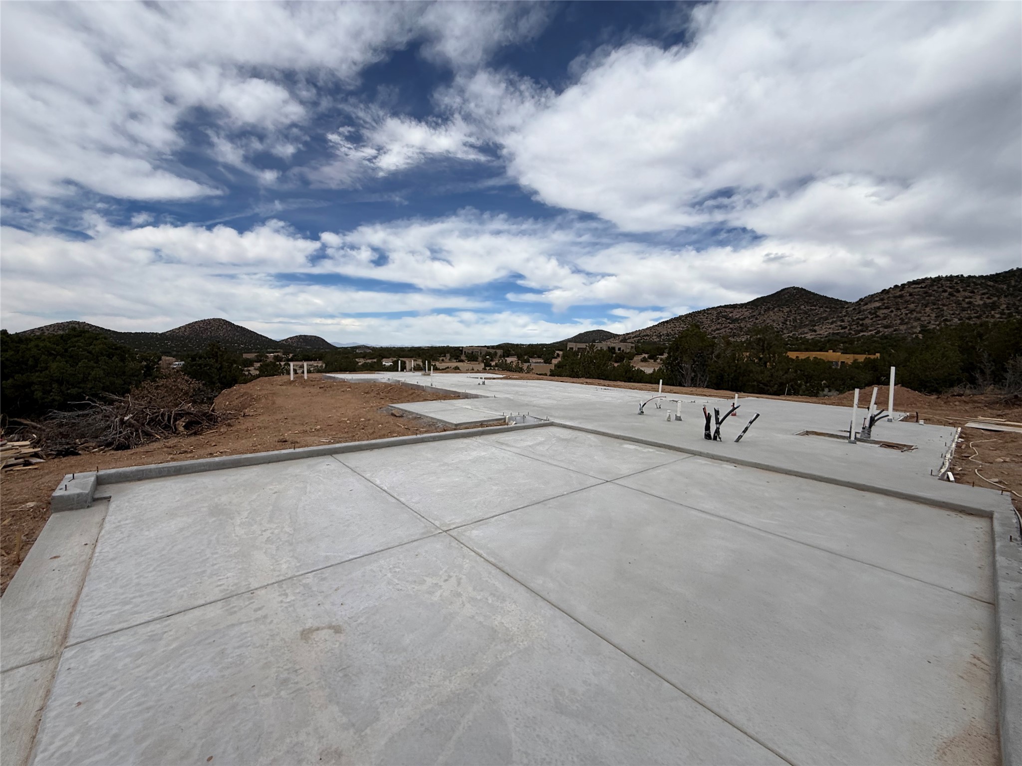 This lot has been fully prepped with all the site work, slab is poured with plumbing, water, and permit. Ready for you to finish building. In gated Longview at Santa Fe Subdivision with stunning panoramic views of the Sandias, the Galisteo Basin and the valley beyond. This fantastic 2.5 acre tract is part of an exclusive gated subdivision known as Longview at Santa Fe.. Conveniently located near some of our most cherished local eating establishments (Harry's Road House, Cafe Fina) and just a short drive to the Agora Shopping Center. BIG VIEWS - PRIVACY - SECURITY. Ready for you to finish building your dream home.