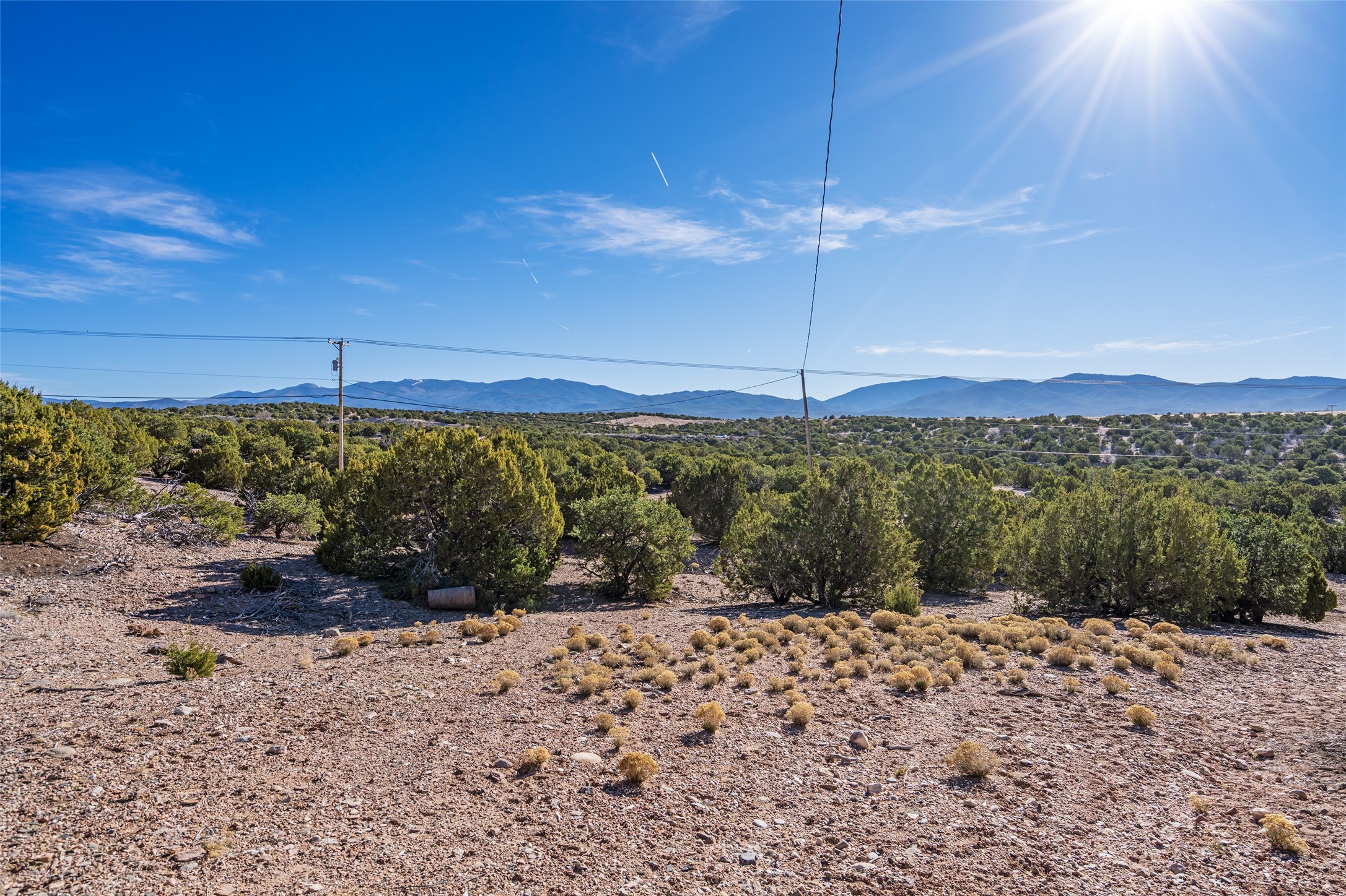 Set on 2.3 acres, this charming 1-bedroom, 1-bathroom home offers privacy, space, and sweeping views. With 1,294 square feet, the property features an open living and dining area with a wood-burning fireplace, creating a warm gathering space. The spacious primary bedroom includes soaring ceilings, wood flooring, a large walk-in closet, and radiant heat for added comfort. Just off the bedroom, a sunroom provides a bright and relaxing space to take in the surrounding landscape, with gorgeous views of the Sangre de Cristo Mountains and Sandia Mountains. The property is being sold with a separately deeded, adjacent lot, offering the opportunity to build, ideal for future development, investment potential, or added privacy. A unique opportunity for those seeking a serene setting with room to expand or personalize. The home is currently occupied-- do not enter or drive onto the property without a confirmed appointment.