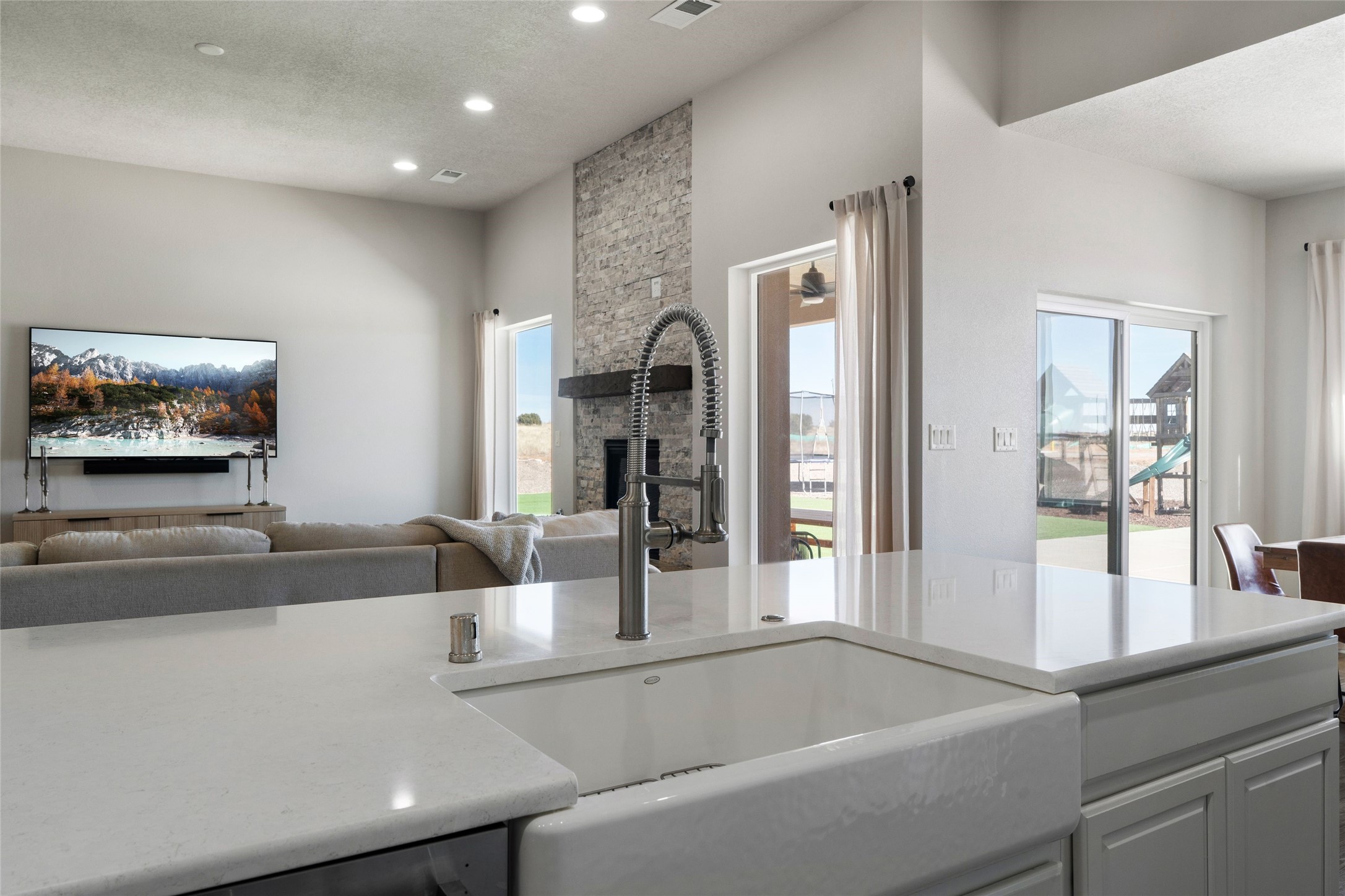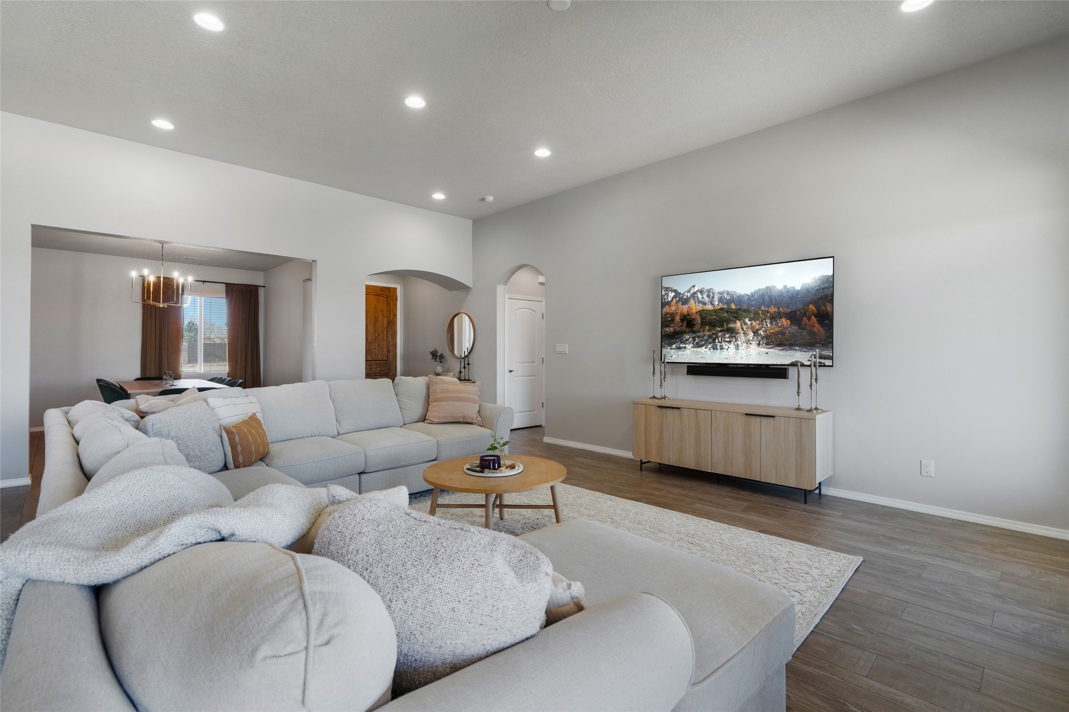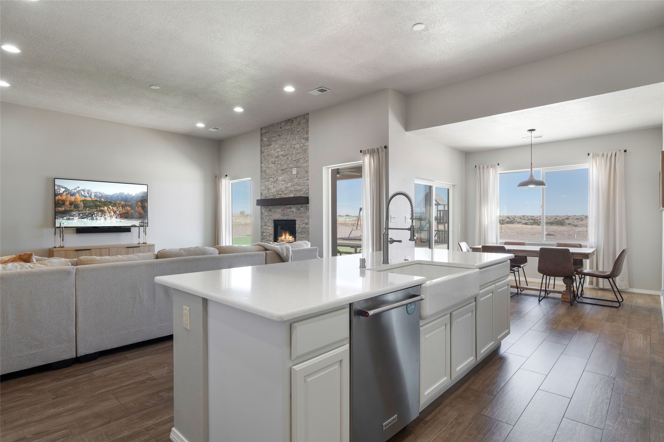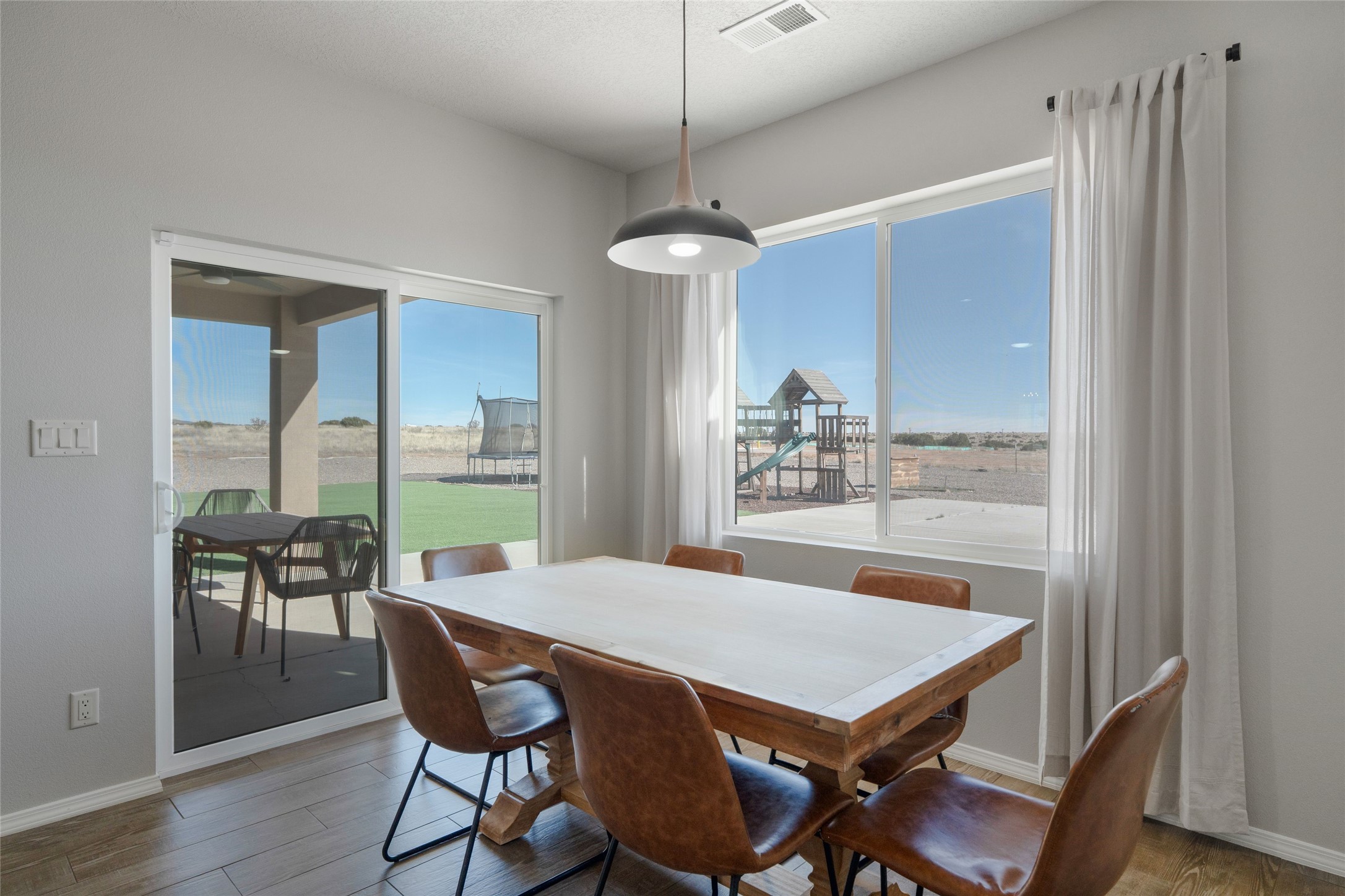 A true entertainer's delight, aesthetically stunning, in a gated community, Valle Serena, built in 2017. This single level home with a pro-panel roof has it all....VIEWS, 1.3 acre lot to spread out, light and bright with high ceilings, 3 bedrooms, including a spacious primary suite with an additional oversized entertaining/studio/ office space (multi purpose room), 3 baths, 3 designated eating areas: Separate Dining Room, Breakfast Nook and Kitchen Island. The meticulously designed home offers the perfect balance of comfort, luxury & livability. CHEF'S KITCHEN is a culinary haven outfitted with premier appliances, custom cabinetry, large island with seating and a generous walk in pantry. The entertainment room has a service bar and is wired for a projection screen. This open concept home shows pride of ownership and has been very well maintained. The attached finished 3 car garage offers 2 oversized spaces as well as additional storage/work space. This home is great for Los Alamos commuters, it's minutes from Hwy 599. There are several Los Alamos commuters in the subdivision! The road to the subdivision, Avenida Del Sur is scheduled to be paved. Quiet and private setting. Move-in ready and waiting for you and your family.