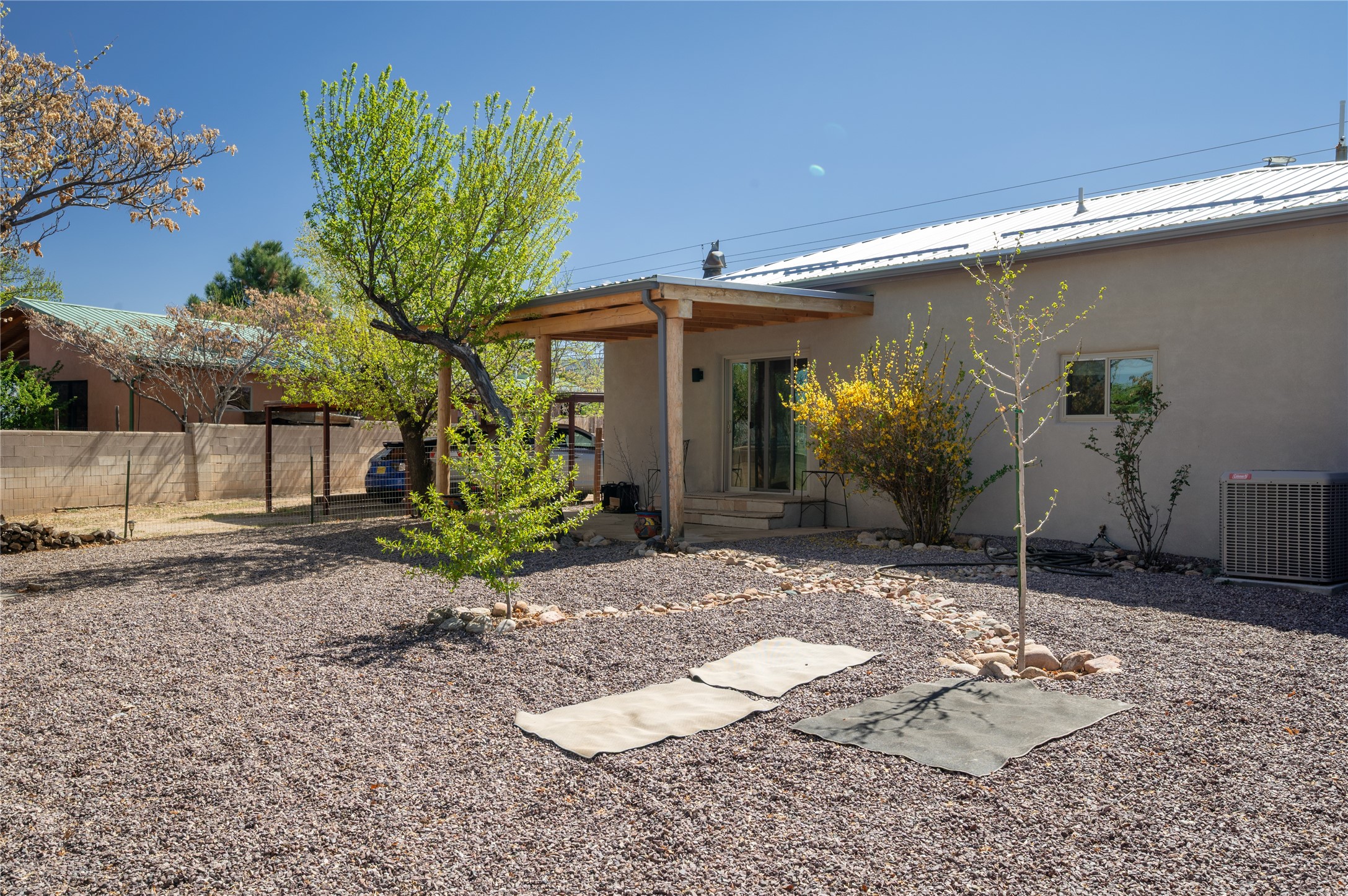Remodeled with love and options. Single home, second home, duplex, multi generational easily done by opening/closing one interior door. Everything was completely updated 2023 including electric, plumbing, roof, stucco, windows, doors, insulation, 2 new fully equipped kitchens, baths, finishes and landscaping. The lot is large enough for adding a guest house or studio. Other features include privacy walls, abundant parking, edible landscaping like fruit and nut trees, storage, and a partial basement. There is a very good rental history as a furnished duplex. Furniture and amenities are included for a turnkey property. This location is ideal for walking and biking with near by parks, the Santa Fe River trail, restaurants and shops near by and .9 of a mile walk to the railyard for Farmers Market, restaurants, or the movies. Other businesses are within a couple blocks.