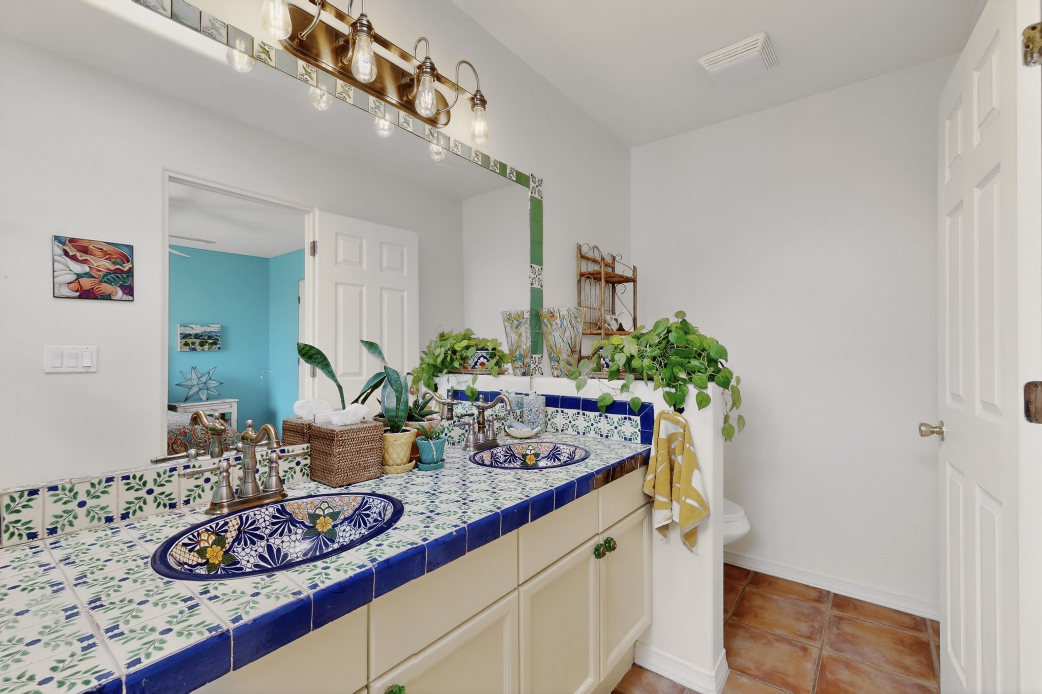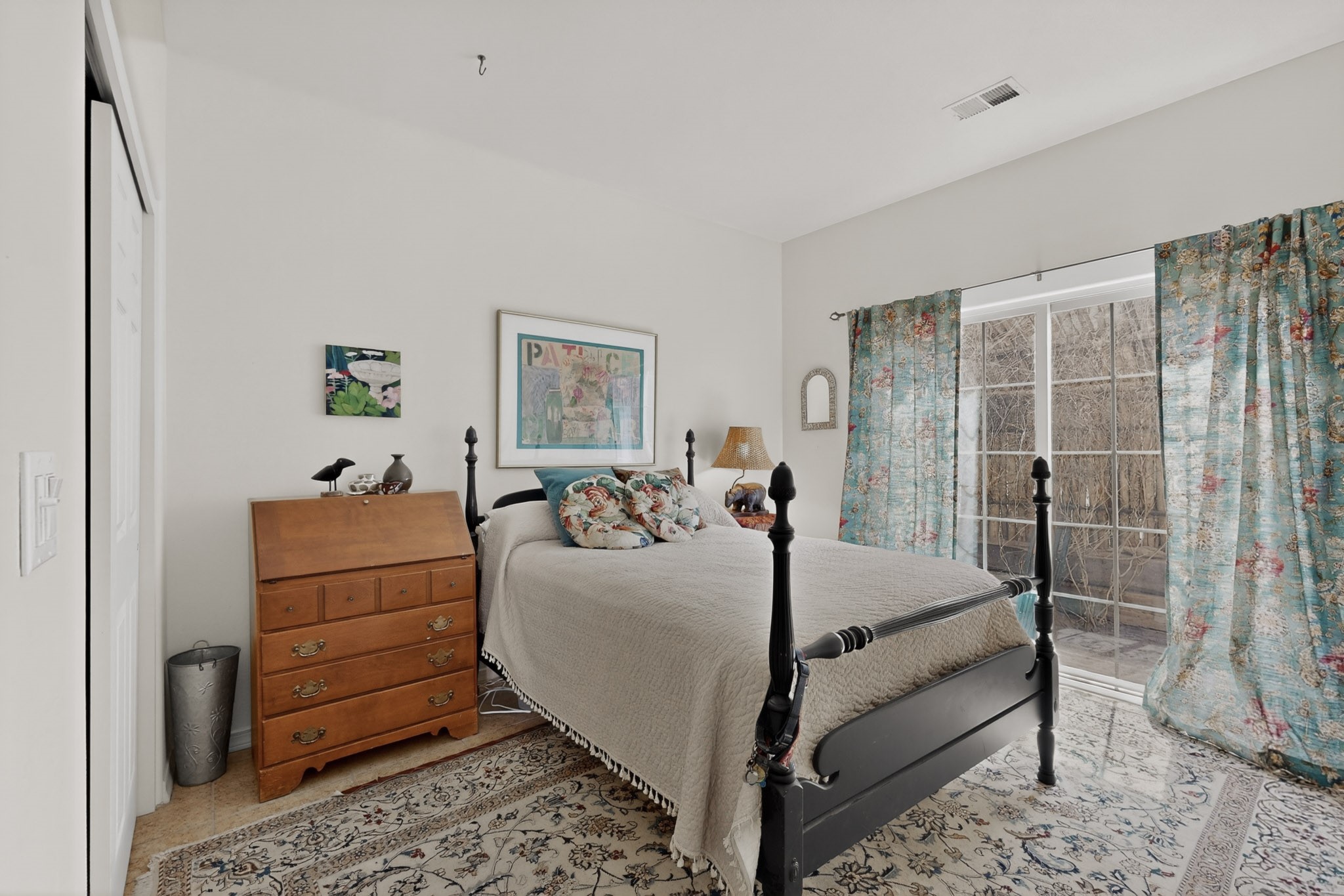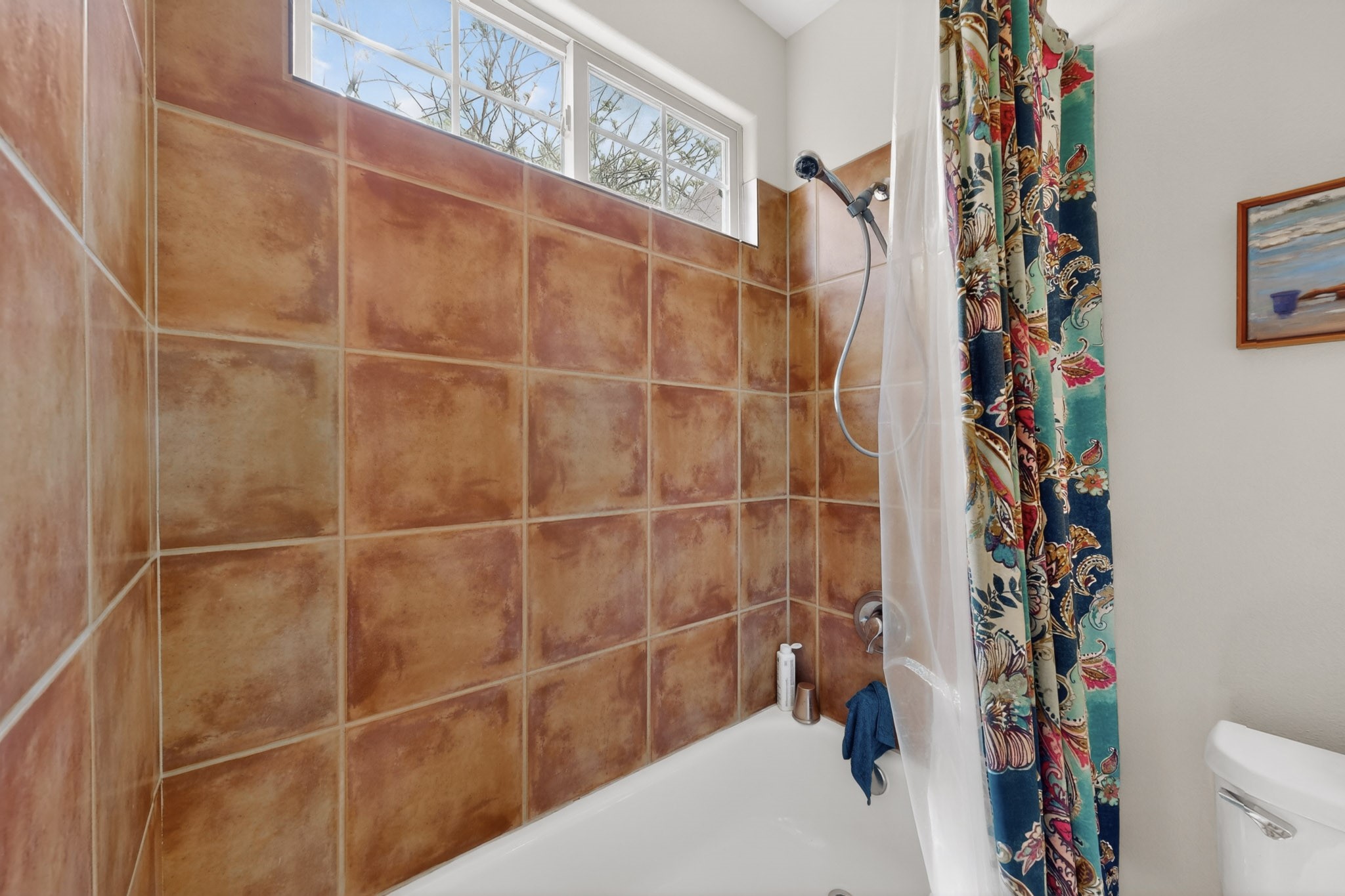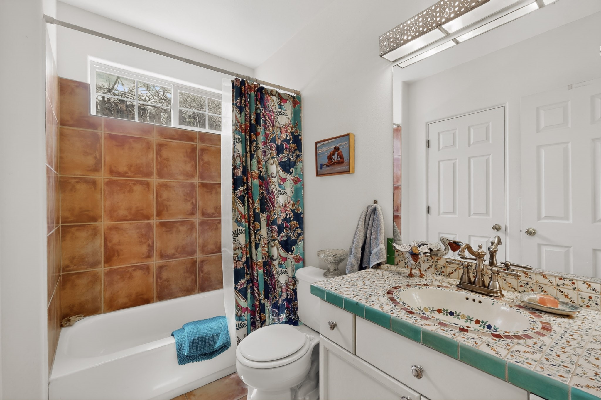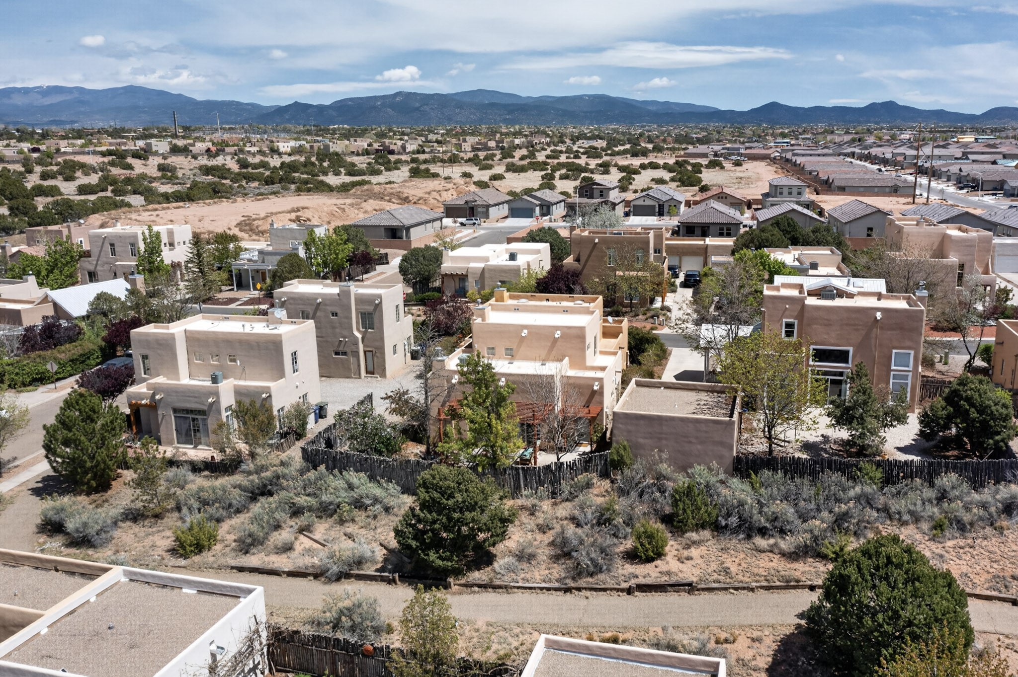 Pride of ownership throughout this absolutely charming Santa Fe home offering privacy as it backs to the walking trail & some open space--one of the cutest you'll ever see. With approximately 1300 +/- sqft, this thoughtfully designed residence offers 2 bedrooms (one upstairs & one downstairs) plus an additional upstairs flex loft space--ideal as a studio, office, playroom, or workout room--with direct access to a private balcony with views. With 2 full bathrooms, a finished 1-car garage with extra storage space, and additional onsite parking, this home blends comfort, convenience, and character. Each of the two bedrooms functions as a primary suite, complete with its own ensuite bath (one featuring double vanities). One suite is located upstairs and the other downstairs, offering privacy and flexibility for a variety of living arrangements. The inviting living room features high ceiling with vigas, tile floors, and a wood-burning fireplace, creating a warm and welcoming atmosphere. Doors open to the private, fenced and beautifully landscaped backyard with two pergolas --perfect for peaceful mornings or glowing Santa Fe sunsets. The kitchen continues the Santa Fe aesthetic with vigas and charming tile countertops, offering a delightful space for cooking. Features and amenities include: Forced air heat with central refrigerated A/C-Stackable washer and dryer-TPO roof-New smoke/carbon monoxide detectors, +/- 4-year-old refrigerator, Tile and laminate flooring, Carpet only on the stairs & more. Residents enjoy access to a clubhouse, workout room, hot tub, pool and a trail system connecting to the Arroyo Chamiso Trail--ideal for outdoor enthusiasts. Despite the peaceful setting, you're just minutes from hospitals, restaurants, shopping, and schools.