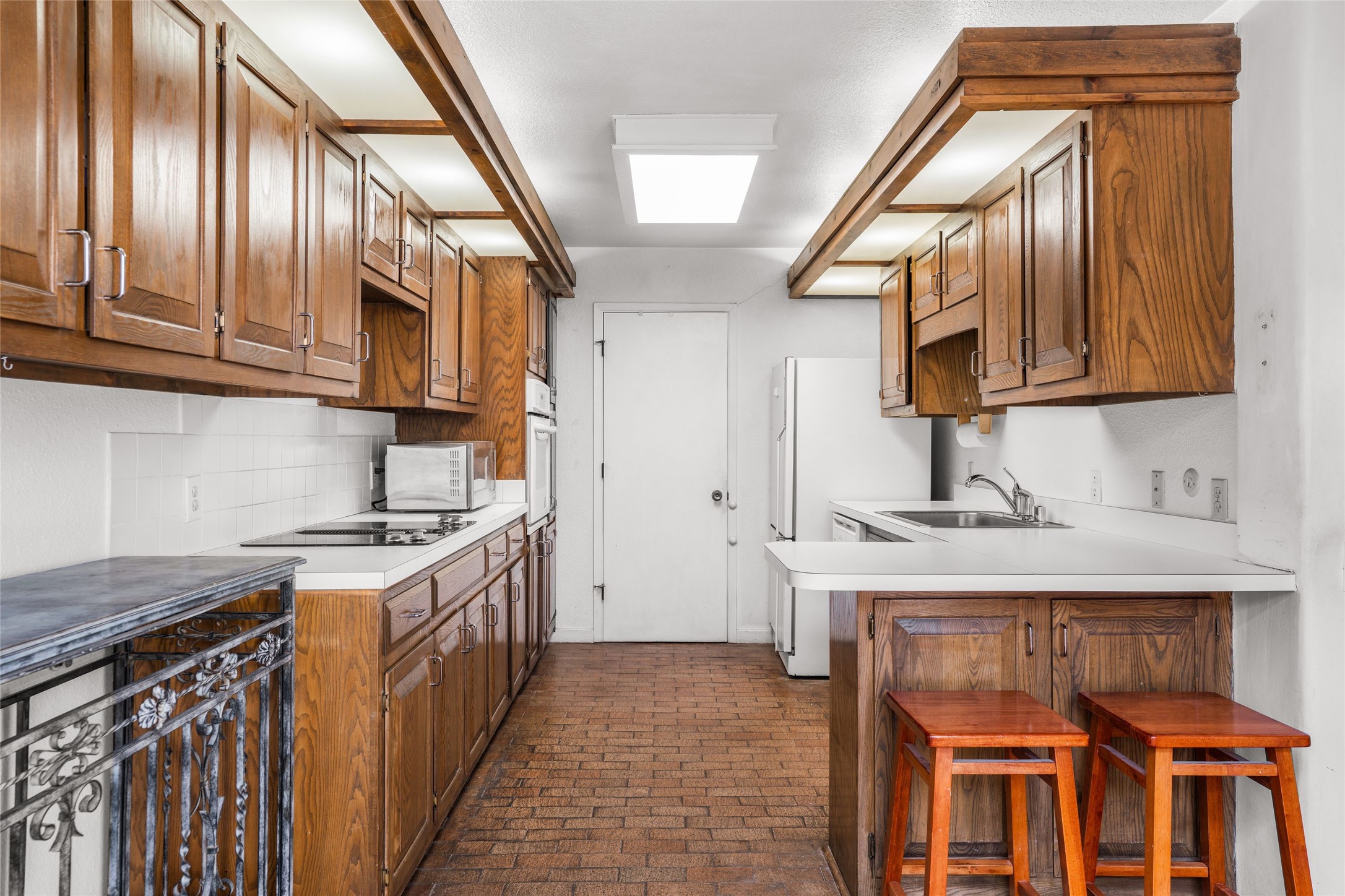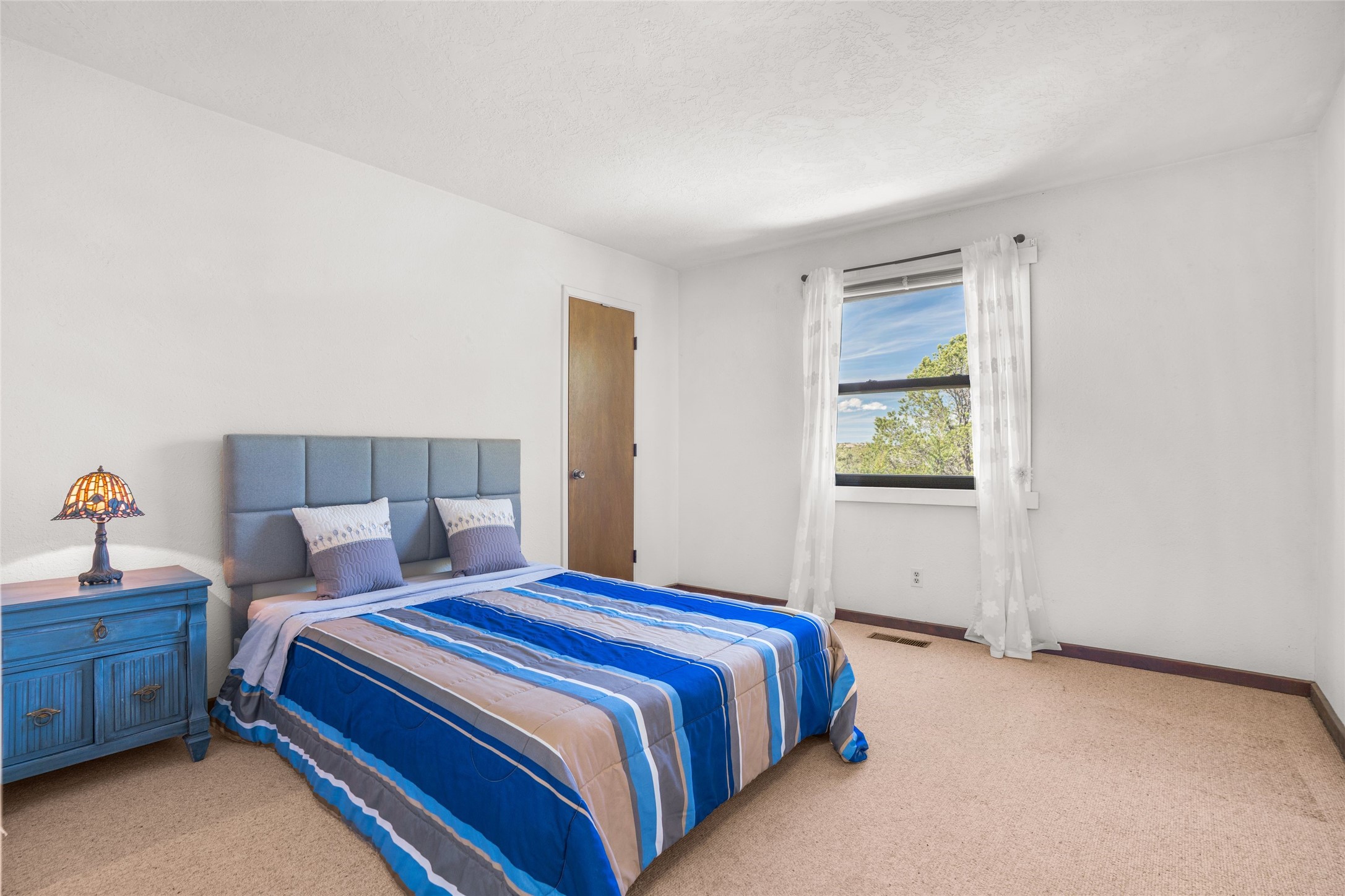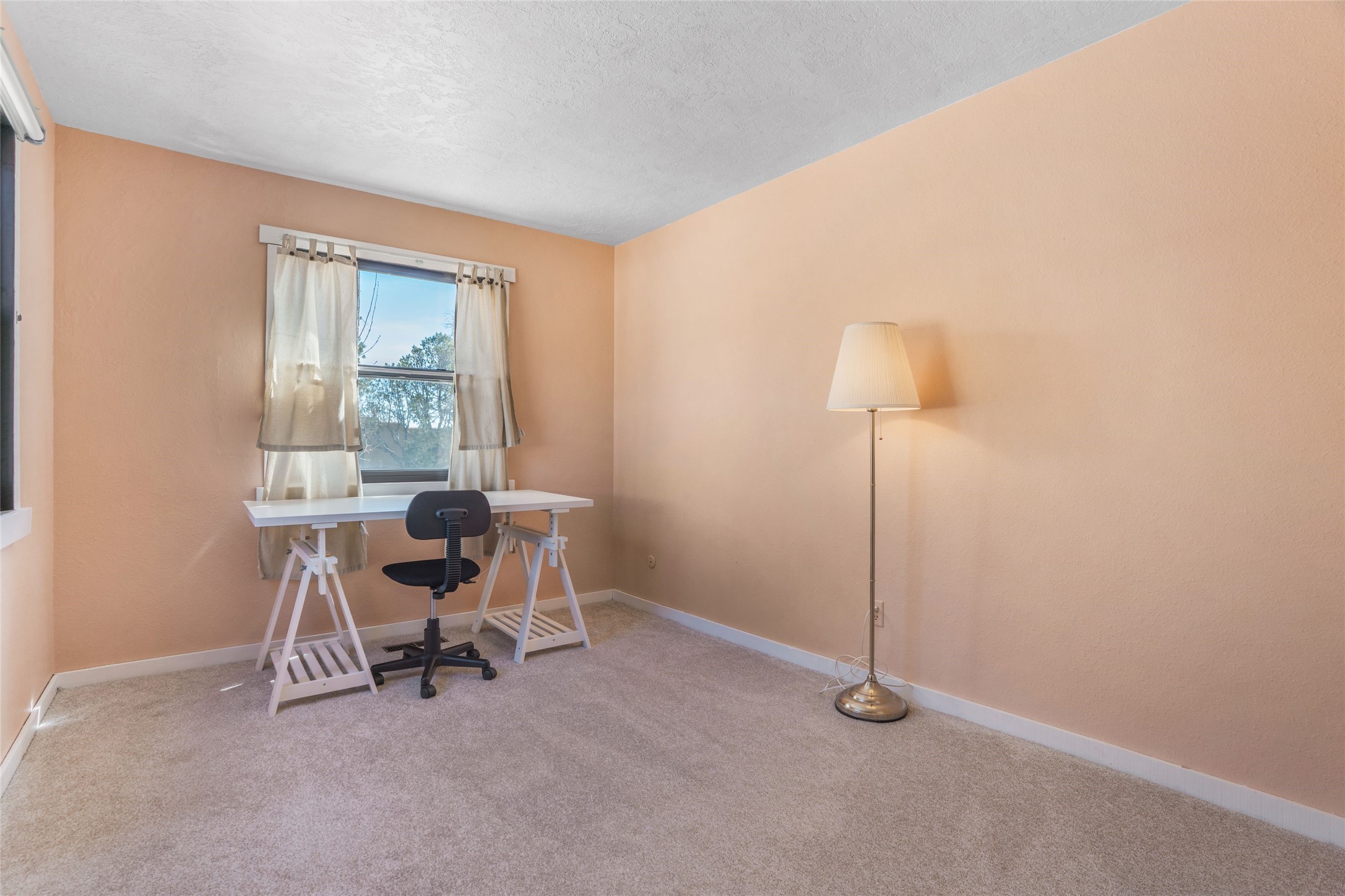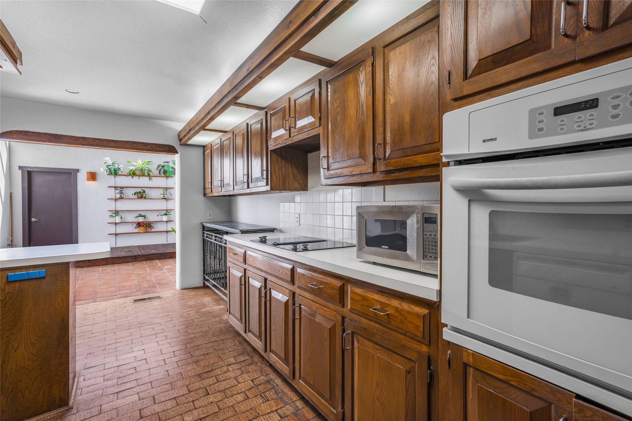 Desirable Northside single-level corner-unit condo with timeless Pueblo character, abundant natural light, and spacious living areas. Enter through a charming walled courtyard, where a blooming cherry blossom tree adds seasonal beauty to the approach. Inside, a dramatic skylit atrium forms the heart of the home, beautifully framed by a large architectural opening from the living room that creates a signature focal point. Exposed beams throughout, banco seating, sculptural stepped Pueblo-style forms, and a kiva wood-burning fireplace bring warmth and authentic Santa Fe character. The southeast-facing orientation welcomes the first light of sunrise onto the living room floor, while moonlight through the atrium adds a rare sense of calm and beauty at night. The thoughtfully separated bedroom layout offers comfort and flexibility, and the attached one-car garage provides additional storage. This property has been lovingly maintained and is priced accordingly for expected renovations. Ideally situated on Santa Fe's coveted Northside, the home enjoys a setting that offers both tranquility and convenient access to the Plaza, the Santa Fe Opera, and Ski Santa Fe, along with the quiet pleasure of frequent deer sightings that add to the natural beauty of the neighborhood.