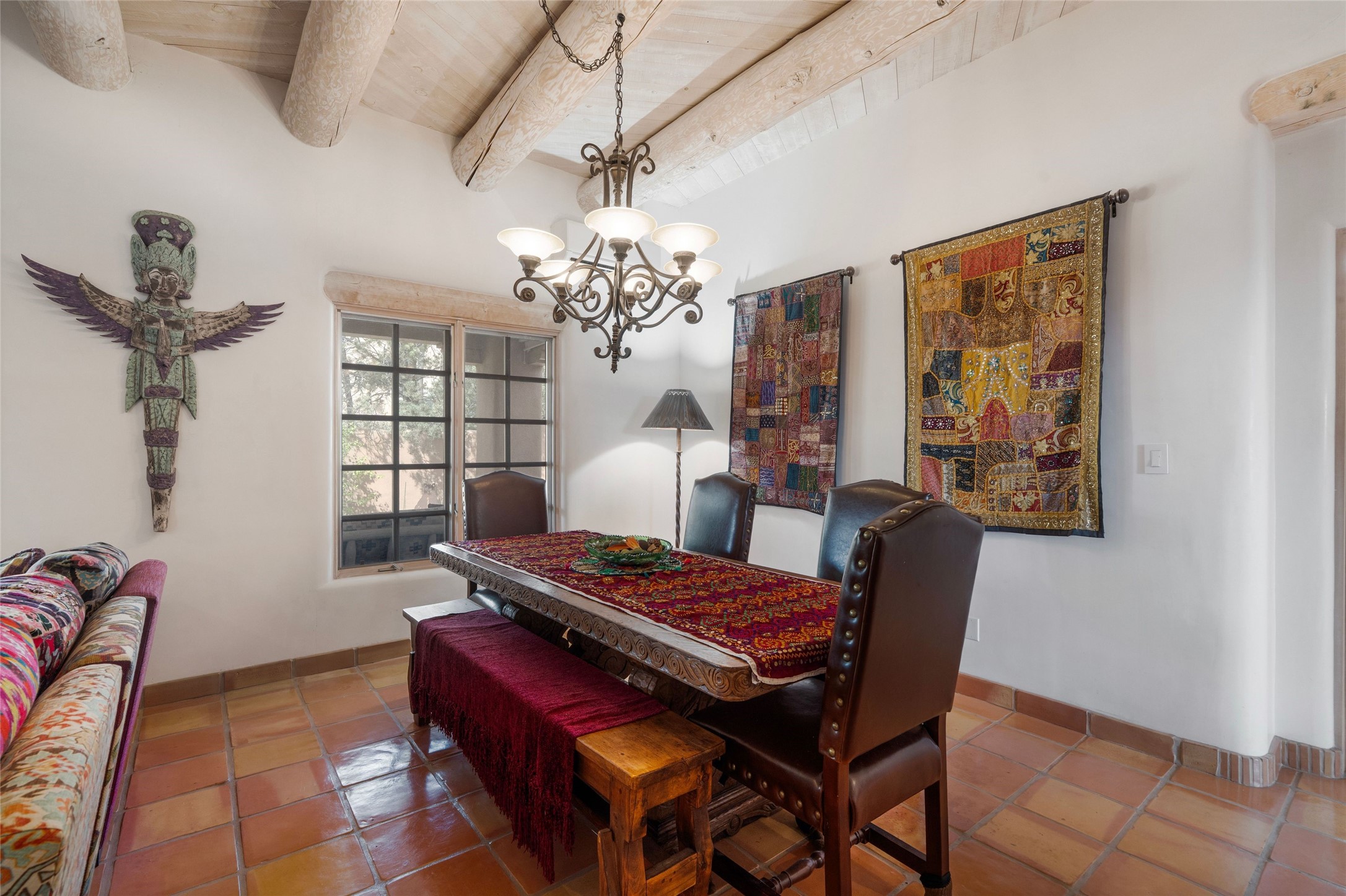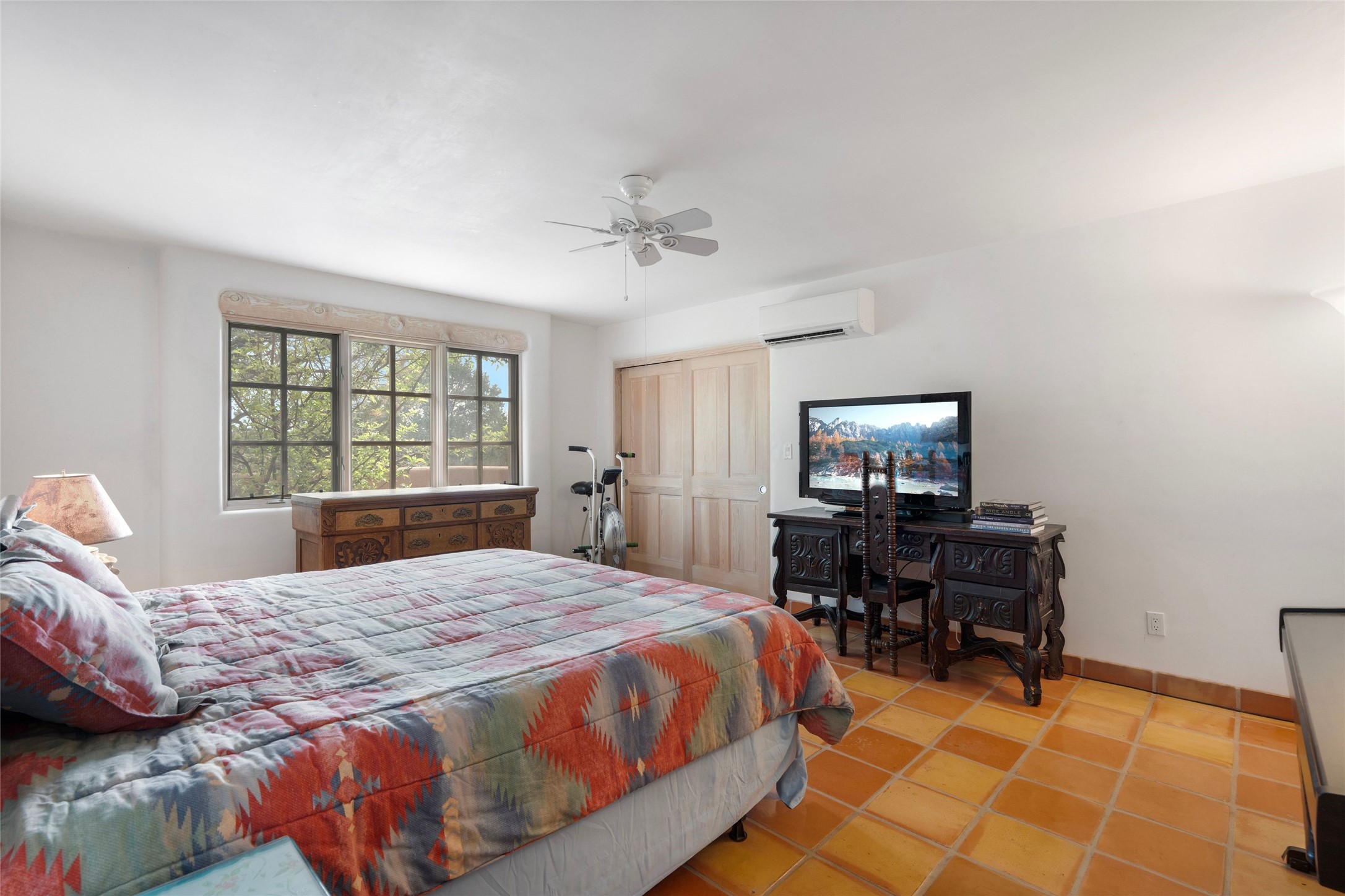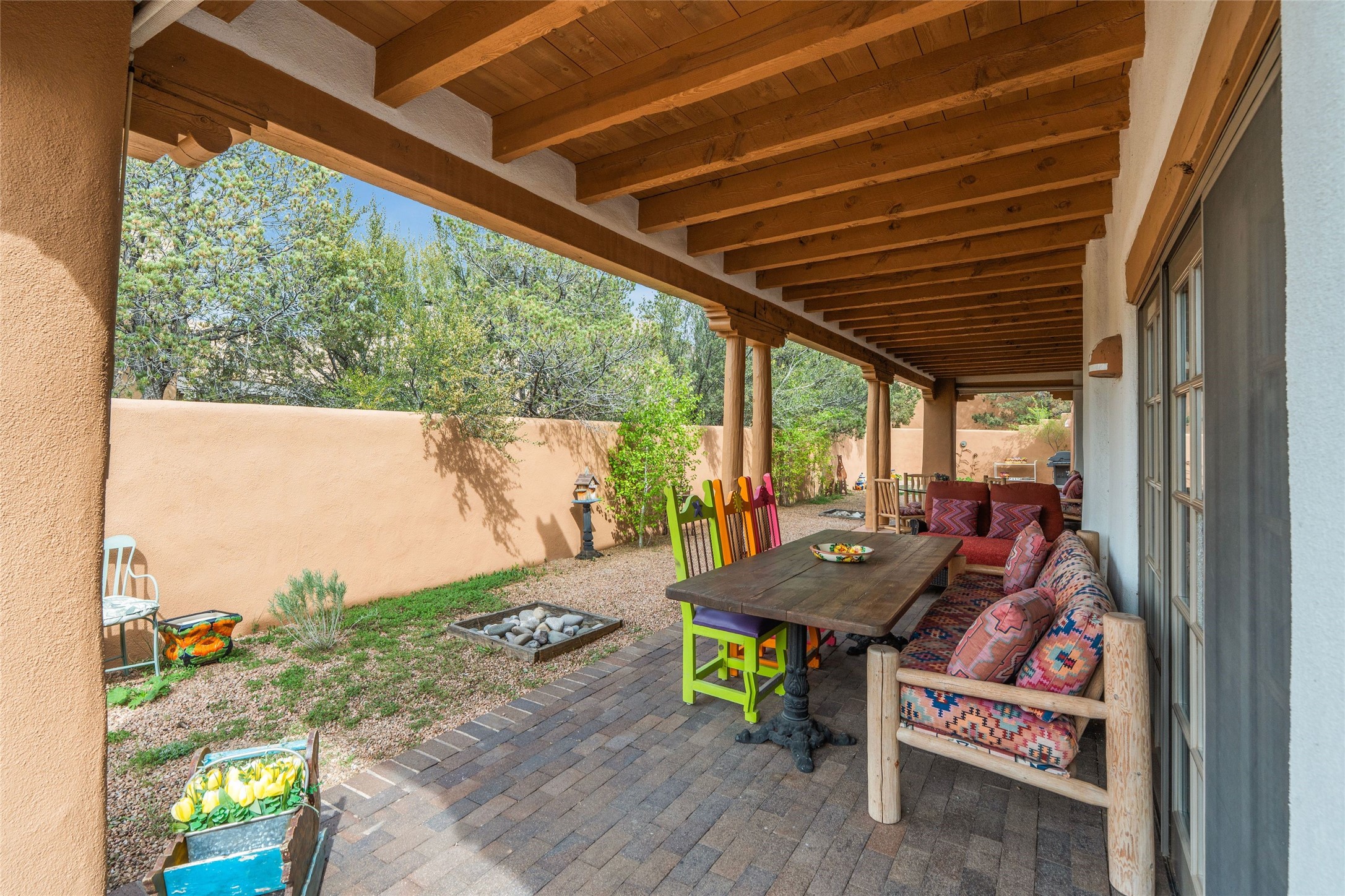 Nestled within Santa Fe's premier boutique golf community, Quail Run, this highly sought-after 2,245 sq ft single-level detached condo offers an exceptional blend of comfort, style and thoughtful design. Featuring 3 bedrooms and 3 baths, this popular floorplan is known for its spacious layout and smart use of space throughout. Authentic Santa Fe style defines the home, complemented by a large back portal-perfect for relaxing or entertaining-set on a desirable corner lot that enhances privacy and natural light. Each room is generously sized, creating an easy, livable flow for both everyday living or hosting guests. Modern conveniences include mini-split systems throughout, providing efficient air conditioning along with an additional source of heat for year round comfort. A standout feature is the versatile second bedroom, complete with an in-room kitchenette ideal for guests, extended stays or flexible living needs. Home ownership at Quail Run includes all of its fabulous amenities: 24 hour hosted security, engaging 9 hole golf course, delightful restaurant, impeccable grounds, state of the art workout areas and indoor pool and spa, scenic 1 3/4 mile walking path, quality fitness classes, pickleball and tennis and much more. Come and see!