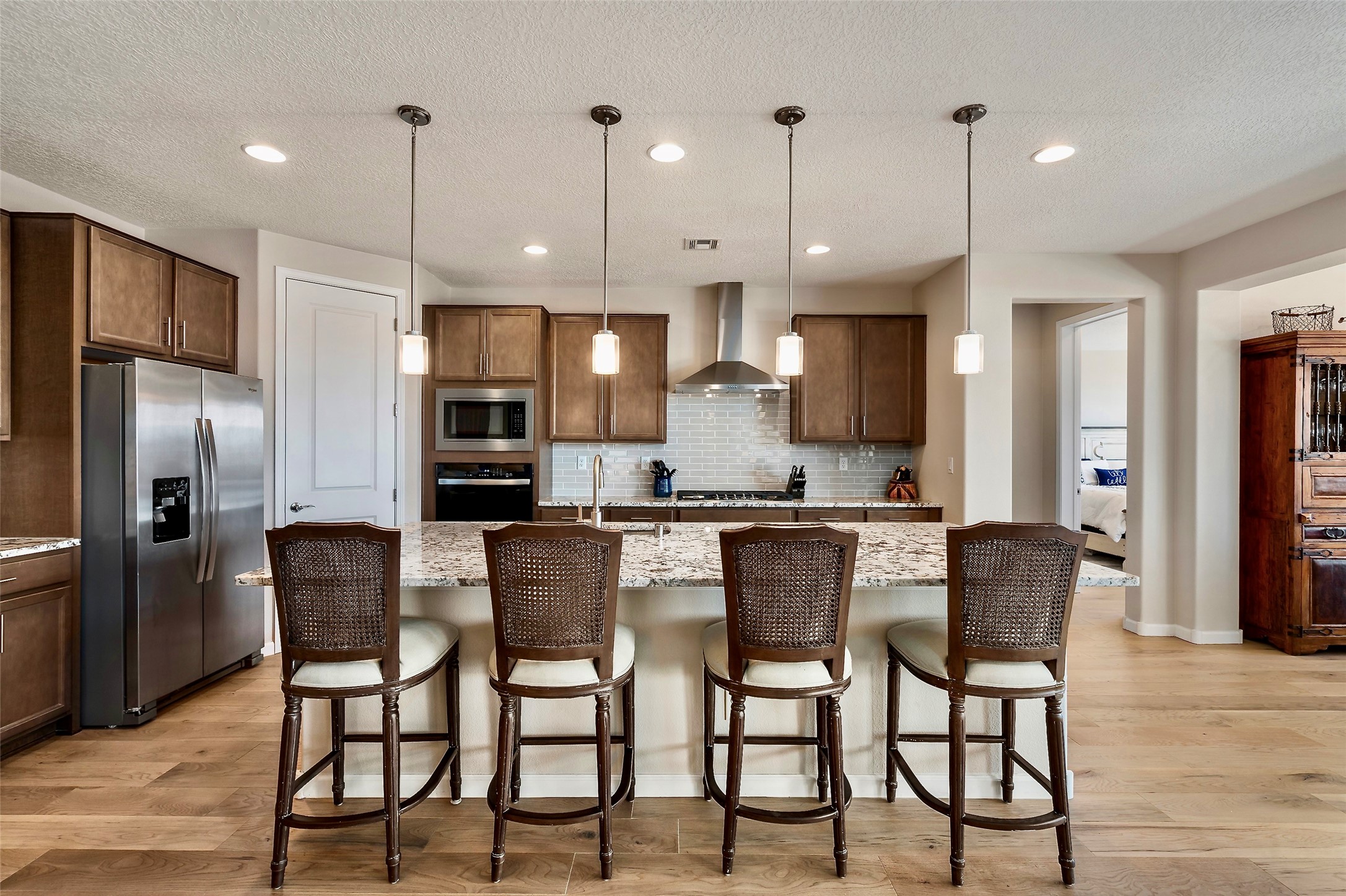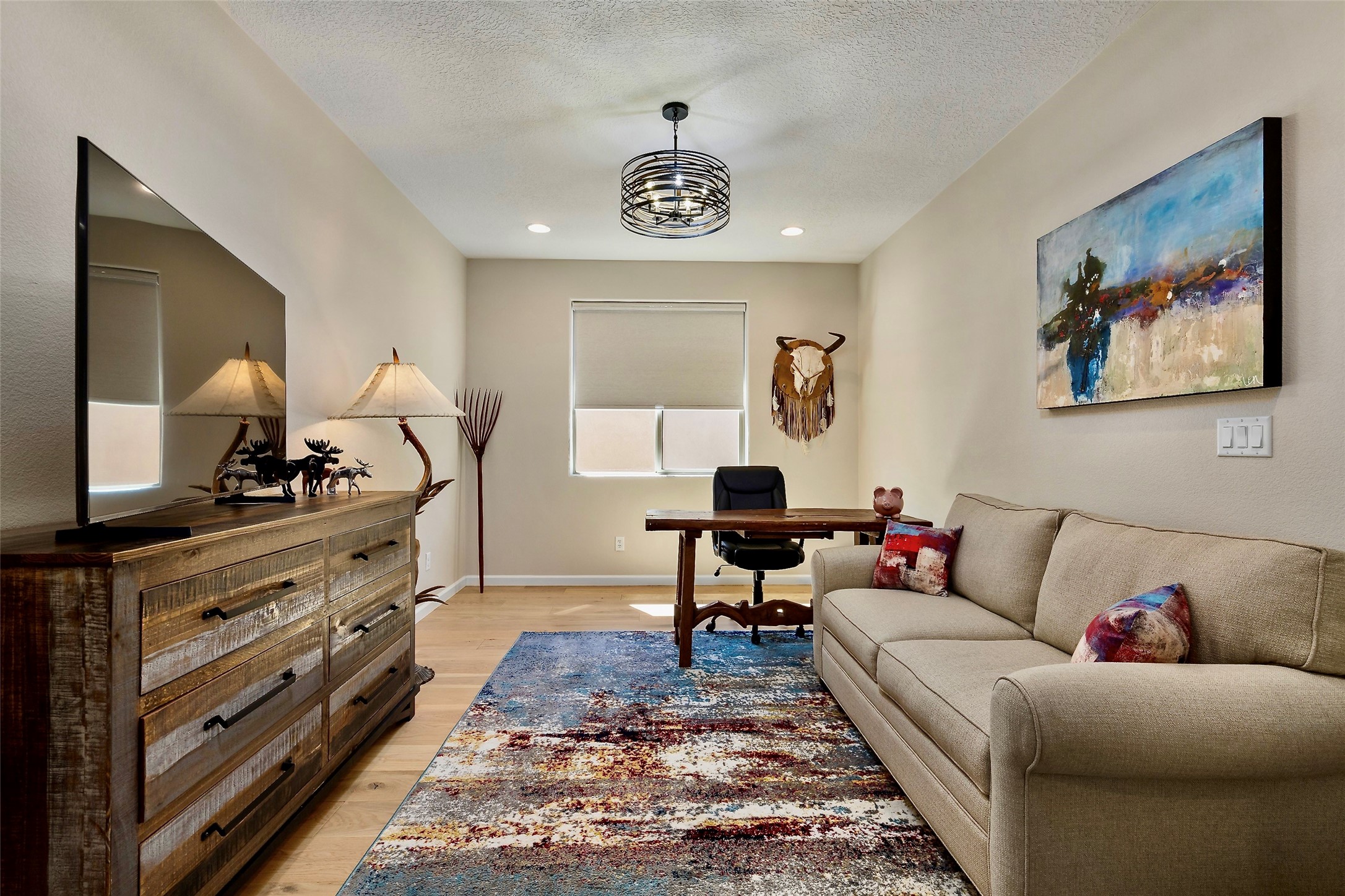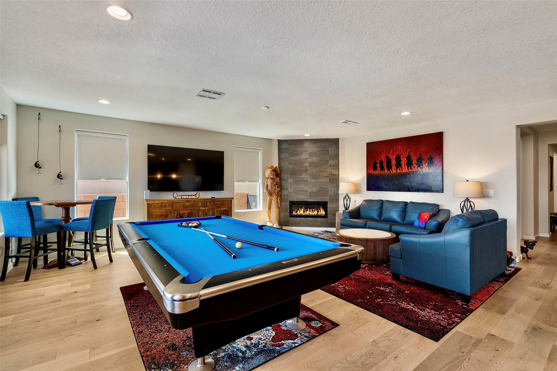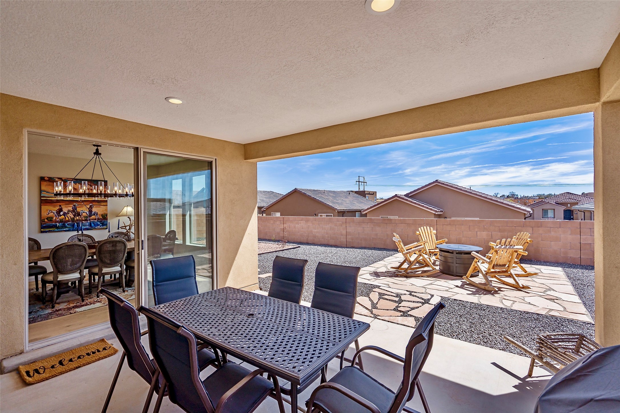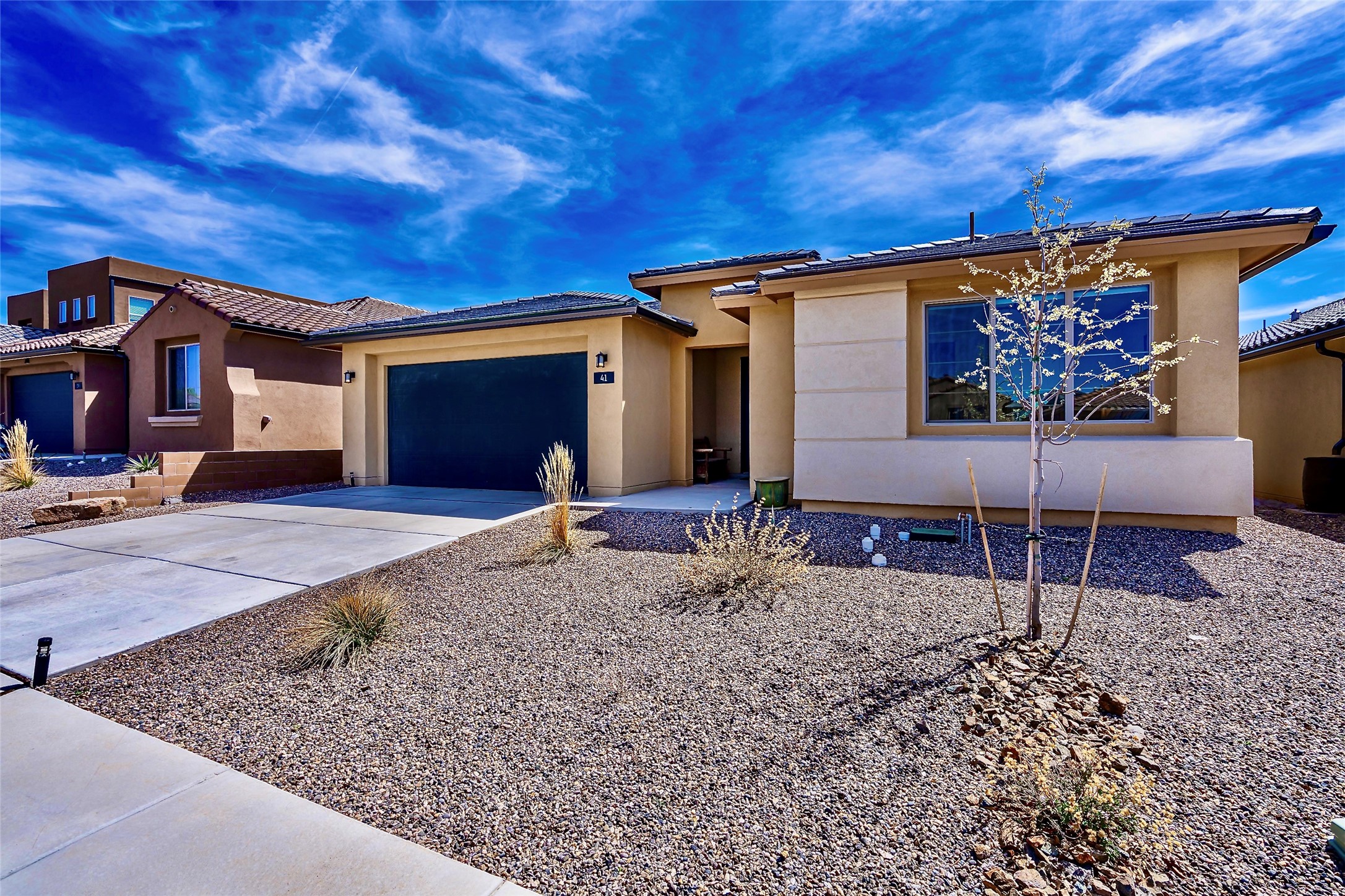 Are you are looking for a tremendous value on a beautifully upgraded and completed Pulte Parklane model? Look no further! 41 Avenida Colibri is a lovely single-story home which features a contemporary, open-concept floor plan perfect for today's living.The home features a spacious kitchen with large center island, bringing joy to cooking and entertaining. The great room/living room features tall ceilings and a dramatic floor-to-ceiling tiled fireplace! The owner's suite bathroom exudes luxury and is replete with gorgeous finishes similar to any 5 star, spa-like retreat. There are 3 spacious bedrooms + office/den or flex space. The full 3-car, tandem garage is 576 sq.ft affording space for not only vehicles, but storage as well! BEST OF ALL- Why spend extra time and money finishing your backyard, installing custom window treatments and light fixtures, tiling your fireplace wall, replacing carpet, or painting and epoxying your garage, when you can move right into a fabulous turnkey home where every upgrade has already been thoughtfully completed? Step into this nearly new, barely lived-in home, featuring gorgeous engineered hardwood flooring throughout--no carpet anywhere, just beautifully upgraded floors in every room. Bathed in natural light, the living spaces seamlessly connect to the outdoors, offering a warm and inviting atmosphere for everyday living. Embrace the outdoor lifestyle with a custom-built firepit area, perfect for relaxing or entertaining guests as you take in enchanting Santa Fe evenings under the stars. Meticulously maintained and move-in ready, this home is designed for comfort, style, and effortless enjoyment. This home is like new with little use, but is fully broken in! A must see!