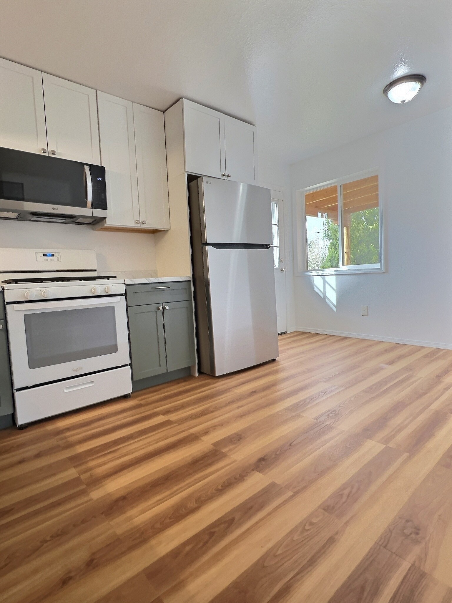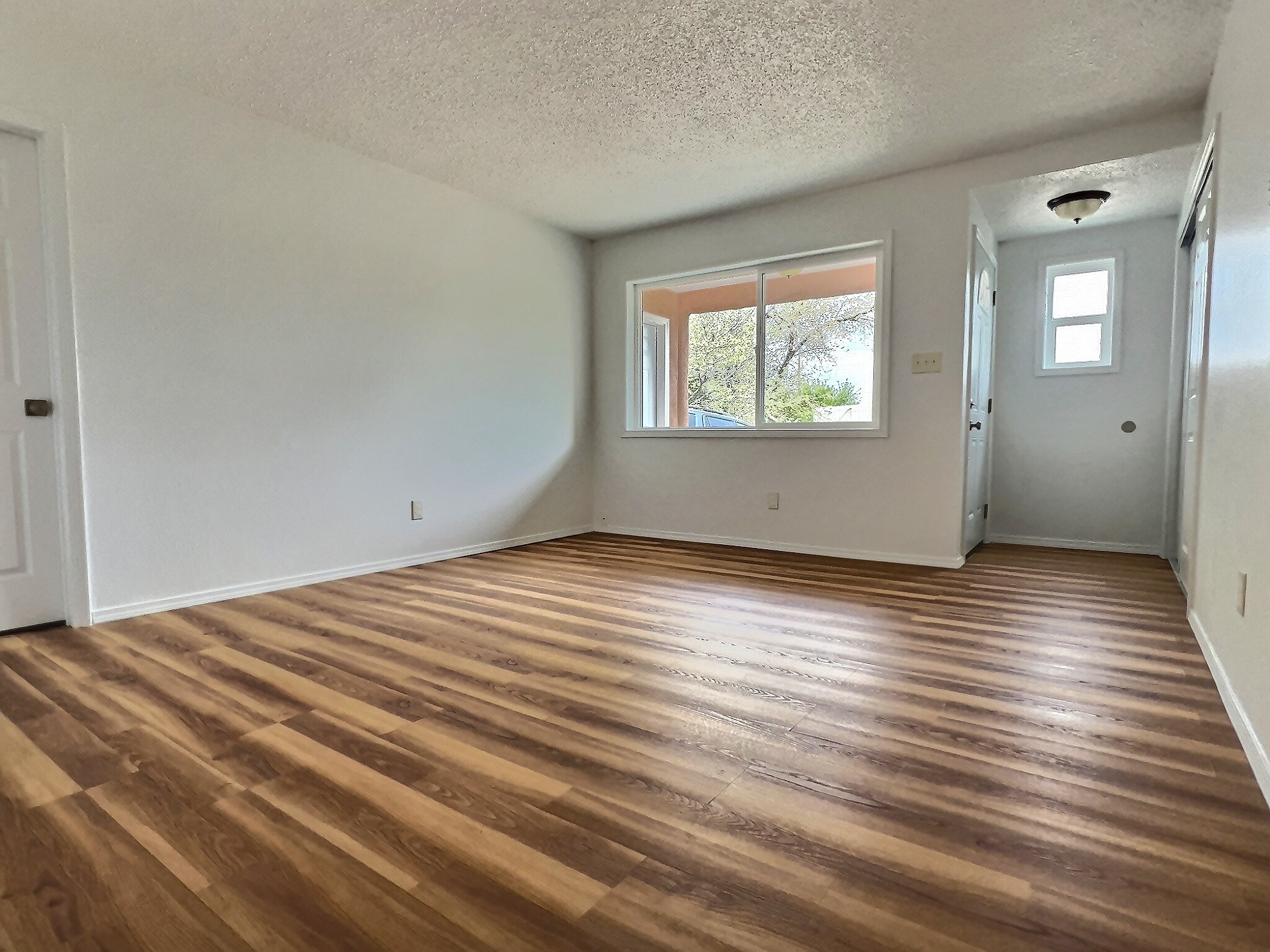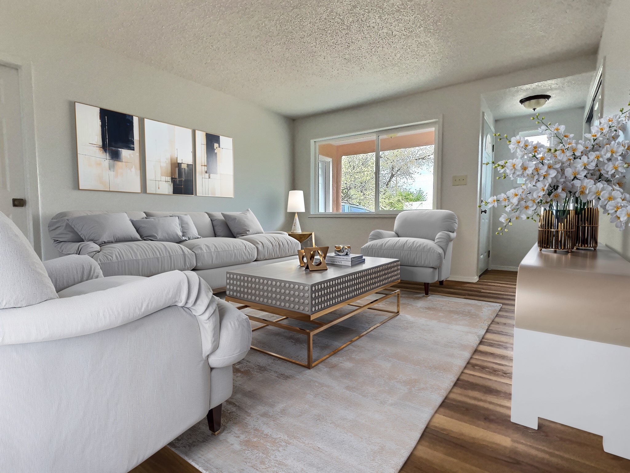 Exciting opportunity to own a beautifully reimagined original Santa Fe home, thoughtfully remodeled and ready for its next owner. Blending classic character with modern upgrades, this charming 3-bedroom, 1-bath residence offers comfort, style, and convenience in one exceptional package. Situated on a spacious lot with a fully fenced backyard, the property provides ample room for outdoor living, entertaining, or future possibilities. Inside, you'll find a bright and refreshed interior featuring new flooring throughout the living room, kitchen, and bathroom, along with plush new carpet in the bedrooms. The completely renovated bathroom showcases a brand-new tub with custom tile surround, updated vanity, sink, toilet, and elegant tile flooring. The kitchen has been fully updated with new cabinetry, flooring, refrigerator, and microwave--creating a clean, modern space ready for everyday living. A standout feature of the home is the finished bonus room, complete with brand-new washer and dryer hookups, offering flexibility for a home office, studio, or additional living space. Additional upgrades include all-new windows and doors, enhancing both energy efficiency and overall comfort. Nestled in a quiet cul-de-sac within an established neighborhood, this home offers both privacy and a strong sense of community. Ideally located just minutes from everything Santa Fe has to offer--shopping, dining, entertainment, and more--homes in this desirable area rarely become available. Don't miss this unique opportunity to own a piece of Santa Fe history, beautifully updated for modern living.