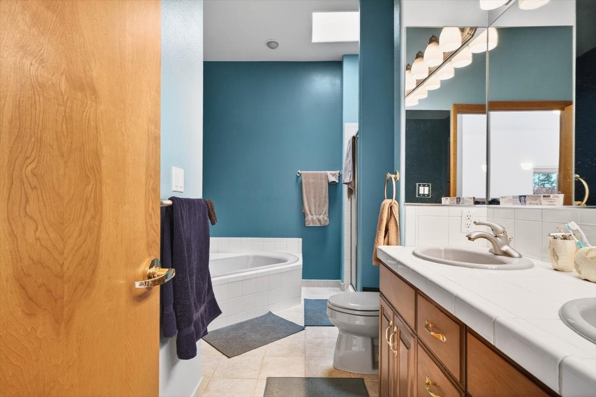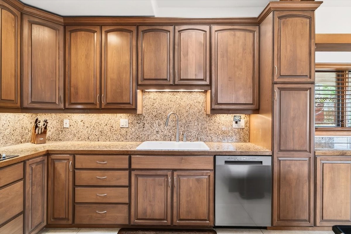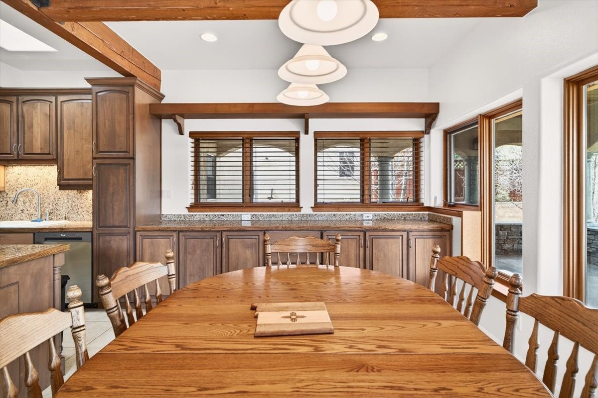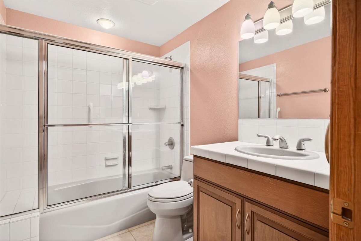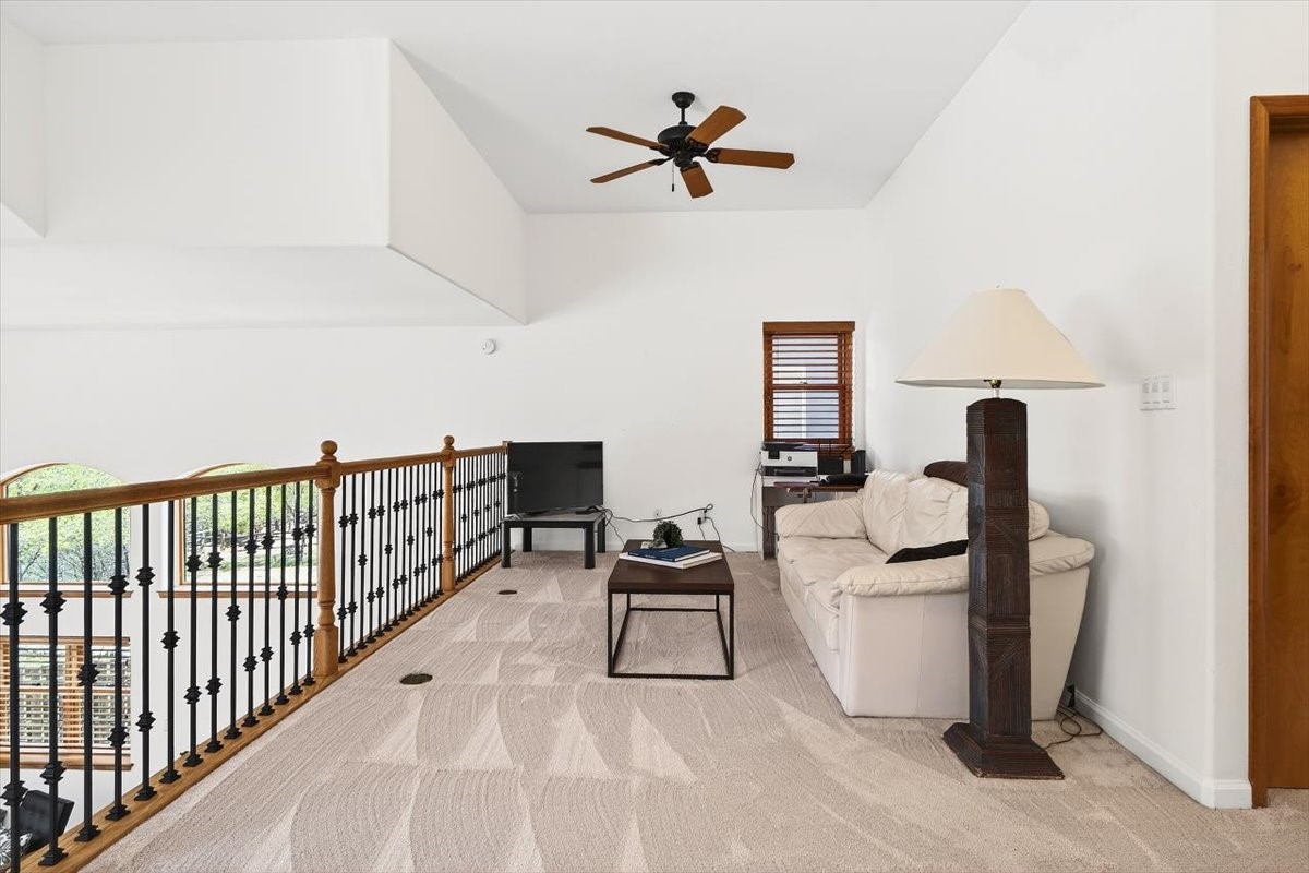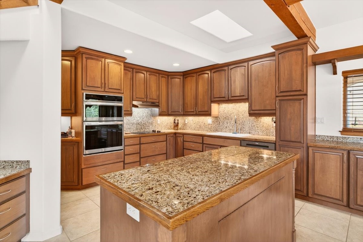 Crafted with enhanced safety standards and durability at the forefront, this 2004-built residence features exceptional construction, including 2x10 wall framing with R-32 insulation and a 1.5-inch fire-rated stucco exterior. The 2011 metal roof, designed to resemble classic clay tile, is fully fireproof and includes a transferable warranty, while double-pane skylights enhance both efficiency and natural light. A grand foyer welcomes you inside, where a striking stone fireplace and iron staircase anchor the living spaces and set a refined tone. Arched windows accentuate the home's distinctive character and fill the space with natural light. The upper level features two bedrooms, including a well-appointed primary suite with a spa-like bath, generous walk-in closet, and private sitting area. A den overlooks the living room below, adding dimension and openness to the design. The lower level serves as the heart of the home. Arched architectural details lead into the dining area and kitchen, where custom alder wood cabinetry, granite tile countertops, and a 2025 appliance suite create a functional and stylish workspace. An island with a pullout workstation offers added versatility. This level also includes two additional bedrooms and direct access to the backyard. Just off the kitchen, the patio is thoughtfully designed for year-round enjoyment, complete with integrated Bose speakers and a balance of shelter and openness ideal for entertaining. A 550-square-foot bonus room--originally designed as a dance studio--offers flexible use as a home theater, game room, or creative space. Additional features include in-floor radiant heating throughout both levels, central air conditioning, and solid-core ADA compliant doors. The oversized garage accommodates larger vehicles. Located near hiking trails, public transportation, and the local high school, this property combines thoughtful design, quality construction, and everyday livability. Schedule a private showing today.