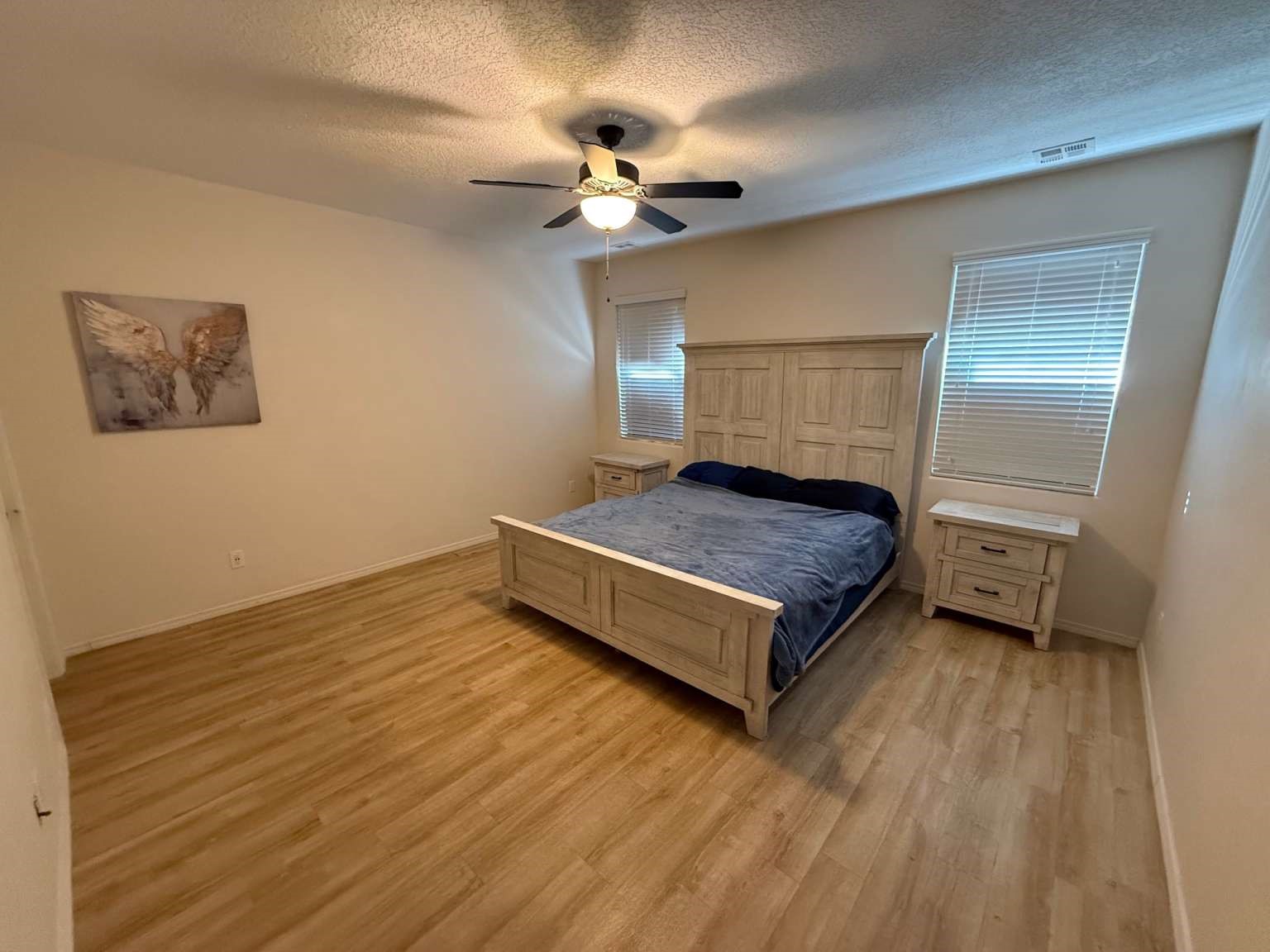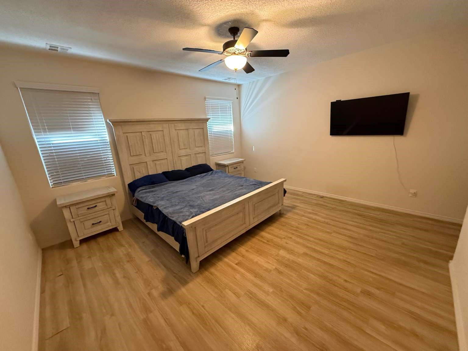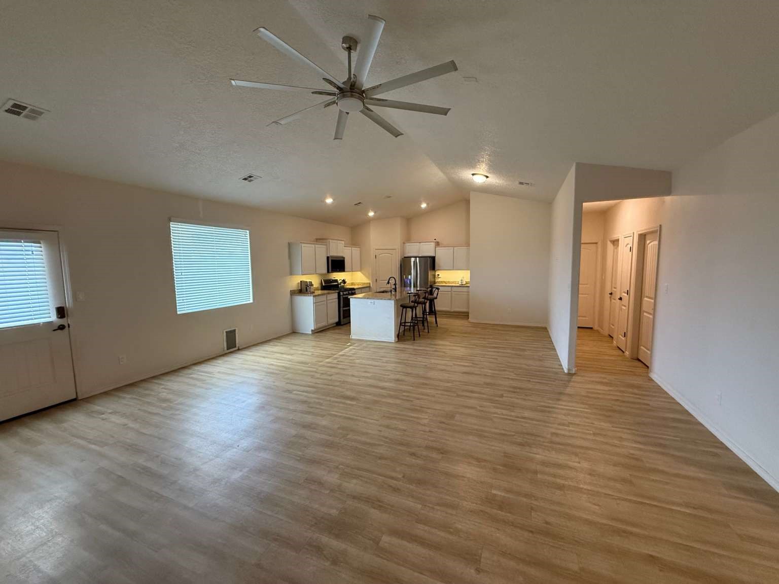 Sandia Estates Airpark (1N1).30 min East of ABQ. On .86 AC lot with space for hangar. Beautiful Open Floor Plan, Cathedral Ceilings 3 bedrooms and 2 Bath, Granite Countertops throughout. Master has bath has Double Sinks, Separate Shower, Soaking Tub, Walk in Closet. Kitchen Features Upgraded Stainless Appliances, 5 stage RO water filter, Breakfast Bar. A Spacious Great Room/Dining Room. 2 car garage, Water filter & Softener. Upgraded Spray Foam Insulation. Laminate Floors Throughout. Back patio, Fenced Back Yard with Dog Run, RV pad with Full Hookups. 8 x 12 Metal Shed.
