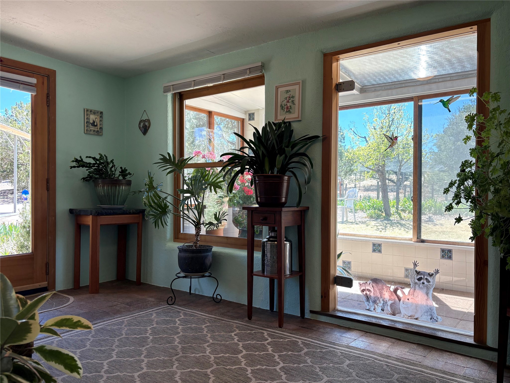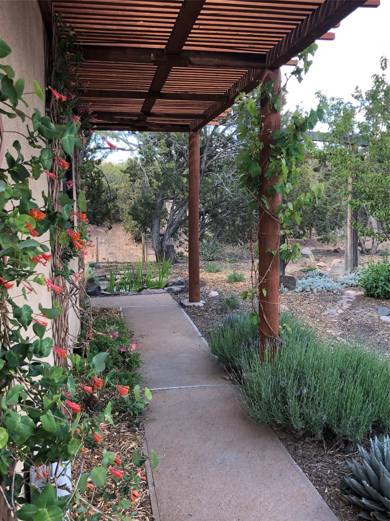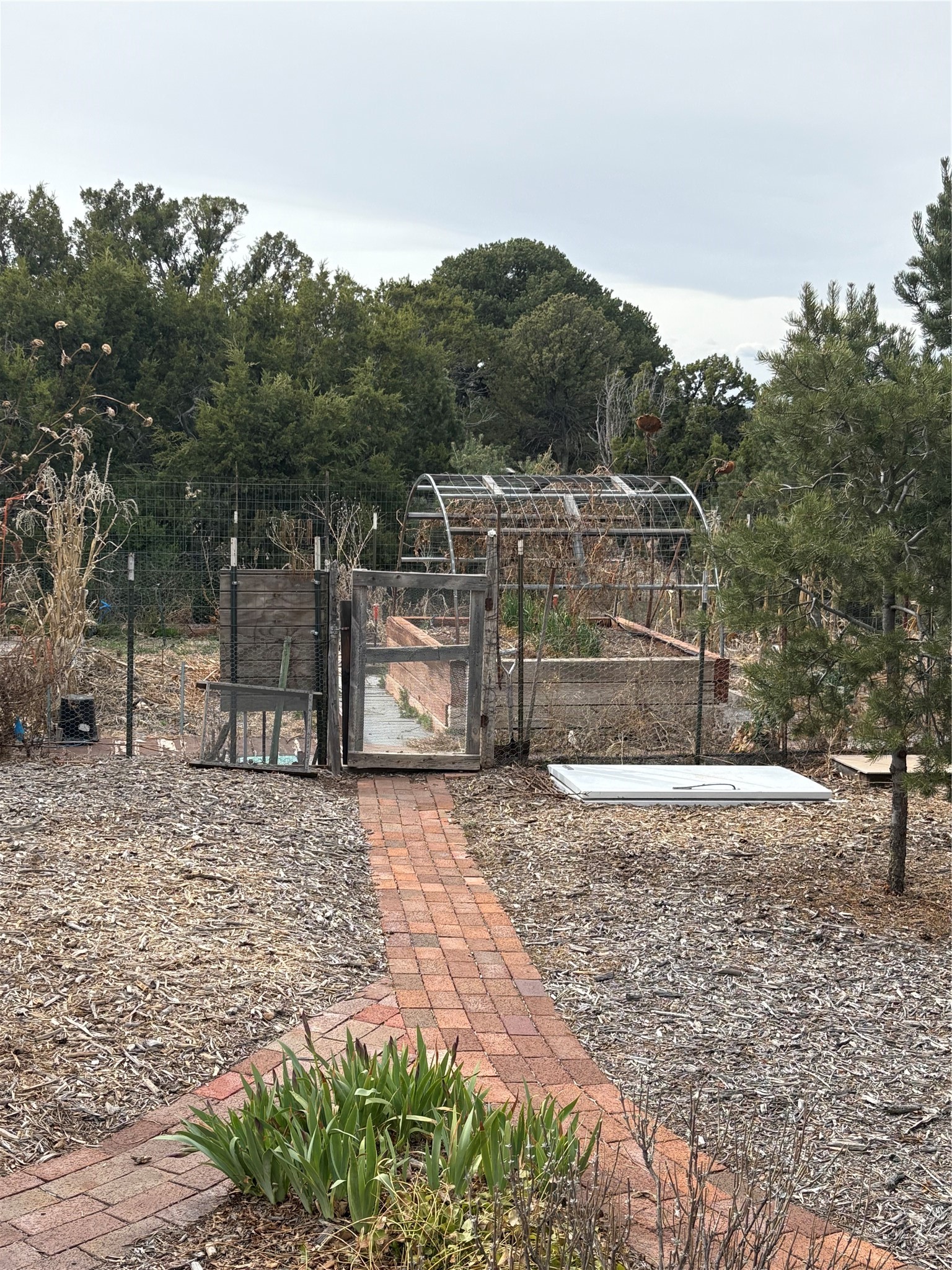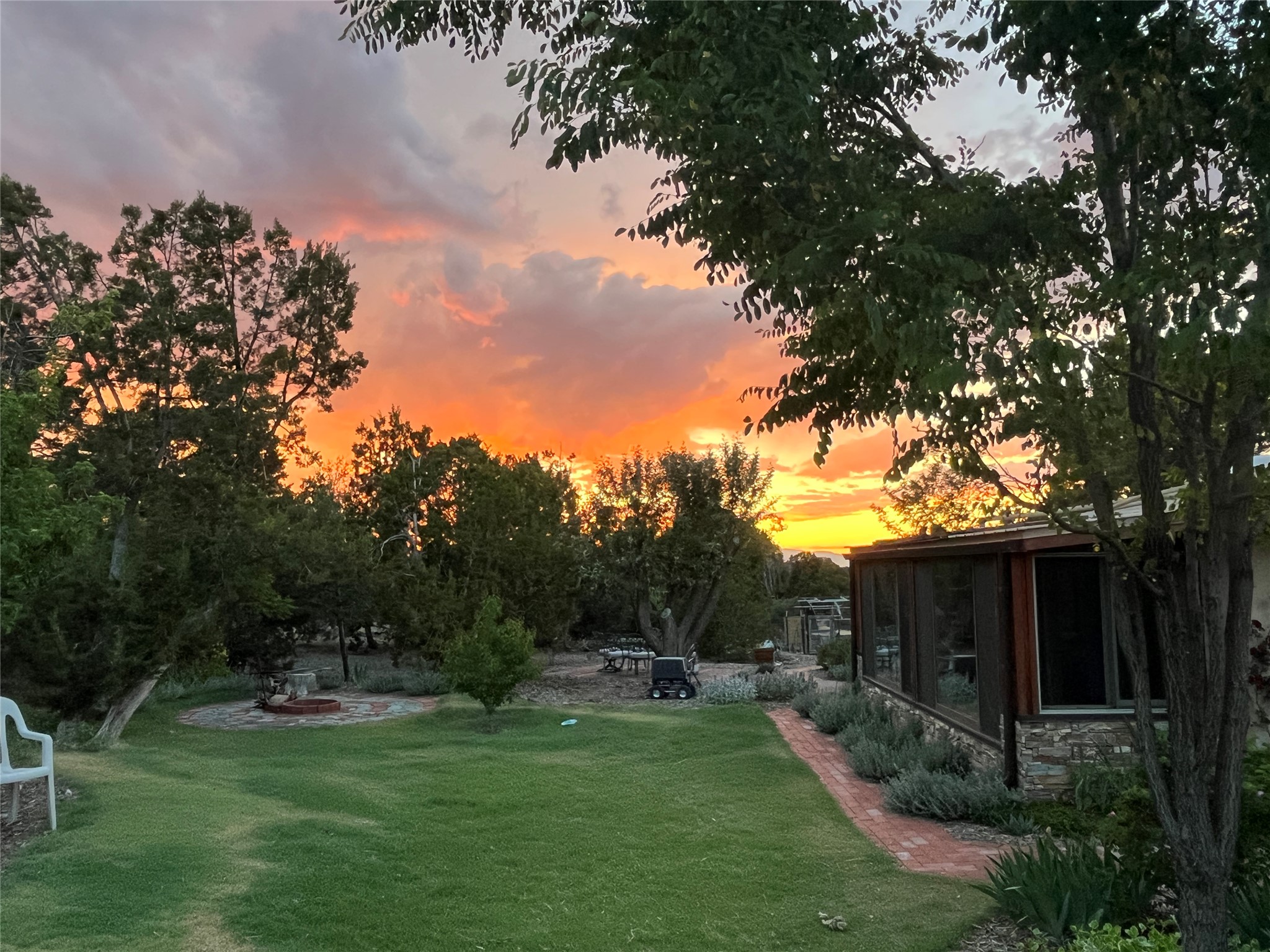 Welcome to '' The Ravens Nest '', this special oasis is nestled among old growth pinon and juniper trees. This 2 bedroom 1 bath home sits on 3+ acres with water-wise landscaping and fertile developed garden beds on a drip system. The attached greenhouse is great for getting plants started and provides passive solar gain to the main house. This property is a very private and peaceful haven yet it's only 12 minutes to the plaza, 6 minutes to the hospital, 3 minutes to I-25 and supermarkets. There is over 1700 square feet of heated space including the main house, the studios and the guest cabin. This property allows for self-sufficient living, featuring a large solar array that powers the house and out buildings, a high producing private well [25 gpm] and over 3000 sq. ft. of gardens under cultivation for organic vegetables, berries, fruit trees and grape arbors all on a well developed drip irrigation system. In addition to the solar powered electric heating system there is a cozy wood stove to support you during the colder winter months. There is a completely new pitched propanel roof and updated windows and doors installed in 2016, a complete kitchen remodel just 5 years ago, a new septic system installed in 2016, new water heater in 2017 and a new washer in 2026. Did I mention the Chicken coop with the hens, a great hot tub and a root cellar all convey. Needless to mention that the guest cabin with basic bath and the studios are all rentable buildings which could provide supplemental income. The property is bordered by an arroyo which separates it from over 50 acres of private land and a ten minute walk brings you to hiking and biking trails at the Arroyo Hondo Open Space Preserve. This is a rare find for country living so close to town ... Please schedule a visit asap, this property won't last long on the market.