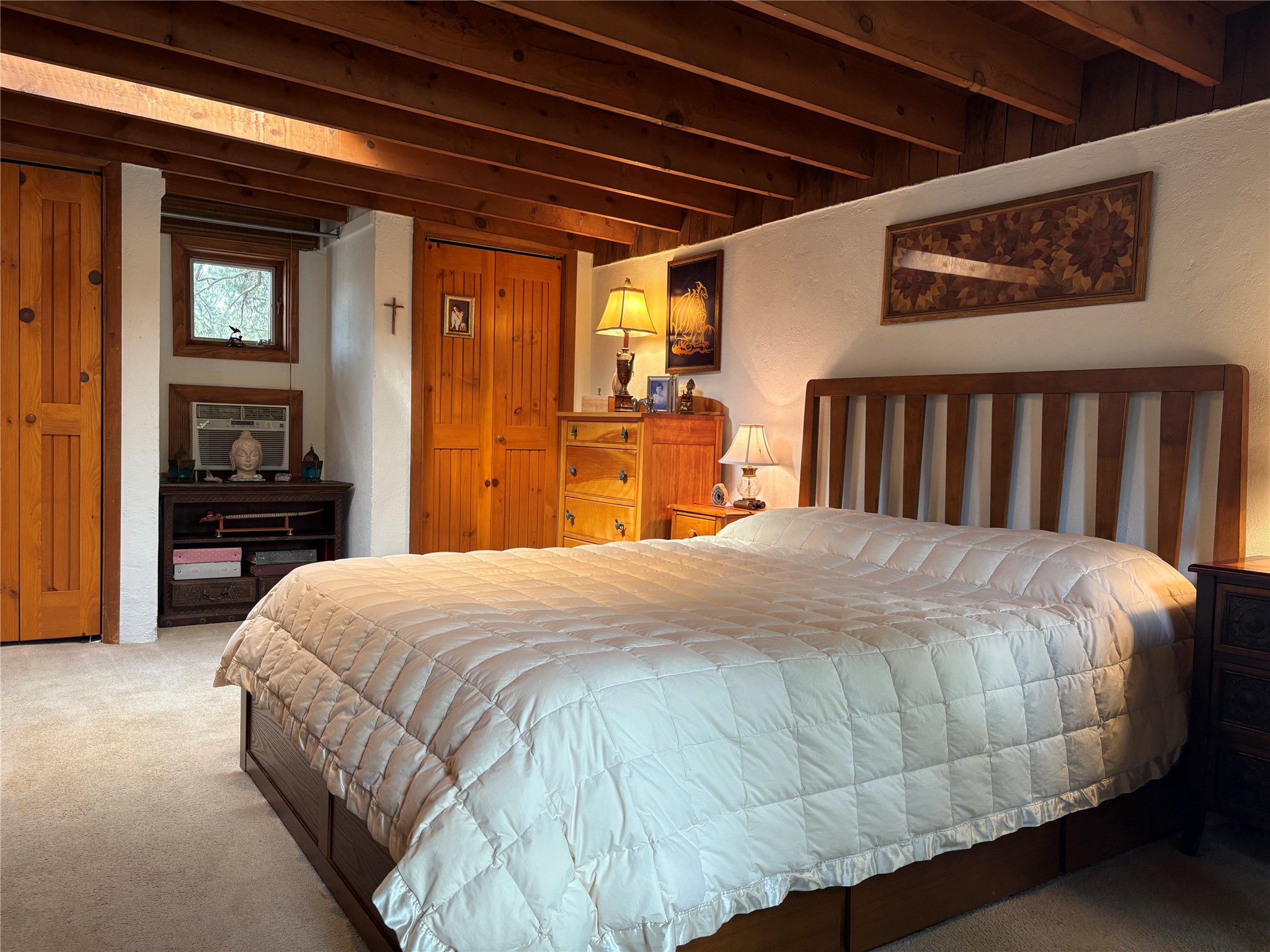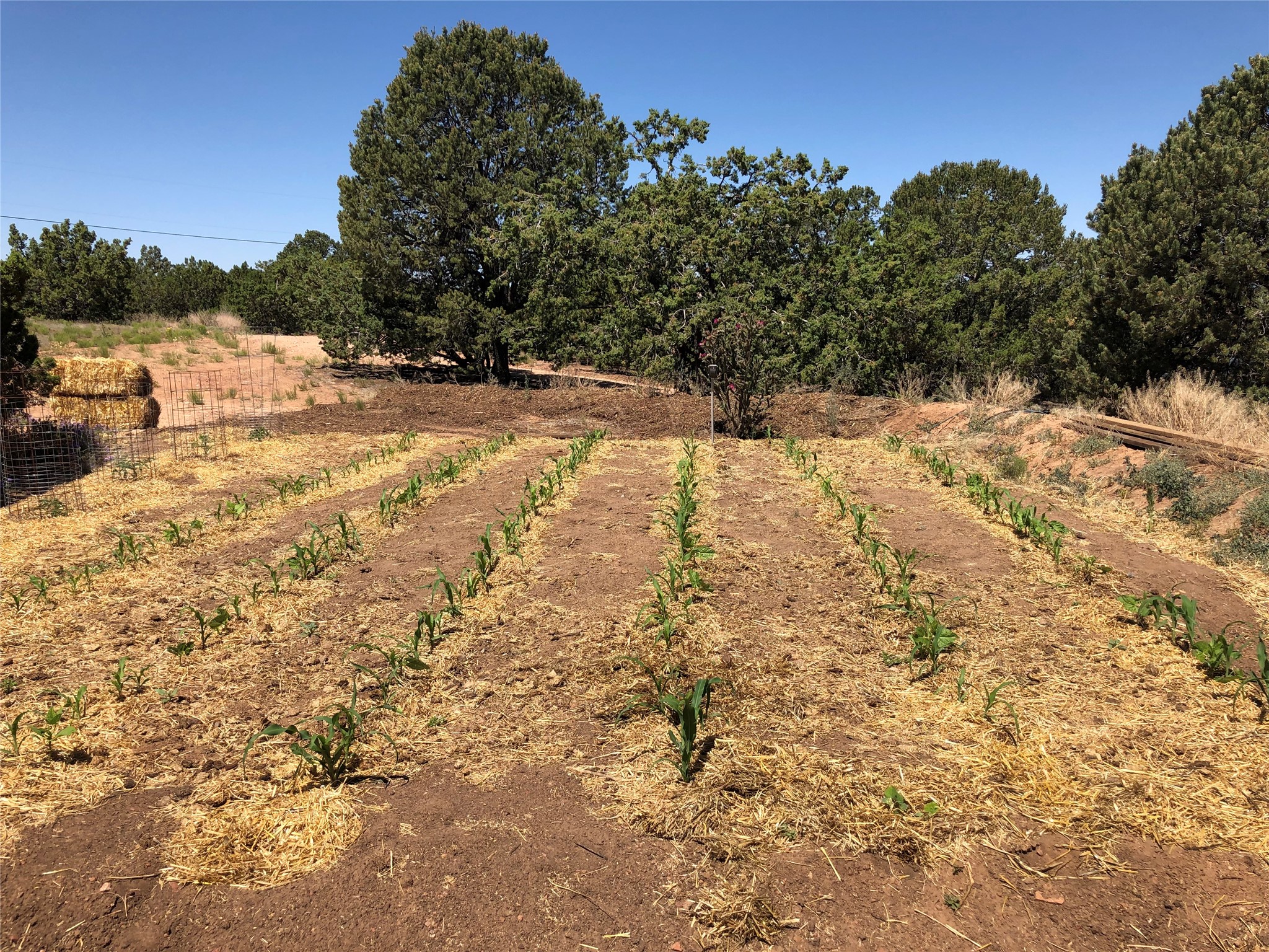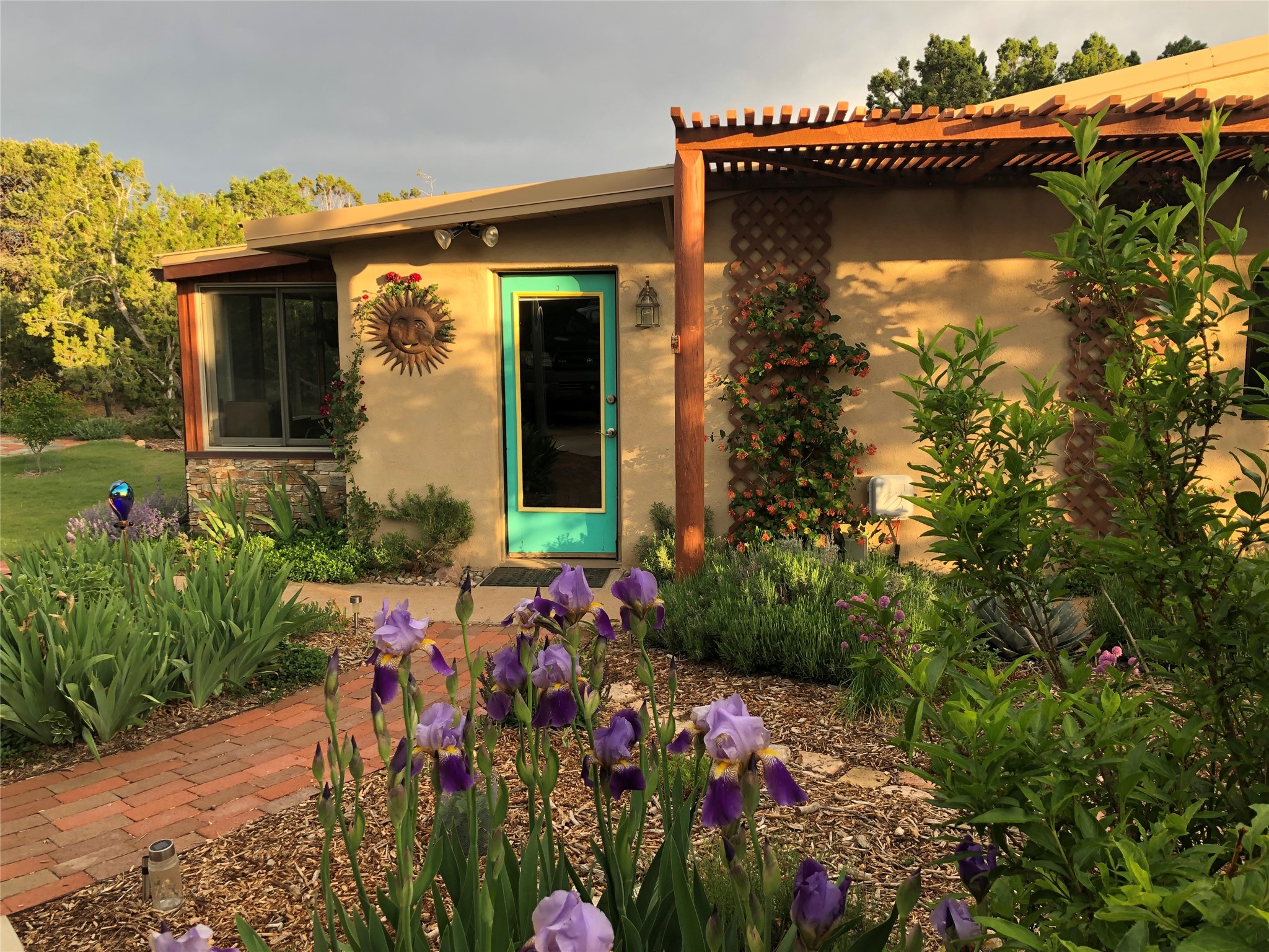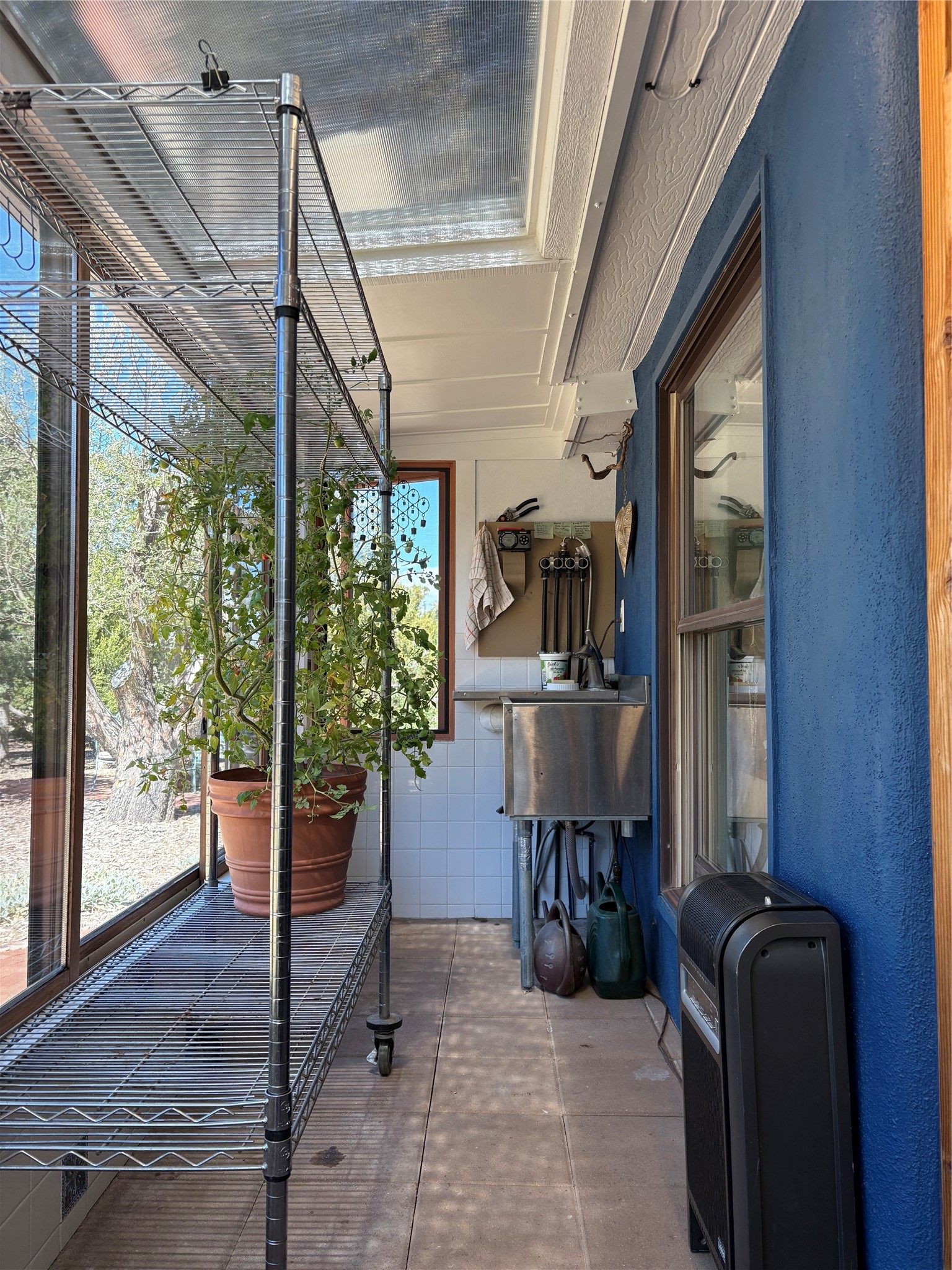 Welcome to '' The Ravens Nest '', this special oasis is nestled among old growth pinon and juniper trees. This 2 bedroom 1 bath home sits on 3+ acres with water-wise landscaping and fertile developed garden beds on a drip system. The attached greenhouse is great for getting plants started and provides passive solar gain to the main house. This property is a very private and peaceful haven yet it's only 12 minutes to the plaza, 6 minutes to the hospital, 3 minutes to I-25 and supermarkets. There is over 1700 square feet of heated space including the main house, the studios and the guest cabin. This property allows for self-sufficient living, featuring a large solar array that powers the house and out buildings, a high producing private well [25 gpm] and over 3000 sq. ft. of gardens under cultivation for organic vegetables, berries, fruit trees and grape arbors all on a well developed drip irrigation system. In addition to the solar powered electric heating system there is a cozy wood stove to support you during the colder winter months. There is a completely new pitched propanel roof and updated windows and doors installed in 2016, a complete kitchen remodel just 5 years ago, a new septic system installed in 2016, new water heater in 2017 and a new washer in 2026. Did I mention the Chicken coop with the hens, a great hot tub and a root cellar all convey. Needless to mention that the guest cabin with basic bath and the studios are all rentable buildings which could provide supplemental income. The property is bordered by an arroyo which separates it from over 50 acres of private land and a ten minute walk brings you to hiking and biking trails at the Arroyo Hondo Open Space Preserve. This is a rare find for country living so close to town ... Please schedule a visit asap, this property won't last long on the market.