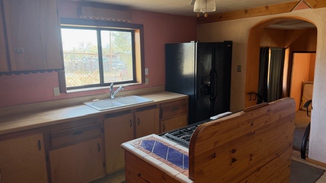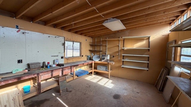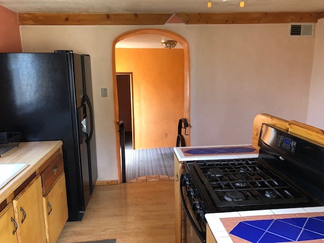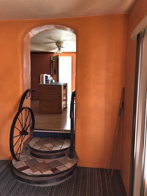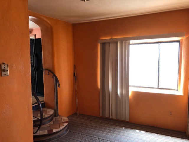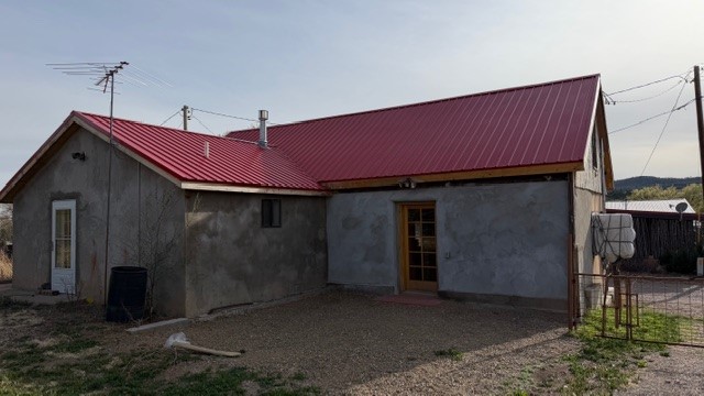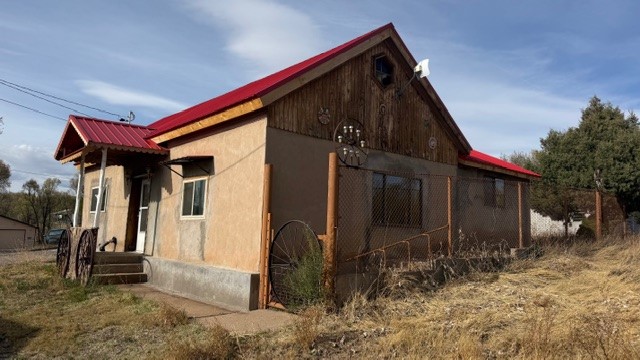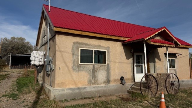 Small 1b1b adobe in the charming community of San Antonio in Las Vegas. Beautifully renovated interior features a patterned wood plank ceiling in the living room, arched doorways, updated bathroom and kitchen, stainless steel refrigerator and gas stove, and pellet stove with stone back wall. There is a second room which doesn't have a closet but could be a second bedroom with a wardrobe, or an office. The dining room could be an office. New carpet and new propanel roof. A garage in the back yard could hold at least two vehicles, and a workshop is attached to it. The backyard is fenced. Very rural feeling on the north end of Las Vegas.
