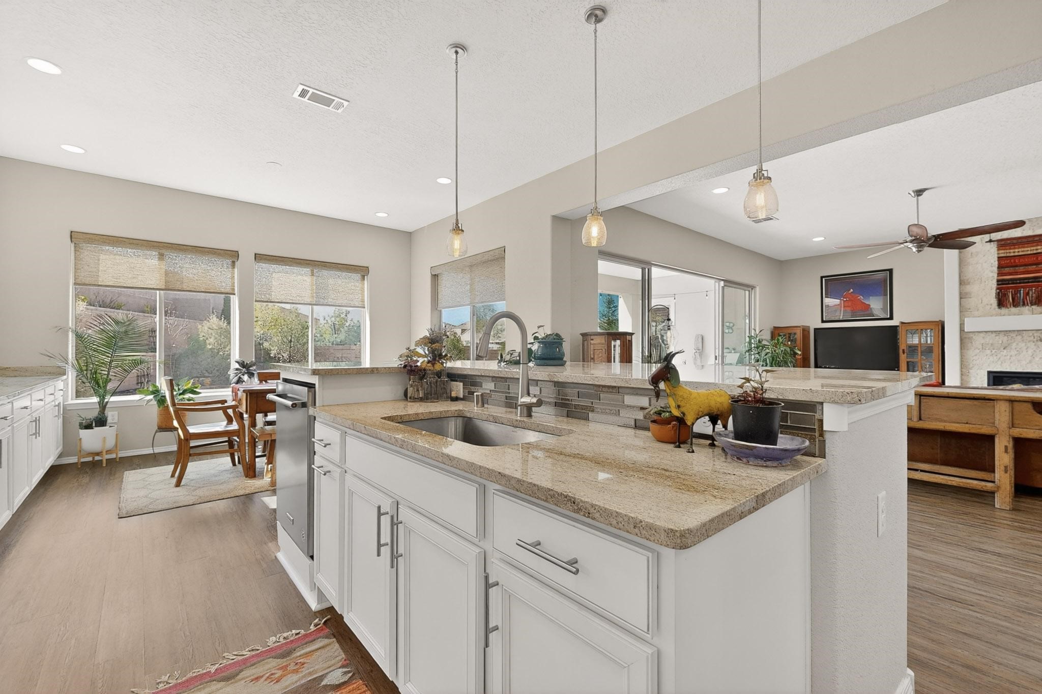 Built by Pulte in 2020, this thoughtfully designed 2,612-square-foot home offers 2 bedrooms, 3 bathrooms, and two flexible bonus spaces that make the floor plan live far beyond a typical two-bedroom home. Whether used as a media room, office, gym, playroom, piano room, additional living area, or potentially adapted into a third bedroom, these spaces offer the kind of versatility buyers are looking for.Filled with natural light, the home features high ceilings, generous windows, and an open-concept kitchen, dining, and living area that feels bright, spacious, and connected. Additional highlights include air conditioning, a 2-car garage with ample storage, a tankless water heater, and beautifully landscaped front and back yards.With quick access to 599 for Los Alamos commuters and close proximity to Target, Best Buy, grocery stores, hardware stores, and Monte del Sol Charter School, this is a well-located home that offers both convenience and flexibility.