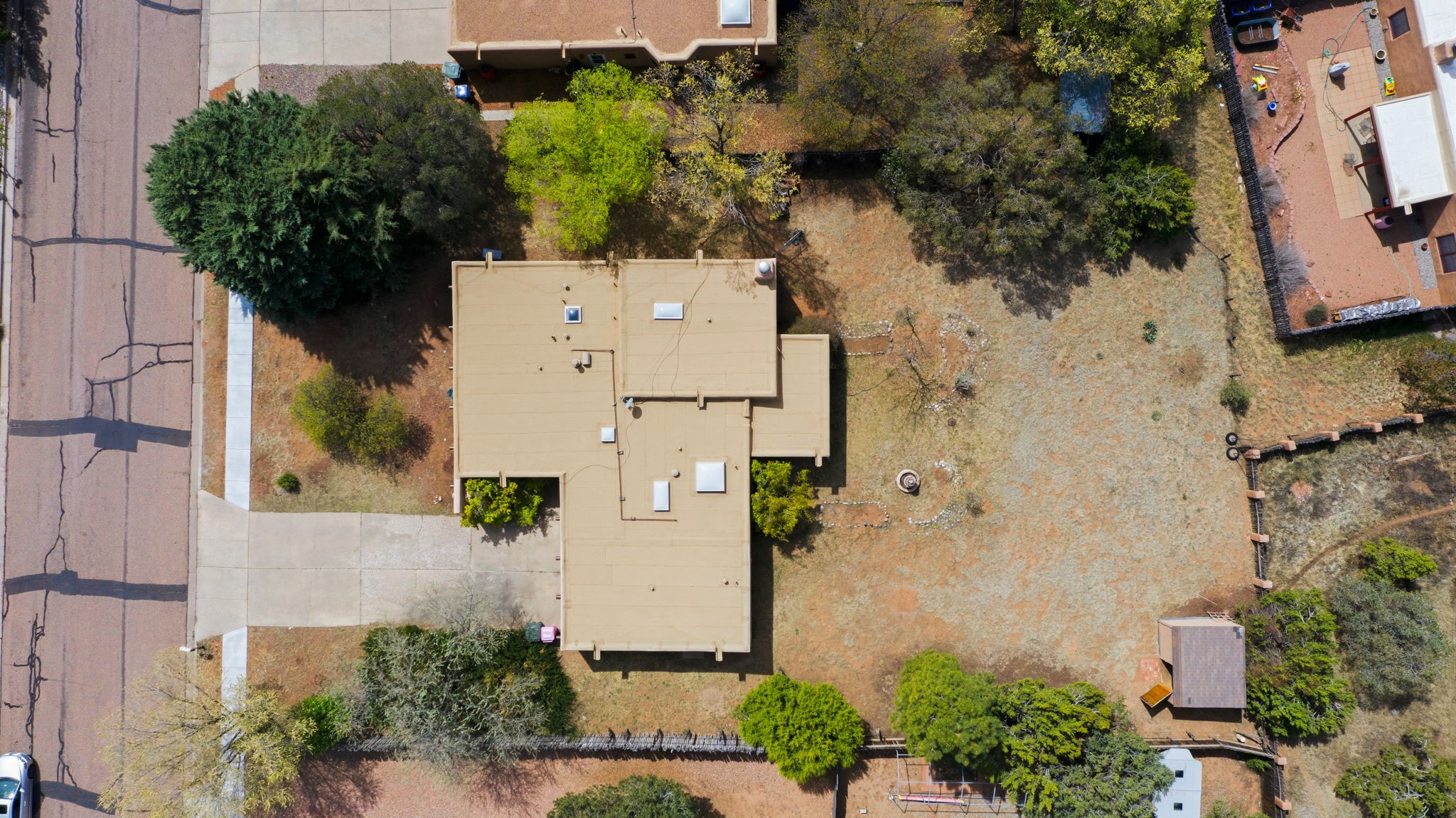 Situated on a generous 0.33-acre lot in a well-established Santa Fe neighborhood, 679 Callecita Jicarilla offers a comfortable blend of space, functionality, and recent updates. This 1,839-square-foot home features 3 bedrooms and 2 full bathrooms, thoughtfully laid out to support both everyday living and entertaining.The spacious living room is anchored by a fireplace, creating a warm and inviting atmosphere ideal for gathering or relaxing. Natural light filters through skylights, enhancing the home's airy feel while highlighting its classic Southwestern character.Recent improvements provide both peace of mind and modern appeal. A new bitumen roof was installed in 2025 and includes a 5-year warranty, along with replaced skylights and canales for improved drainage and durability. The interior has been freshly repainted, complemented by new carpeting throughout. Bathrooms have been tastefully refreshed in early 2026 with updated toilets, hardware, countertops, and light fixtures, offering a clean and contemporary feel.Additional features include a 2-car garage and a large storage shed, providing ample space for vehicles, tools, or hobbies. The hot water heater was serviced in November 2025, adding to the home's overall maintenance record.With its combination of solid construction, thoughtful updates, and a spacious lot, this property presents a wonderful opportunity to enjoy the Santa Fe lifestyle with room to make it your own.