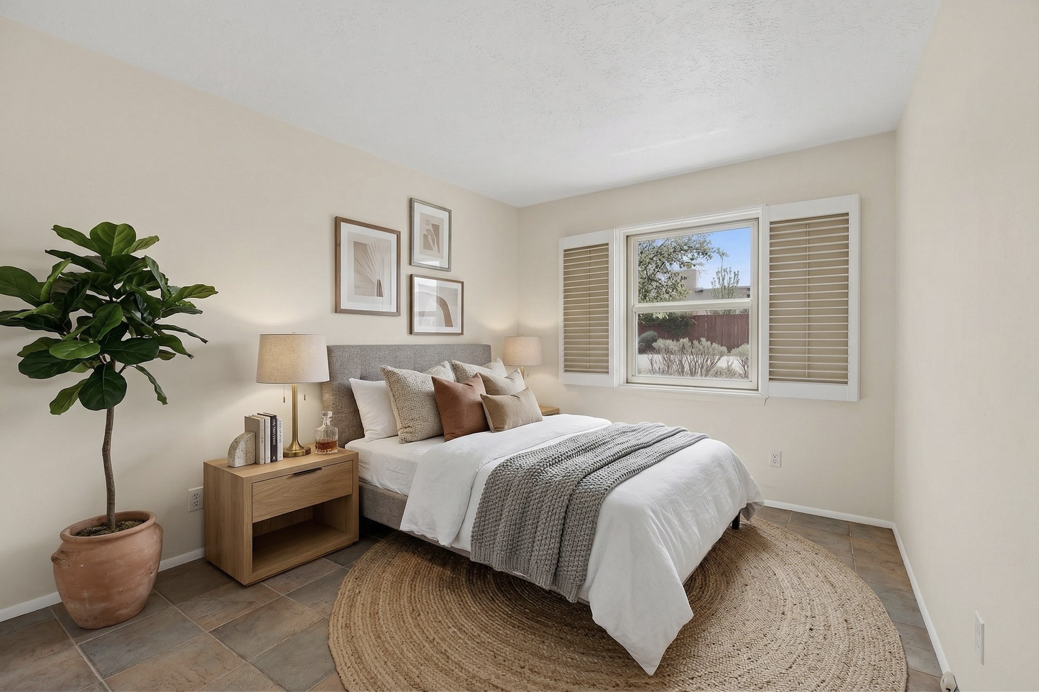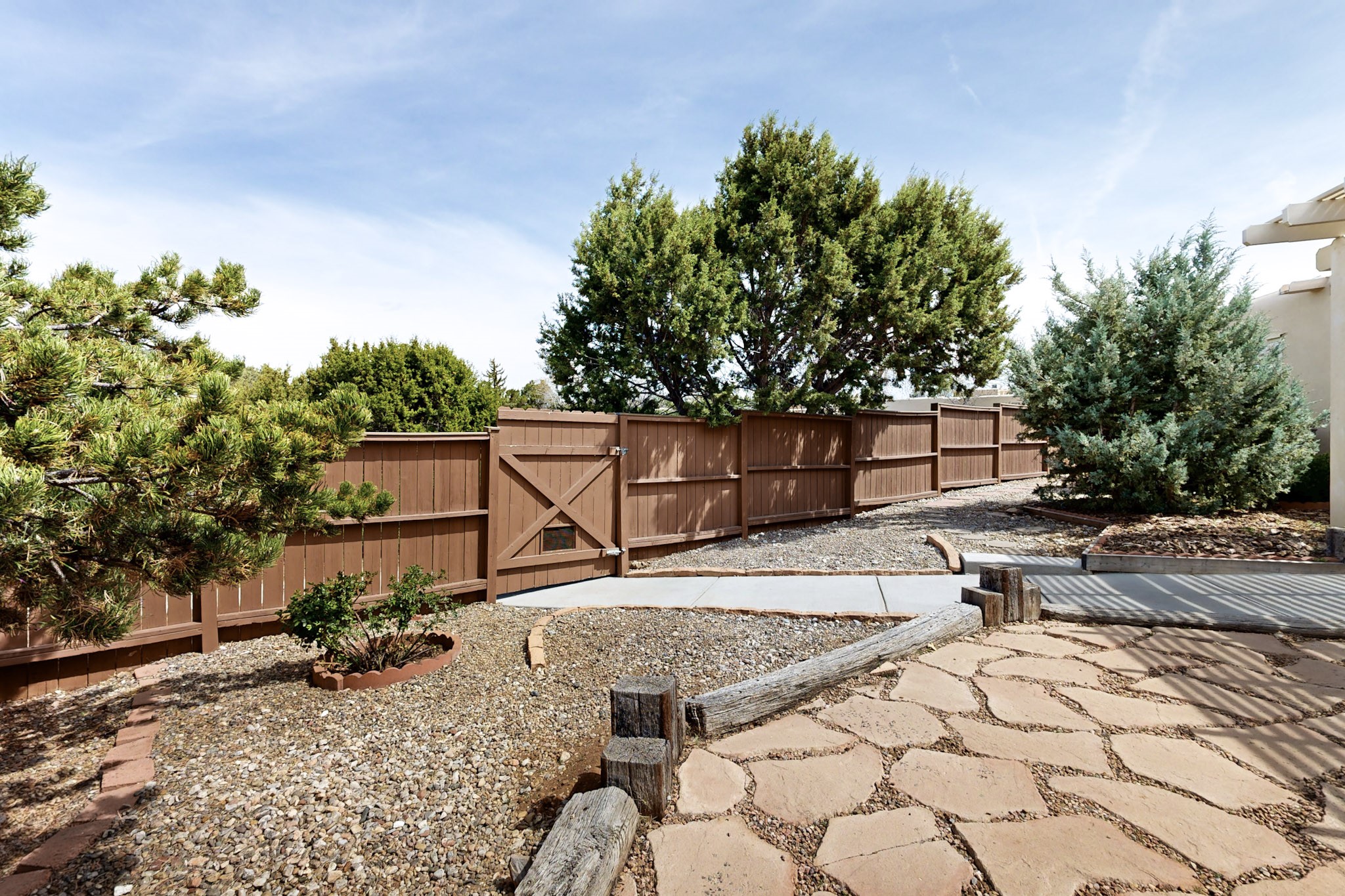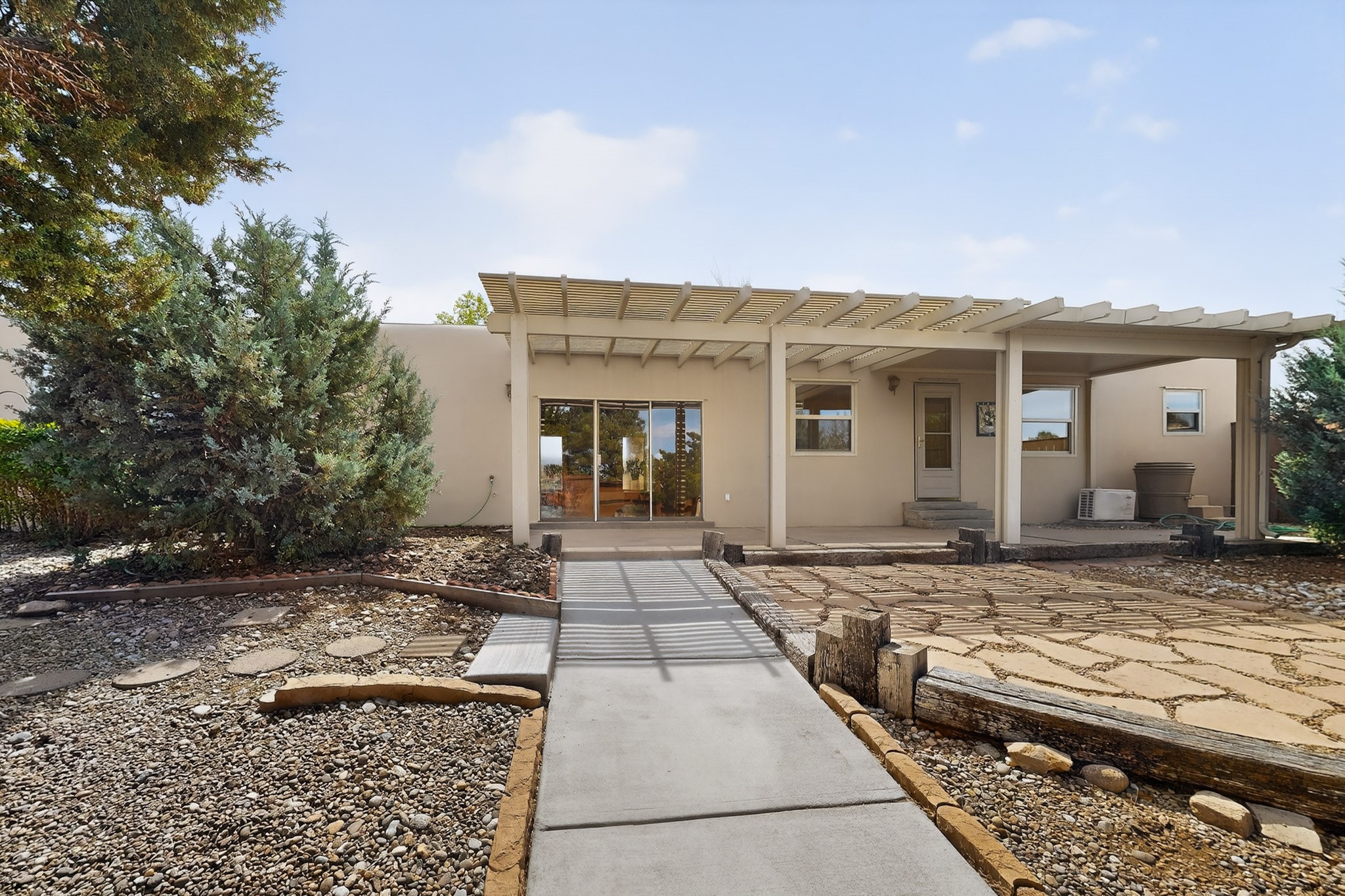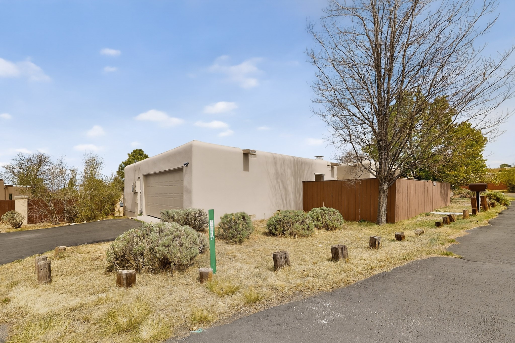 You will say "this is what I have been looking for"! Park Plazas is a very desirable subdivision, noted for the exceptional mature & varied trees. Great location for getting anywhere quickly, truly the center of the city, yet quiet & secluded. 9 miles of easy walking trails, always with mountain views. Neighbors will greet you - this is a friendly place! Choices for activities: community garden, pickle ball & tennis courts, large fenced dog play area. Park Plazas has a well-organized HOA, with approximately 440 homes, some two story, or adjoined town houses. With this property you are fortunate to find a single-family house: you are especially lucky because the corner lot location creates a sense of privacy with a large fence surrounding the property. The property has been so well-maintained, every major system in the house has been replaced in the past six years, new heating fall of 2025, plus additions with A/C, mini-split, solar (owned). Fence re-built in early 2026. All the "big tickets" items are done and the house eagerly awaits the new owner. The house offers open light-filled spaces. With almost 2000 sq ft you will find a bedroom wing with 3BR & 2BA, main bedroom is en-suite. The large living room, complete with wood-burning fireplace, opens to both shady & sunny backyard. You will be pleased to find a sun-filled dining room and also an eat-in kitchen. Bonus room, located off the kitchen, would be ideal for many uses - home office, media room, quiet reading room - with direct access to the portal and treed backyard. A two-car garage also makes the house ideal. Yard is completely fenced, offering privacy anda great play space for a happy dog! A gate in the backyard fence invites you to the walking trails. Photos will show you the living room has two steps, which have never bothered the senior citizen who is giving up this special house after many happy years in Santa Fe. Some computer generated photos appear as furnished. No short term rentals allowed.