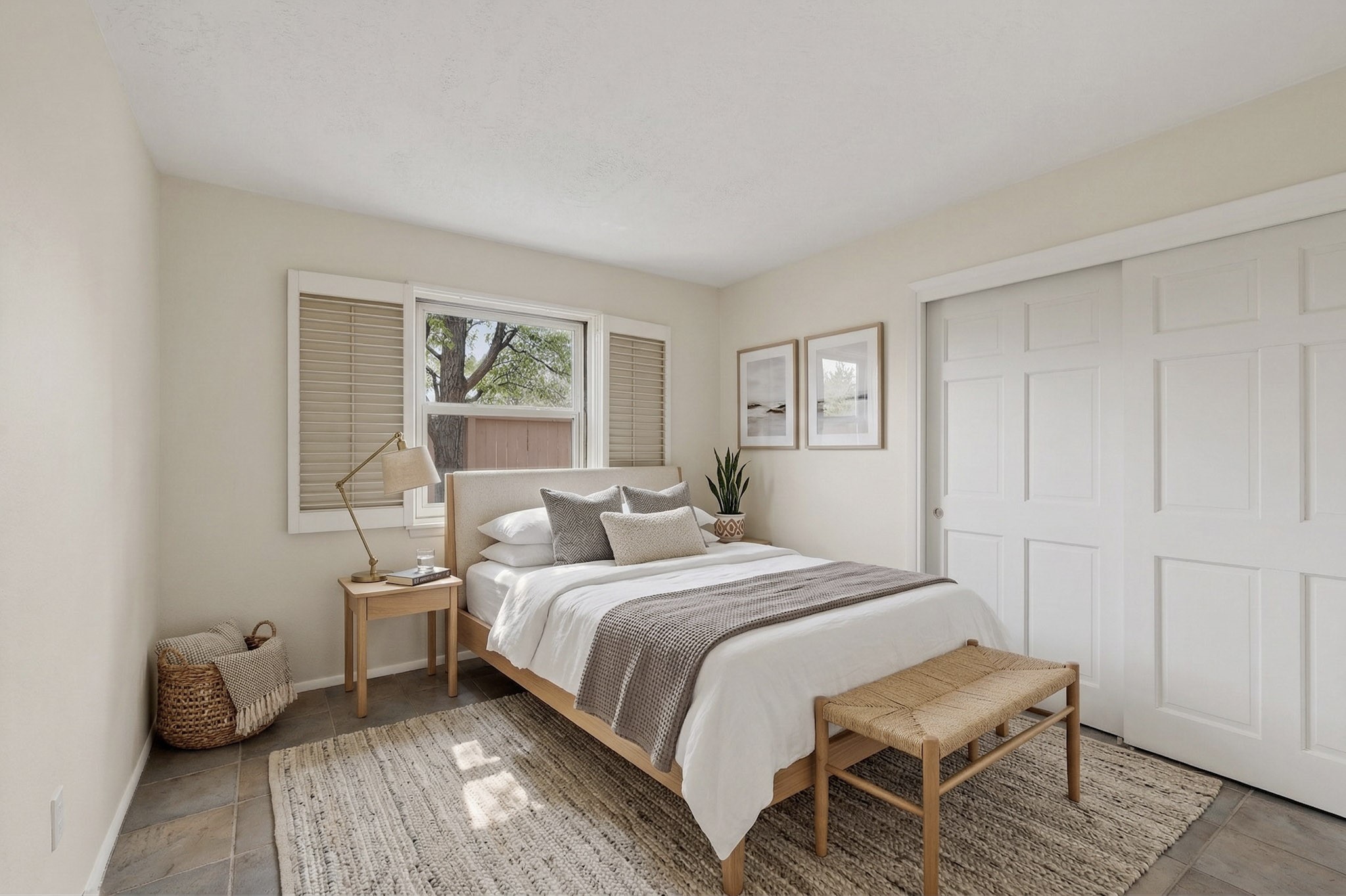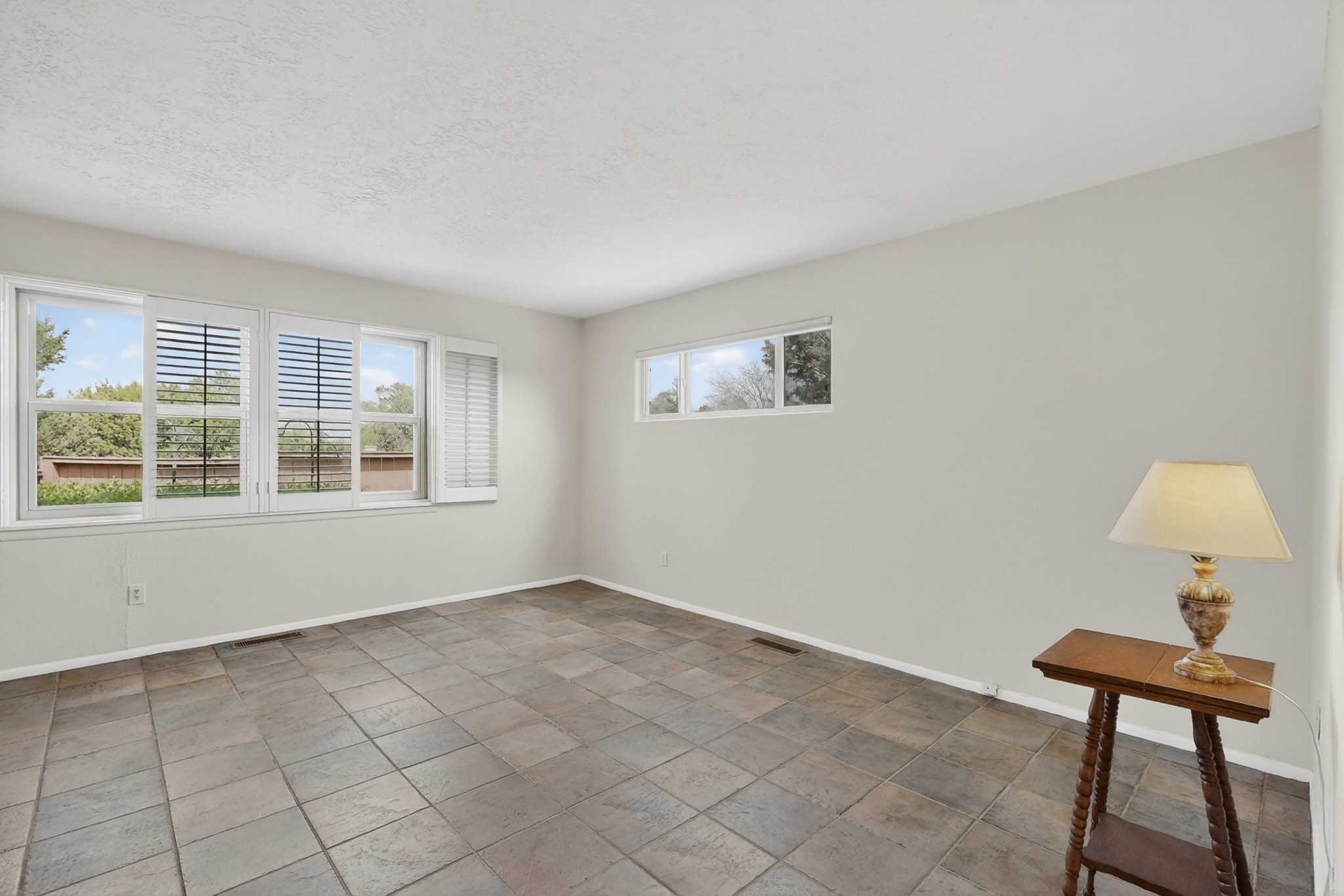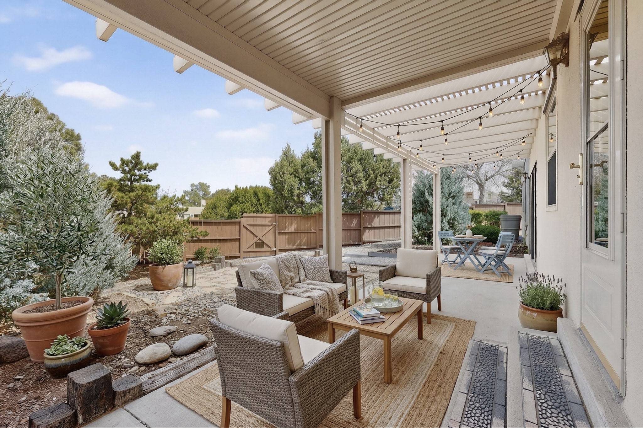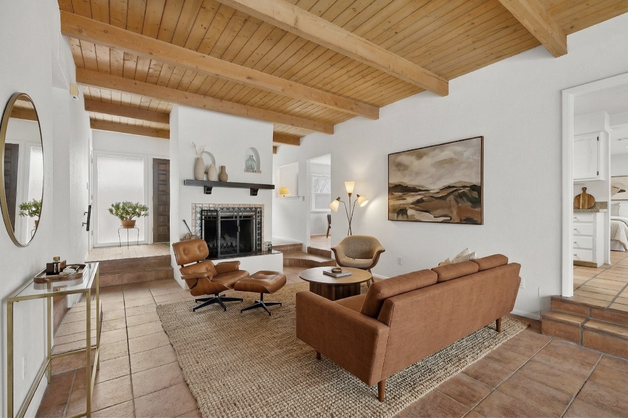 You will say "this is what I have been looking for"! Park Plazas is a very desirable subdivision, noted for the exceptional mature & varied trees. Great location for getting anywhere quickly, truly the center of the city, yet quiet & secluded. 9 miles of easy walking trails, always with mountain views. Neighbors will greet you - this is a friendly place! Choices for activities: community garden, pickle ball & tennis courts, large fenced dog play area. Park Plazas has a well-organized HOA, with approximately 440 homes, some two story, or adjoined town houses. With this property you are fortunate to find a single-family house: you are especially lucky because the corner lot location creates a sense of privacy with a large fence surrounding the property. The property has been so well-maintained, every major system in the house has been replaced in the past six years, new heating fall of 2025, plus additions with A/C, mini-split, solar (owned). Fence re-built in early 2026. All the "big tickets" items are done and the house eagerly awaits the new owner. The house offers open light-filled spaces. With almost 2000 sq ft you will find a bedroom wing with 3BR & 2BA, main bedroom is en-suite. The large living room, complete with wood-burning fireplace, opens to both shady & sunny backyard. You will be pleased to find a sun-filled dining room and also an eat-in kitchen. Bonus room, located off the kitchen, would be ideal for many uses - home office, media room, quiet reading room - with direct access to the portal and treed backyard. A two-car garage also makes the house ideal. Yard is completely fenced, offering privacy anda great play space for a happy dog! A gate in the backyard fence invites you to the walking trails. Photos will show you the living room has two steps, which have never bothered the senior citizen who is giving up this special house after many happy years in Santa Fe. Some computer generated photos appear as furnished. No short term rentals allowed.