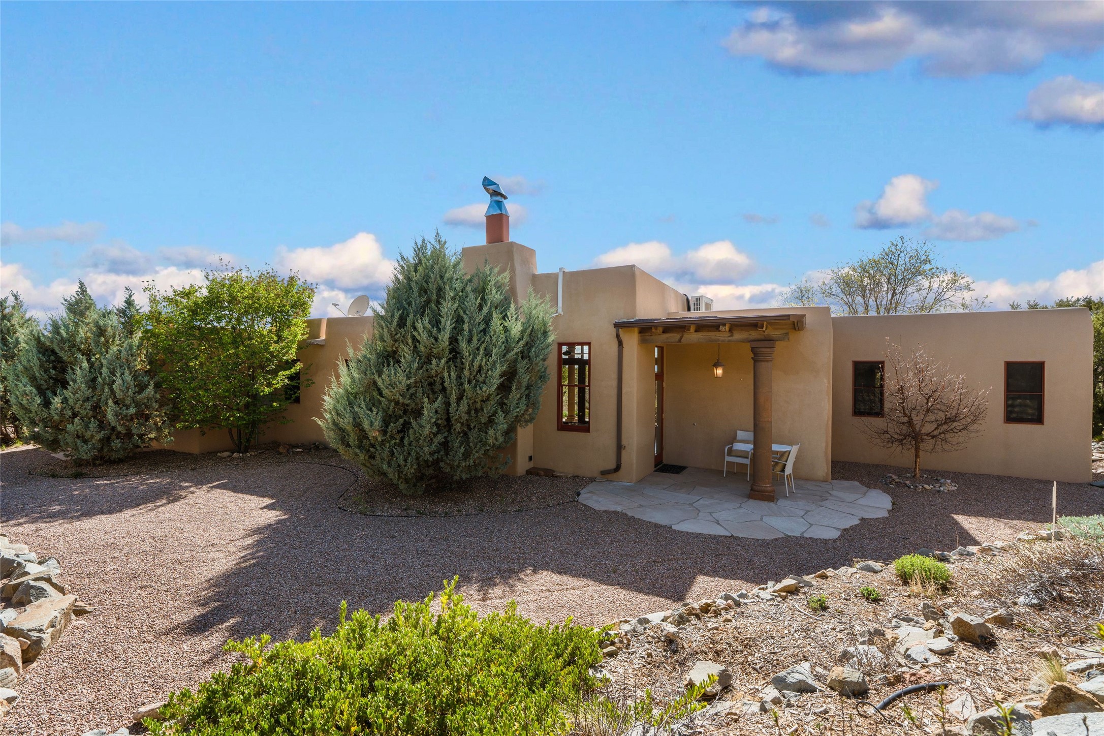 A sanctuary in nature while only minutes from town. Beautiful landscape, big views and custom finishes create this 2.7 acre dream. Inside the home showcases soaring ceilings and timeless natural finishes cultivating earthy elegance throughout. This space invites connection to nature at every turn: prepare meals while taking in glowing sunsets, unwind in the bath feeling surrounded by nature or find your creativity in the studio tucked into a private natural spot. Hone your skills in the large workshop or fine tune your gardening talents in the greenhouse. With a hot tub to relax and enjoy views, multiple patios to bring living outside, fruit trees and grape vines to partake of, solar to keep costs down and full irrigation, this is a haven, a refuge. Expansive grounds, tranquil atmosphere and big country feel-yet just minutes from town-this one-of-a-kind property offers the perfect balance of seclusion, beauty and convenience. Well maintained with many tasteful updates. Come and experience.