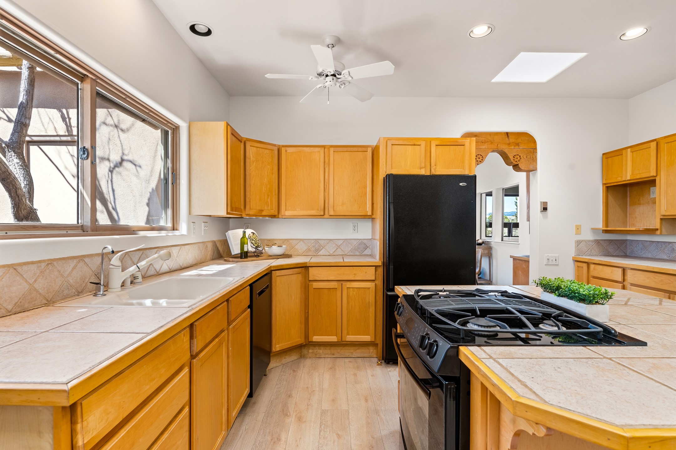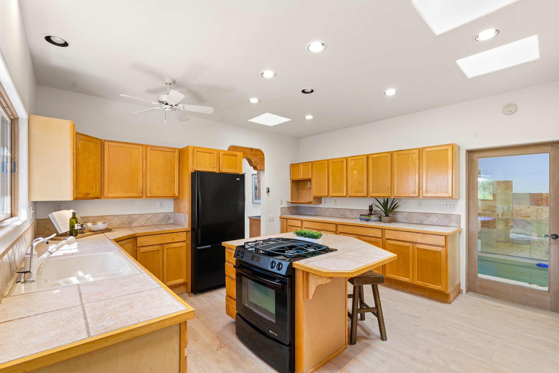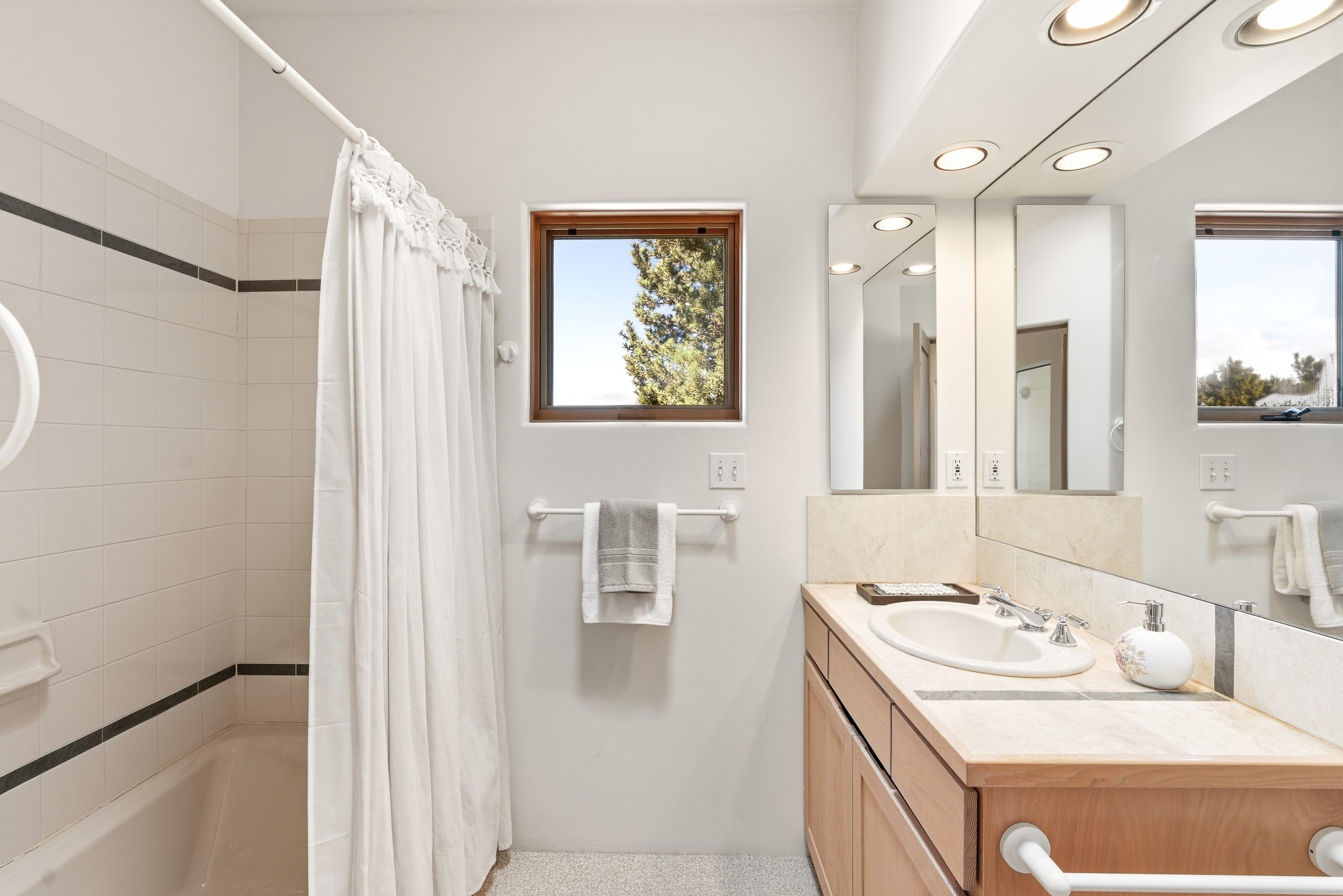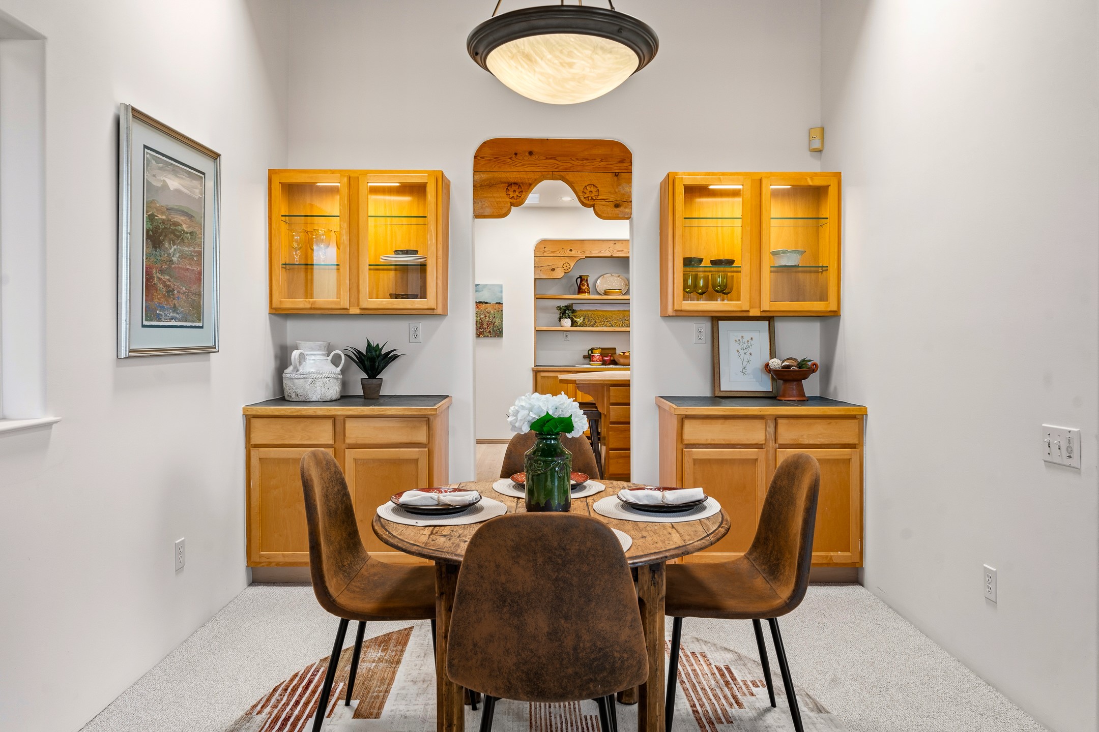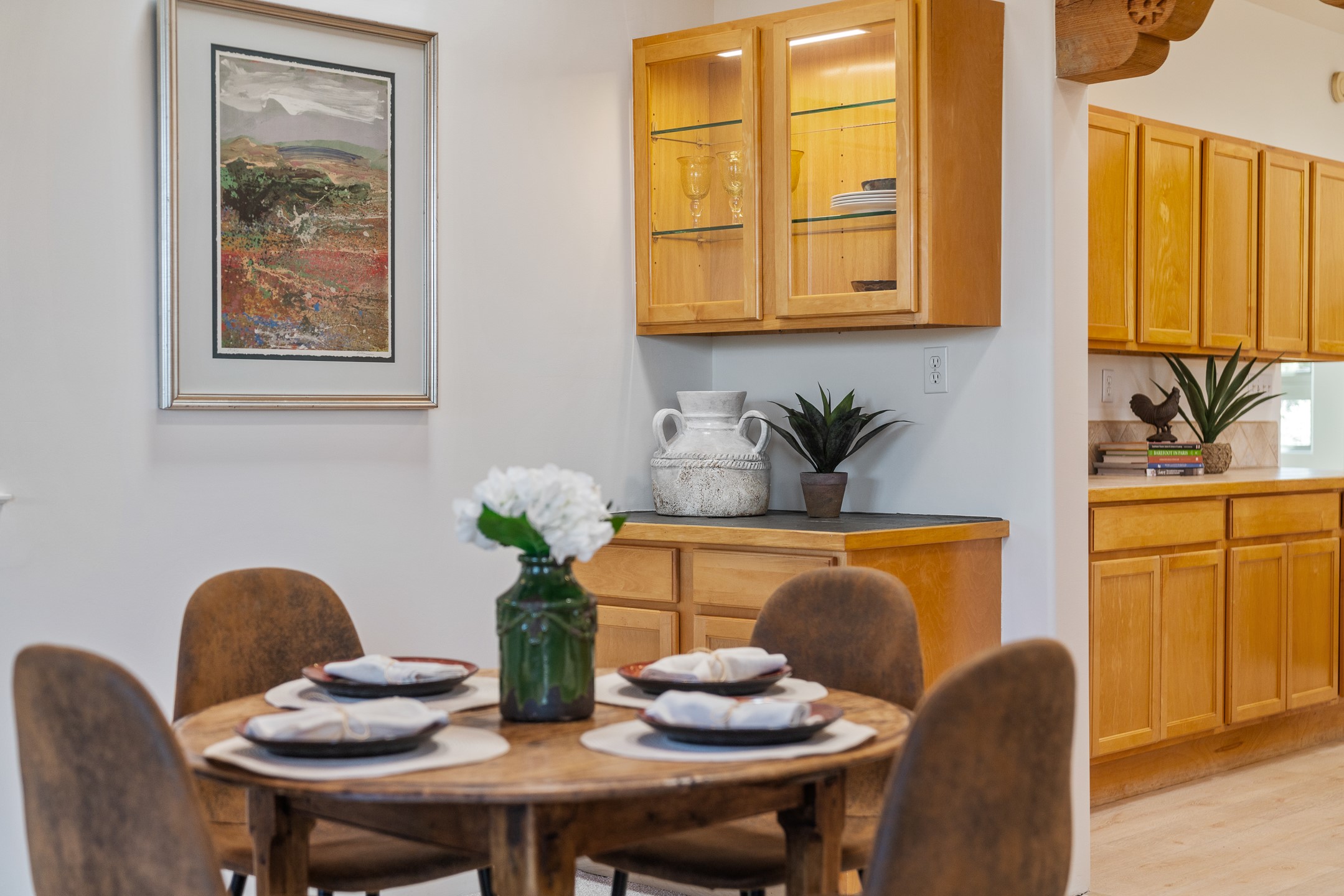 Sited on 1.6 acres in Eldorado, this 2,700 sq. ft. single-level home offers a rare blend of character, privacy, and thoughtful design--available for the first time since it was custom built in 1996. Surrounded by mature landscaping, the property is both welcoming and serene.The main living and dining area features a classic wood burning fireplace, vigas, and direct access to a charming front courtyard with a deep west-facing portal draped in mature wisteria--perfect for outdoor living and sunset evenings.A truly unique feature, the indoor heated lap pool serves as a central architectural element, separating the bedroom wings while enhancing privacy and creating a sense of retreat.The kitchen remains in its original configuration, offering generous space and a central cooking island. This opens to a covered portal within the courtyard.The bedrooms are well positioned for privacy. One guest bedroom opens directly to the enclosed backyard under a covered portal--ideal for a home office. The spacious primary suite also enjoys backyard access, with a covered sitting area that extends the home's connection to its beautifully landscaped surroundings.With solar in place, abundant natural light from the many skylights throughout and a distinctive layout, this Eldorado home offers a rare opportunity on a truly special property with mountain views.