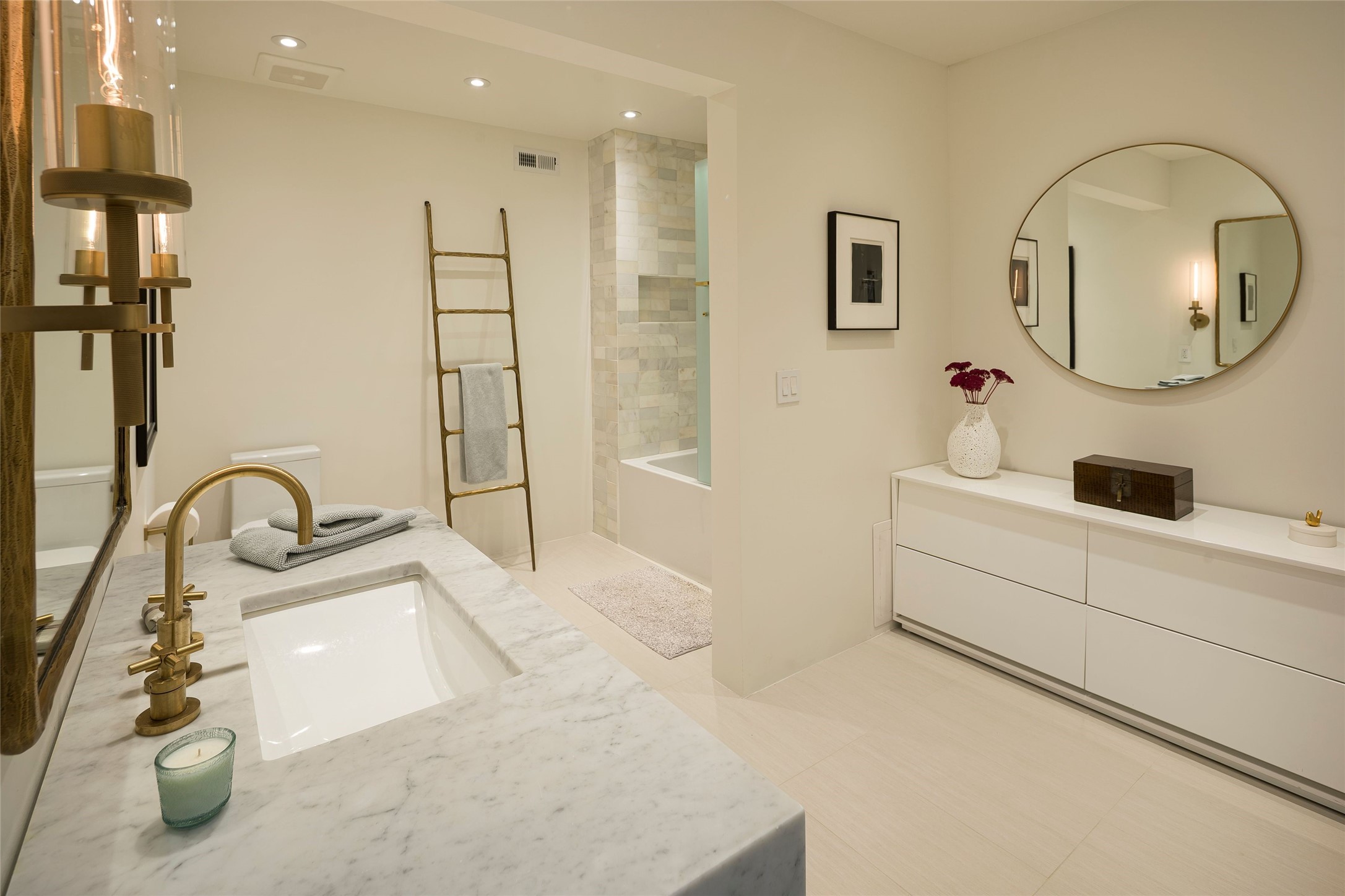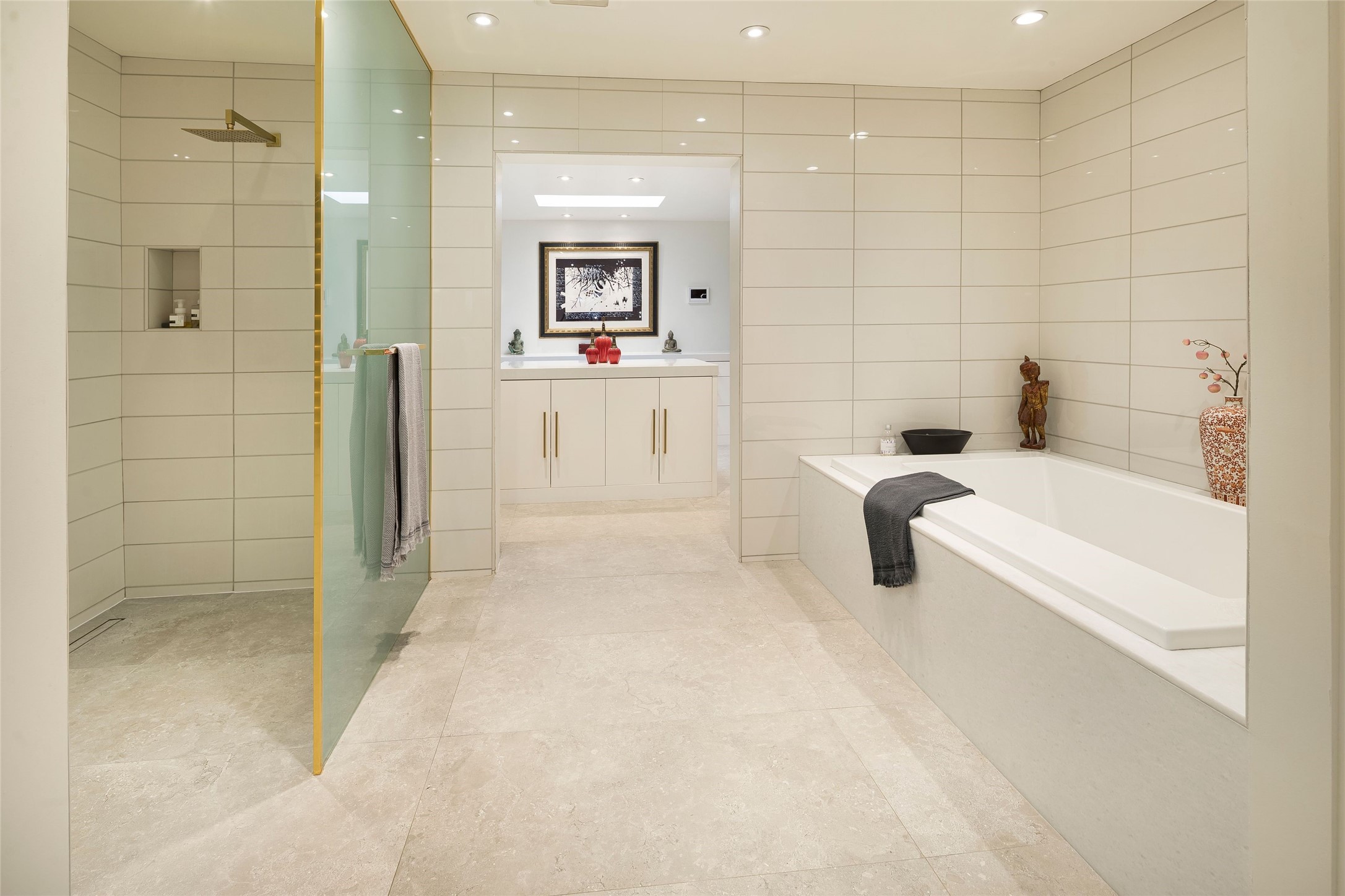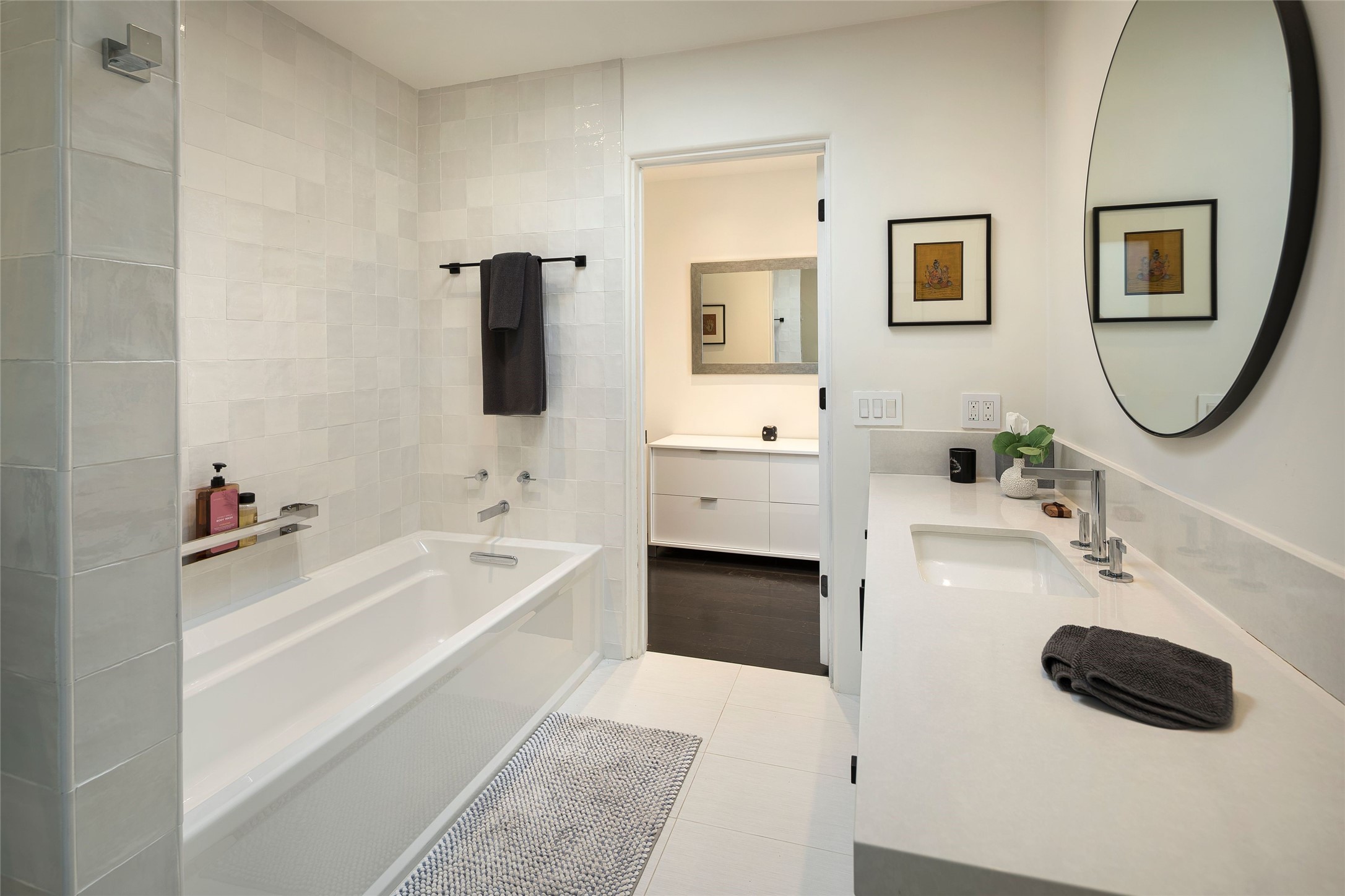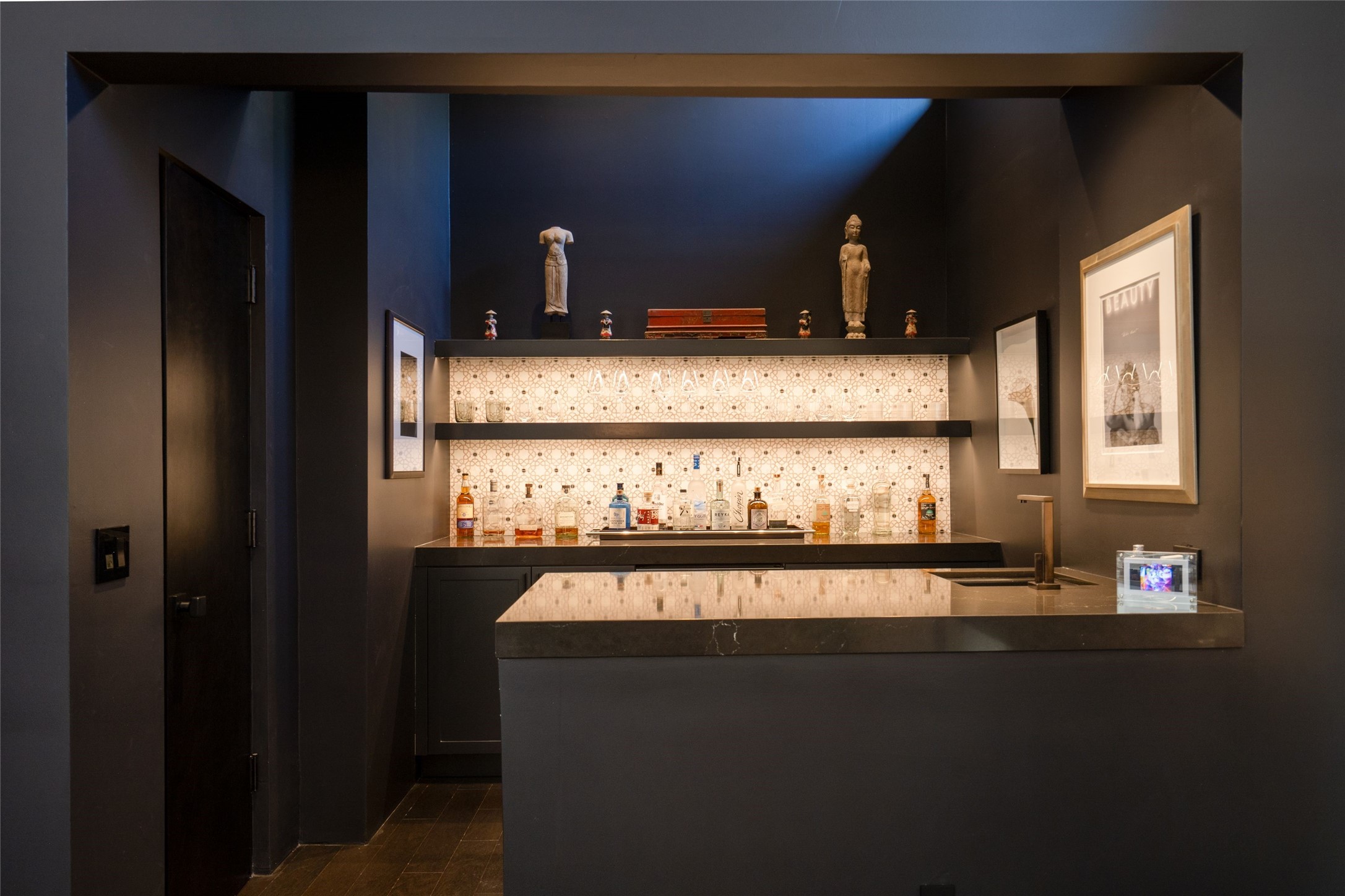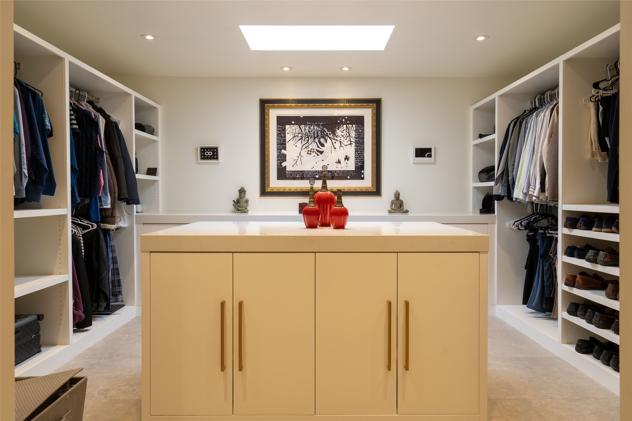 Exquisite Los Miradores 4-bedroom, 4.5-bath condo, where modern elegance meets artistic finesse. This stunning residence was reimagined and remodeled in 2020-2021, showcasing a balanced blend of wood, steel, glass, and stone that appeals to the most discerning tastes. As you enter, you'll be greeted by an impressive entry gallery with a clerestory window that bathes the space in natural light. The formal dining room, complemented by a wet bar, invites you to host dinner parties and soirees. Two-story grand living room includes sliding glass doors flanked by sidelights connecting to an entertainment patio complete with a gas fire pit and a contemporary steel pergola, ideal for alfresco dining under the New Mexican skies. Deluxe gourmet kitchen, featuring custom cabinetry, elegant quartz countertops, and top-of-the-line appliances, including a Wolf six-burner cooktop with griddle, Wolf wall oven, and Sub-Zero side-by-side refrigerator/freezer. Expansive center island and large breakfast area make this kitchen a culinary gathering area. The luxurious owner's suite, designed as a private sanctuary with a spa-like bath promises relaxation and tranquility. A guest suite is conveniently located on the ground floor, alongside a dedicated office and media room. Upper level, with two additional suites, each with en-suite baths, provide privacy for family or guests. High-walled patios and beautifully landscaped gardens. An oversized two-car garage ensures ample space for your vehicles and storage needs. The gated community of Los Miradores offers many amenities, including a seasonal pool, workout facility, tennis court and security patrol.