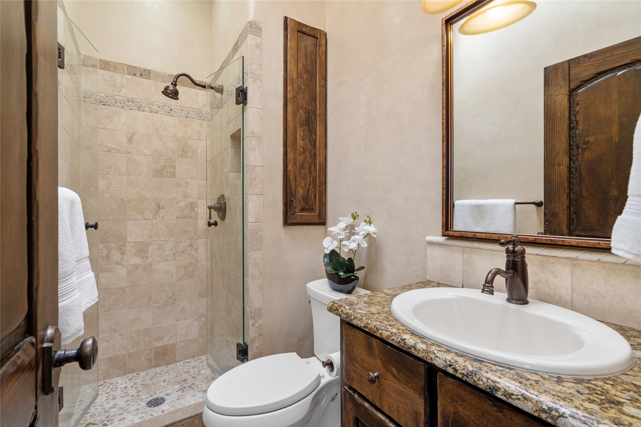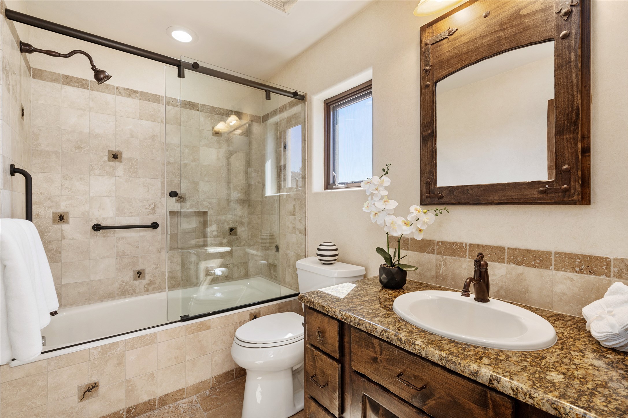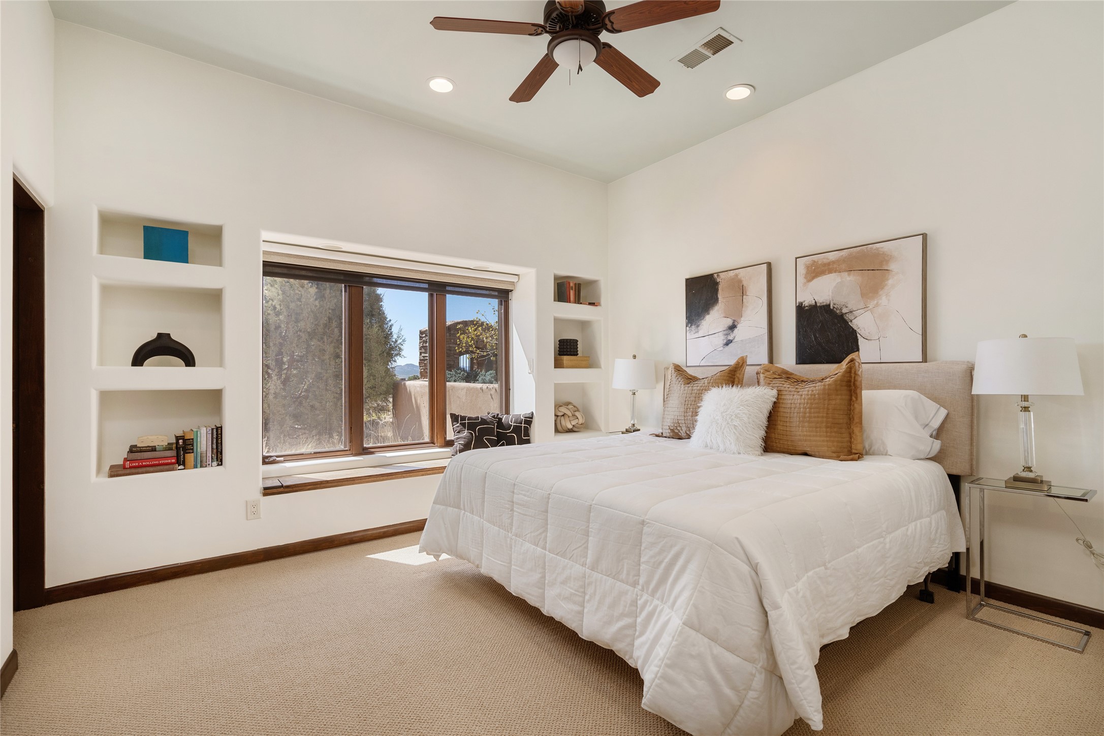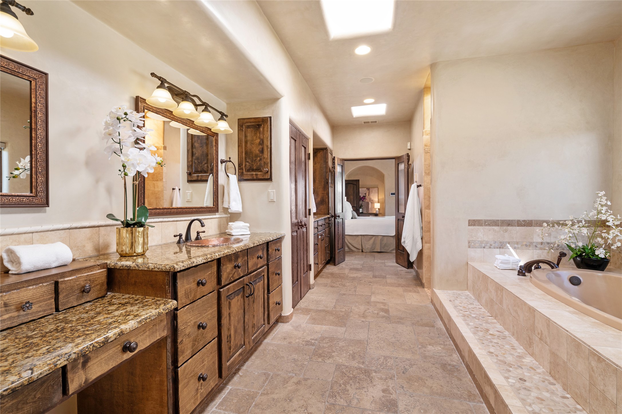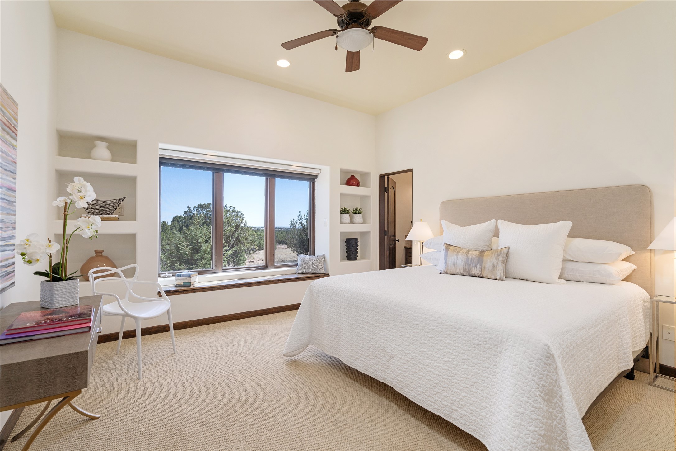 PANORAMIC VIEWS AND TIMELESS DESIGN IN LAS CAMPANAS. This refined residence in the Las Campanas community combines sweeping mountain vistas with many updates and enduring style in a hard-to-find 4 bedroom with a dramatic architecture. An inviting courtyard entry opens to generous living spaces framed by a dramatic sliding glass wall, creating seamless indoor-outdoor living. Towering viga-lined ceilings and plaster walls frame the spaces. The gourmet kitchen features dual Sub-Zero refrigerators, a Sub-Zero ice maker, and expanded storage. The Owners' suite offers a quiet and spacious retreat, while a large media/game room provides flexibility for entertainment or relaxation. Recent enhancements include upgraded landscaping, refreshed interiors, and mechanical improvements that elevate both comfort and efficiency. Outdoor areas are designed for year-round enjoyment, with covered dining spaces, a pizza oven, and xeric, drip-irrigated gardens that are both lush and easy to maintain. Residents enjoy close proximity to The Club at Las Campanas, with spa, fitness, and dining amenities (membership available through the private Club at Las Campanas) as well as direct access to miles of walking paths. A move-in ready home blending elegant finishes, multiple upgrades, and the best of Santa Fe living.