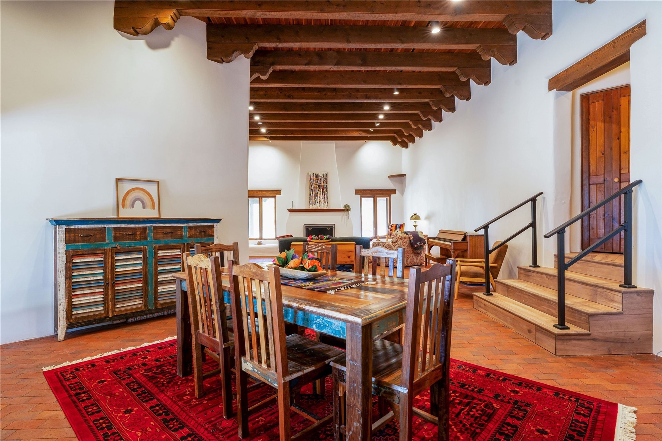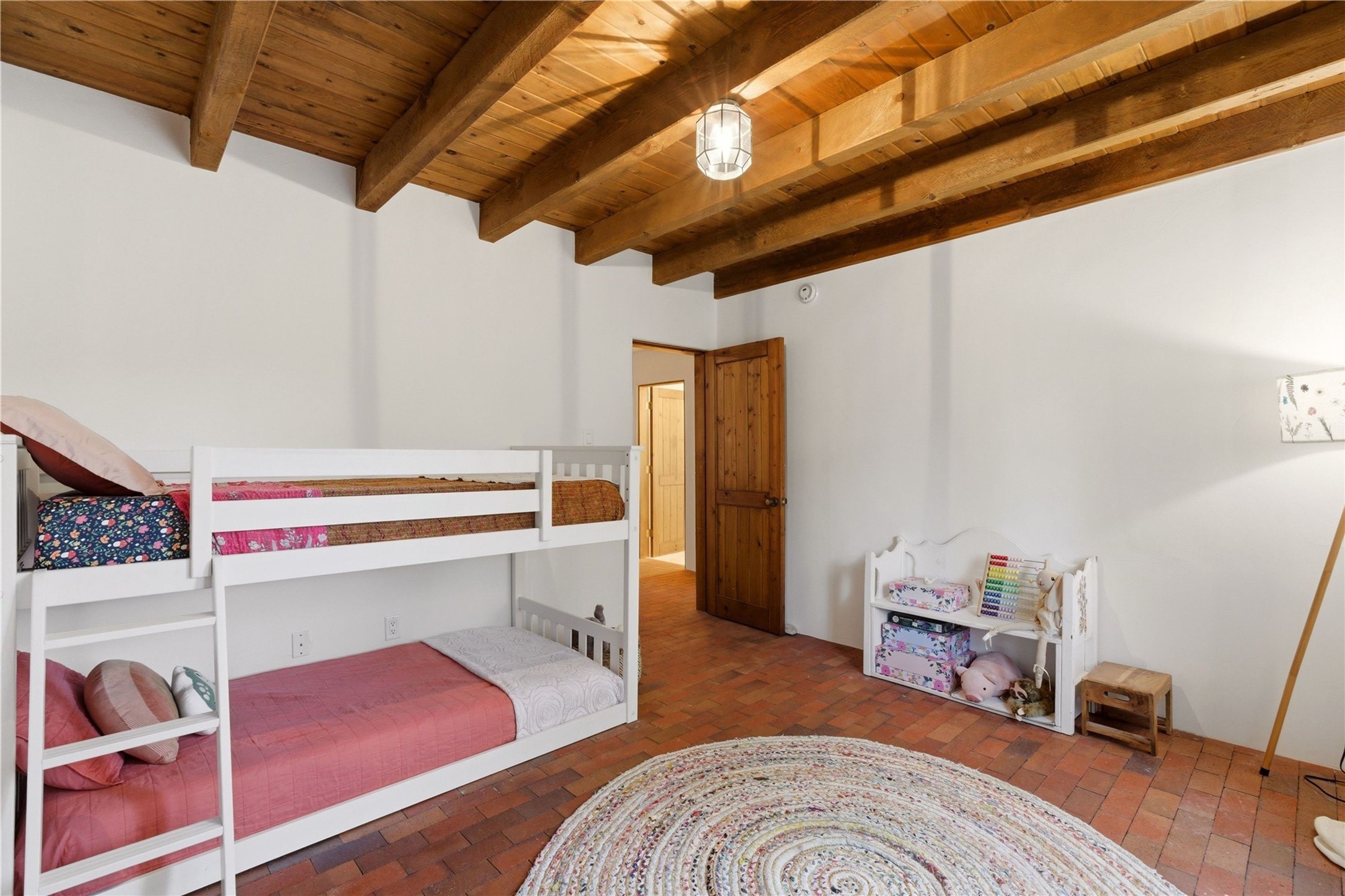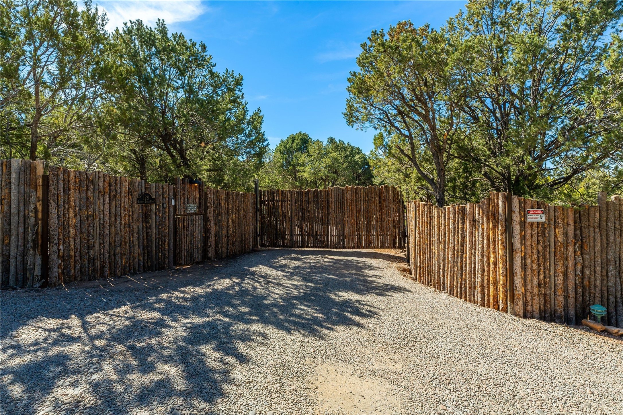 Updated Bishops Lodge Road 3-bedroom 2.5-bath home situated off the road on 1.18 wooded acres with mountain views and only 10 minutes from the vibrant Santa Fe Plaza. Recent improvements include new kitchen cabinets and appliances, new master and secondary bathrooms, new floors throughout the house, new mini splits, new front fence and driveway gates and more. Home includes 2 living areas, one with fireplace. Delightful contemporary sage kitchen is appointed with large center island, elegant nicho, light wood beams, farmhouse sink and new, high-end stainless-steel appliances. Separation of primary bedroom from two guest bedrooms for maximum privacy. In addition, there is a versatile, 1,038 sq. ft. lower-level floor which provides flex space for a recreational room plus home office and studio. 2-car attached garage. Enjoy living in a coveted Santa Fe location that is private yet at the same time close to all the cultural, culinary and recreational amenities of the area.