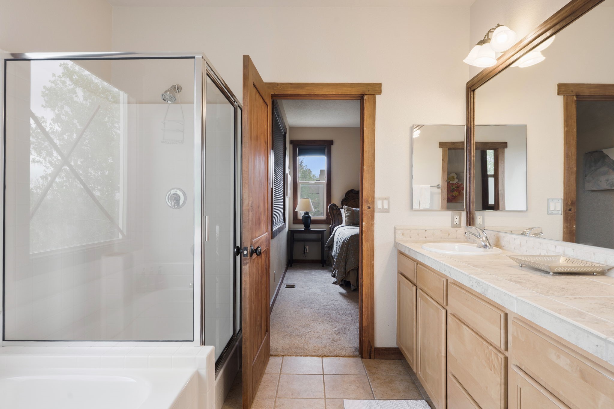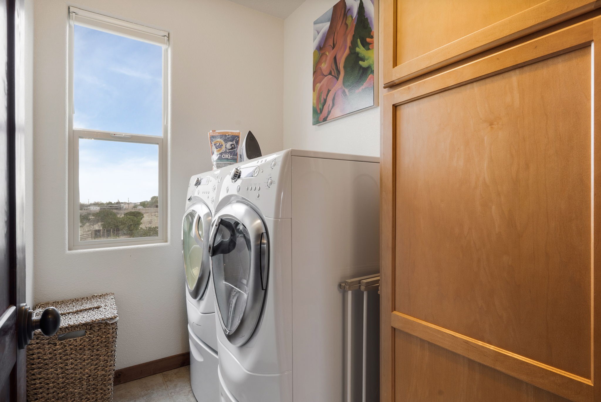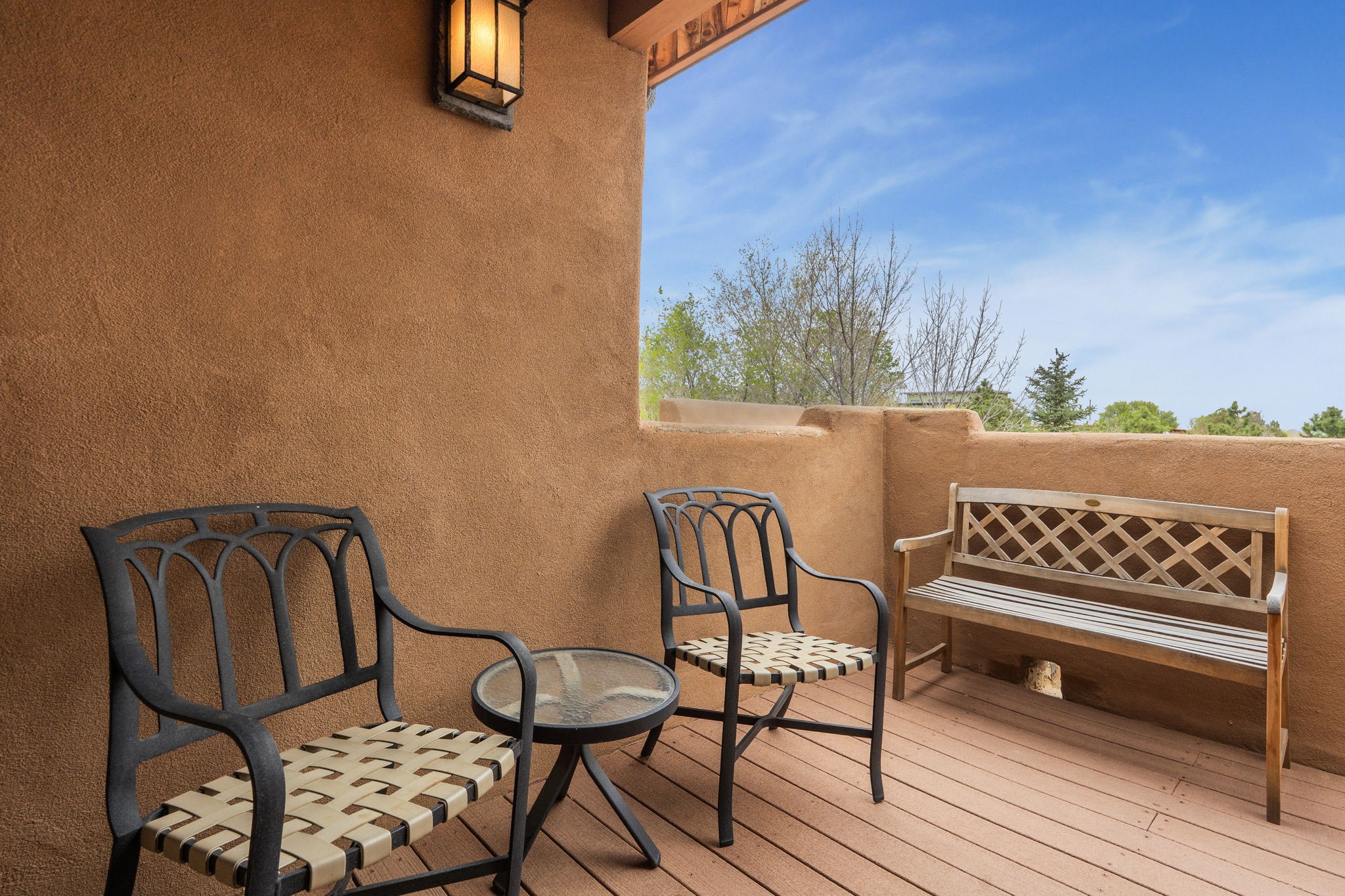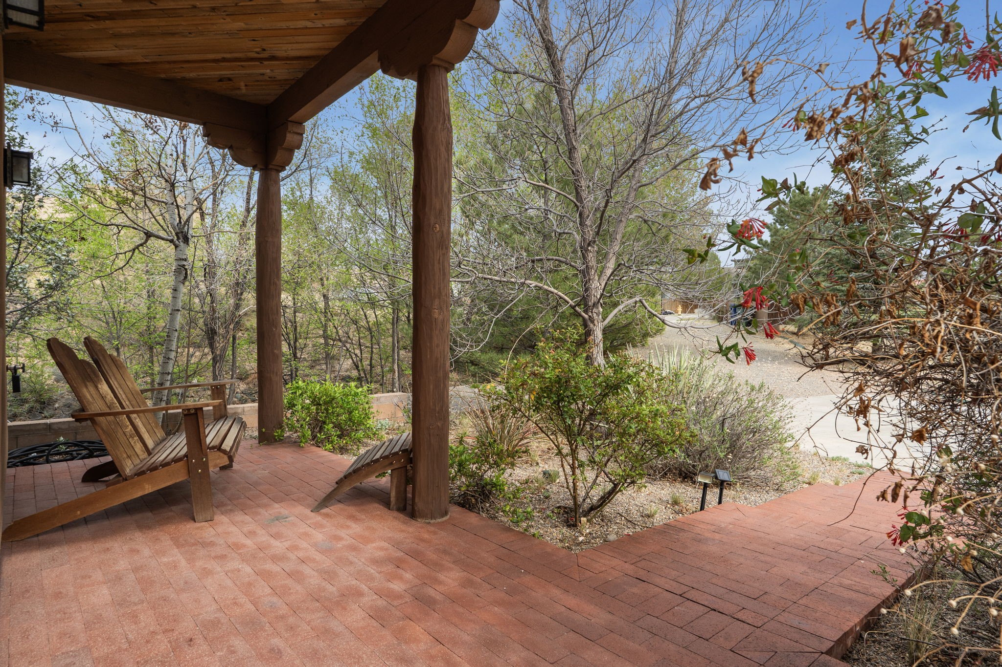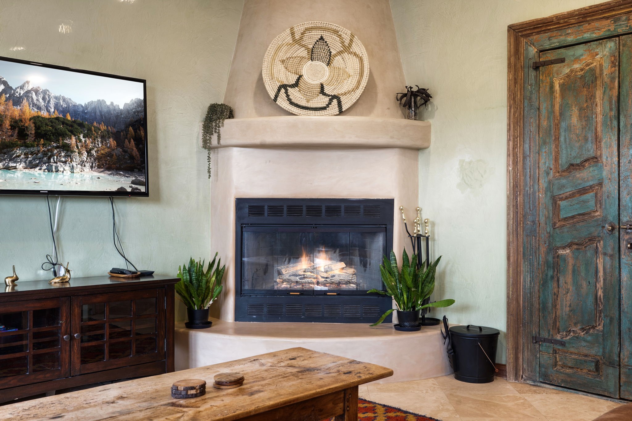 You deserve the finer things in life, and this property is one of them!! Don't miss this gorgeous home on an extremely rare in-town lot that is almost an acre. No expense has been spared in order to create this Santa Fe dream home. Upon entering, you are greeted by a grand foyer with a large crystal chandelier. Colorful prisms of light dance off the warm venetian plaster walls. In the open concept living area, there is a cozy wood-burning fireplace, ornate carved doors throughout, and the custom kitchen boasts rare "Fantasy Brown" honed marble countertops, a lively Mexican hand-painted diamond backsplash, and high-end appliances. A kitchen window graces the sink, so that you can look out over the field next to the house as you prepare dinner. Upstairs you will find three well-appointed bedrooms, a primary suite with luxurious bath and closet, and a large laundry room. There is a deck which offers a view of the city streets. The walled backyard is nothing short of a romantic secret garden, with an outdoor fireplace, box hedges and aspens, and a fountain. The garage is even heated and has windows, offering a flex space for hobbies, a game room, or hanging out. Being at the end of the cul-de-sac ensures maximum privacy. Schedule a showing today and make your dream home a reality!