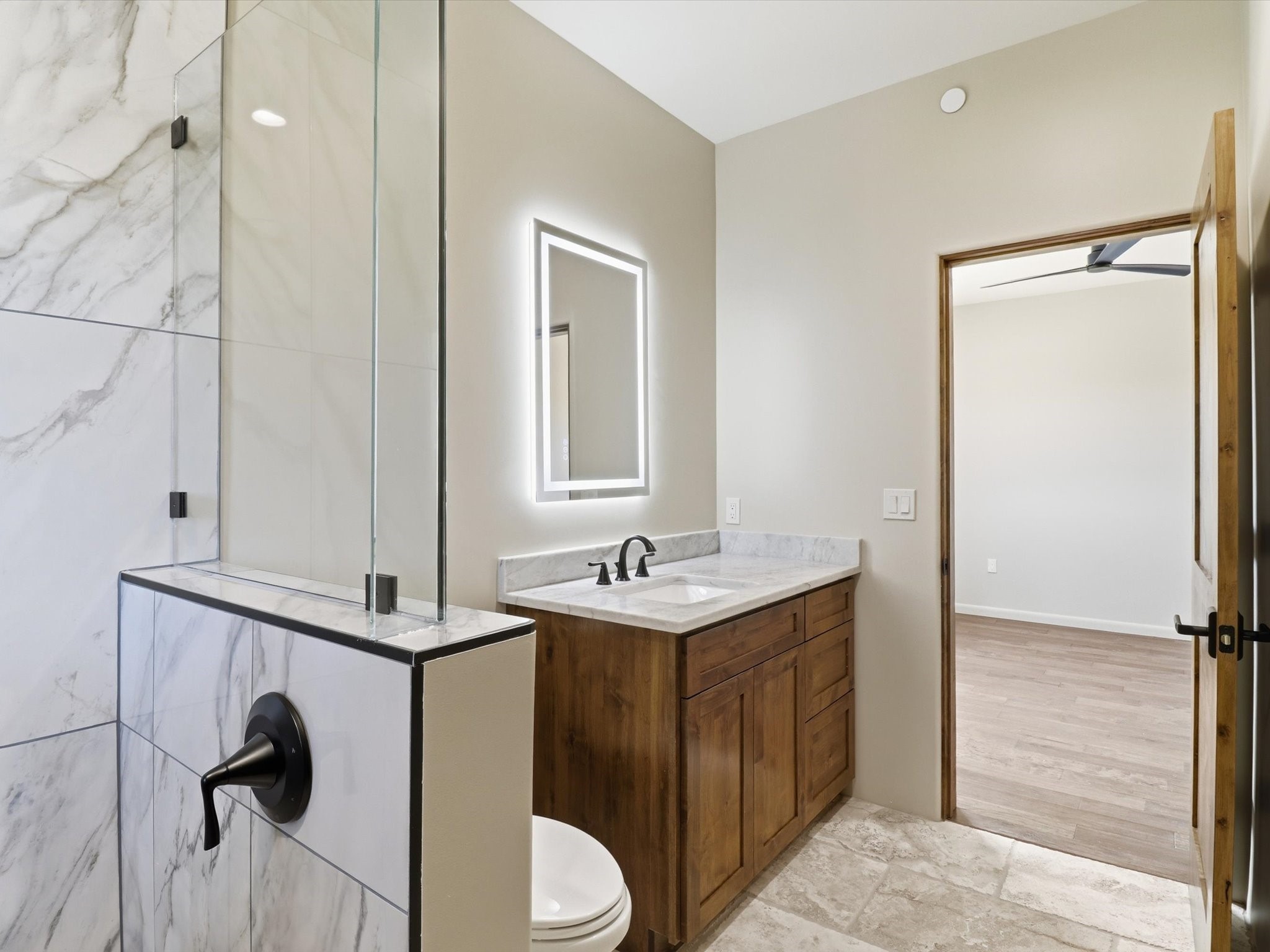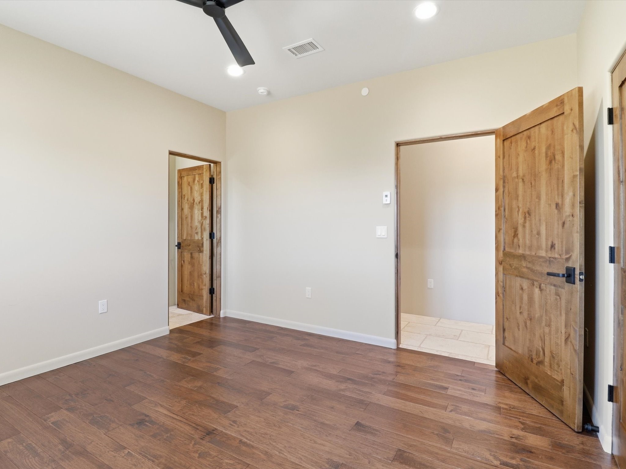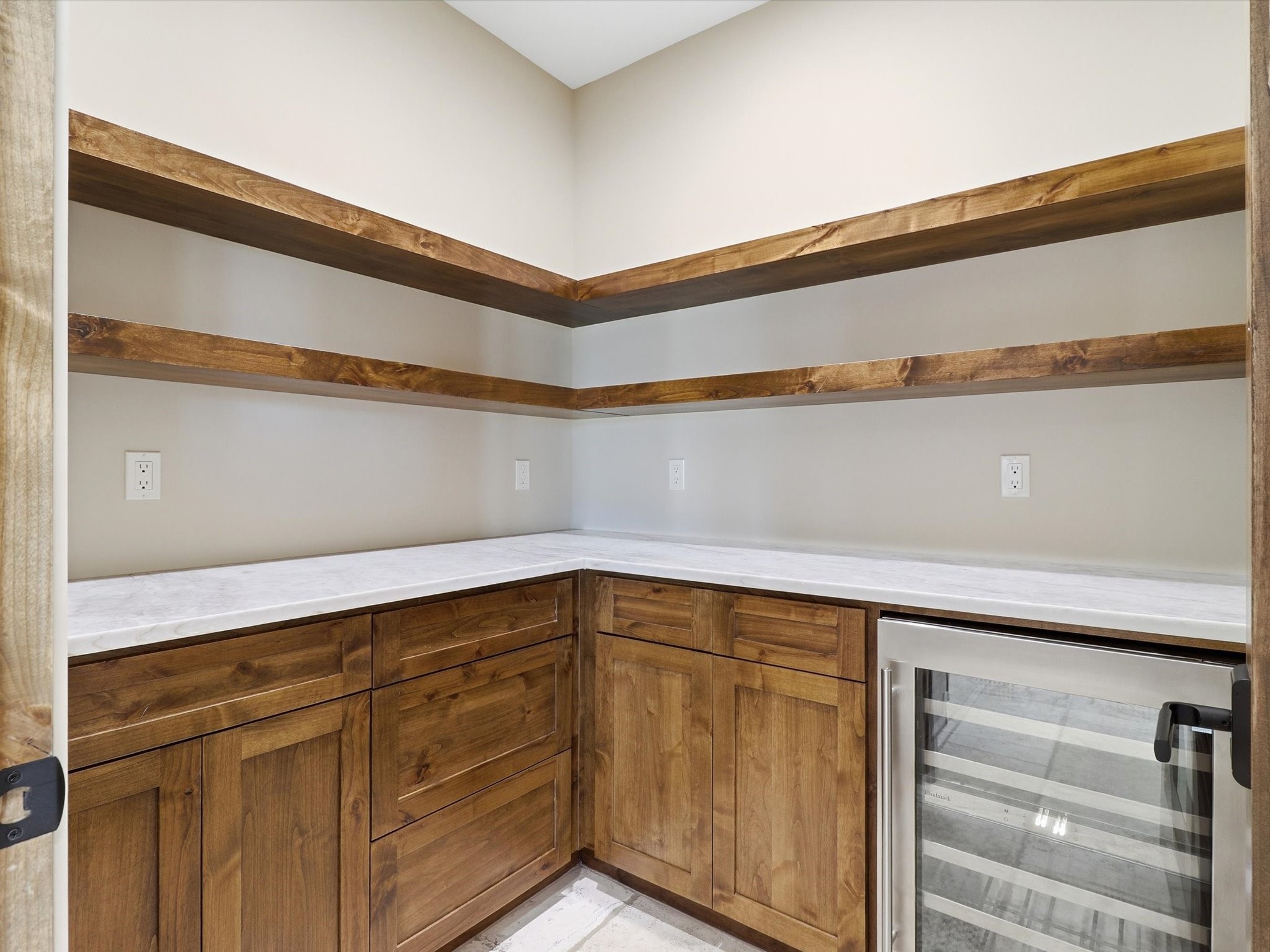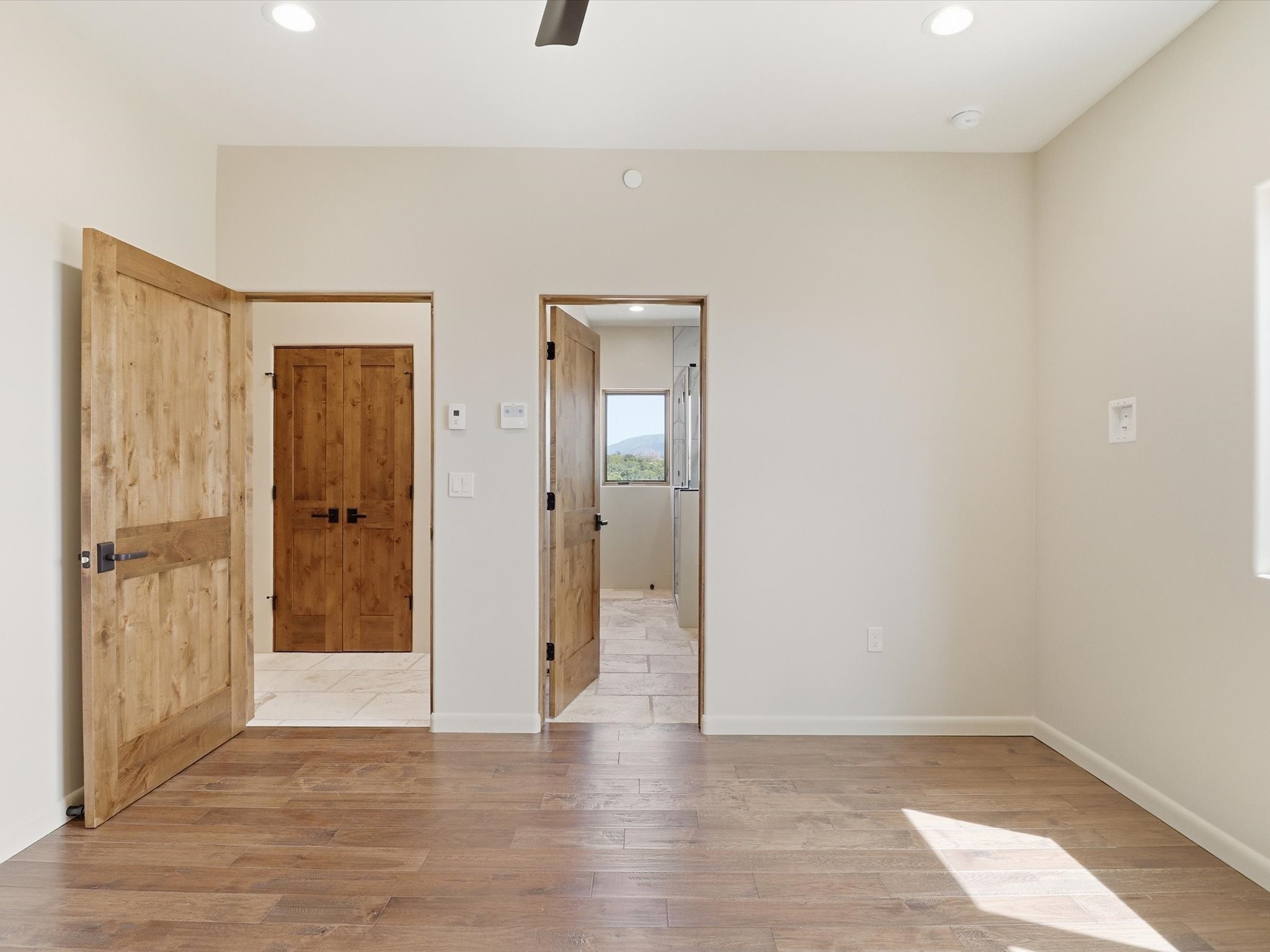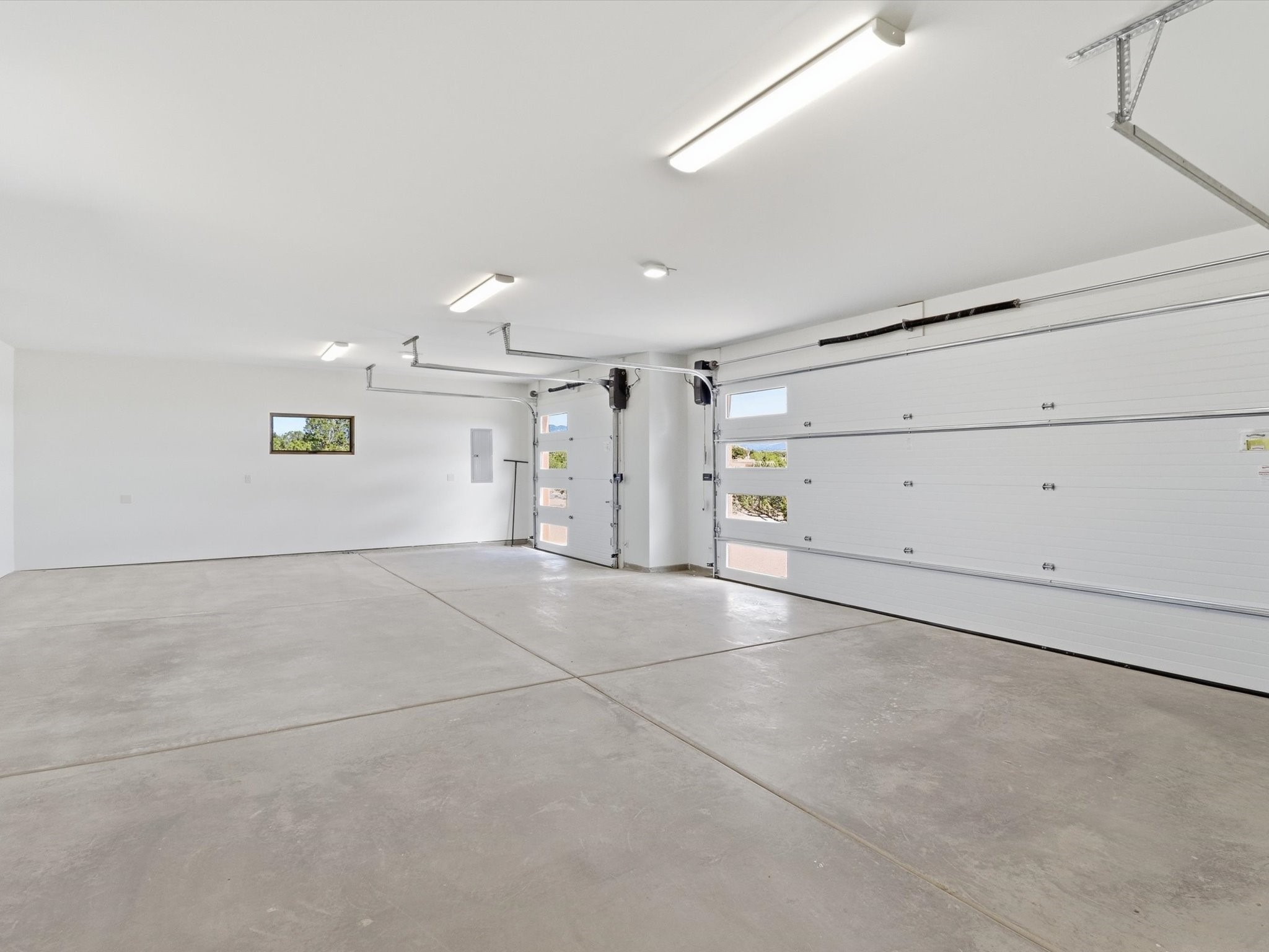 33 Tierra Grande is set on 3.1 equestrian-friendly acres and this sophisticated single-level home offers a seamless layout framed by dramatic vigas, travertine throughout the main living area, and hickory chestnut floors in the three bedrooms and office. The home's centerpiece is a true gourmet kitchen thoughtfully designed featuring Thermador appliances, a built-in wine cooler, elegant quartz countertops, and custom knotty alder cabinetry. This chef's sanctuary flows effortlessly into a dedicated separate dining area, perfect for hosting intimate dinners against a backdrop of the natural landscape and mountain views. Retreat to the primary suite or two additional ensuite bedrooms, all kept comfortable by in-floor radiant heat and high-efficiency ducted mini-splits. Beyond the large brick covered portal and xeriscaped grounds, residents enjoy direct access to miles of private community riding and hiking trails, blending refined modern luxury with the ultimate Santa Fe outdoor lifestyle.