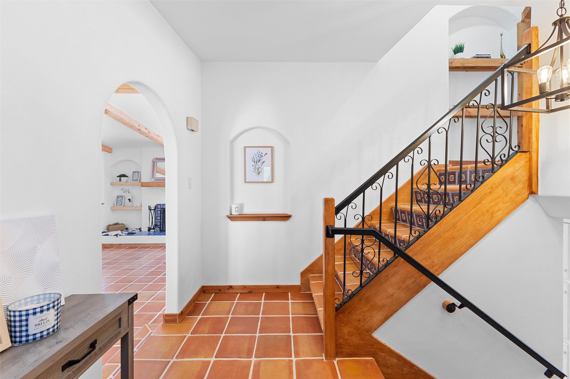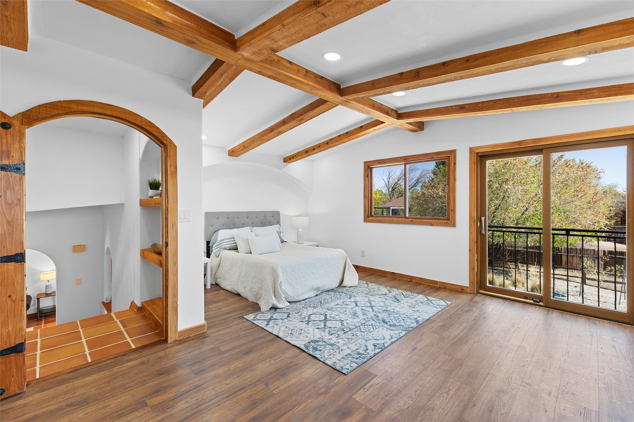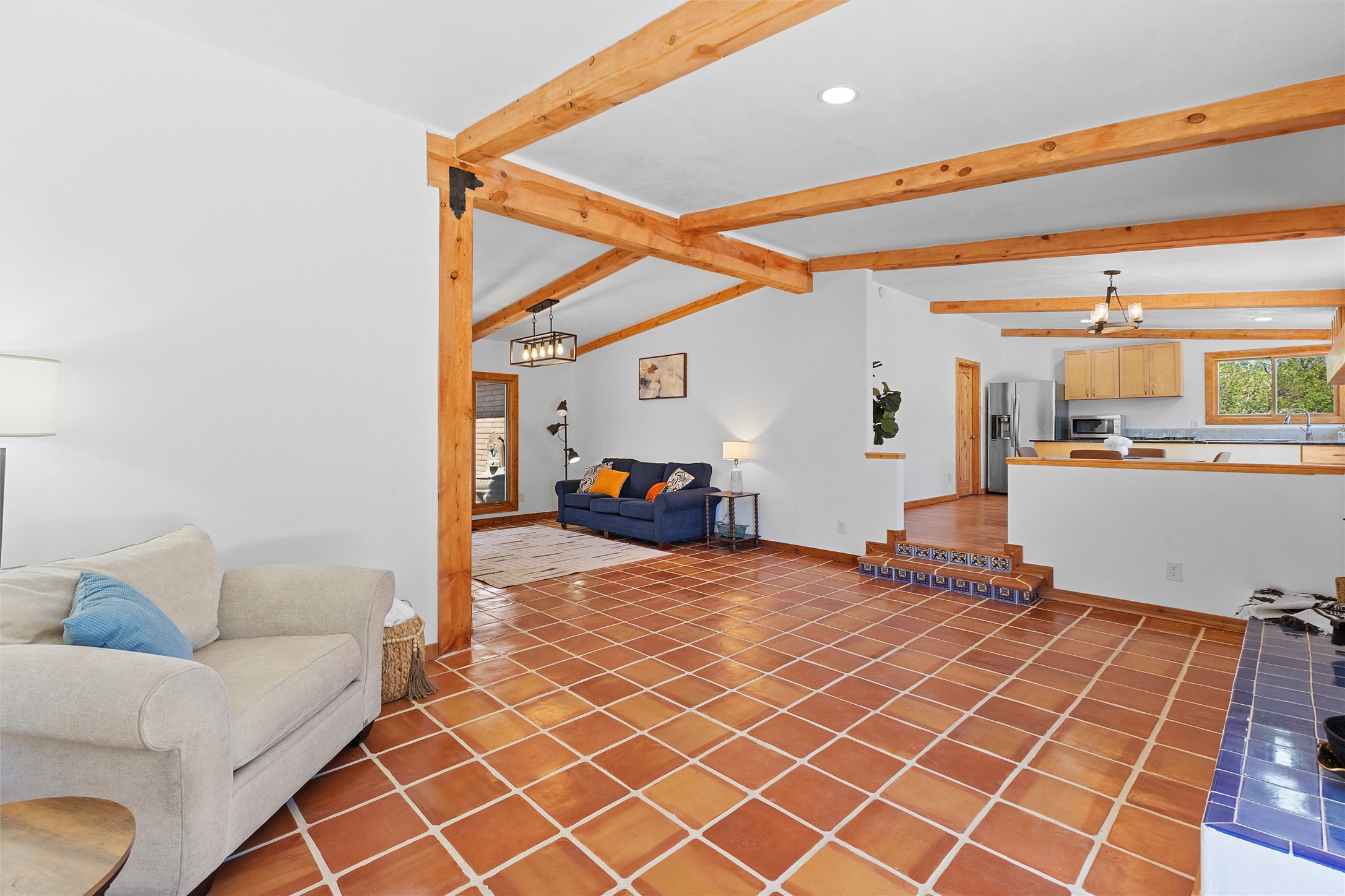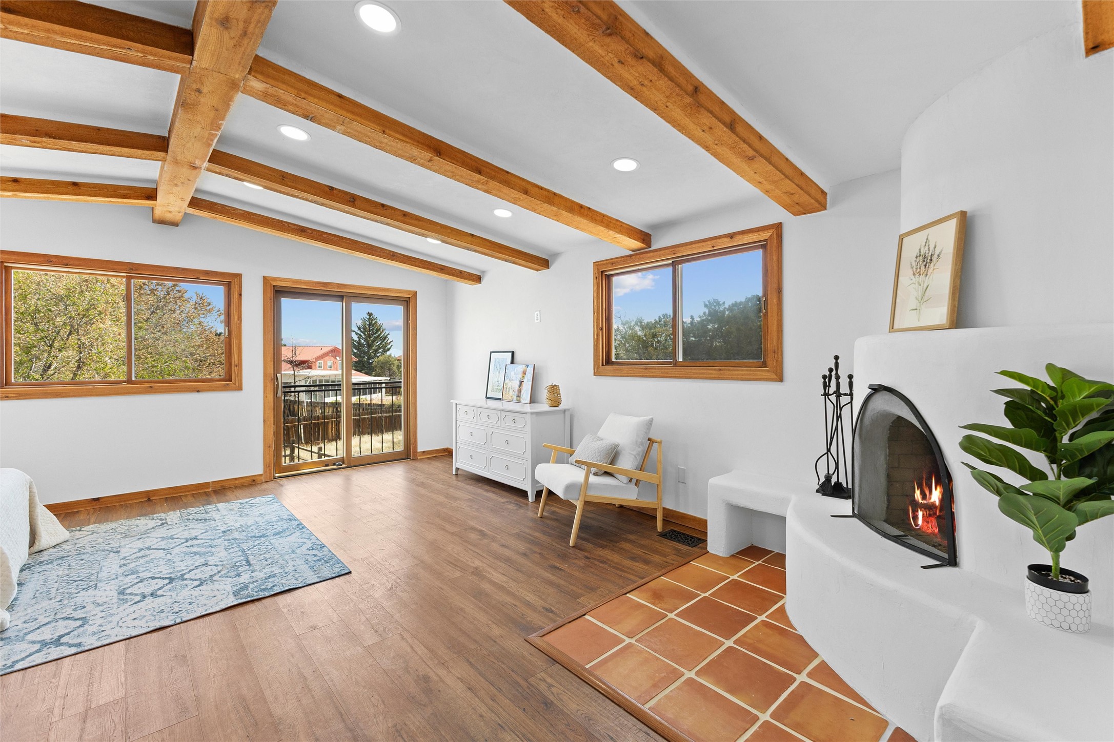 Tucked into a quiet cul-de-sac on desirable Barranca Mesa, 10 Tesuque offers over 3,000 square feet on a spacious .37-acre lot. Extensively remodeled in 2026 with nearly $225,000 worth of updates, this warm and welcoming 3-bedroom, 2-bathroom home blends Southwest character with thoughtful modern updates, including plaster walls, Saltillo tile floors, wood beams, in-floor radiant heat, updated lighting, a new tankless water heater, new furnace, and AC.The private primary suite has been transformed into a true sanctuary, featuring a kiva fireplace, abundant natural light, a Juliet balcony, walk-in closet, custom tile work, and a standalone clawfoot tub. Downstairs, you'll find two additional bedrooms with closet systems, a full bathroom, and a basement space perfect for a theater room, playroom, or extra storage.The living room fireplace features a plaster surround, custom tile, and a substantial mantel perfect for holiday decorating. Nichos, built-in shelving, and inviting architectural details add charm throughout. The open-concept kitchen is highly functional and offers generous cabinet space.Outside, the large lot provides room to roam, entertain, garden, and store your RV or toys with ease thanks to the wide double gate. With so much to offer, and move in ready ease, schedule your showing today, this one won't last long!