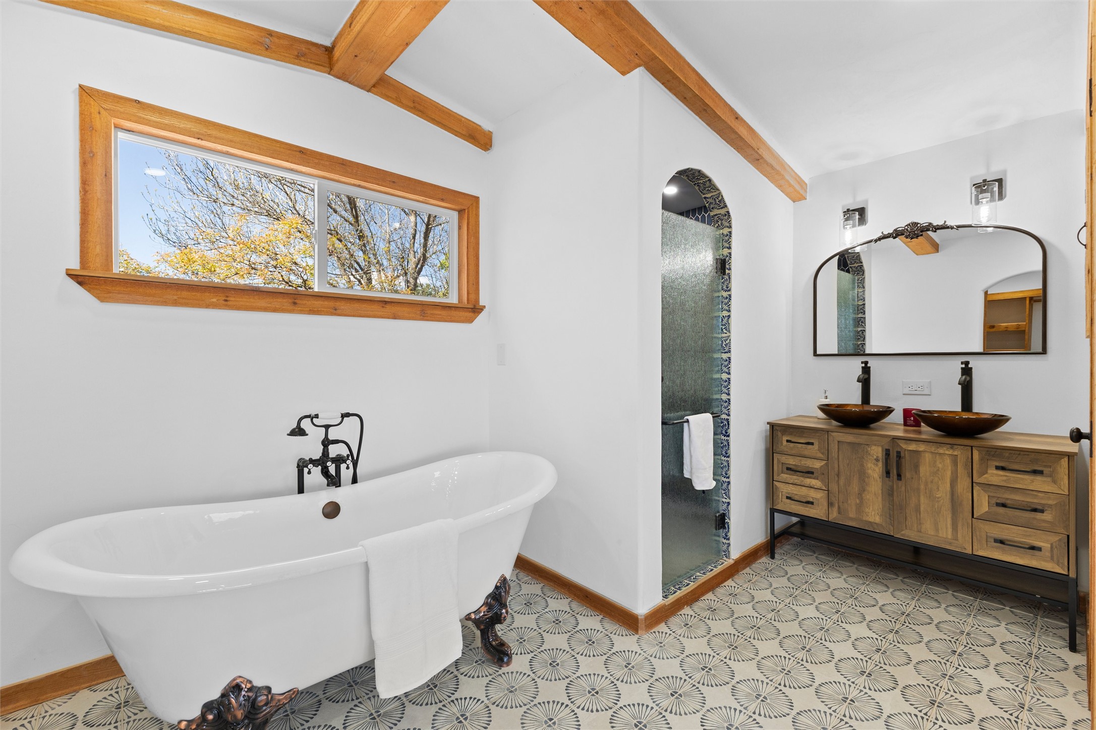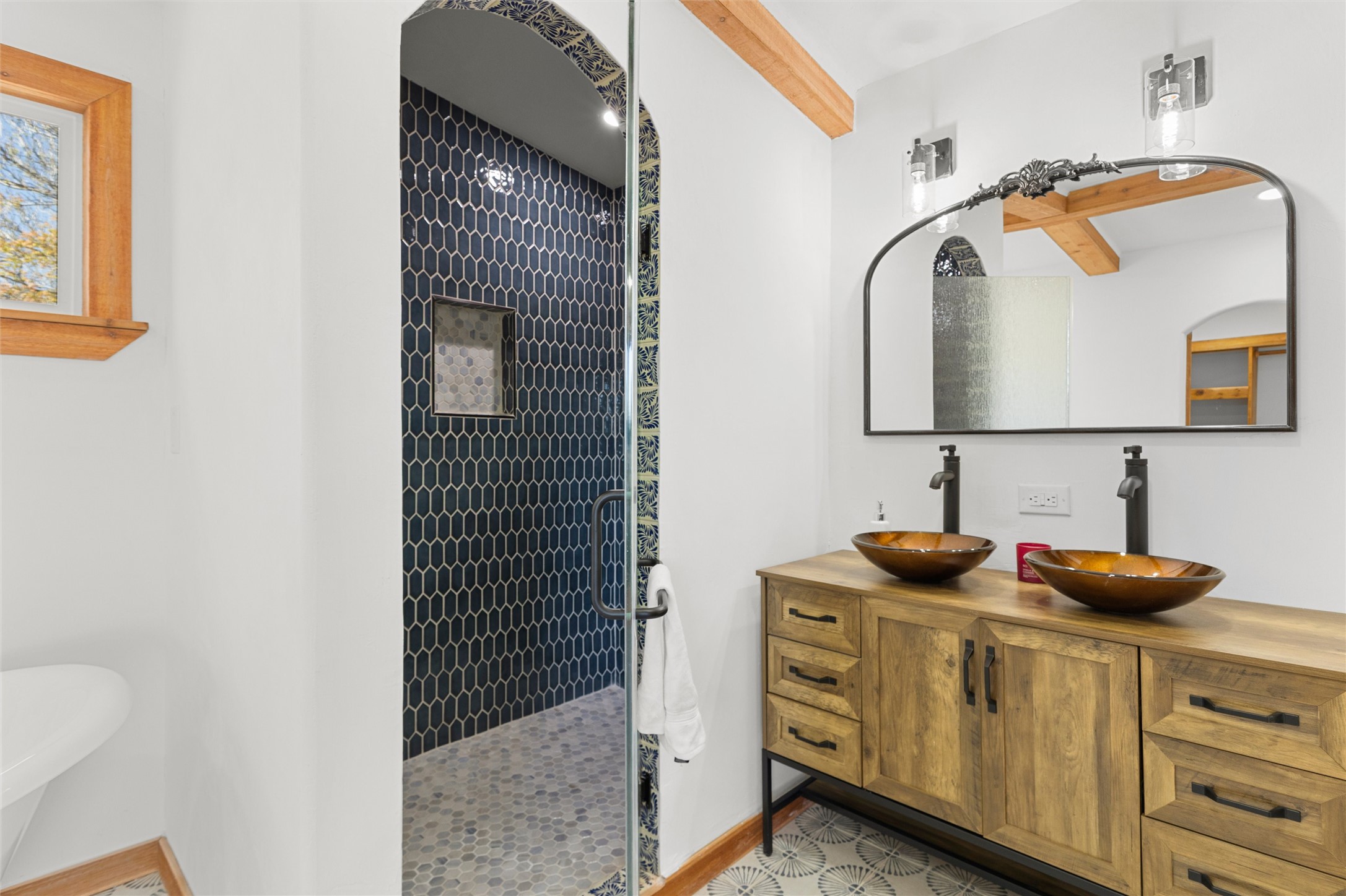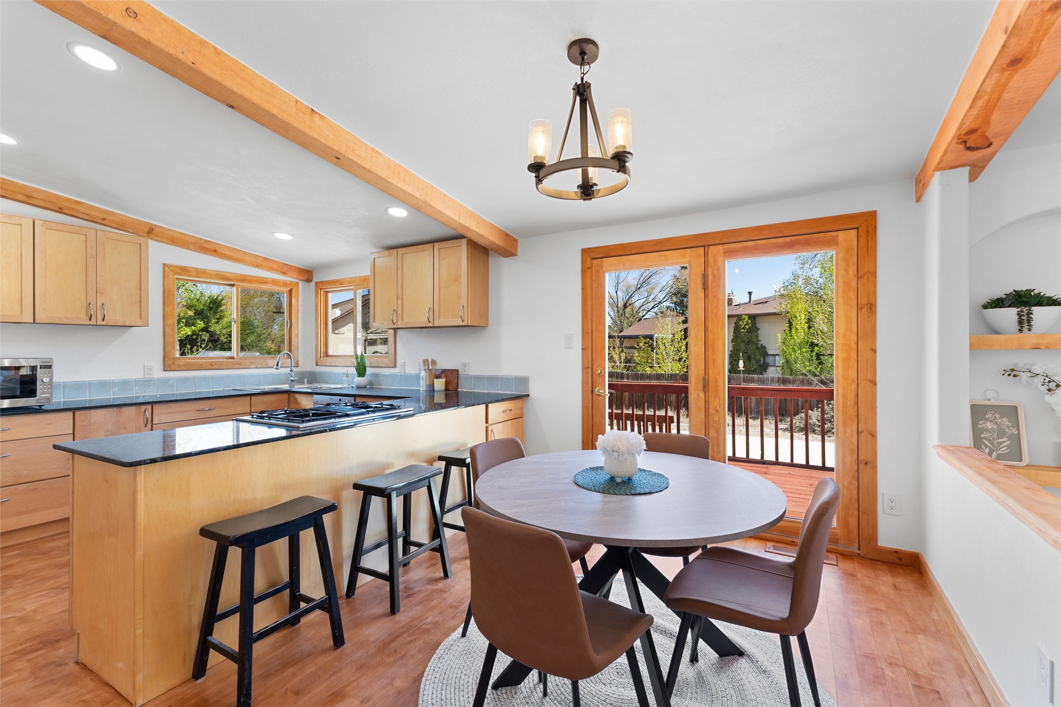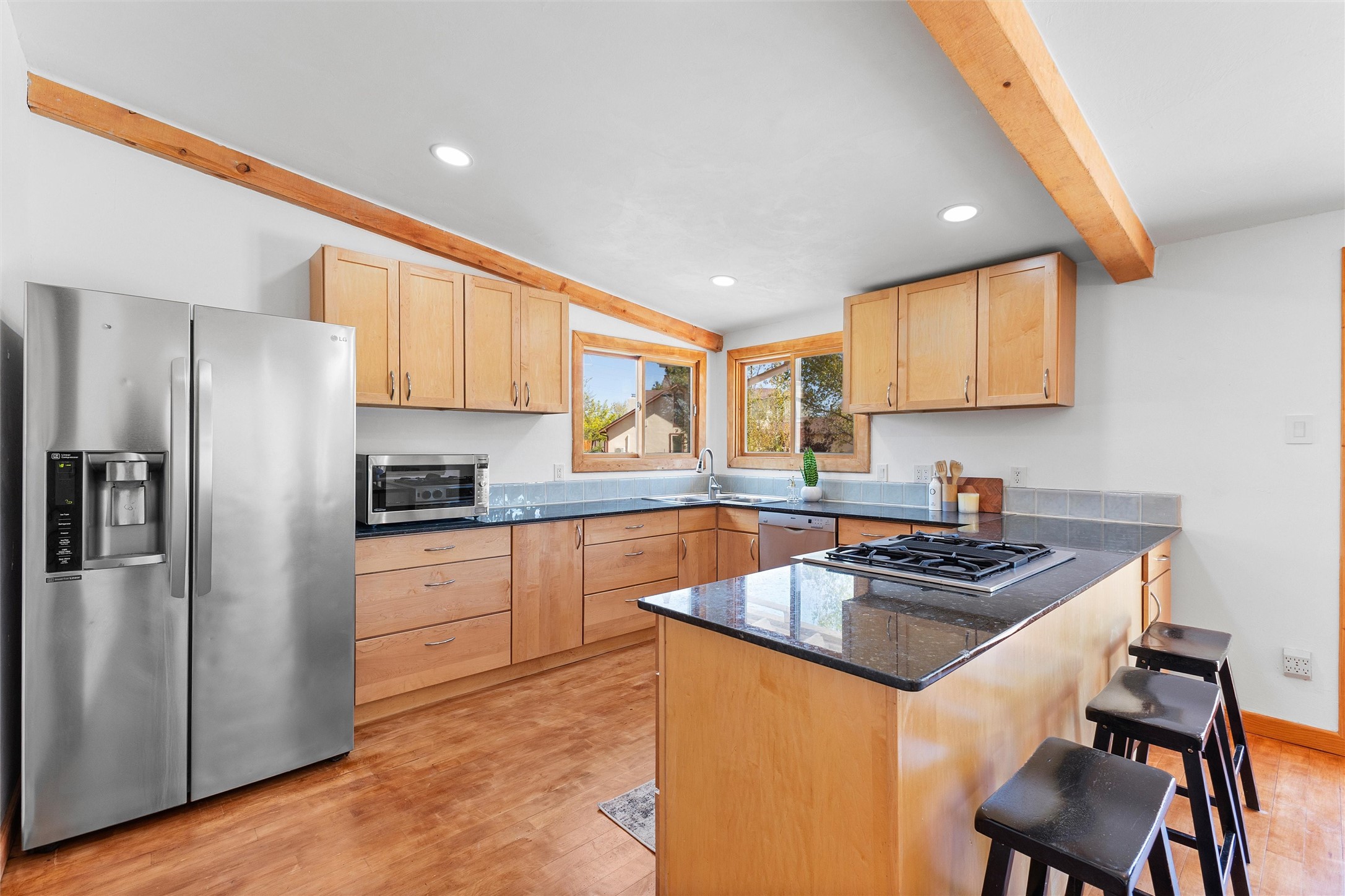 Tucked into a quiet cul-de-sac on desirable Barranca Mesa, 10 Tesuque offers over 3,000 square feet on a spacious .37-acre lot. Extensively remodeled in 2026 with nearly $225,000 worth of updates, this warm and welcoming 3-bedroom, 2-bathroom home blends Southwest character with thoughtful modern updates, including plaster walls, Saltillo tile floors, wood beams, in-floor radiant heat, updated lighting, a new tankless water heater, new furnace, and AC.The private primary suite has been transformed into a true sanctuary, featuring a kiva fireplace, abundant natural light, a Juliet balcony, walk-in closet, custom tile work, and a standalone clawfoot tub. Downstairs, you'll find two additional bedrooms with closet systems, a full bathroom, and a basement space perfect for a theater room, playroom, or extra storage.The living room fireplace features a plaster surround, custom tile, and a substantial mantel perfect for holiday decorating. Nichos, built-in shelving, and inviting architectural details add charm throughout. The open-concept kitchen is highly functional and offers generous cabinet space.Outside, the large lot provides room to roam, entertain, garden, and store your RV or toys with ease thanks to the wide double gate. With so much to offer, and move in ready ease, schedule your showing today, this one won't last long!