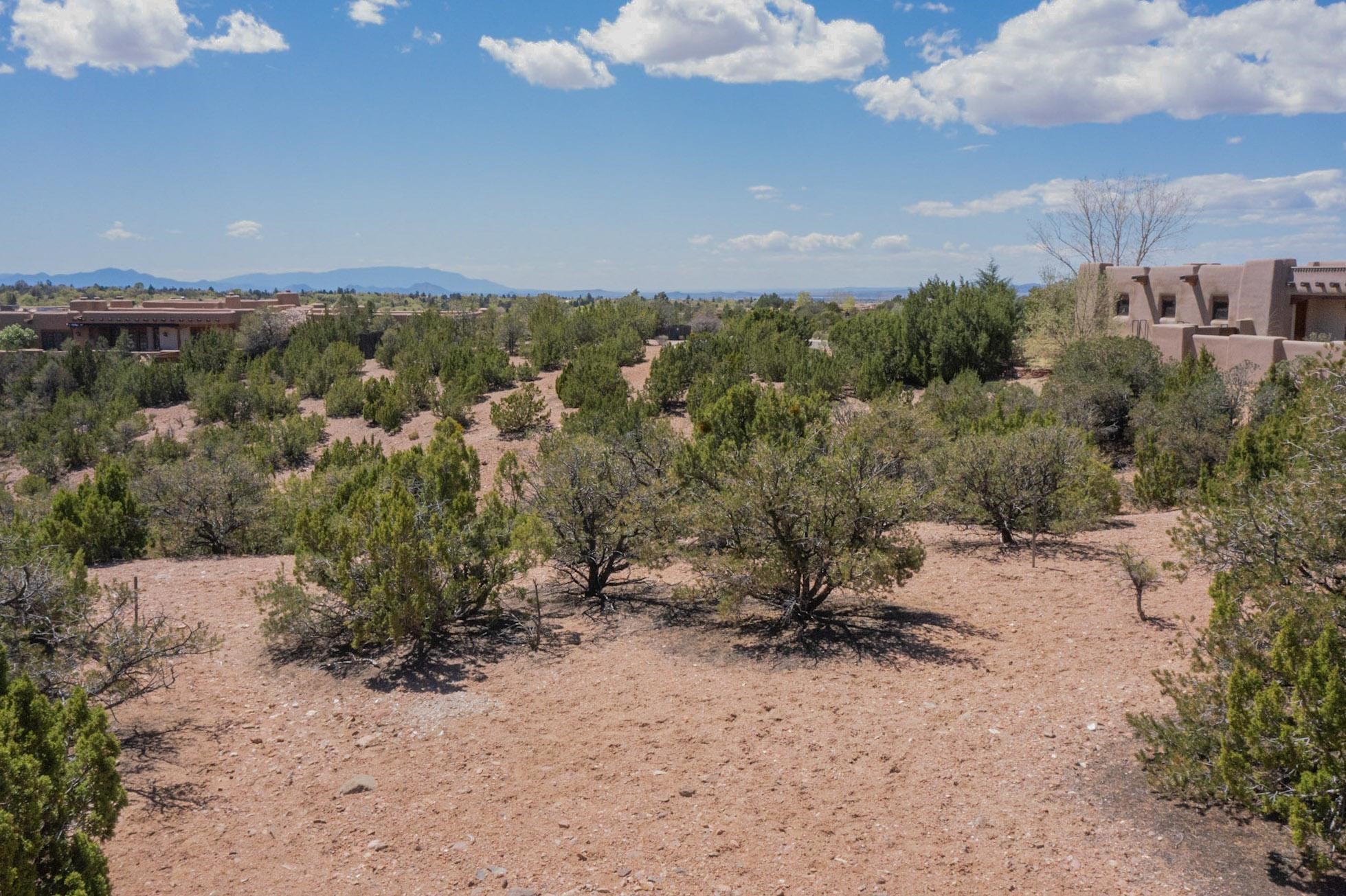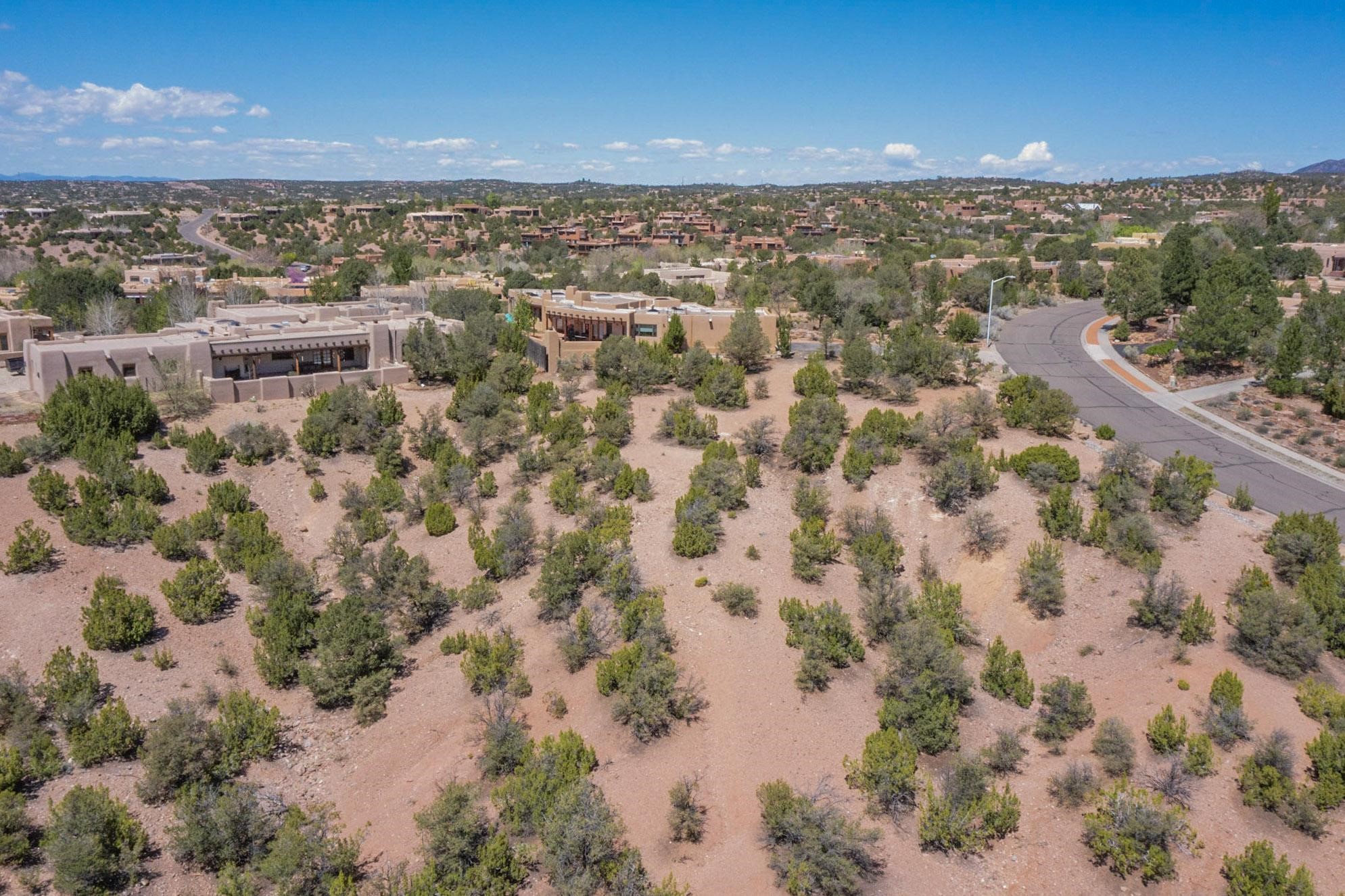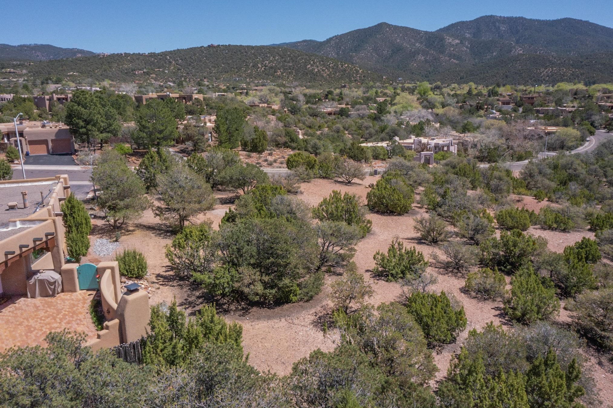 This Las Barrancas Beauty with views of Sun and Moon Mountains adjoins 1.5 acres of open space. Live the ultimate Santa Fe lifestyle 5 minutes from Canyon Rd, 8 minutes from the Plaza, and 7 minutes from Ten Thousand Waves. No septic, no well - just a convenient lot with City utilities, views, extra green space, and deer regularly passing by. Opportunities to build in Las Barrancas are rare. Don't miss your chance.