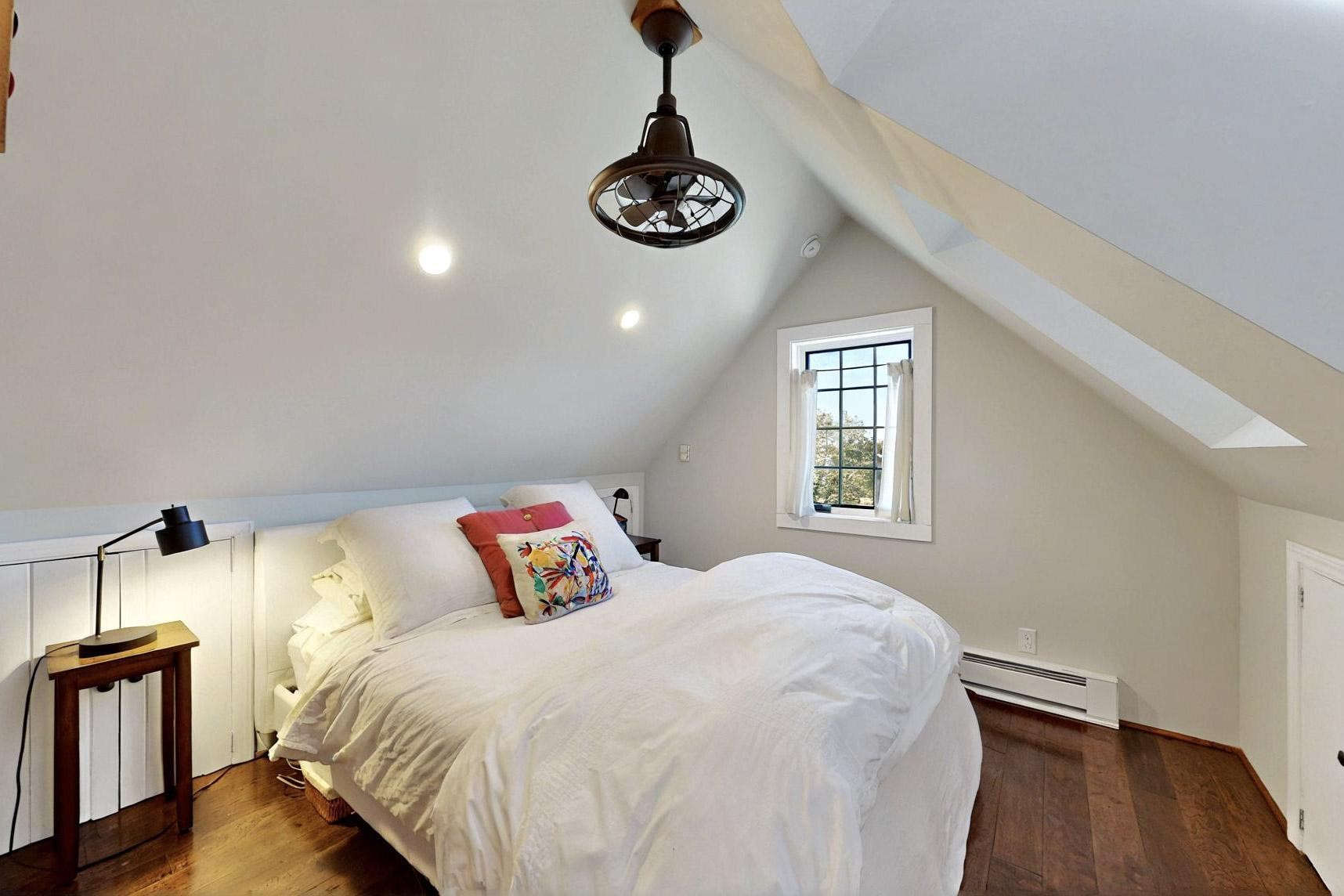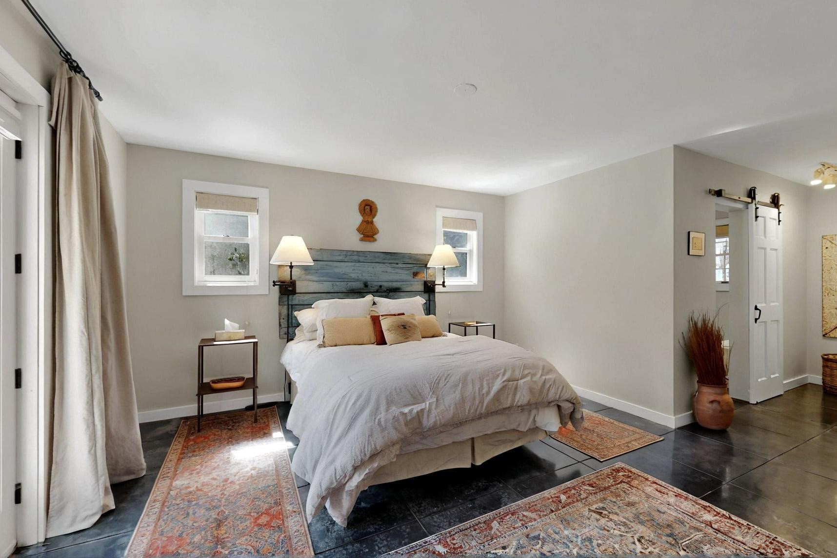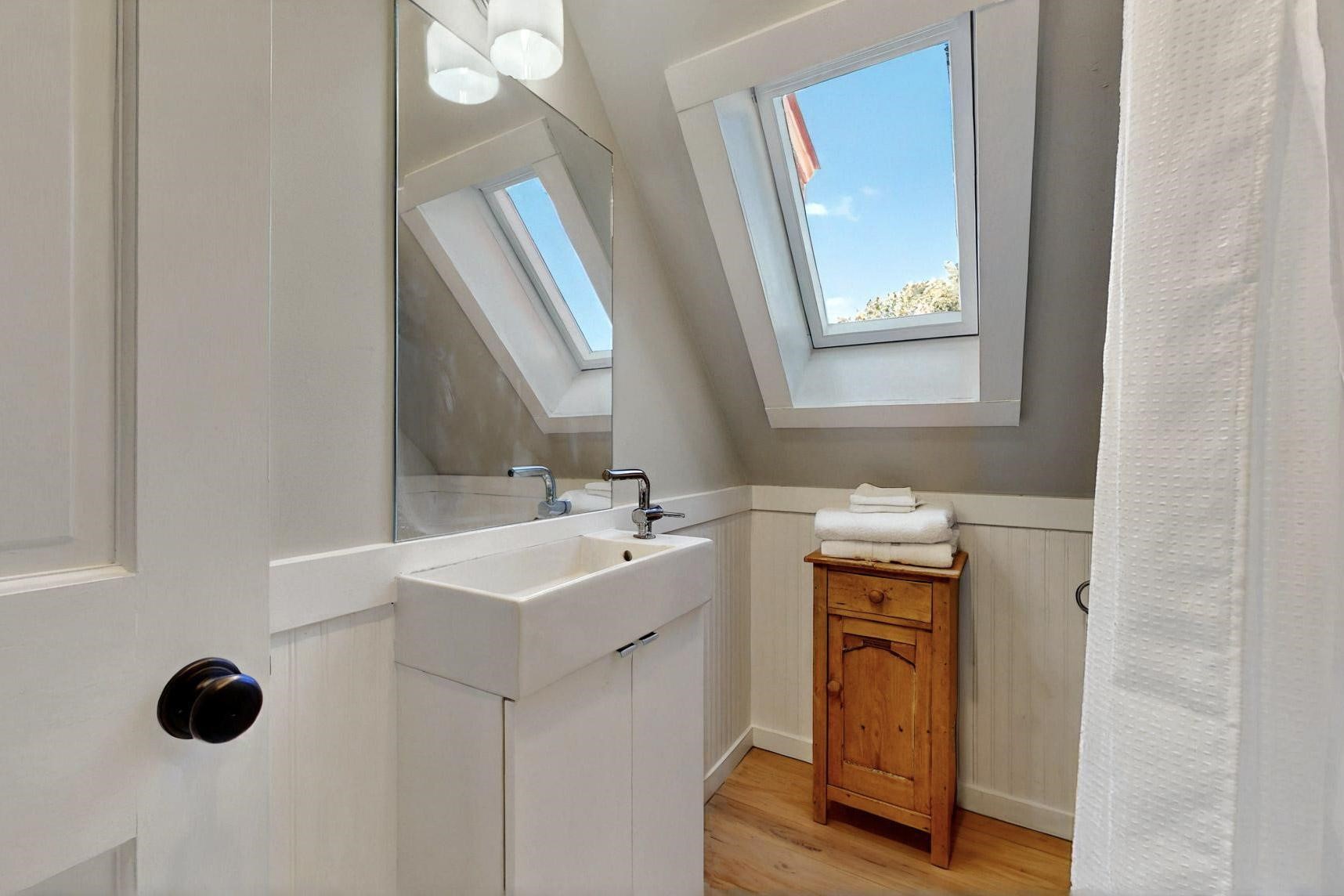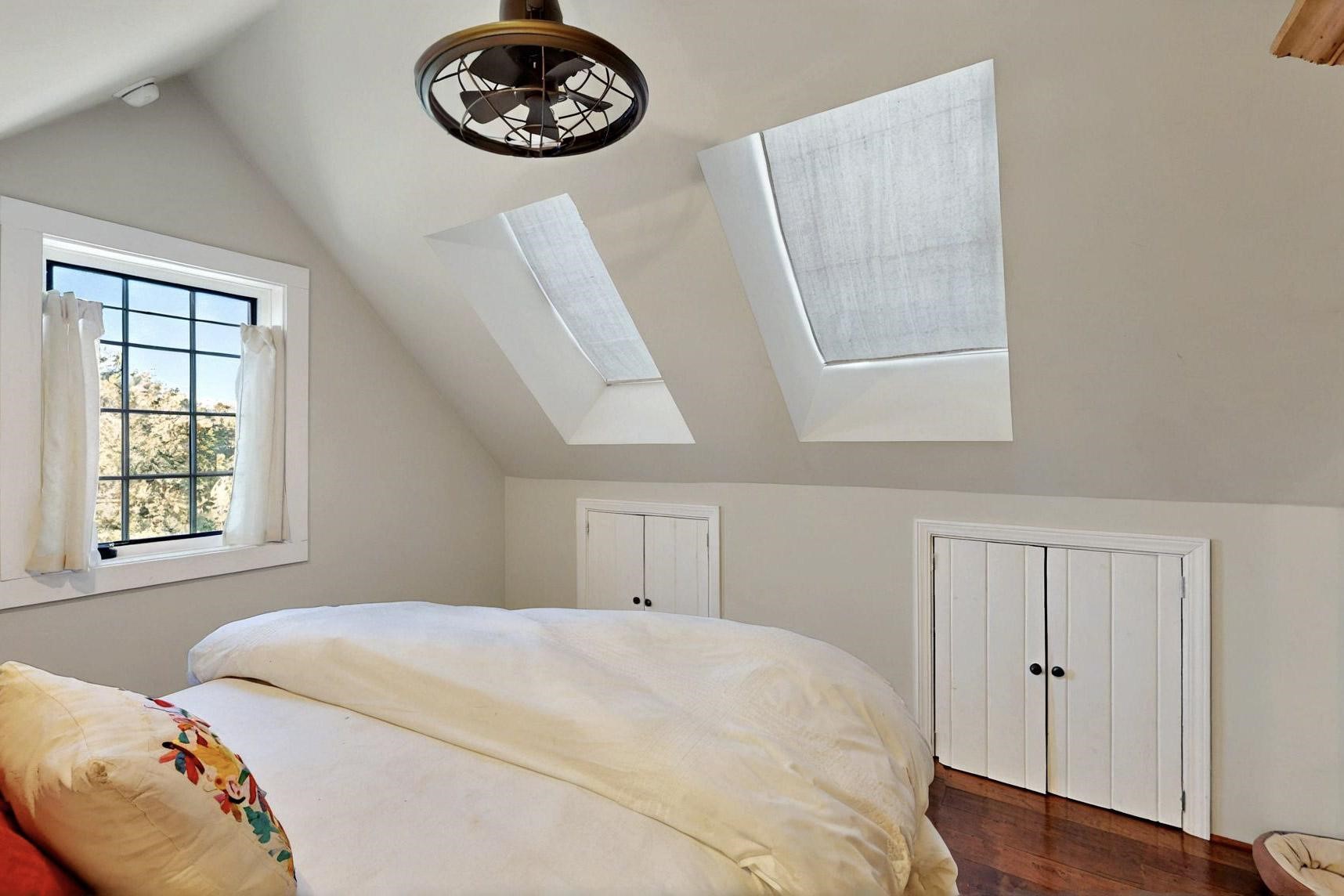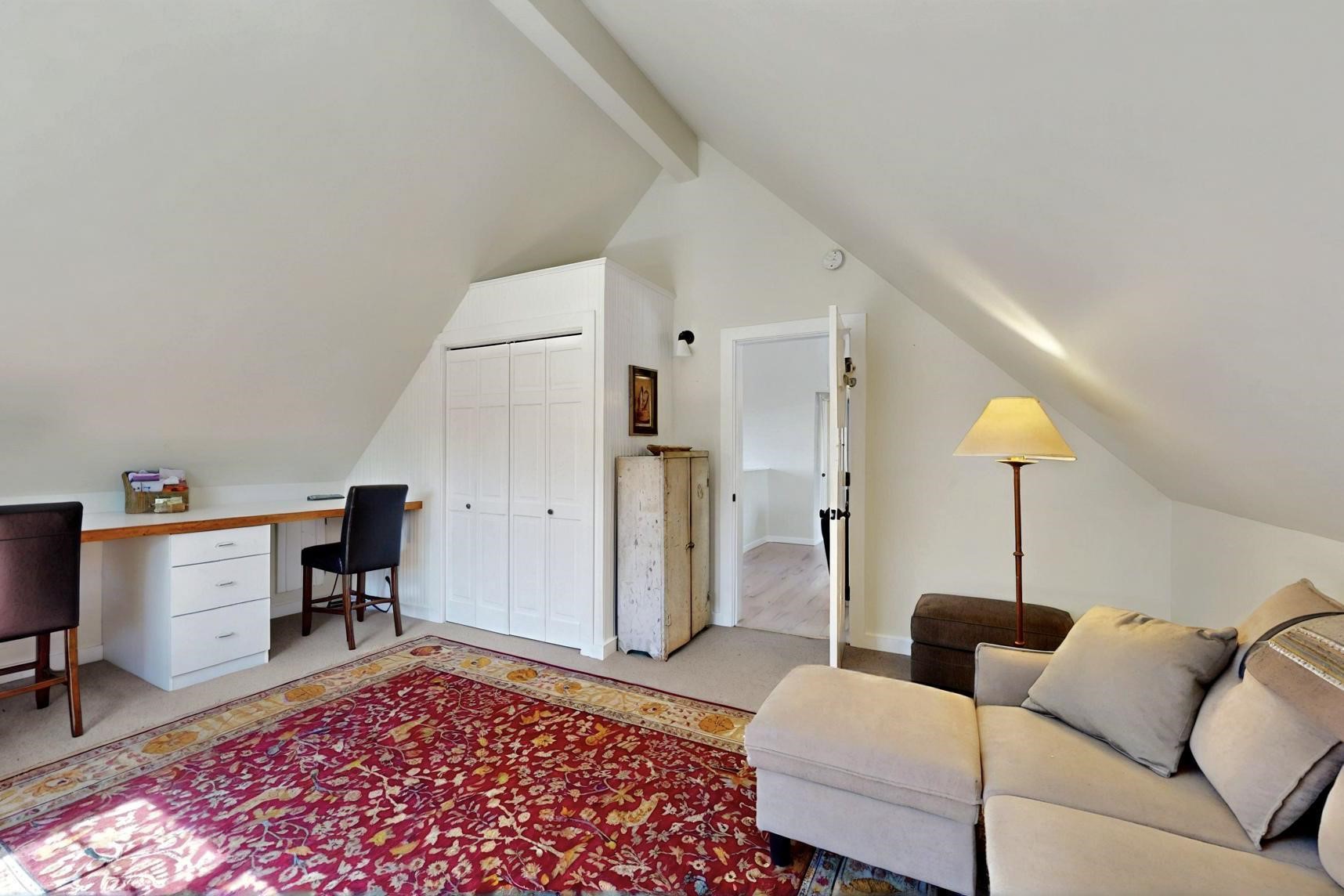 Romantic, Northern New Mexico style country compound nestled among the trees on the eastern flank of the Hondo Hills, on 7.4 acres only a few minutes drive to 3 sports clubs (including golf at Quail Run) and Santa Fe itself. With a nod to Betty Stewart, this pretty home, built by a structural engineer in 1987, has been extensively remodeled and expanded by the current architect owner to create this charming, peaceful haven. The main house construction uses Structural Insulated Panels (SIPs) making for a well insulated home, warm in winter and cool in summer. The first floor, with ample natural light from French doors and the many windows, flows serenely between the open plan kitchen/living/dining, a sunny office nook, a TV den and down the hallway to the chic primary suite with outside access to a shady brick patio. Upstairs beneath the tall pitched ceilings is a large office/occasional 3rd bedroom on one side and a large guest suite the other with a light filled sitting area between. A 10 ft wide portal spans the length of the house for outdoor enjoyment of the natural pinon woodland and views to the Jemez mountains to the NW, and north and east to the nearby foothills and rocky hilltops above the Old Santa Fe Trail. The nearby full guest house off the circular driveway, created in 2021, is a little gem entered through French doors to a delightful and cozy living room with a separate gourmet kitchen, a sunny dining room/studio (potential additional bedroom) and upstairs to the bedroom suite. This charming compound is completed by the new pitched roof studio hidden in the trees a short stroll from the main house. Gardeners will love the cottage garden in front of the main house and a fenced vegetable garden out back. Such a sweet home!
