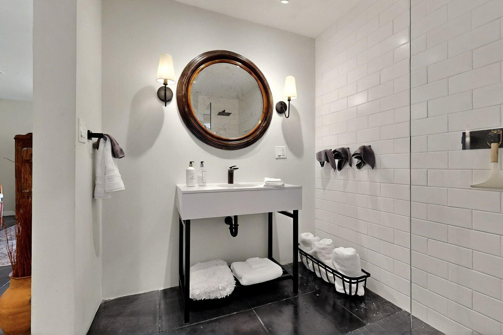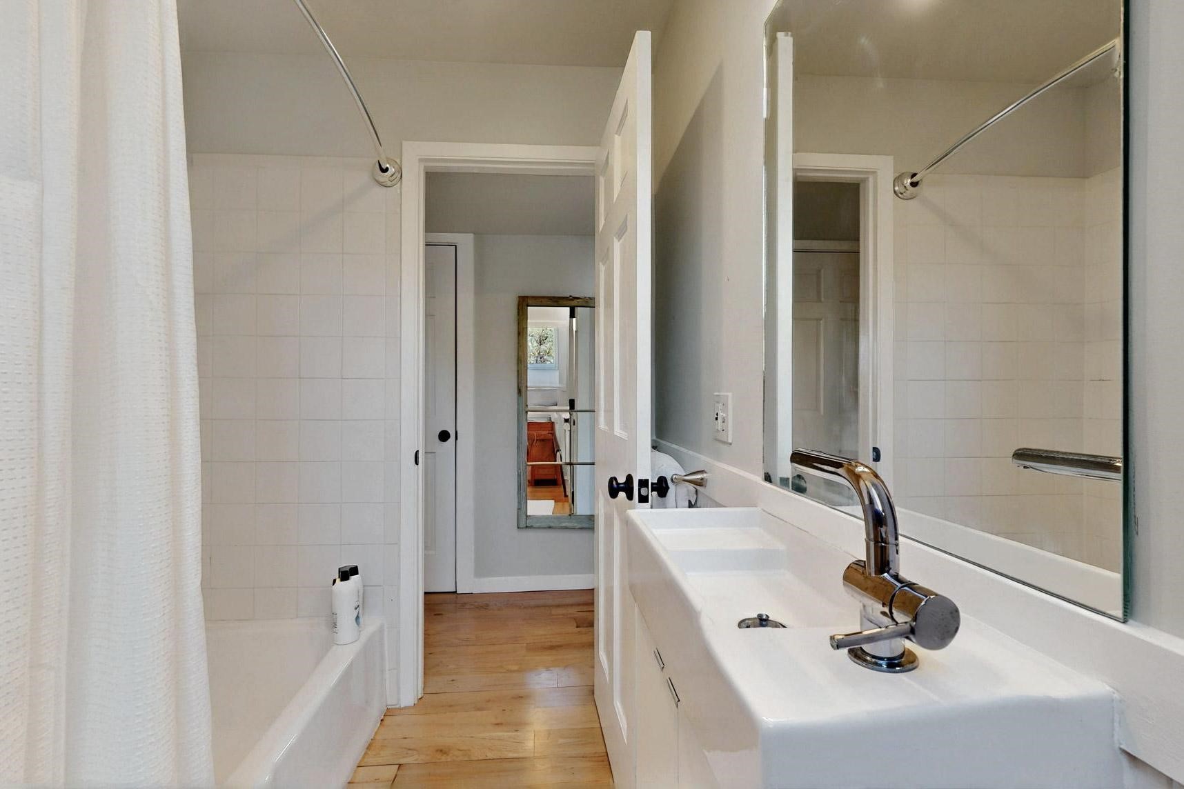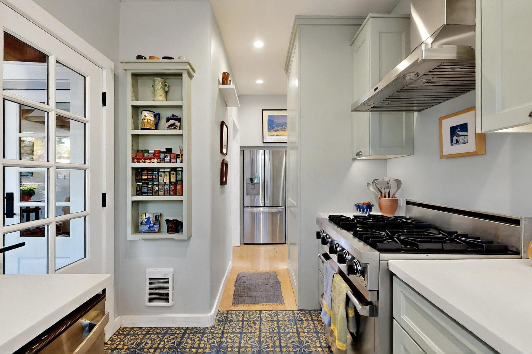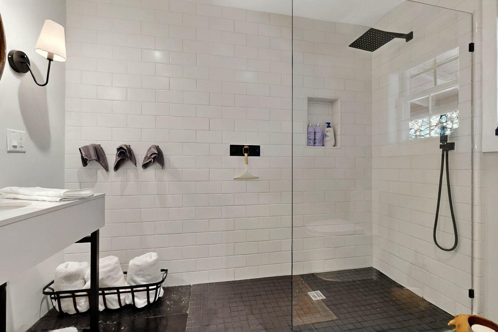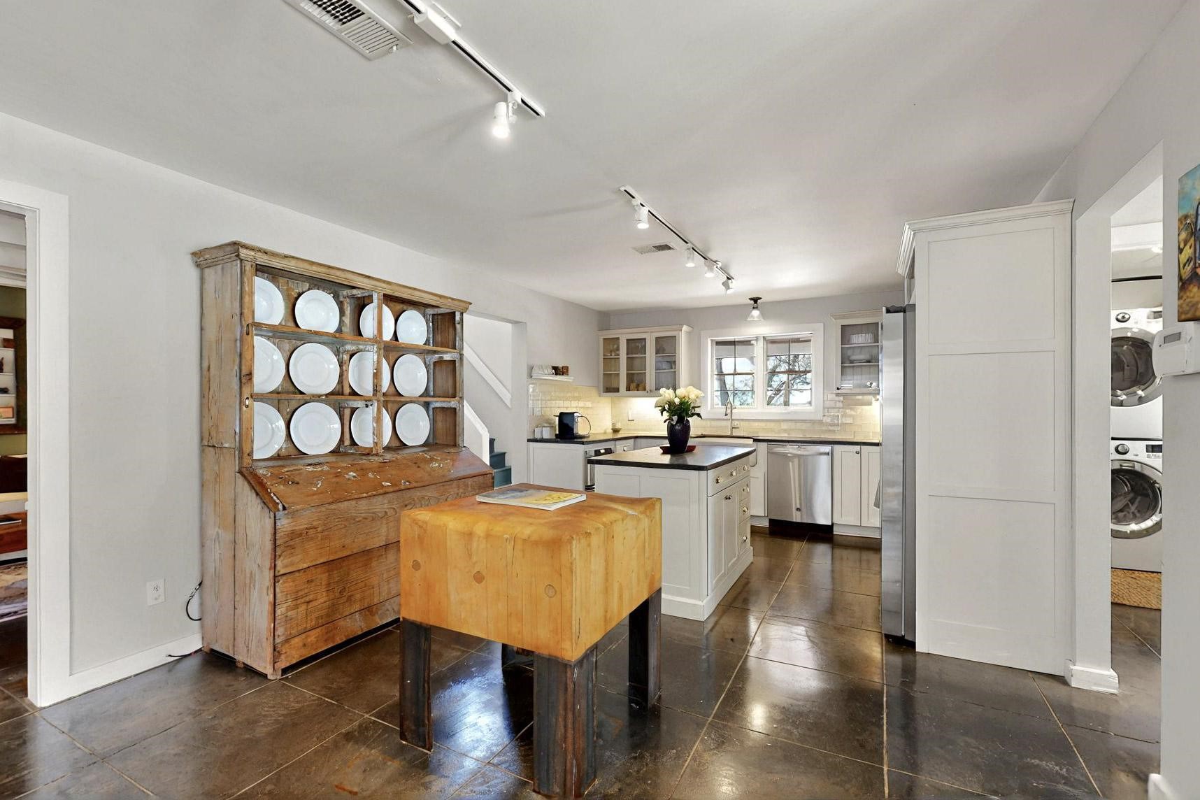 Romantic, Northern New Mexico style country compound nestled among the trees on the eastern flank of the Hondo Hills, on 7.4 acres only a few minutes drive to 3 sports clubs (including golf at Quail Run) and Santa Fe itself. With a nod to Betty Stewart, this pretty home, built by a structural engineer in 1987, has been extensively remodeled and expanded by the current architect owner to create this charming, peaceful haven. The main house construction uses Structural Insulated Panels (SIPs) making for a well insulated home, warm in winter and cool in summer. The first floor, with ample natural light from French doors and the many windows, flows serenely between the open plan kitchen/living/dining, a sunny office nook, a TV den and down the hallway to the chic primary suite with outside access to a shady brick patio. Upstairs beneath the tall pitched ceilings is a large office/occasional 3rd bedroom on one side and a large guest suite the other with a light filled sitting area between. A 10 ft wide portal spans the length of the house for outdoor enjoyment of the natural pinon woodland and views to the Jemez mountains to the NW, and north and east to the nearby foothills and rocky hilltops above the Old Santa Fe Trail. The nearby full guest house off the circular driveway, created in 2021, is a little gem entered through French doors to a delightful and cozy living room with a separate gourmet kitchen, a sunny dining room/studio (potential additional bedroom) and upstairs to the bedroom suite. This charming compound is completed by the new pitched roof studio hidden in the trees a short stroll from the main house. Gardeners will love the cottage garden in front of the main house and a fenced vegetable garden out back. Such a sweet home!