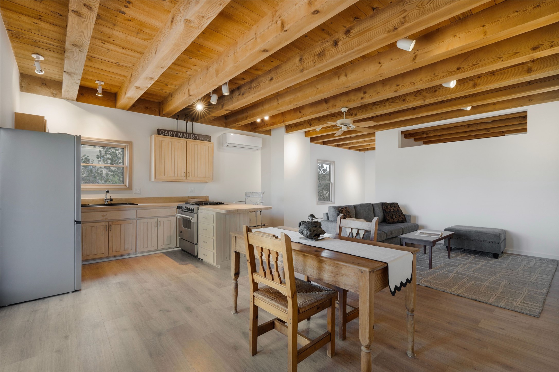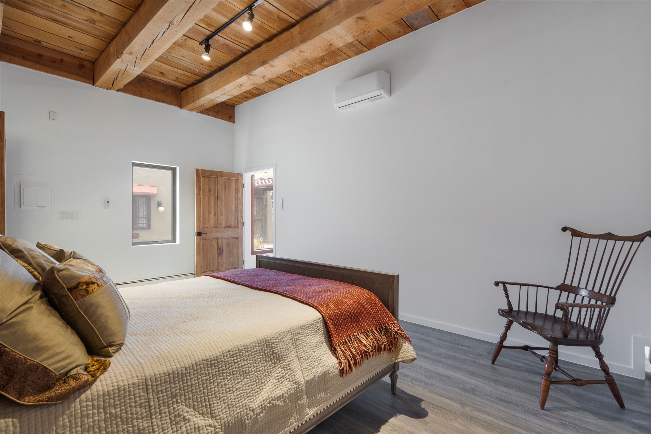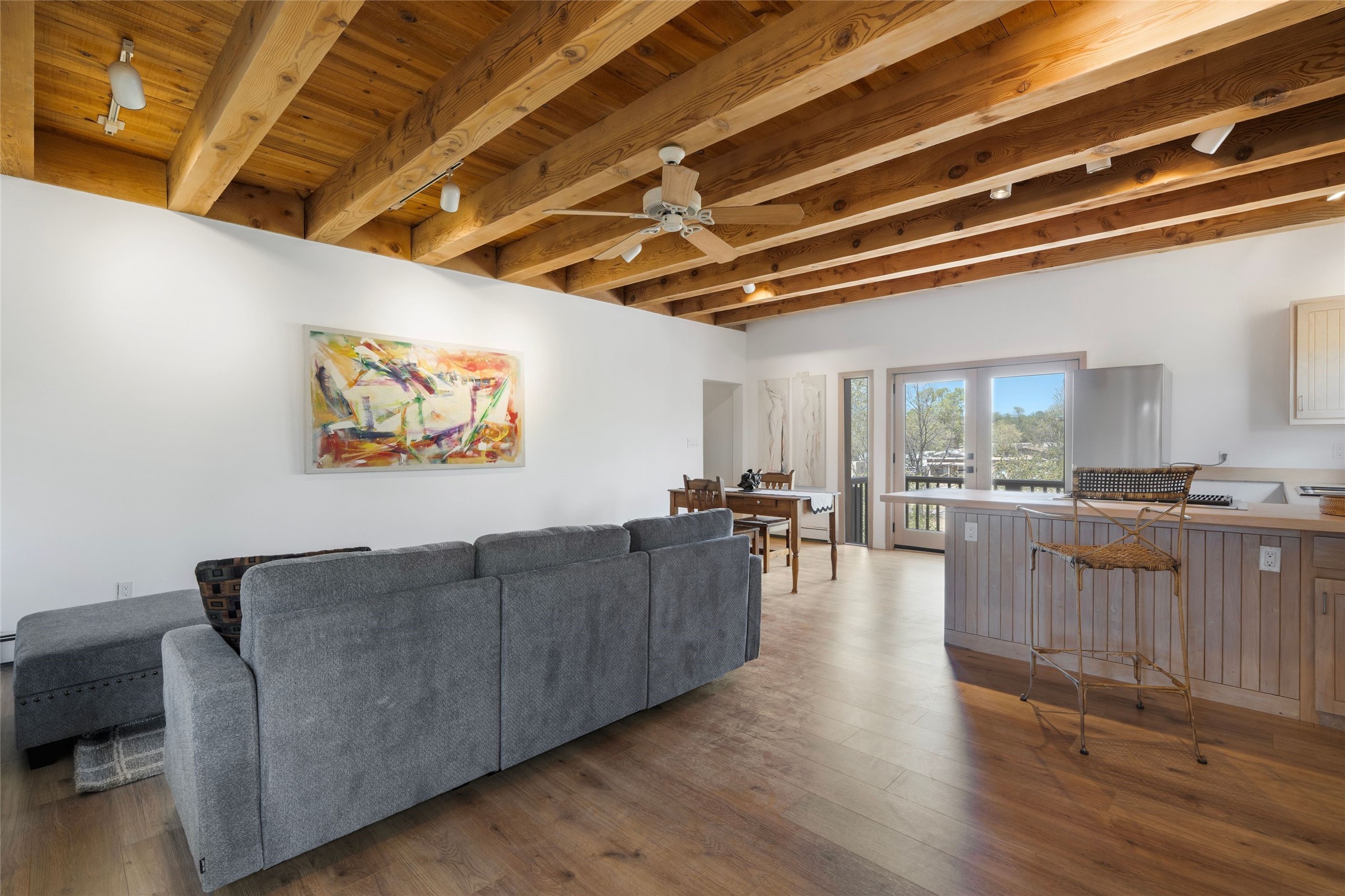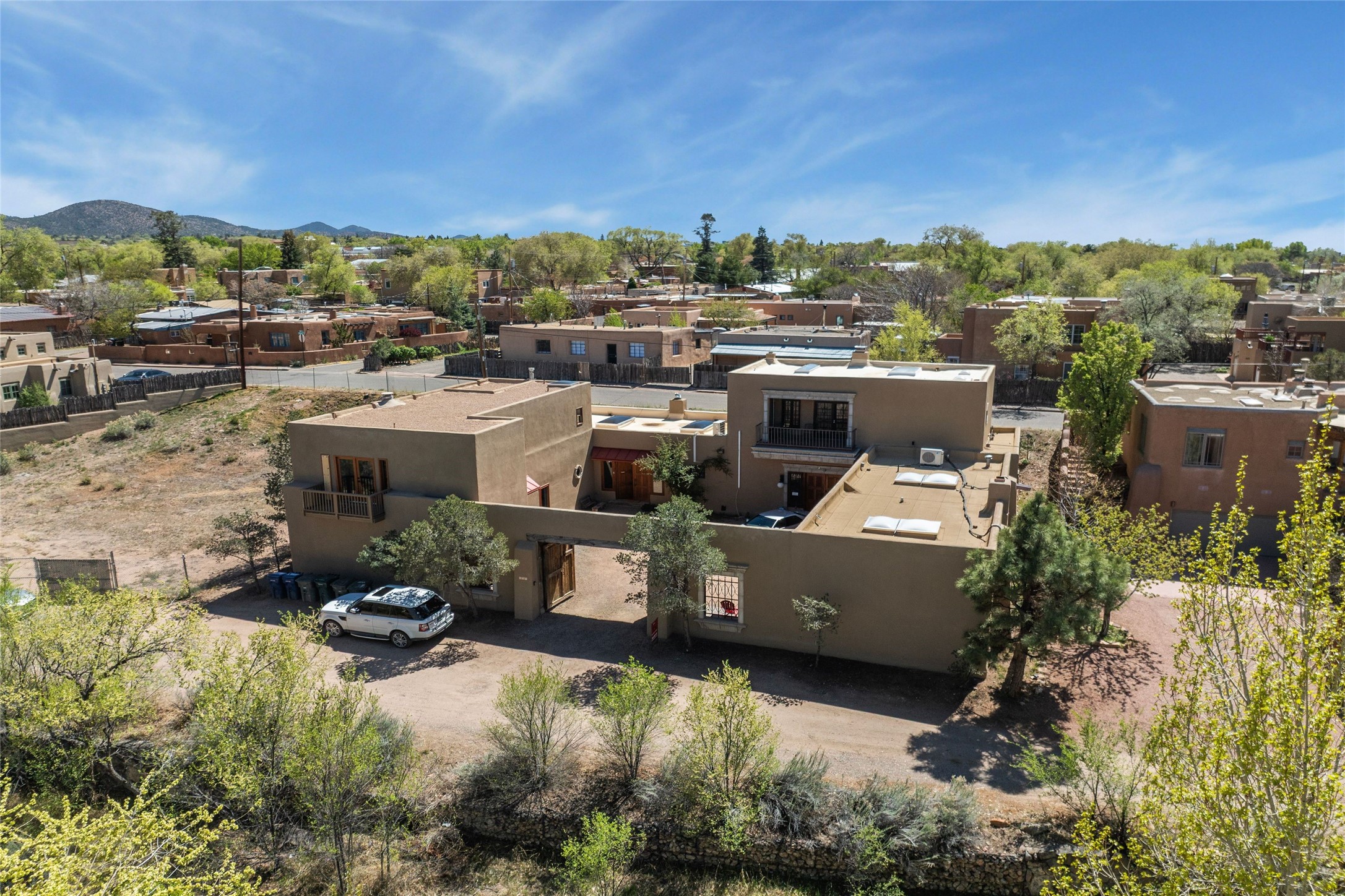 Guadalupe District Renovated (2024) Live/Work 2-bedroom, 2-bath condo in a prime location along the Santa Fe River and the River Trail System. Property is within a gated enclave of only 4 units. This flexible plan condo provides ample space for an artist to live and create. Tile and wood floors and vigas and beams. The main 944 sq ft living area, located upstairs, features a spacious open-concept living, dining, and kitchen space, seamlessly connected to a private balcony and a full bathroom. The first level 1082 sq ft suite includes a generous living area with kitchenette, gas fireplace and a bathroom with a classic claw foot tub. One reserved parking inside the remote-operated gate. Located just a short distance from the lively Railyard District, the Plaza, and many of Santa Fe's best galleries, dining, shopping, and cultural attractions.