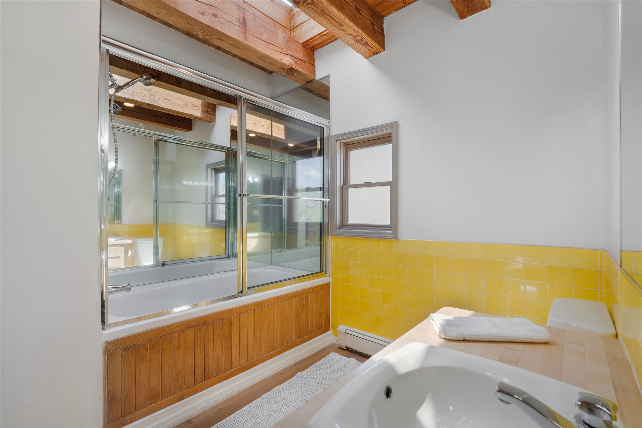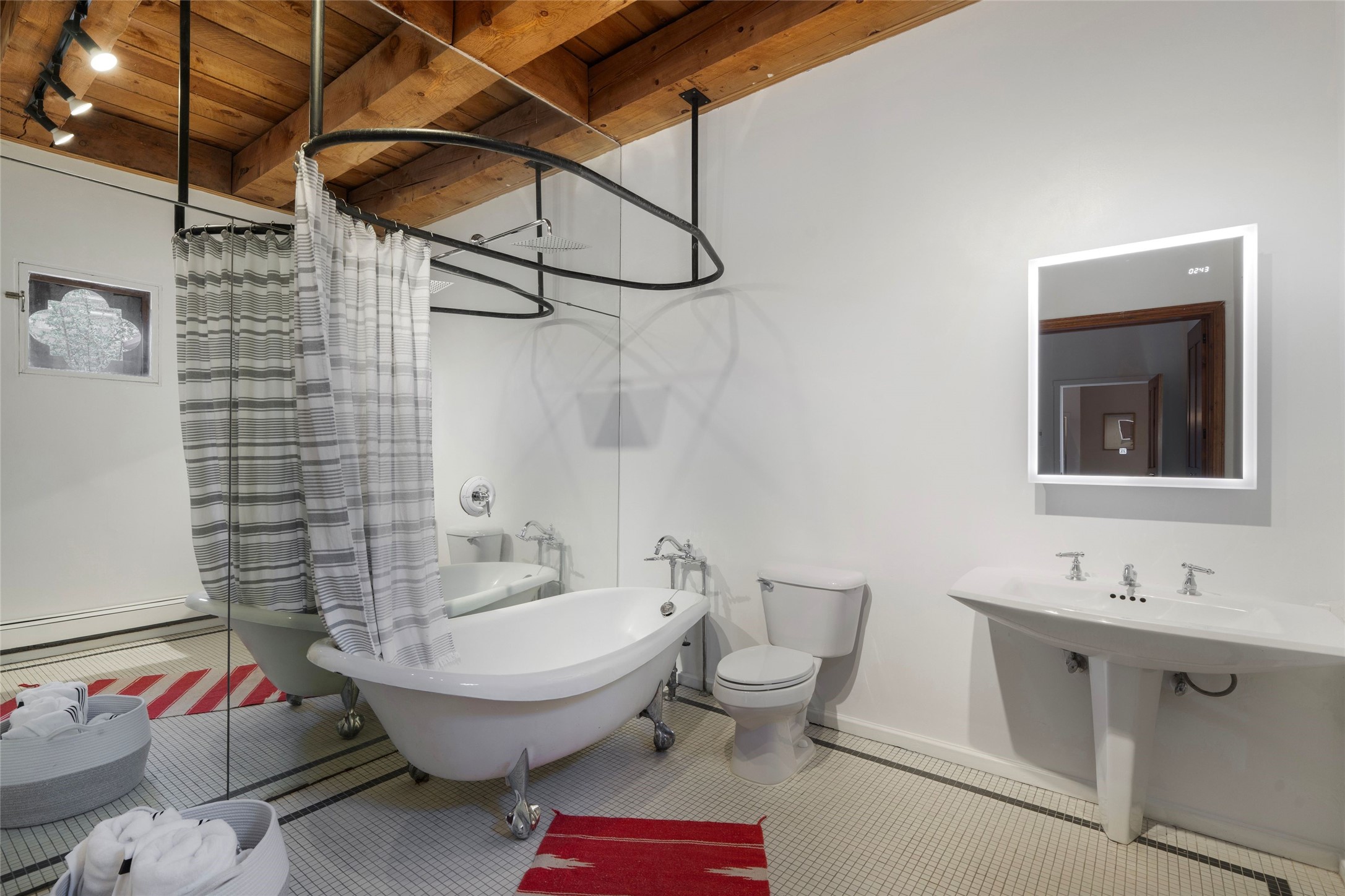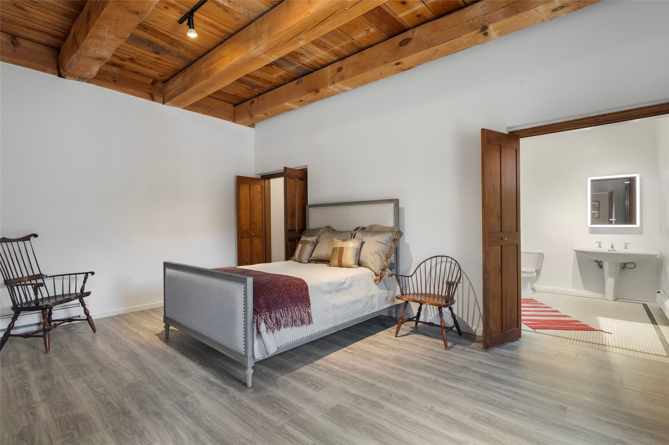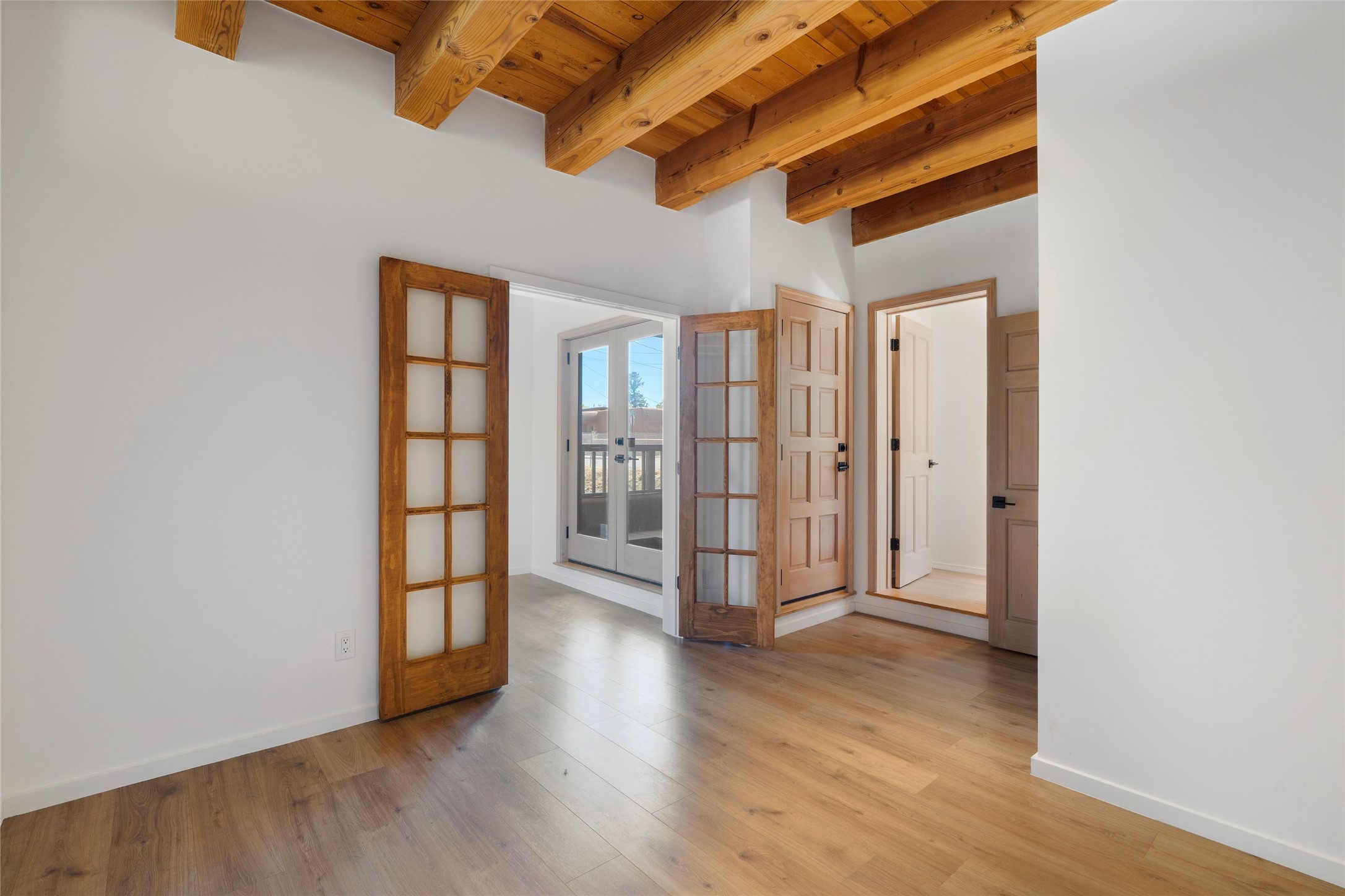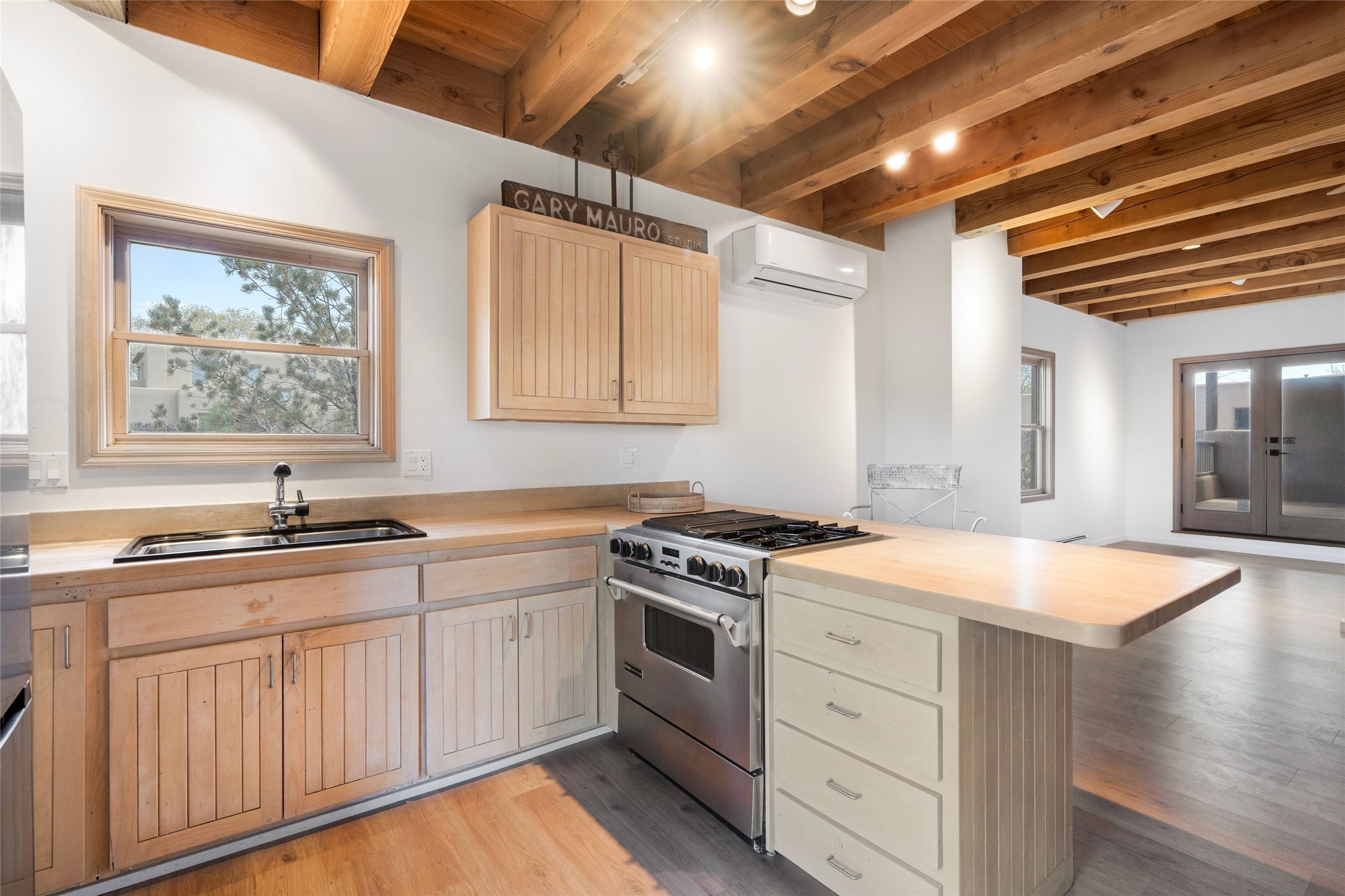 Guadalupe District Renovated (2024) Live/Work 2-bedroom, 2-bath condo in a prime location along the Santa Fe River and the River Trail System. Property is within a gated enclave of only 4 units. This flexible plan condo provides ample space for an artist to live and create. Tile and wood floors and vigas and beams. The main 944 sq ft living area, located upstairs, features a spacious open-concept living, dining, and kitchen space, seamlessly connected to a private balcony and a full bathroom. The first level 1082 sq ft suite includes a generous living area with kitchenette, gas fireplace and a bathroom with a classic claw foot tub. One reserved parking inside the remote-operated gate. Located just a short distance from the lively Railyard District, the Plaza, and many of Santa Fe's best galleries, dining, shopping, and cultural attractions.