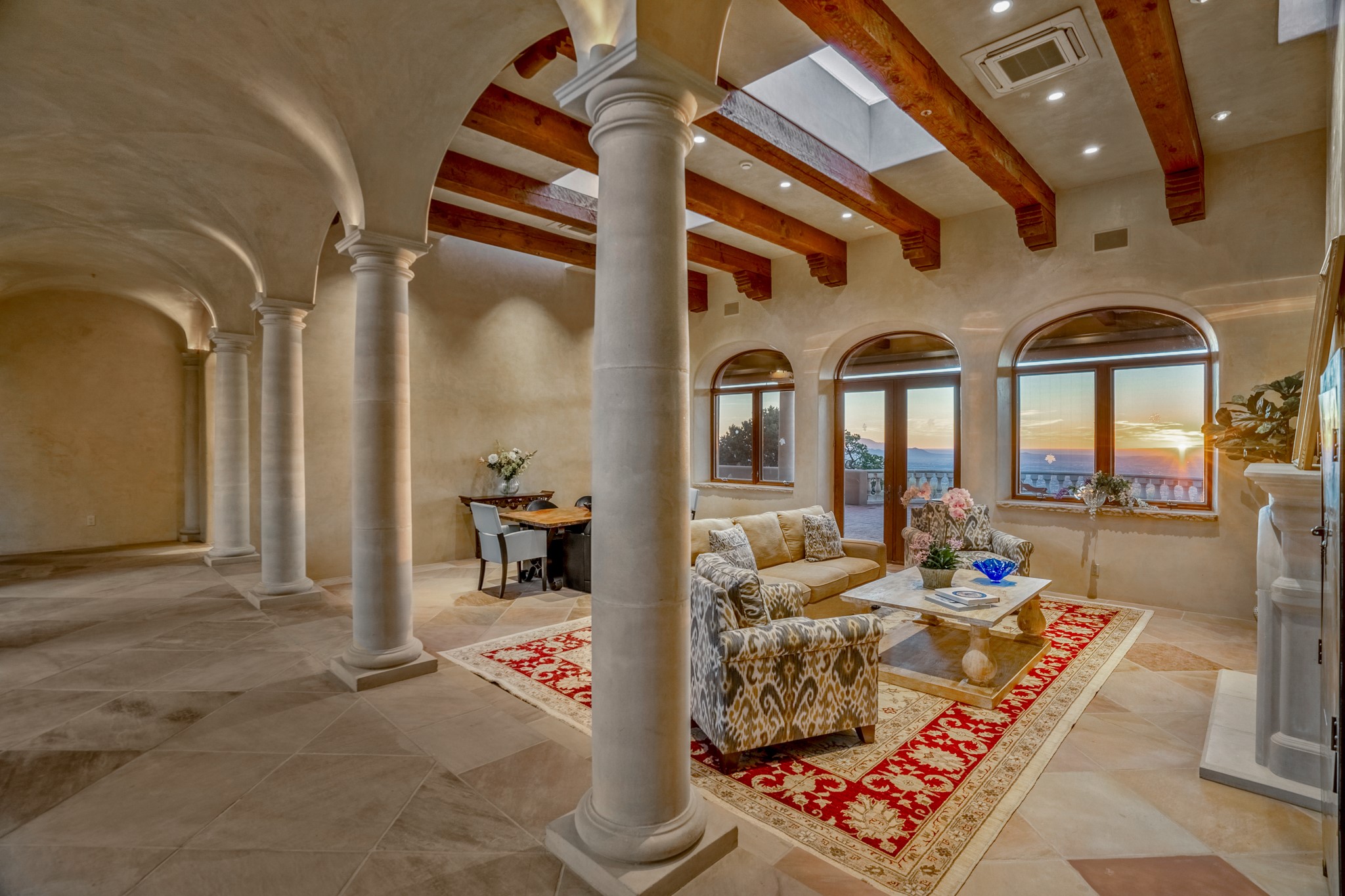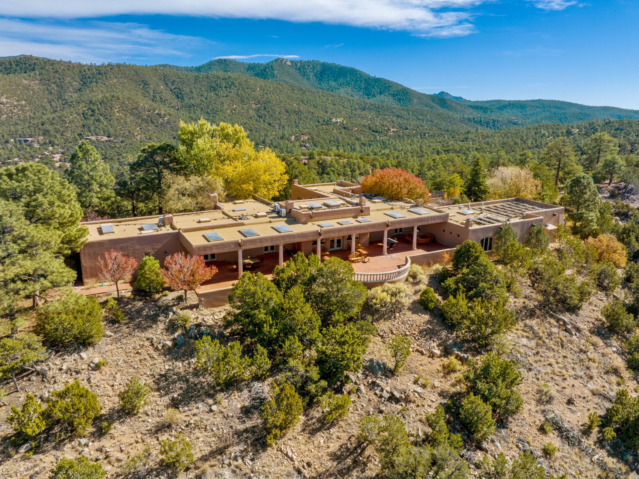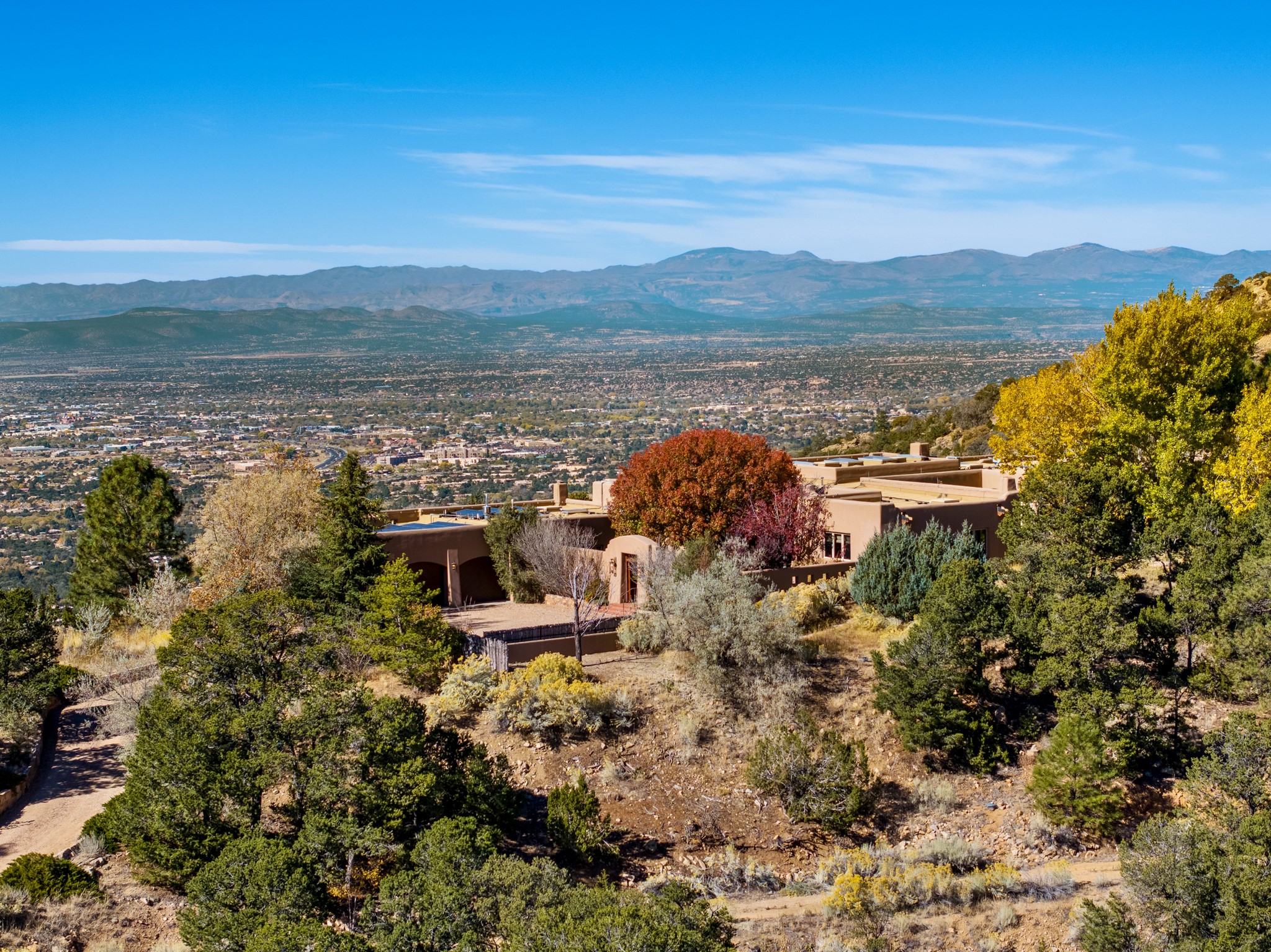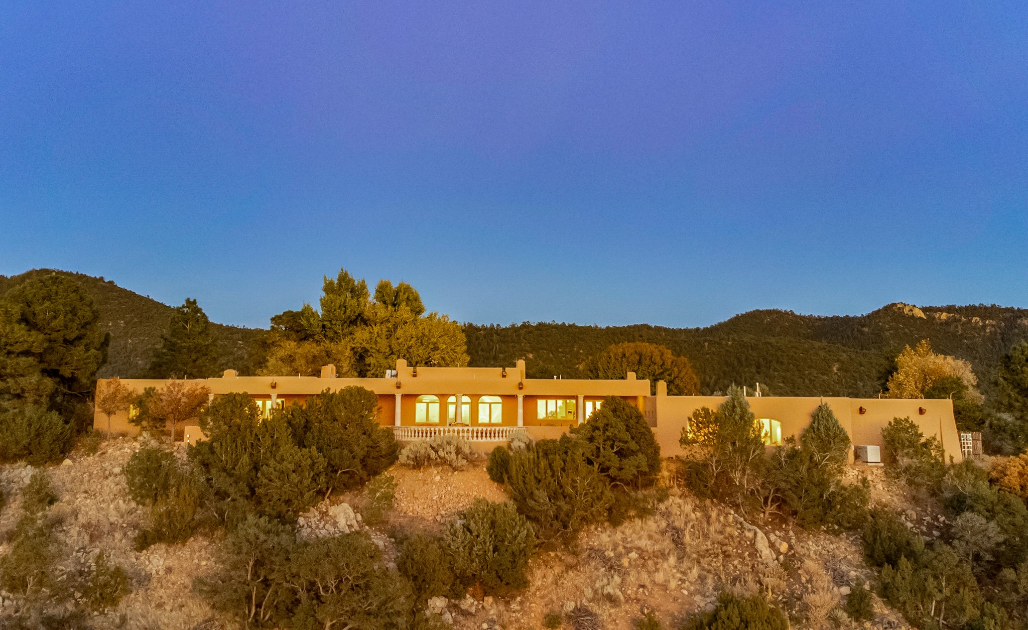 Perched on a ridgetop with rare magnificent views of mountains, sunsets and city lights is an artistic masterpiece. From the amazing vistas at every angle to the solid grounding of earth, this villa is embraced by nature and steeped in peace and privacy while also providing all you need for grand entertaining. Opening to the 3300 sf veranda and sharing in the incredible views are the gourmet kitchen, living/dining room, office/media room and the primary bedroom suite. Rounding out this truly unique and special home is a library and two additional bedrooms with ensuite baths.