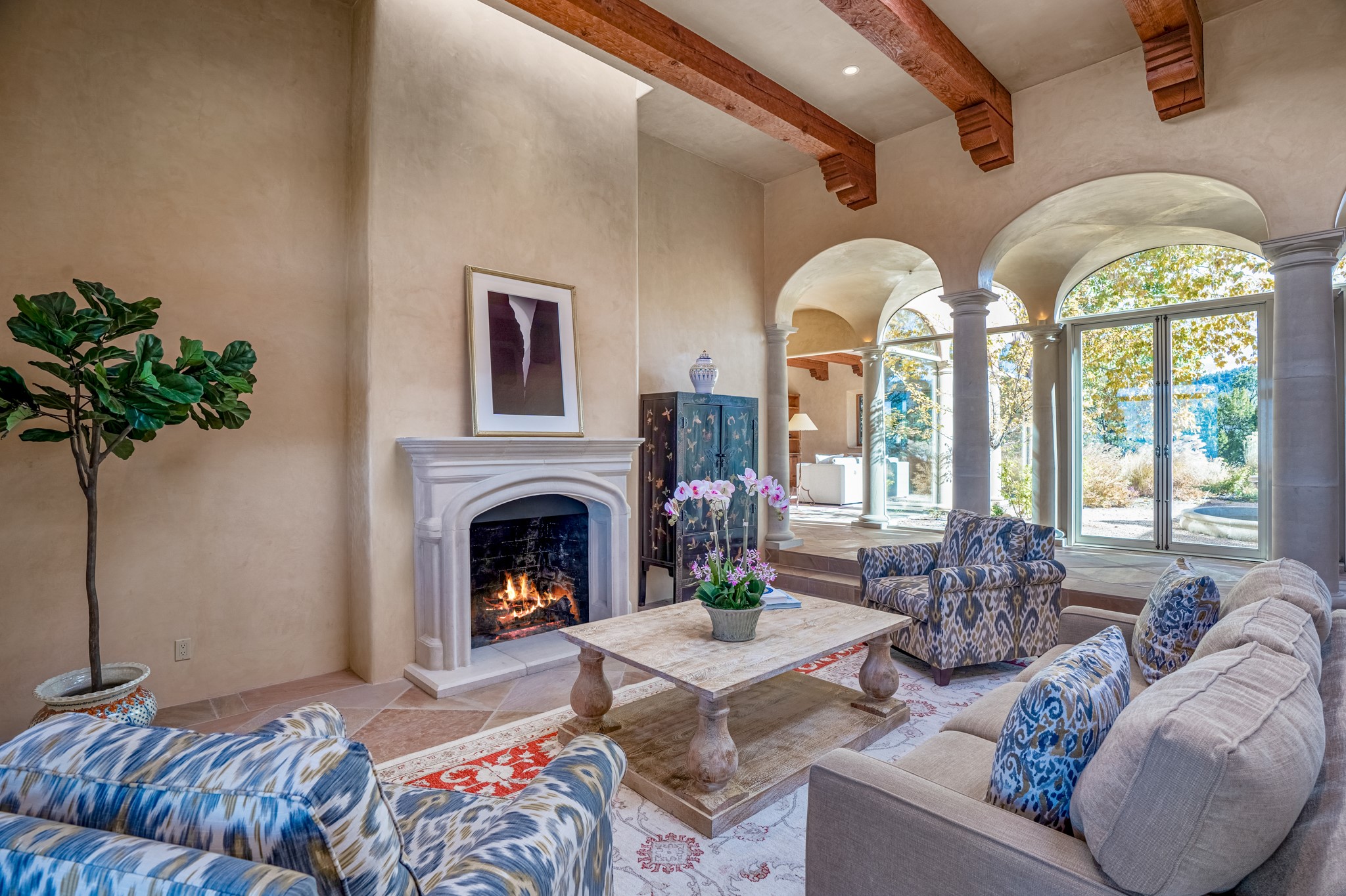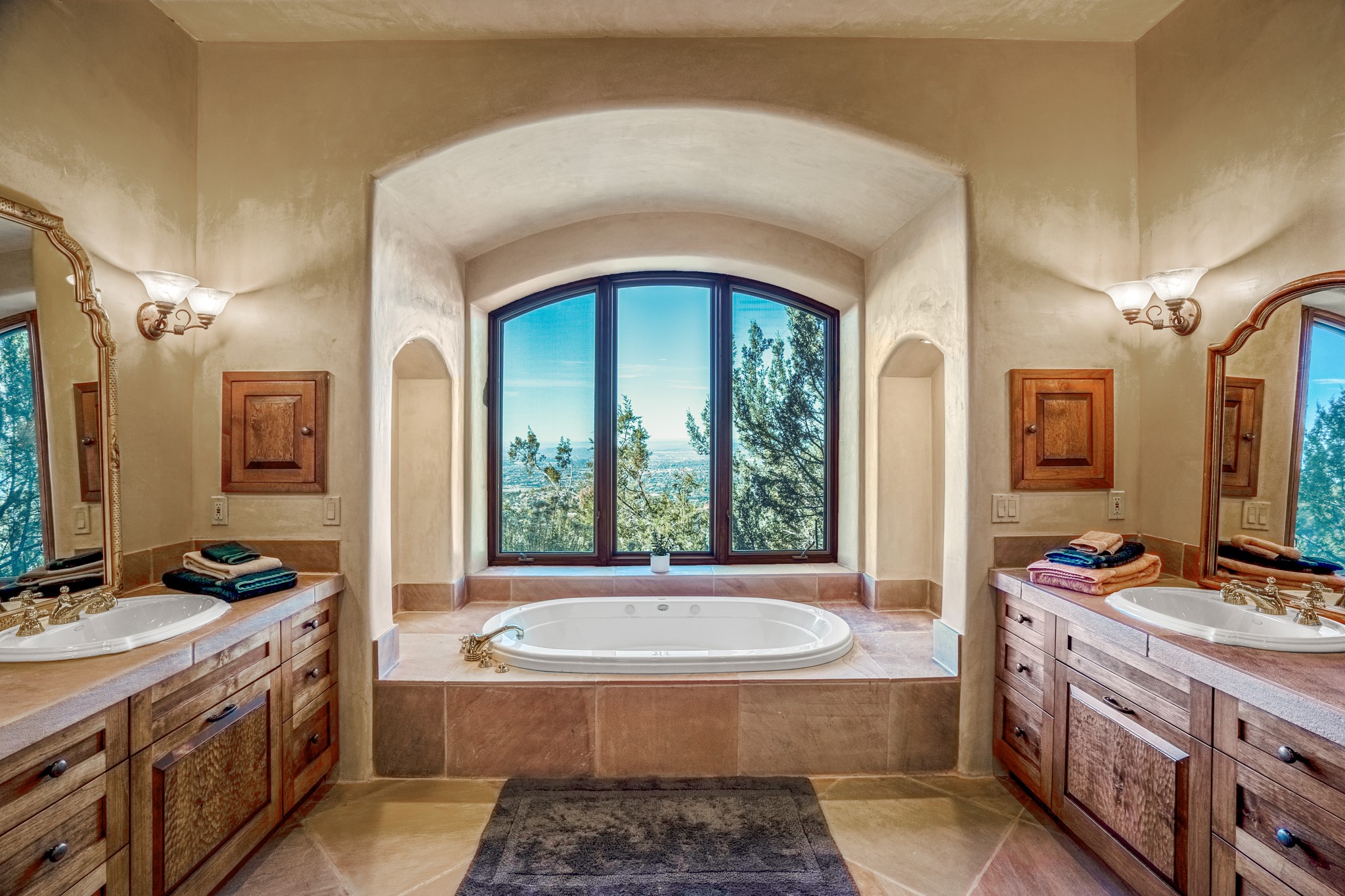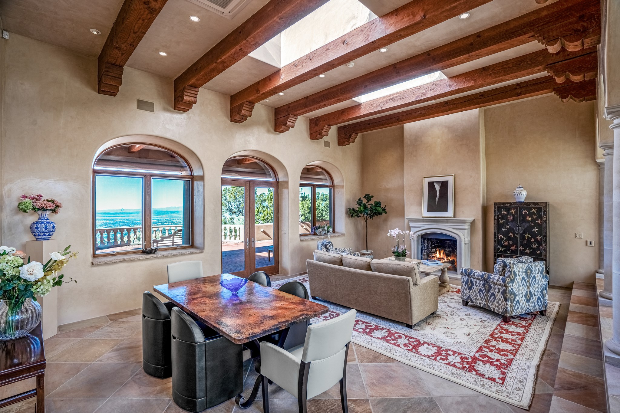 Perched on a ridgetop with rare magnificent views of mountains, sunsets and city lights is an artistic masterpiece. From the amazing vistas at every angle to the solid grounding of earth, this villa is embraced by nature and steeped in peace and privacy while also providing all you need for grand entertaining. Opening to the 3300 sf veranda and sharing in the incredible views are the gourmet kitchen, living/dining room, office/media room and the primary bedroom suite. Rounding out this truly unique and special home is a library and two additional bedrooms with ensuite baths.