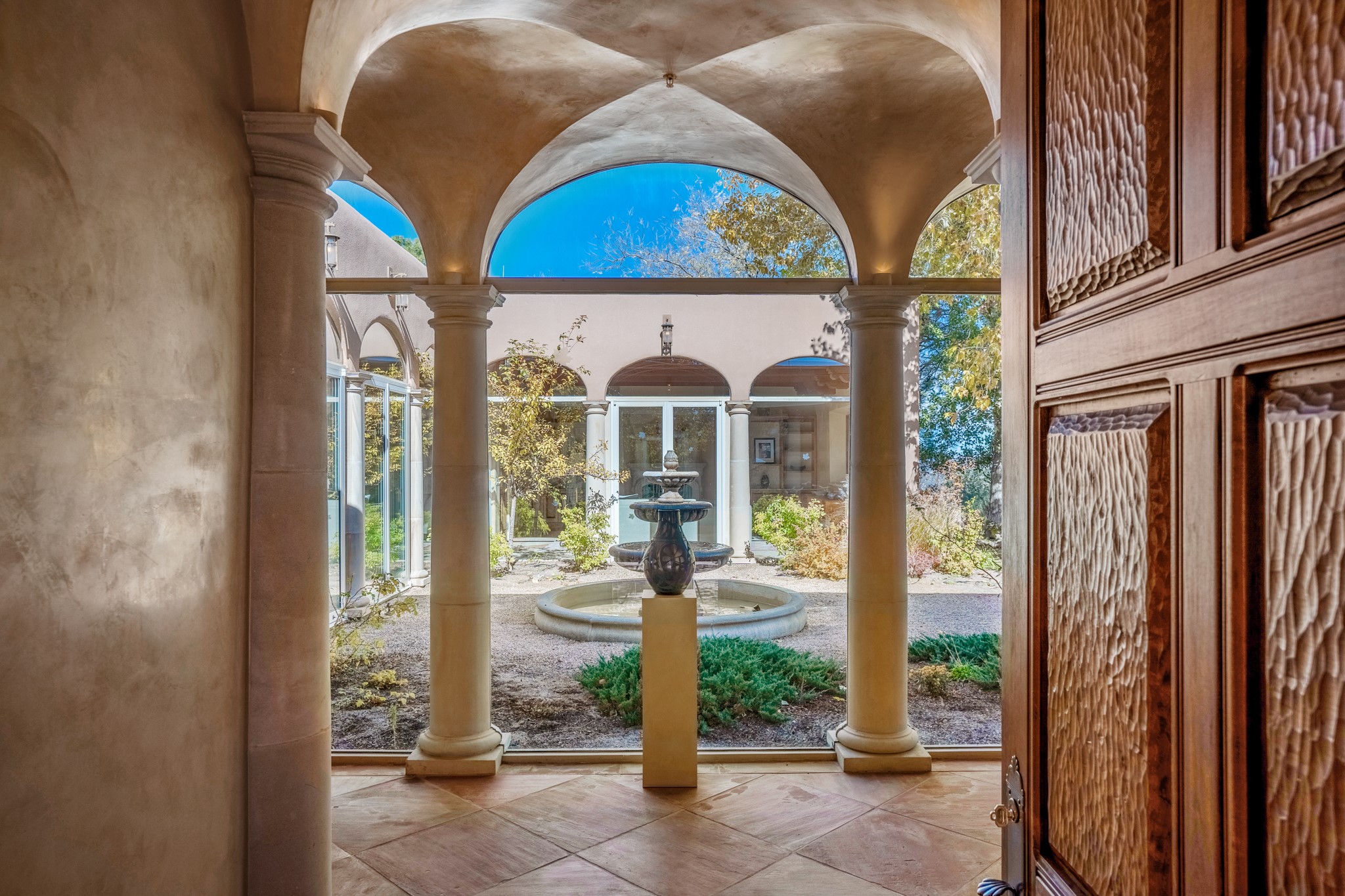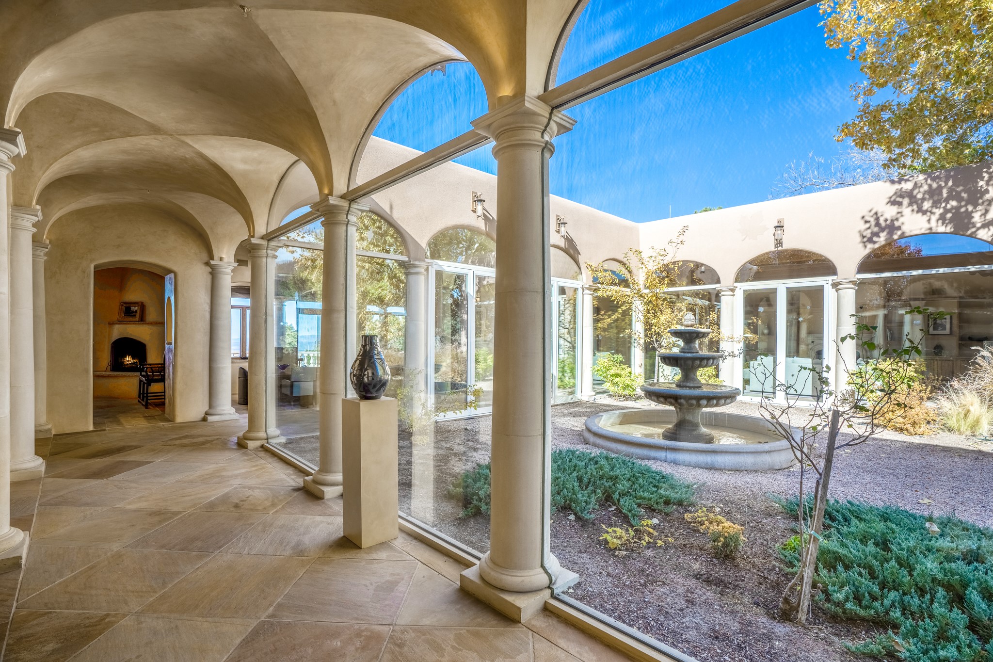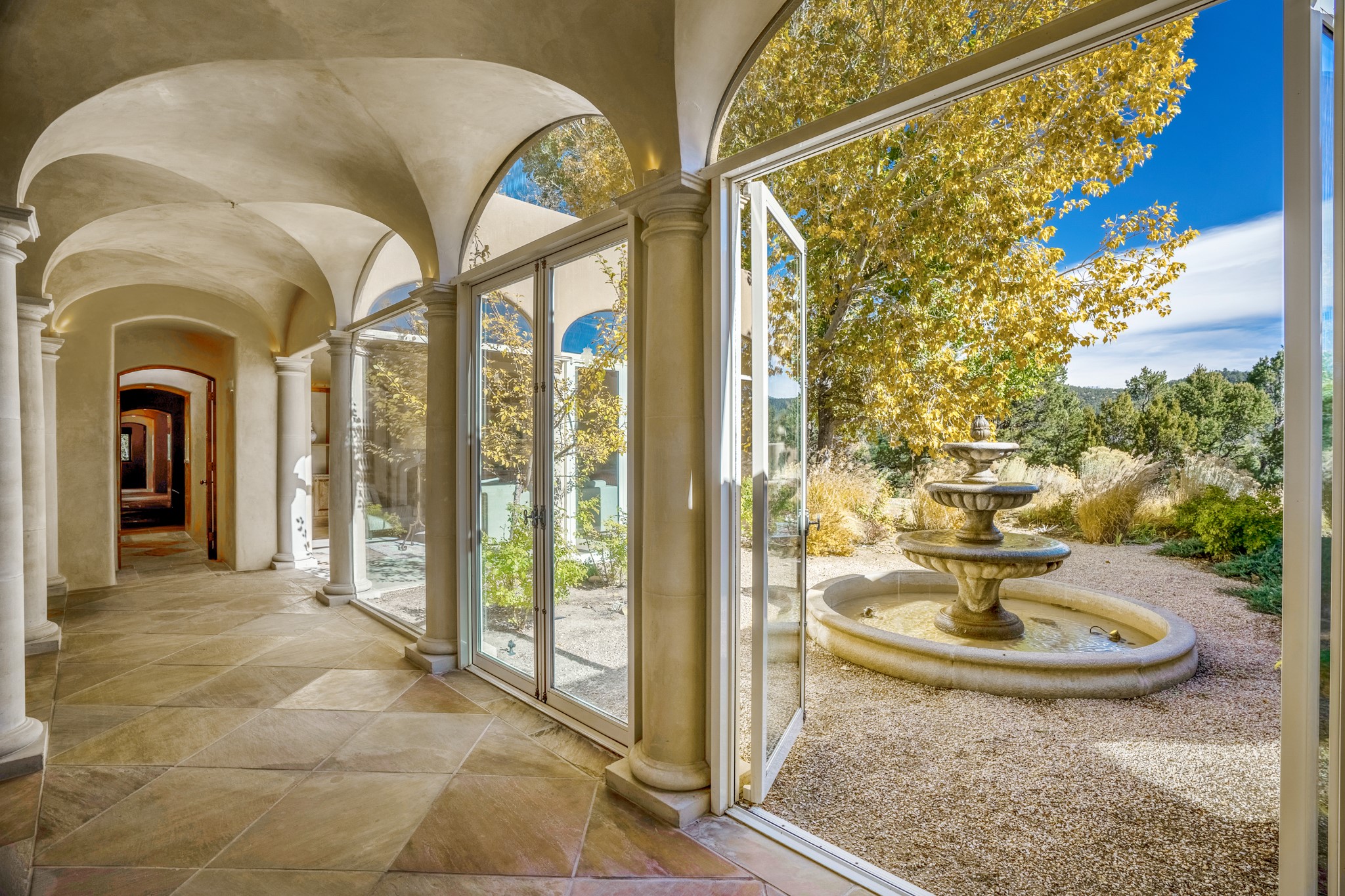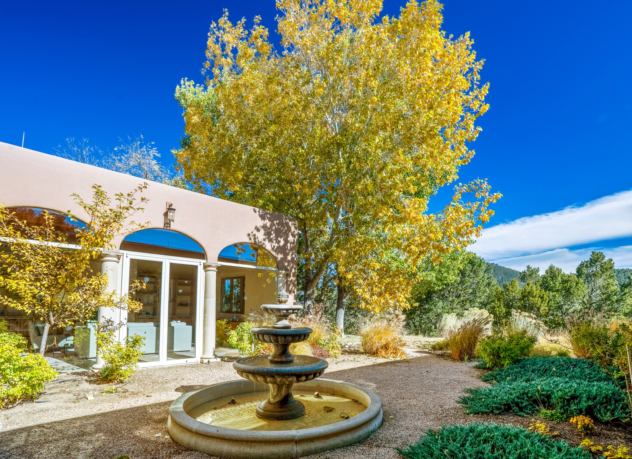 Perched on a ridgetop with rare magnificent views of mountains, sunsets and city lights is an artistic masterpiece. From the amazing vistas at every angle to the solid grounding of earth, this villa is embraced by nature and steeped in peace and privacy while also providing all you need for grand entertaining. Opening to the 3300 sf veranda and sharing in the incredible views are the gourmet kitchen, living/dining room, office/media room and the primary bedroom suite. Rounding out this truly unique and special home is a library and two additional bedrooms with ensuite baths.