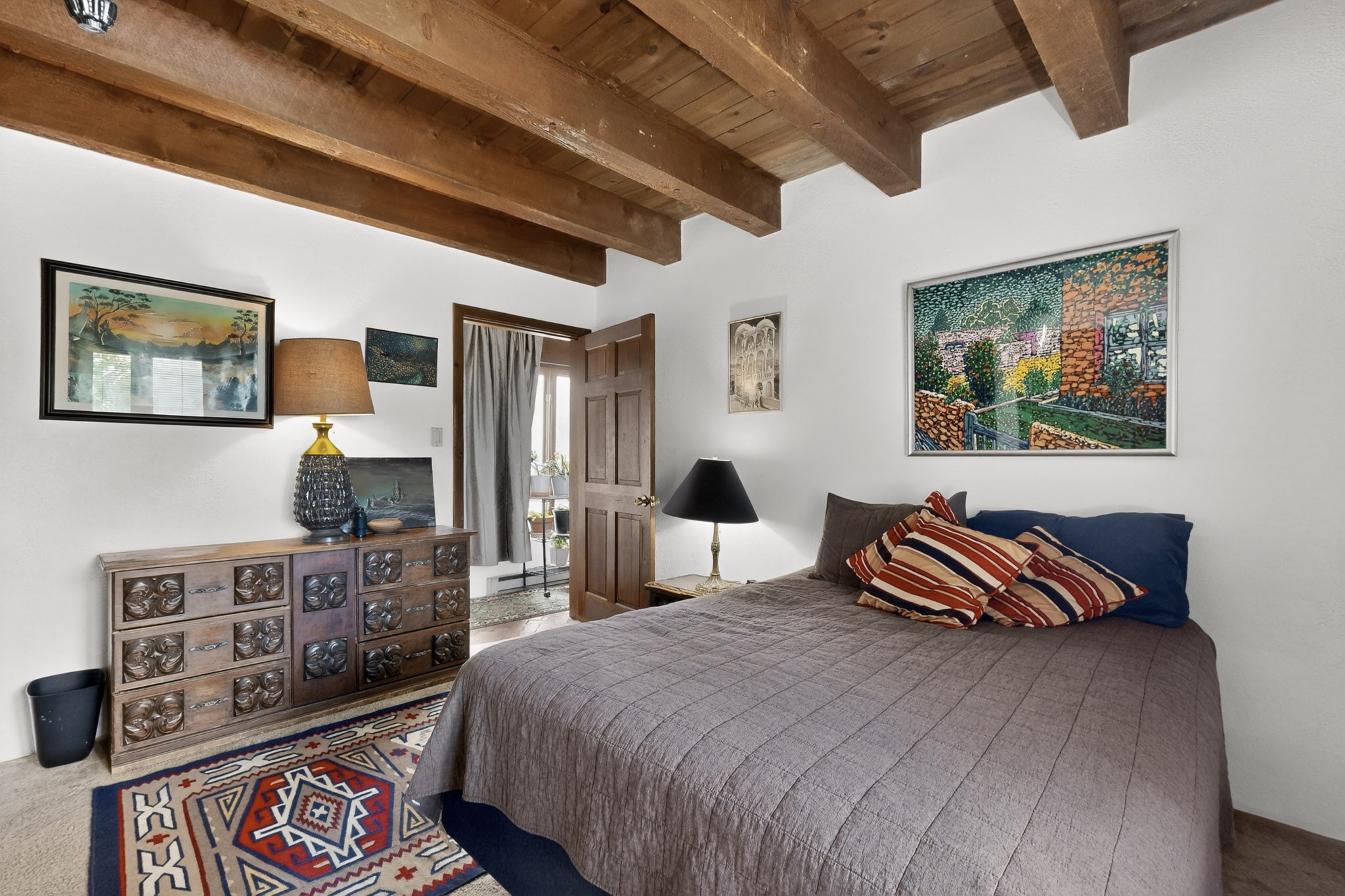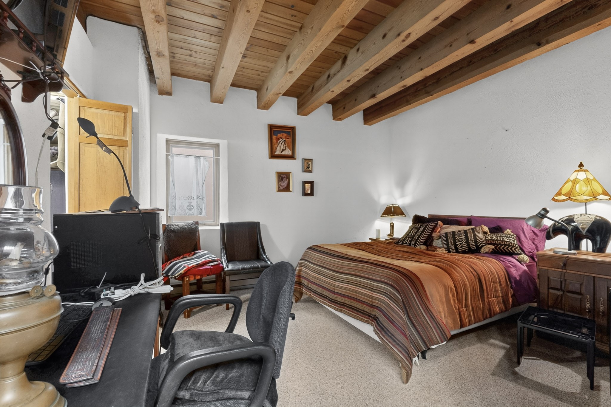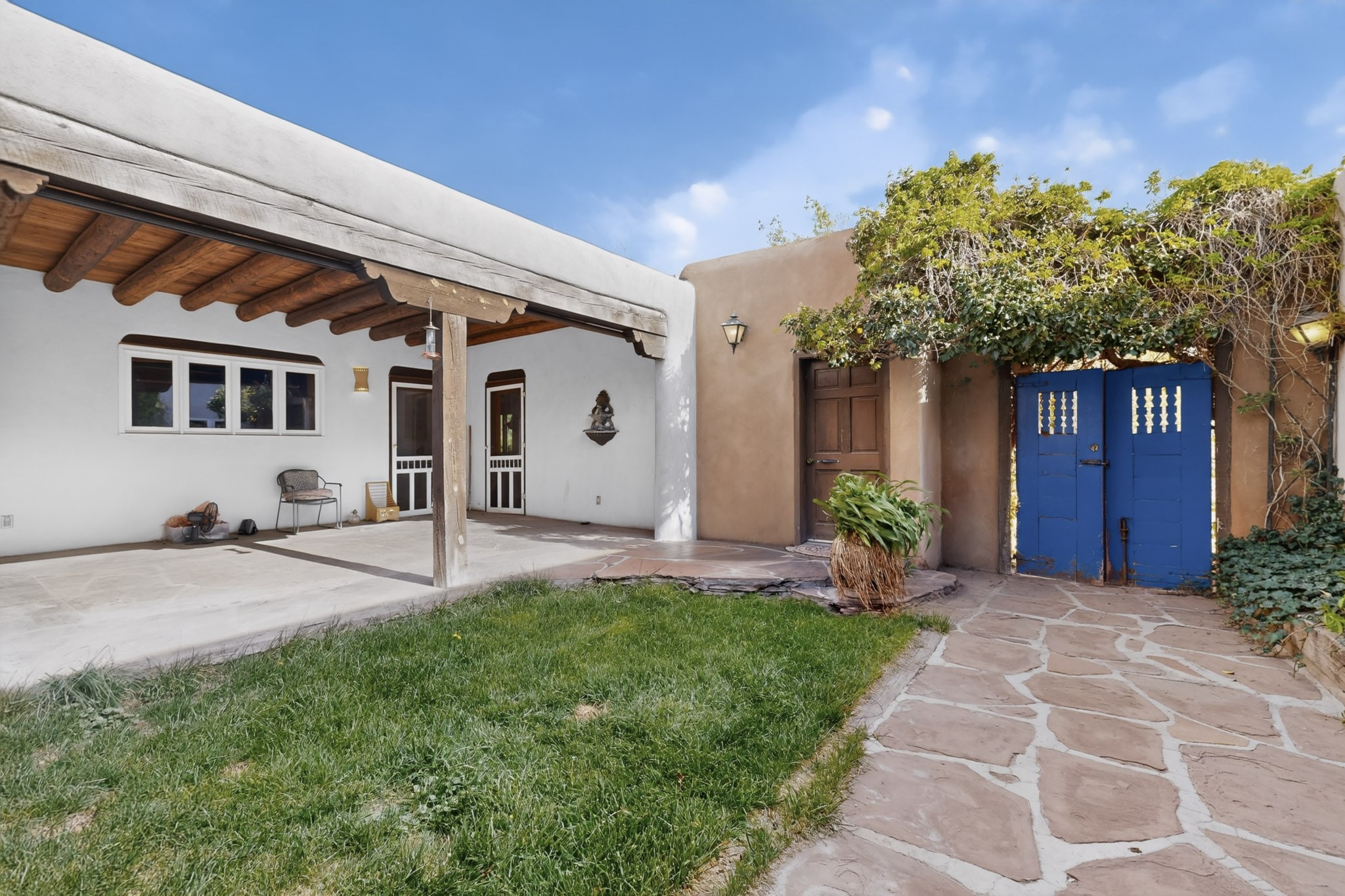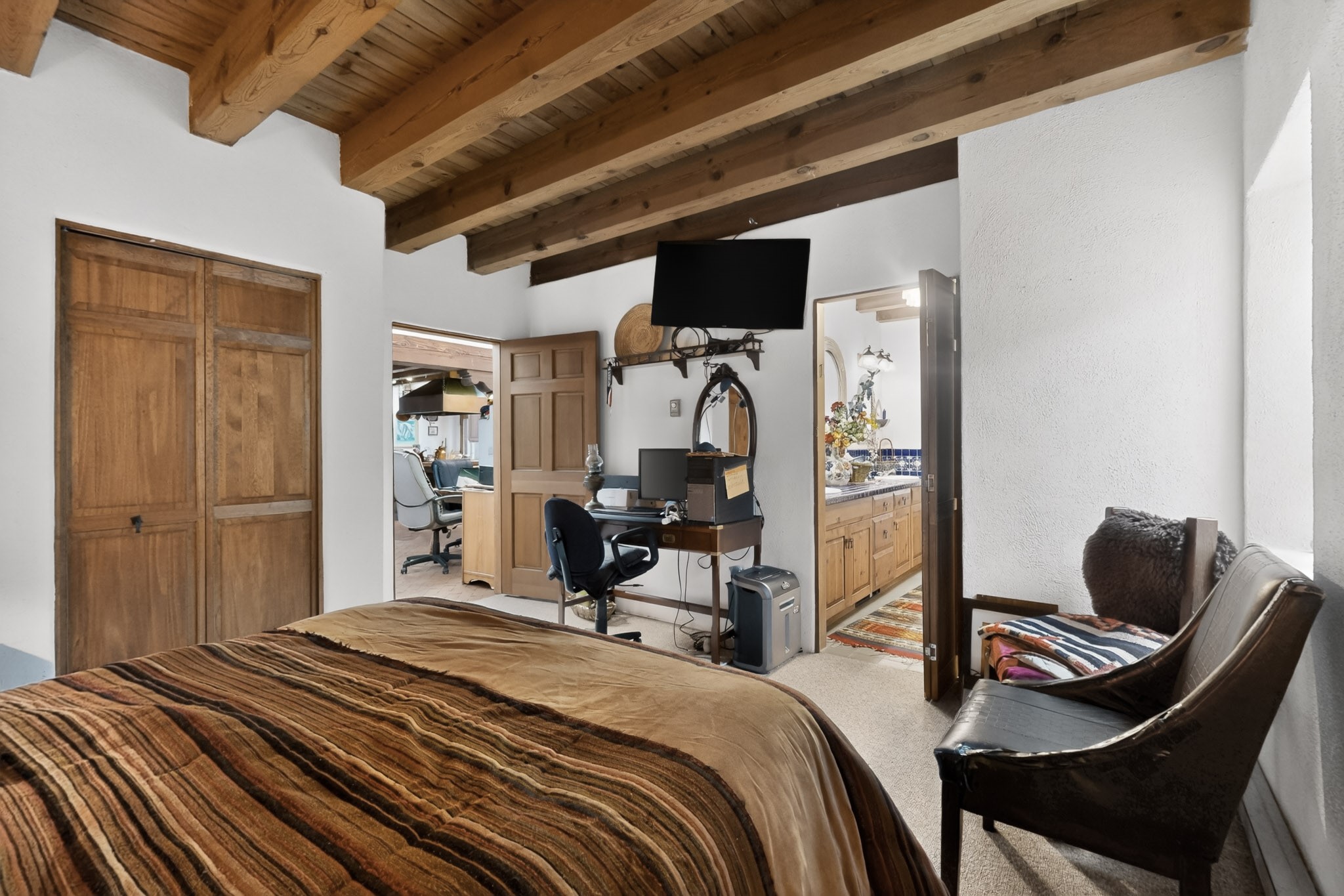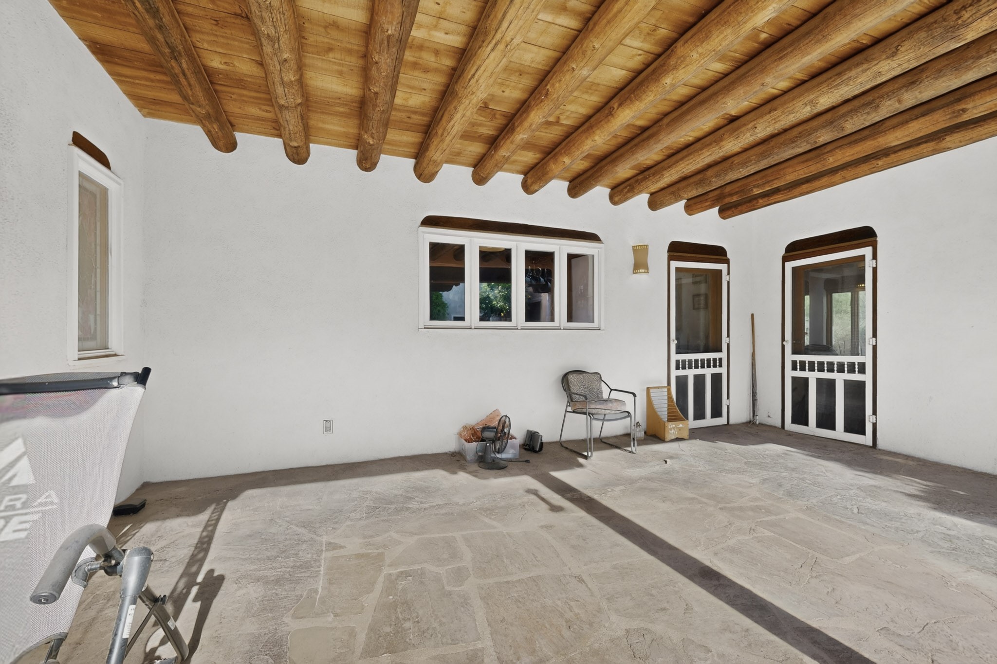 Bring your horses to this pinon and juniper covered Santa Fe County property close to town! The 10 acre parcel in Los Cerros Negros includes a main house, guest quarters, horse facility and is only 8 miles to the Santa Fe Plaza. The Southwest inspired house and guest quarters feature beautifully handcrafted wood throughout. The air conditioned main house has 3 bedrooms, 3 bathrooms and a sun room. The guest quarters has 2 bedrooms, 1 bathroom and an office. Your green thumb will be delighted with the large sun room in the main house where something can be blooming year round. The guest house could be a mother in law quarters or even an income producing property since it has its own entrance. There is abundant storage with many closets, a pantry, storage area off the covered portal and additional storage in the oversized well house.The horse barn situated away from the house includes a tack room, hay storage and 4 large stalls. Despite the country setting you are minutes away from Harry's Road House, Jambo Bobcat Bite, Cafe Fina and the Eldorado Supermarket. Just down the road is historical Santa Fe with its many dining options, art galleries and museums.