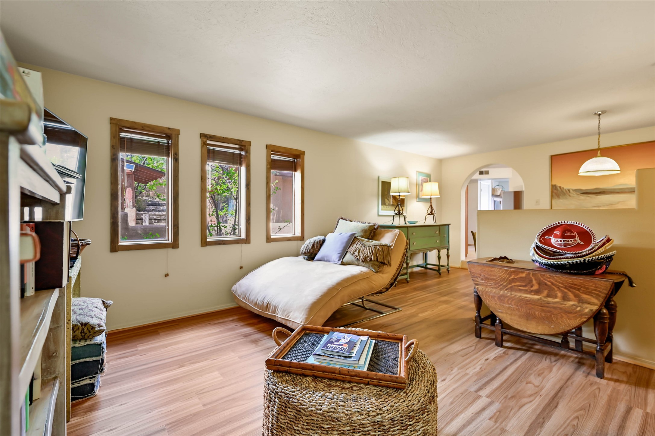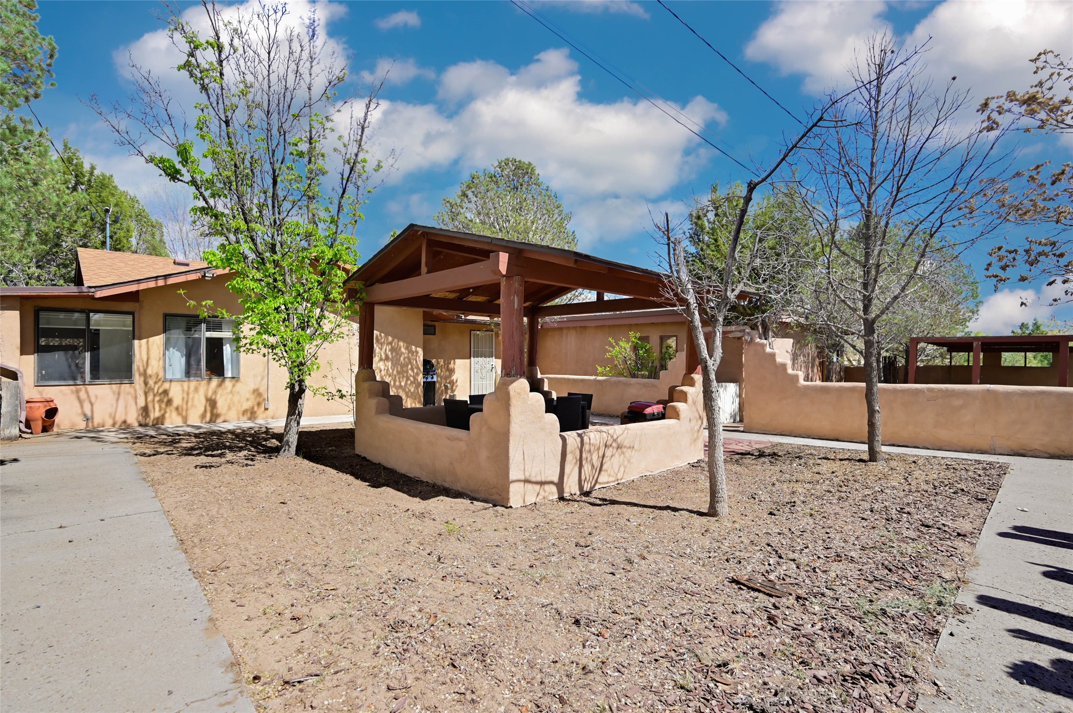 Ready to call home ia this charming, well-maintained residence nestled in a highly coveted West Alameda location. Situated on a generous .24-acre lot, this home offers the perfect blend of comfort and convenience, located just minutes from the vibrant energy of the historic Santa Fe Plaza.Built in 1997, this home features a thoughtful, functional floor plan. It offers three comfortable bedrooms and two full bathrooms, providing plenty of room for relaxation or a home office. Additionally, it has a spacious living room and formal dining plus a flex space for tv, family area or office. Gorgeous Vinyl plank flooring and tile for easy care. Newer forced air heat and cooling provide comfort year around.The very private back area offers your own private retreat highlighted by a lovely pergola, perfect for enjoying Santa Fe's legendary seasons, hosting summer barbecues, or simply unwinding in your own peaceful oasis.Additional features include a one-car garage, offering secure parking and extra storage space.Don't miss the opportunity to own a piece of Santa Fe in such a desirable, accessible location. This home is ready to call your own. 1031 Exchange transaction with no effect on buyer.