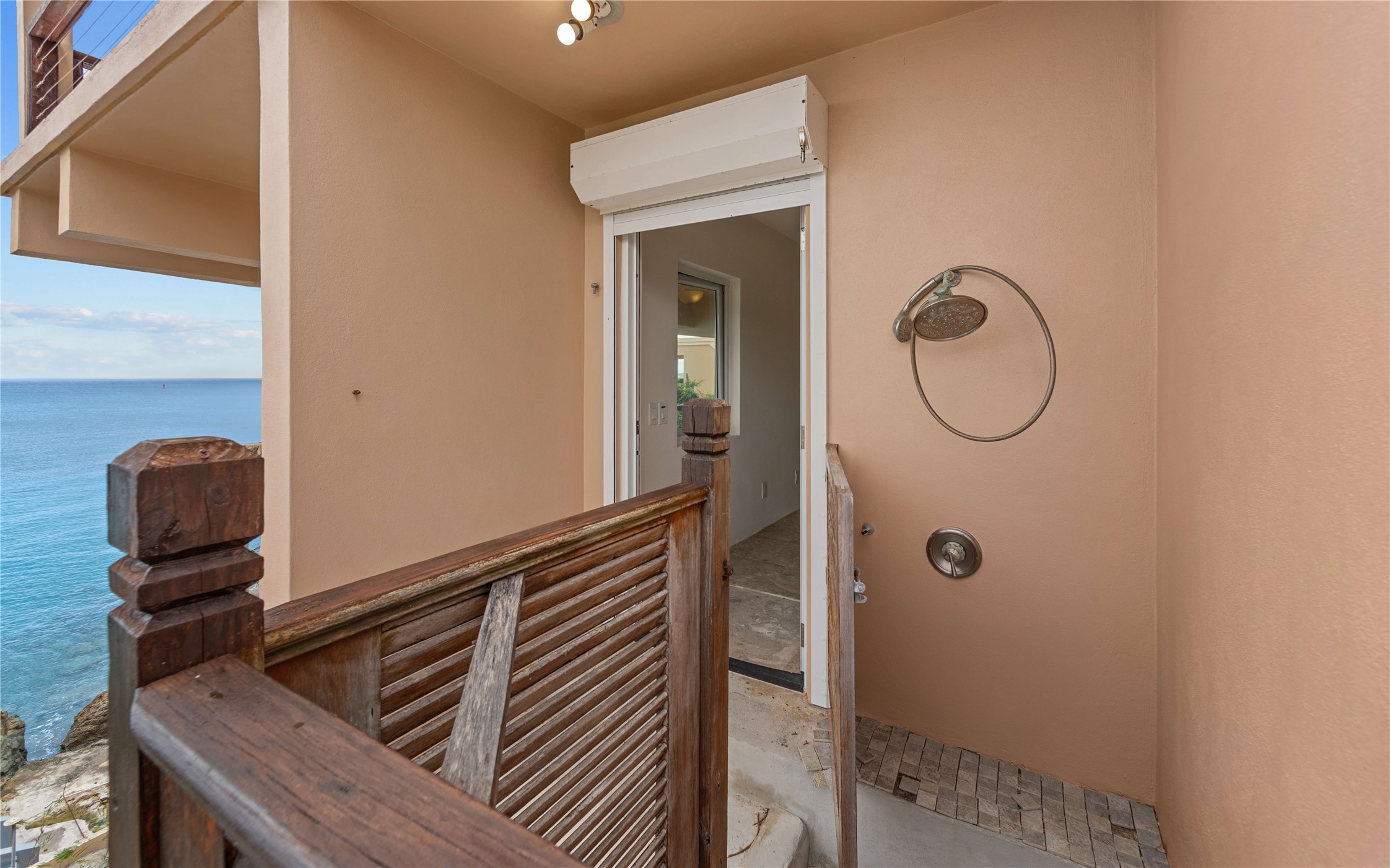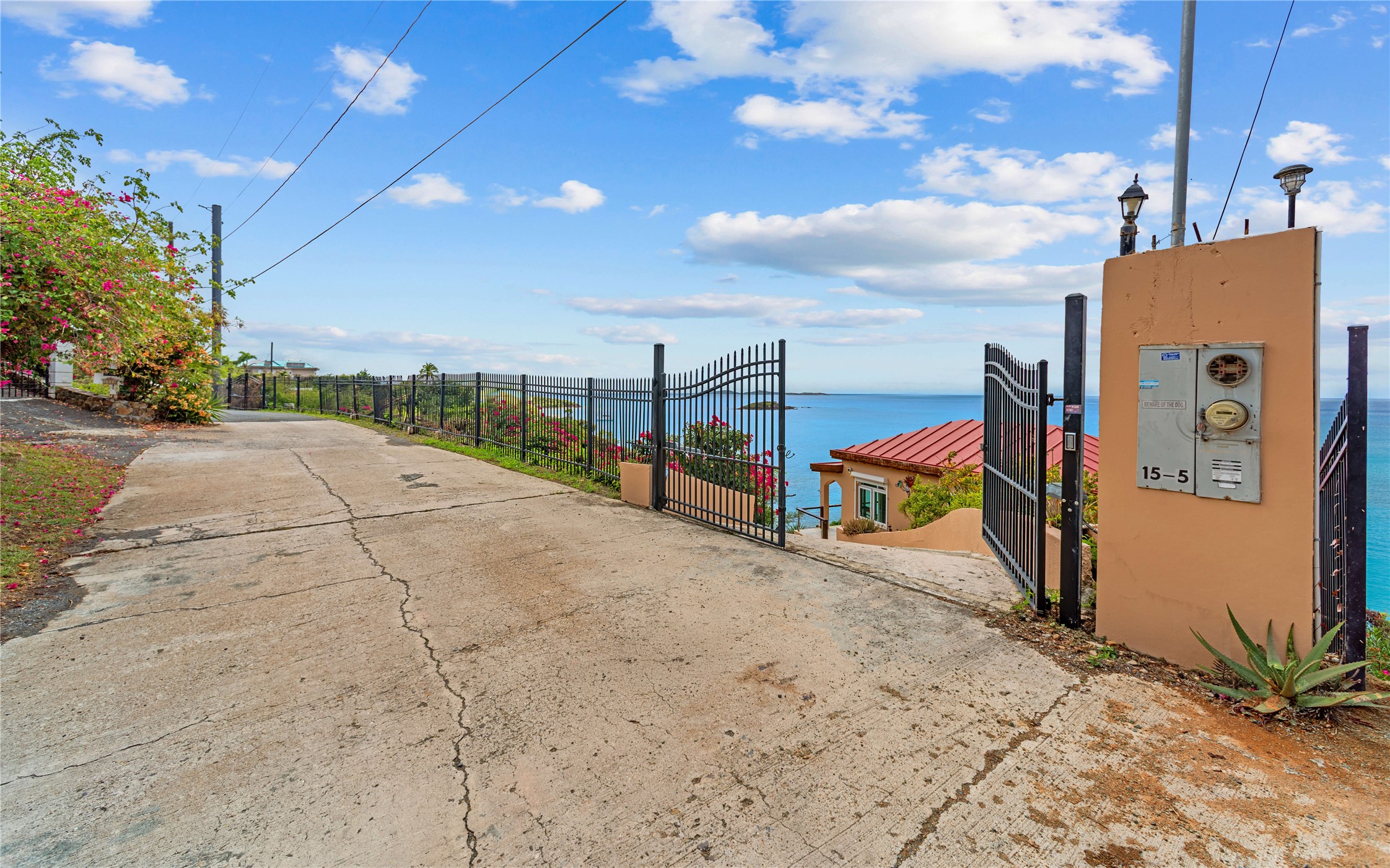 Absolutely STUNNING! This is truly a one of a kind waterfront property on St Thomas, US Virgin Islands! Imagine... a charming cottage...on a gated parcel... room to expand...with your pool literally built out into the ocean! There's just no better place than floating in your pool at sea level! The cottage is solid masonry construction featuring a beautiful kitchen, open concept living surrounded by sliding doors opening to expansive ocean view decks. Vaulted tongue and groove ceilings throughout. Full one bedroom/one bath on the main level. The lower level offers second bedroom space with a full bath. Original plan was to live in the cottage while building your dream villa on the remainder of the generous parcel. It's beautifully imagined as is too. The pool... what's not to love! The best of island living.