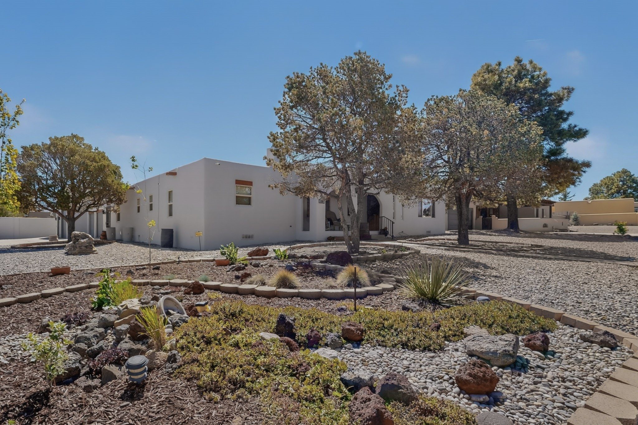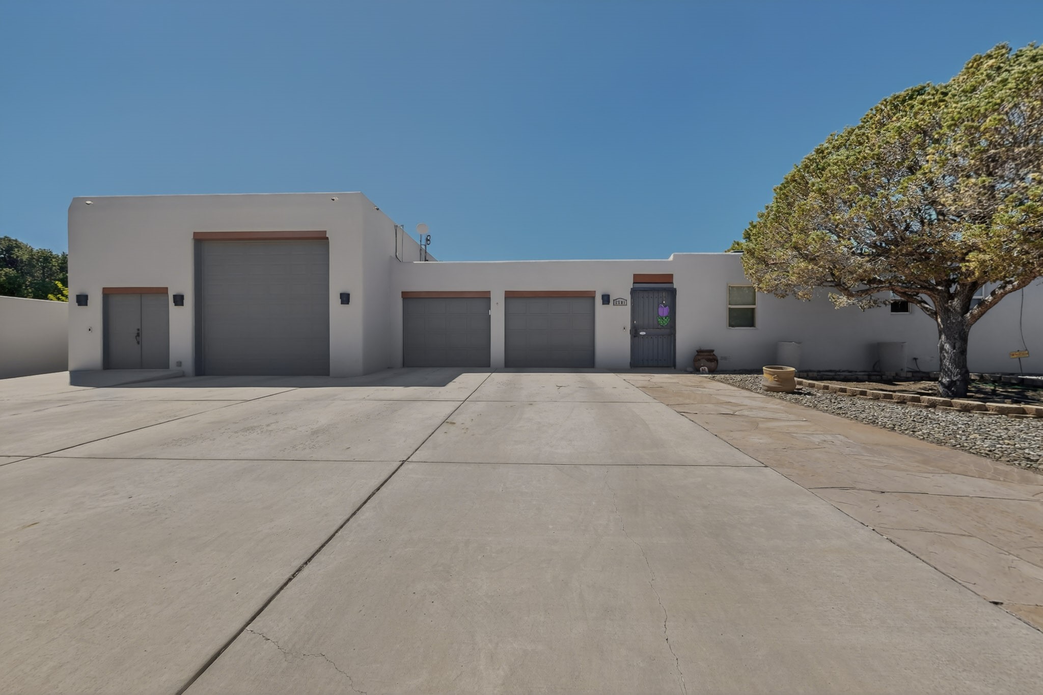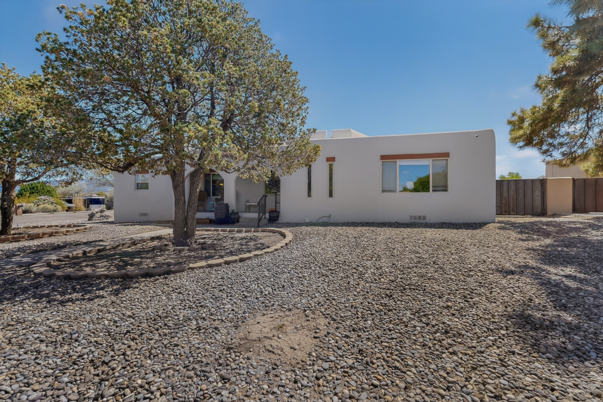 Welcome to Via Caballero, a highly sought-after neighborhood, known for quiet living and oversized lots in a centralized location. This home has been renovated with a new Solar system, new flooring, new windows, new stucco and roof, new skylights, a beautiful new kitchen with a built-in Miele coffee station and lots of storage, along with updated bathrooms - all within the last 5 years. The sellers have installed a new dishwasher, refrigerator, washer and dryer. To add to the amenities, you have a 884 square foot RV garage with 3 bays that is heated for any work or play that you want. There is good separation between the primary bedroom and the other bedrooms and lots of living space with a living room and a family room. The kitchen, dining room and breakfast nook have an open concept and adjoin the family room. The backyard is completely enclosed with a stucco wall and has an outdoor kitchen with a built-in range and storage. A new hot tub and outdoor fountain for your enjoyment are in the privacy of the covered patio in your backyard. The house is completely powered from the new solar panels that have been paid for. This property has so much to offer - all in a great location with lots of space to make it your own at a great price!