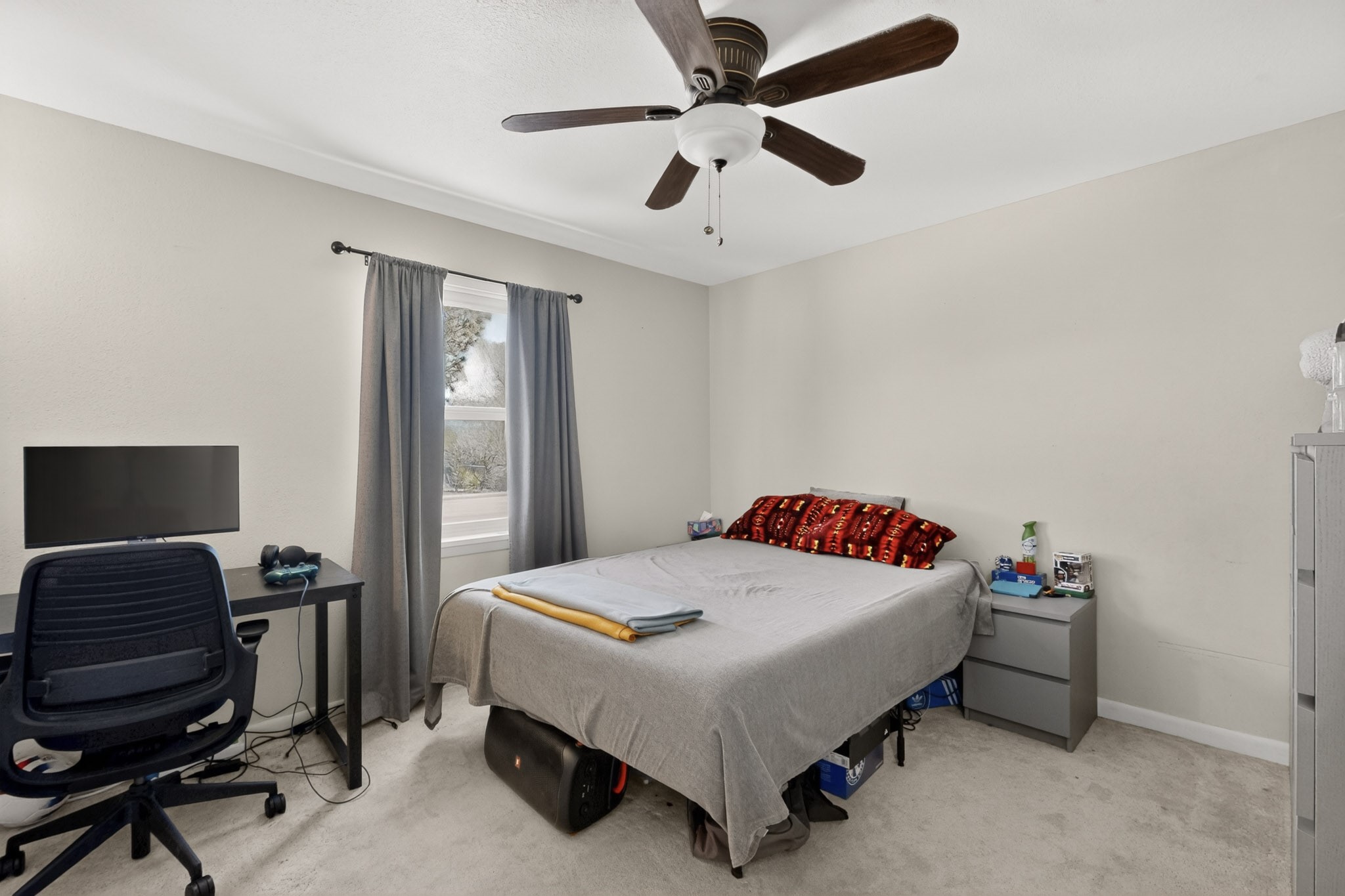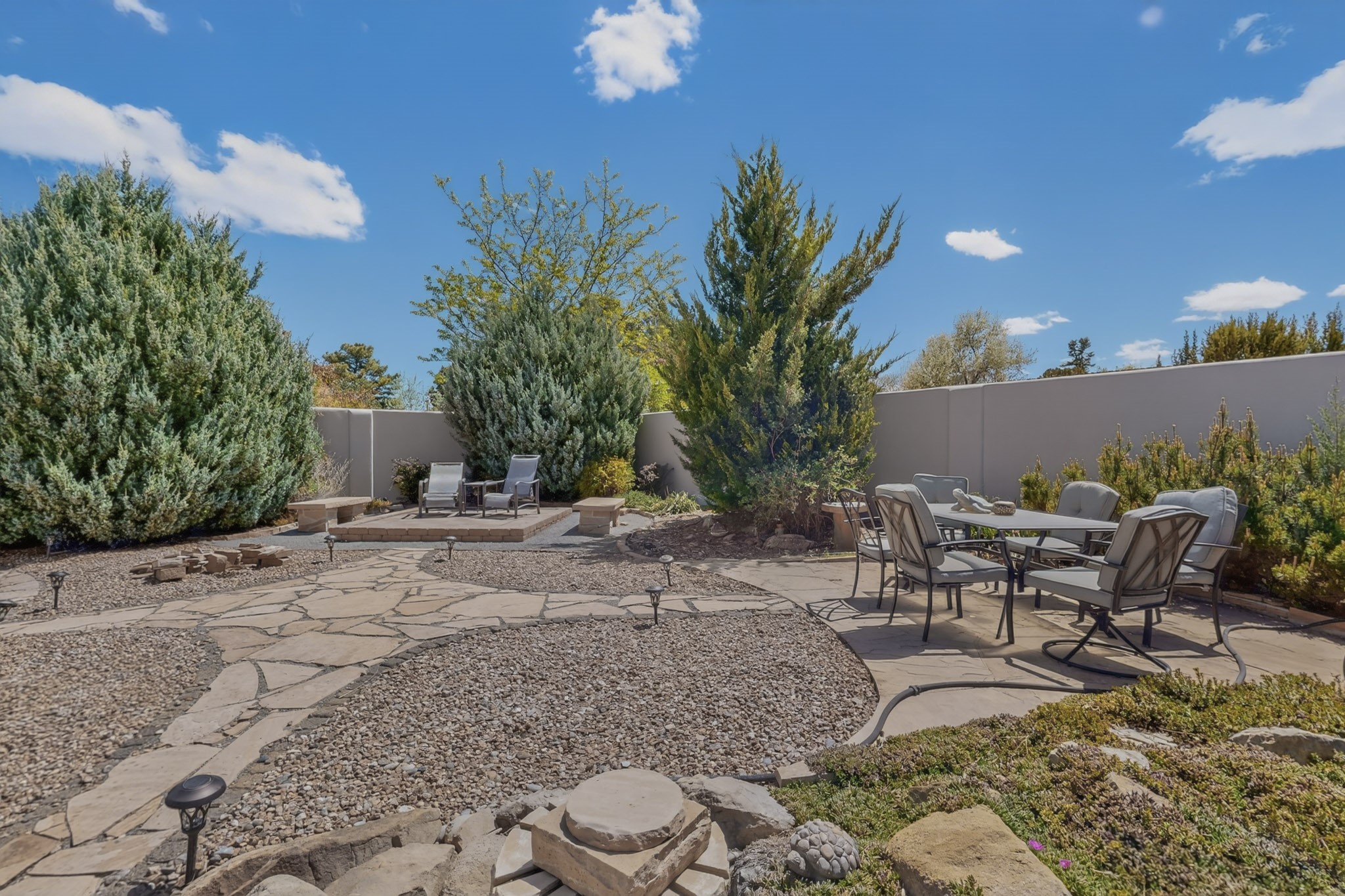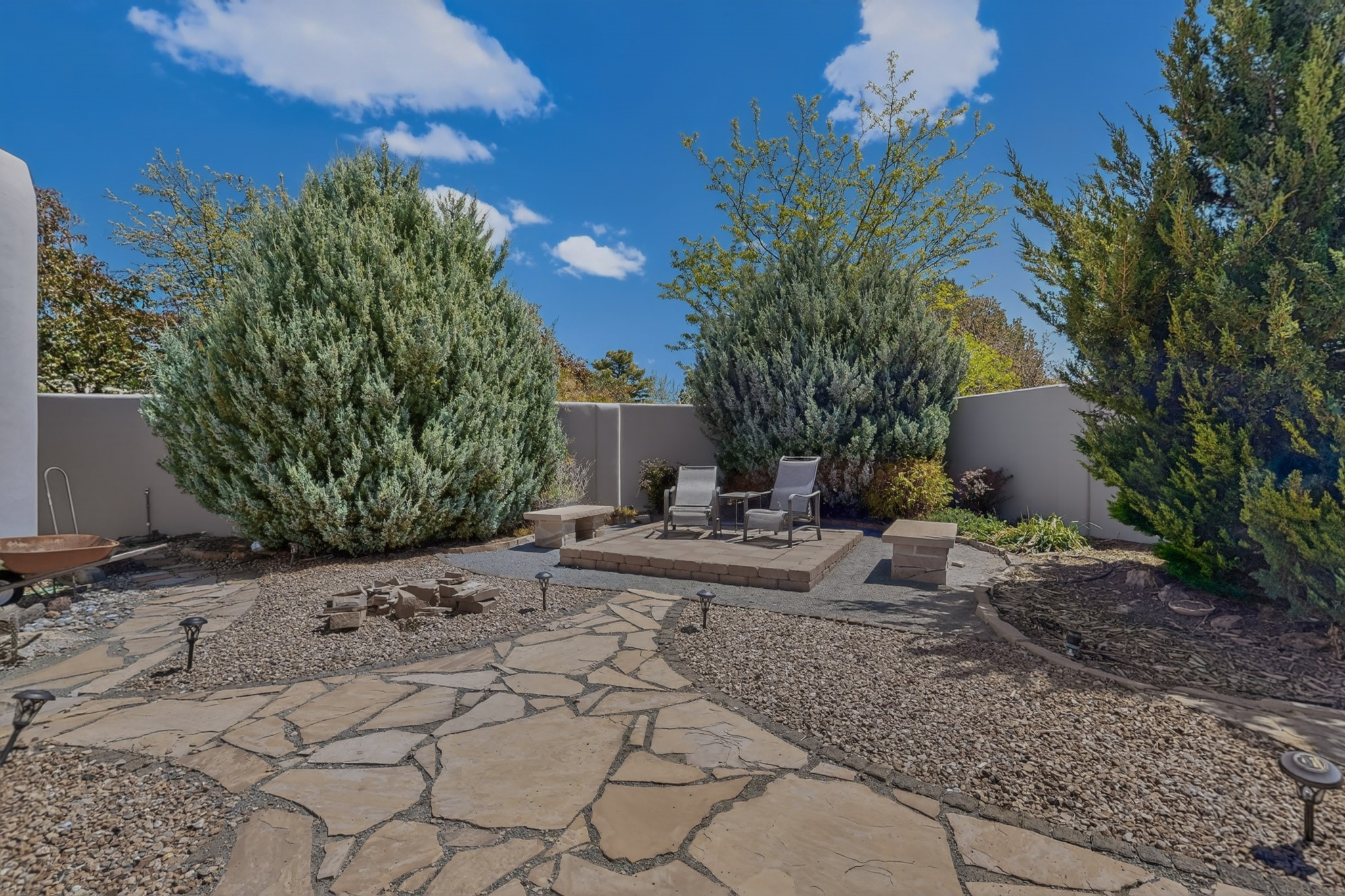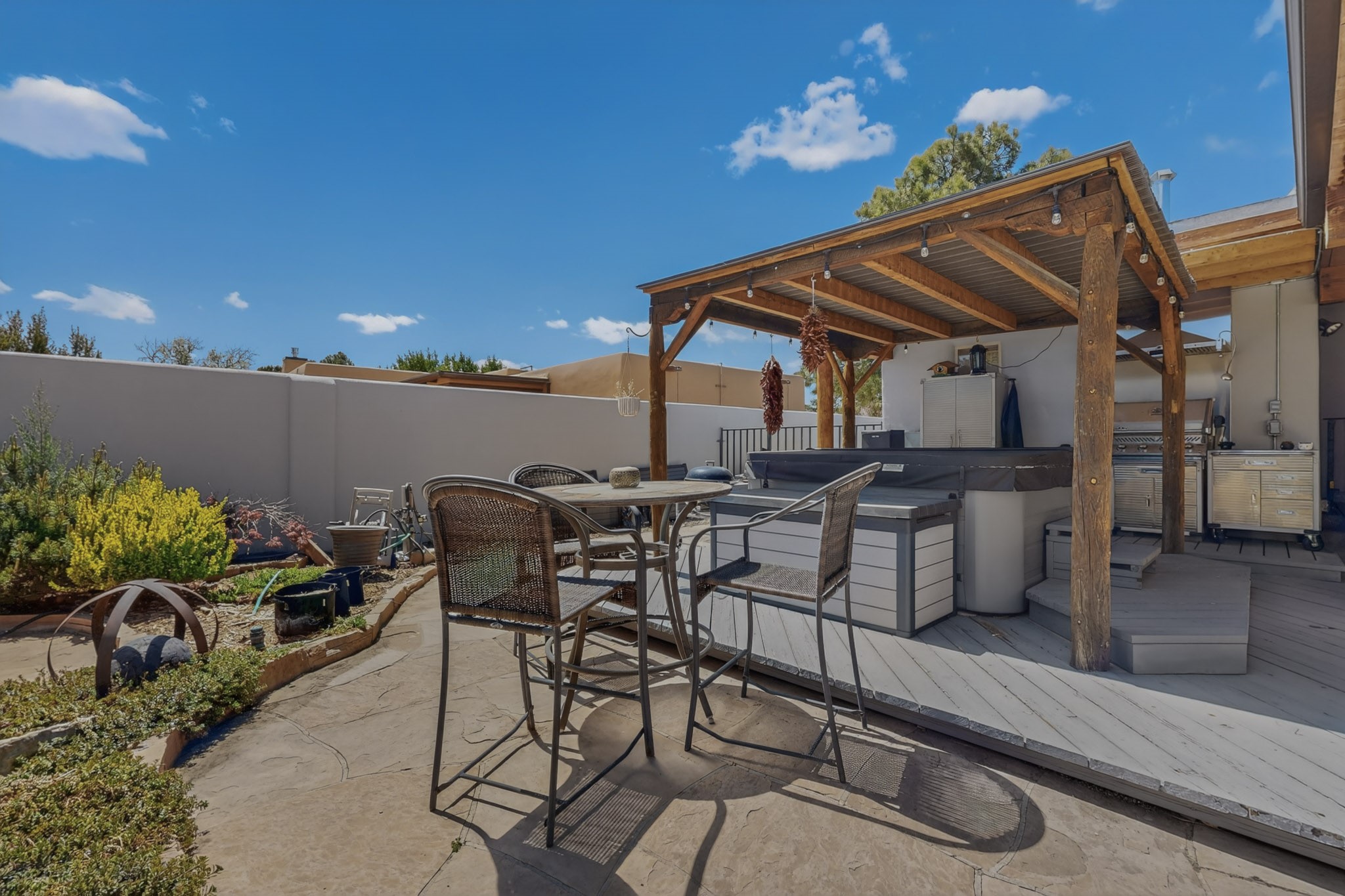 Welcome to Via Caballero, a highly sought-after neighborhood, known for quiet living and oversized lots in a centralized location. This home has been renovated with a new Solar system, new flooring, new windows, new stucco and roof, new skylights, a beautiful new kitchen with a built-in Miele coffee station and lots of storage, along with updated bathrooms - all within the last 5 years. The sellers have installed a new dishwasher, refrigerator, washer and dryer. To add to the amenities, you have a 884 square foot RV garage with 3 bays that is heated for any work or play that you want. There is good separation between the primary bedroom and the other bedrooms and lots of living space with a living room and a family room. The kitchen, dining room and breakfast nook have an open concept and adjoin the family room. The backyard is completely enclosed with a stucco wall and has an outdoor kitchen with a built-in range and storage. A new hot tub and outdoor fountain for your enjoyment are in the privacy of the covered patio in your backyard. The house is completely powered from the new solar panels that have been paid for. This property has so much to offer - all in a great location with lots of space to make it your own at a great price!