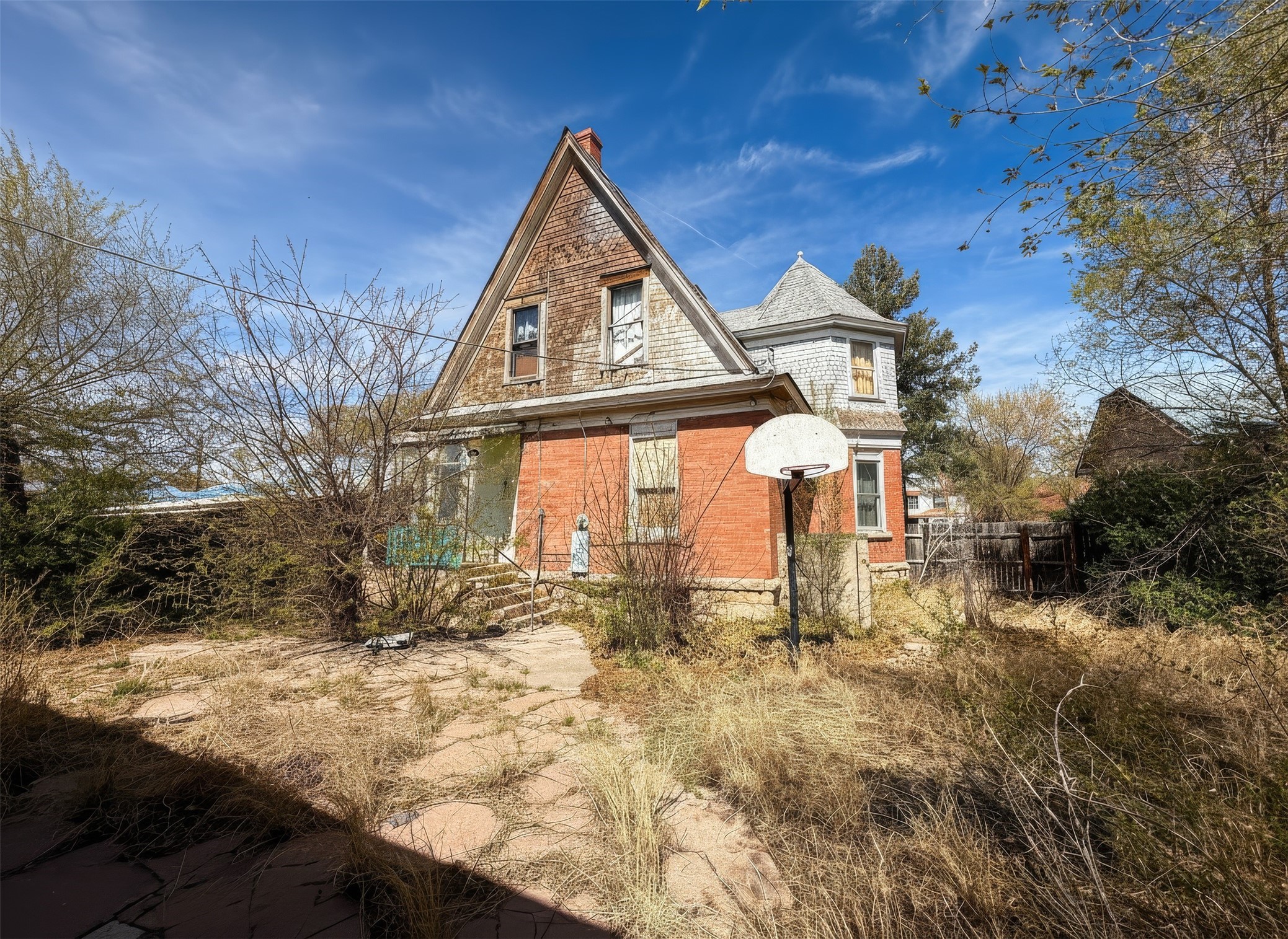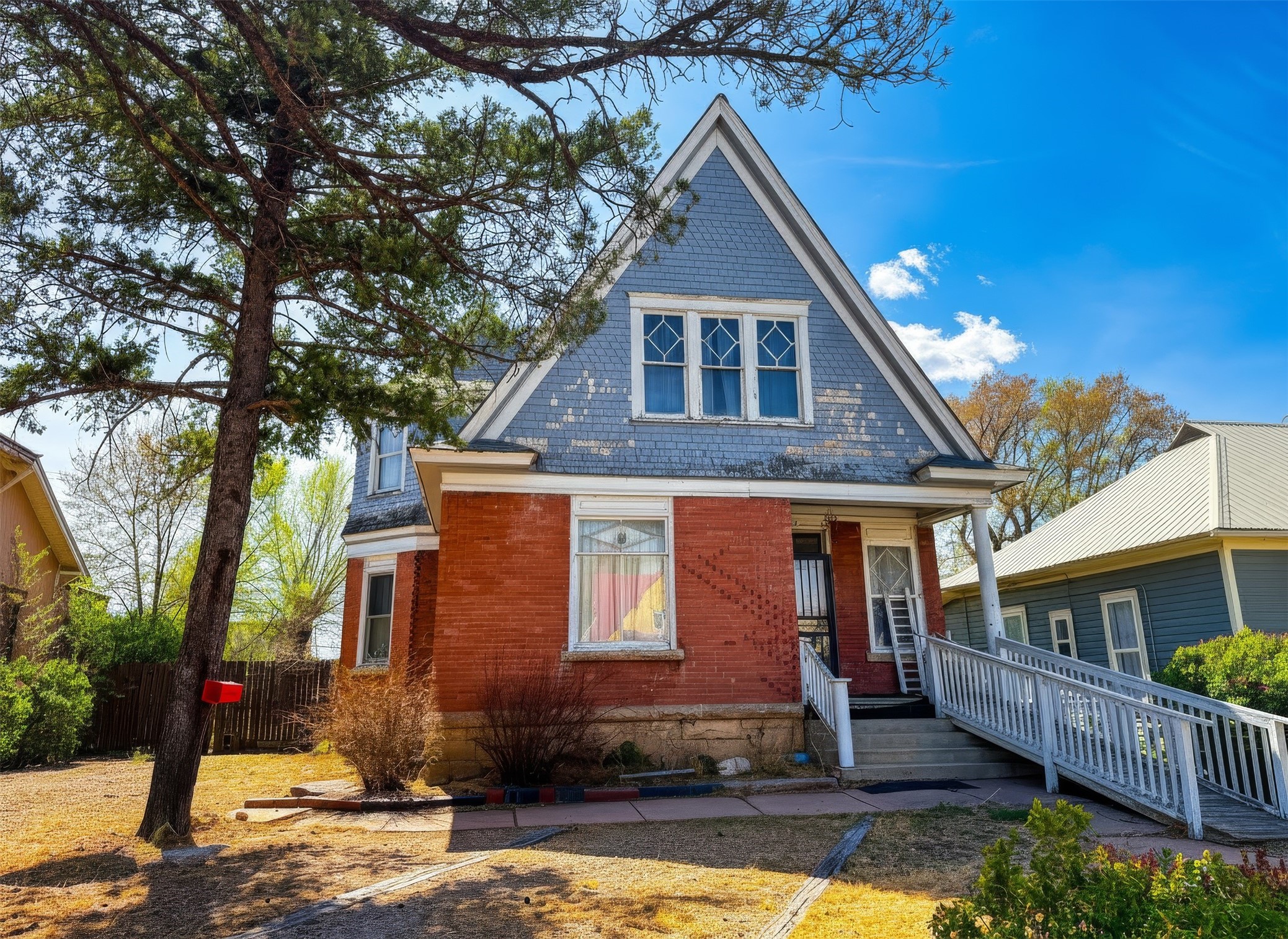 This 3-bedroom, 2-bath brick Victorian cottage offers approximately 1,680 square feet in the main home and includes a separate 2-bedroom, 1-bath guest house of approximately 790 square feet. Filled with character and restoration potential, the home appears to feature original ornate woodwork and period details that reflect its vintage charm. A welcoming foyer creates an inviting entry, leading into spacious living and dining areas with a layout that offers flexibility for future updates and improvements. The floor plan includes generously sized bedrooms, including a large primary bedroom, along with a functional arrangement of common spaces across two levels. A large basement adds useful storage and utility space. The detached guest house provides added versatility and may suit extended family, guests, workspace, or other potential uses. This property is in need of renovation and is being sold AS IS. The home is full of personal property, and all remaining items will stay with the property unless otherwise agreed. Removal of personal property, debris, and contents will be the responsibility of the buyer after closing. This is an opportunity for a buyer with vision to restore and improve a distinctive property with strong square footage, guest house flexibility, and classic architectural character.